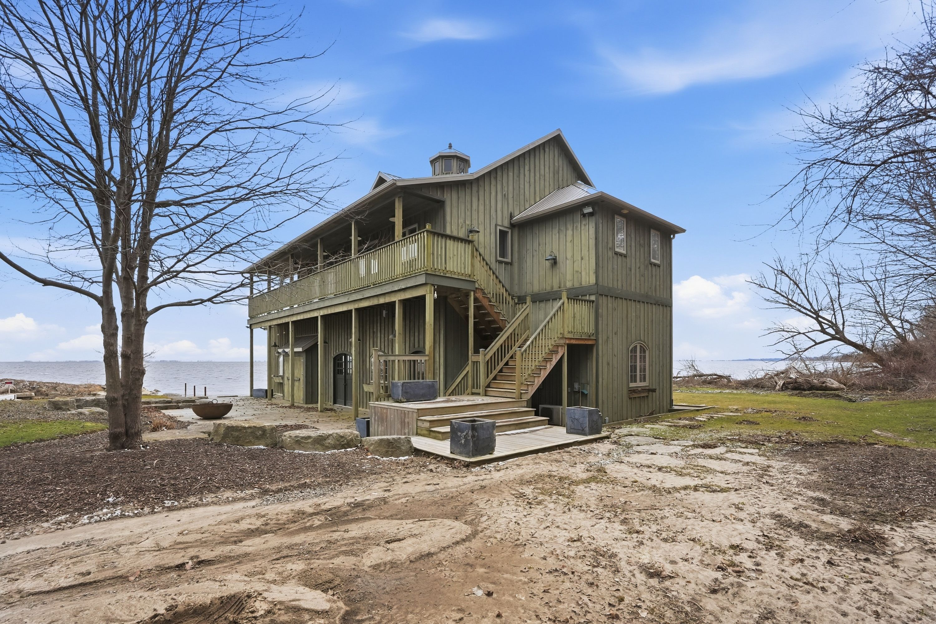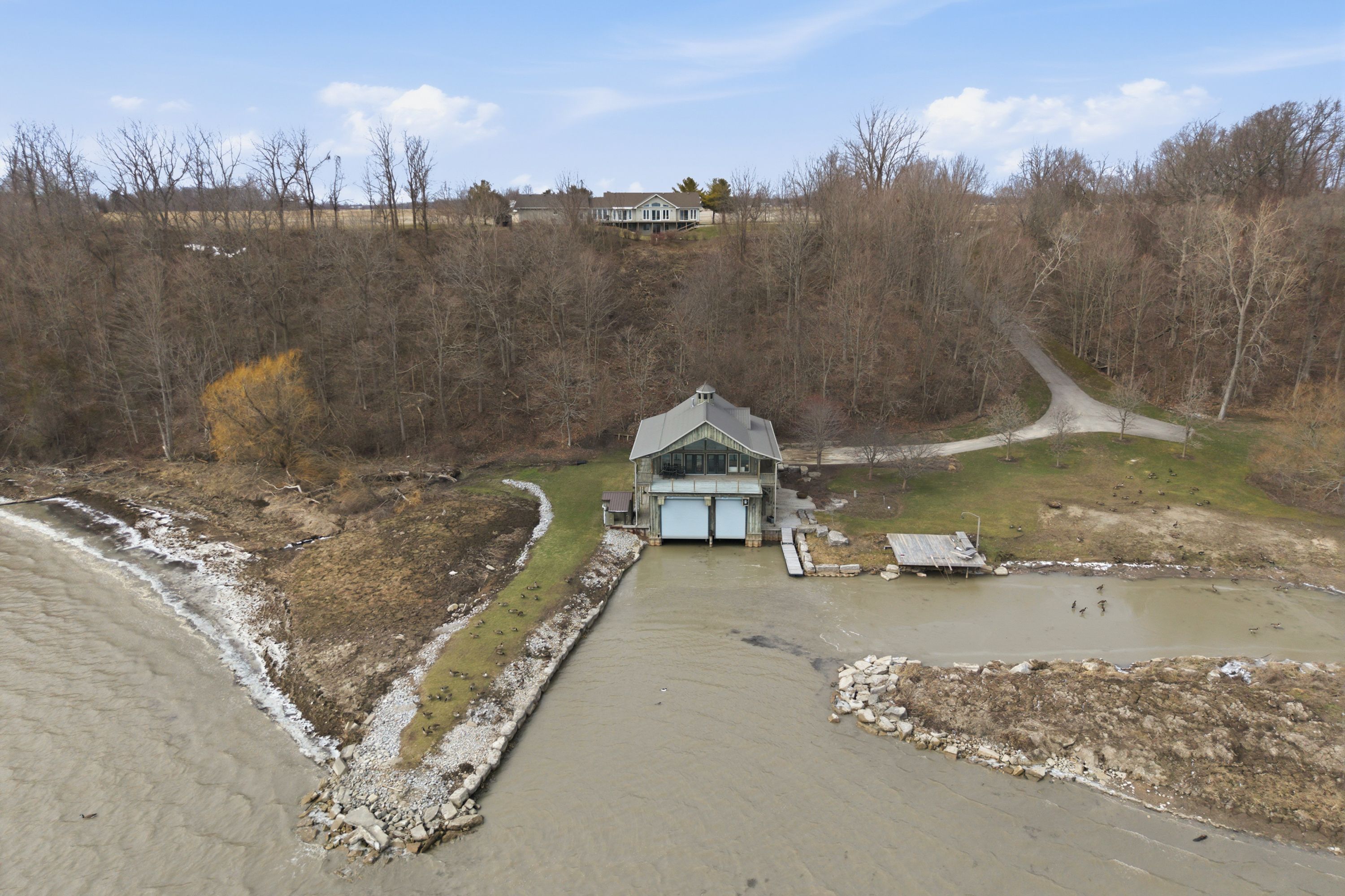 Dreaming of lakefront living? Welcome to 648 Front Rd, St. Williams-an extraordinary, meticulously maintained estate offering the ultimate blend of luxury, privacy, and lifestyle. Set on 59 acres with over 1,479 ft of private Lake Erie shoreline, this one-of-a-kind property delivers endless possibilities for multi-generational living, recreation, or income-producing agricultural use. Tucked well back from the road via a private paved drive, the main residence features 4 spacious bedrooms, 4 bathrooms, and 2 fully equipped kitchens-ideal for extended families or entertaining. Thoughtfully designed with a home gym, media room, sunroom, and a dedicated office with private entrance. Expansive windows throughout capture breathtaking lake views and flood the home with natural light. An attached 2-bay garage plus RV bay provides ample space for vehicles, tools, and toys. The true showpiece is the private waterfront retreat Boathouse, featuring a two-level entertainment building with two drive-in boat slips with lifts, a stunning great room with pool table and propane fireplace, change room, and wall-to-wall windows leading to an upper deck with panoramic lake views. Additional highlights include 45+ acres of productive farmland (currently cash crop) and a 50 x 40 ft barn, offering versatility for equestrian use, hobby farming, or added income potential with reduced property taxes. Ideally located minutes to Port Rowan & Turkey Point and approx. 90 minutes to London, Kitchener & Burlington. A rare offering where luxury, land, and lifestyle meet.