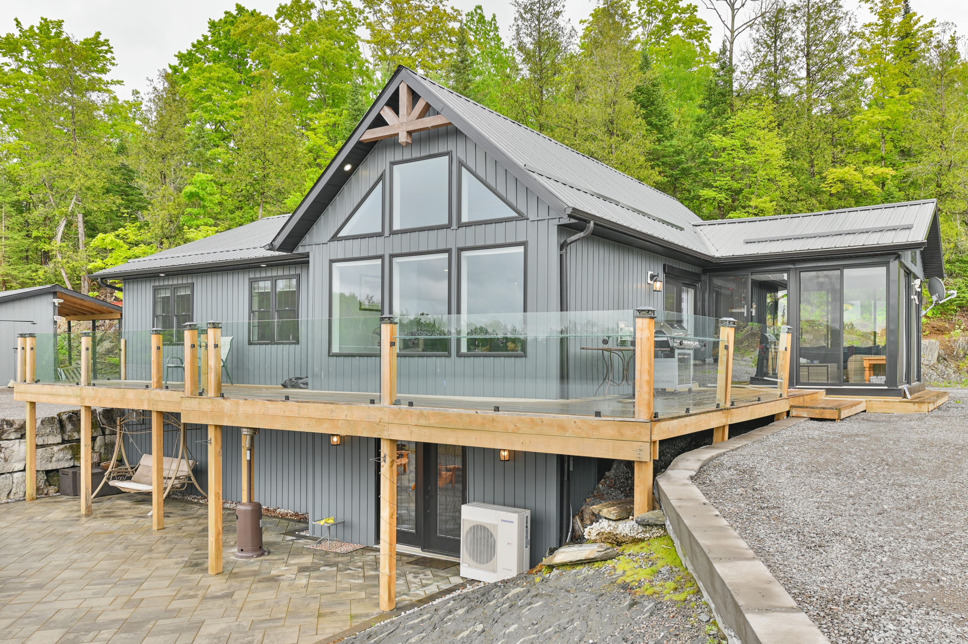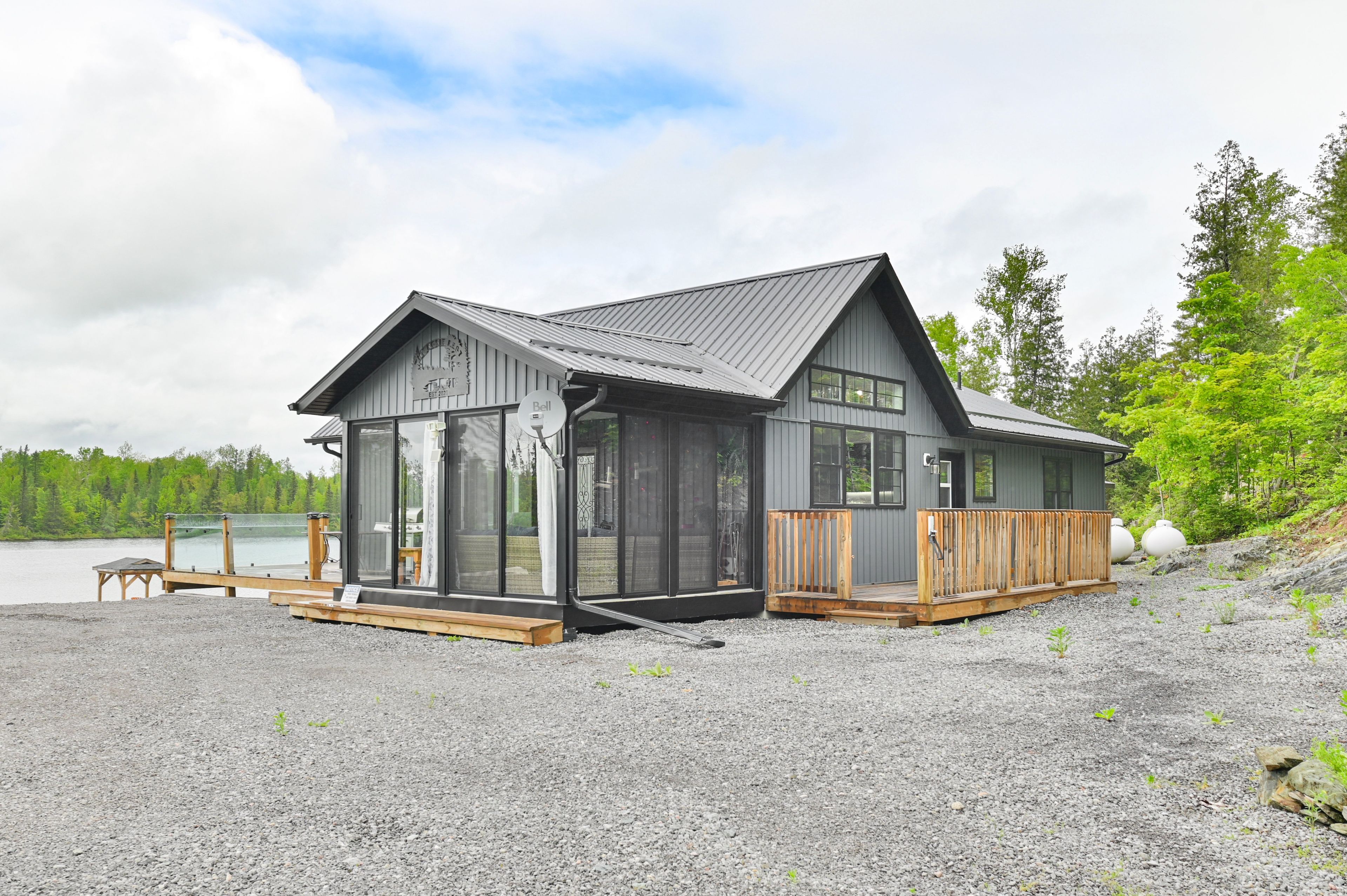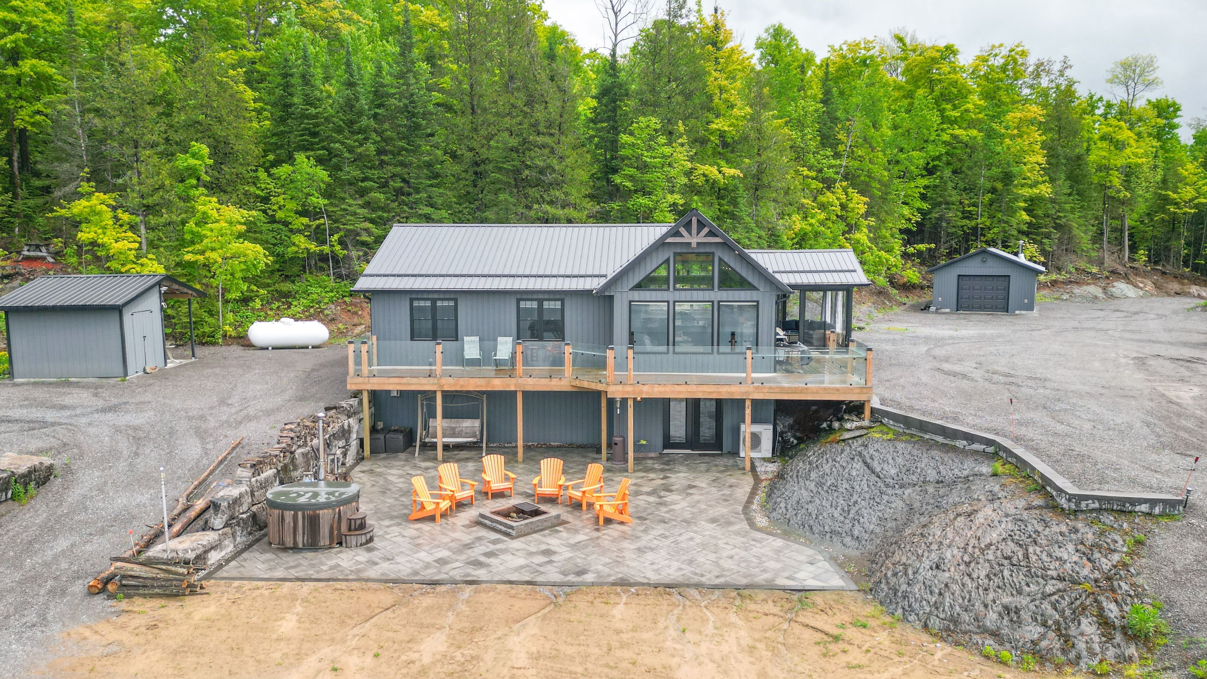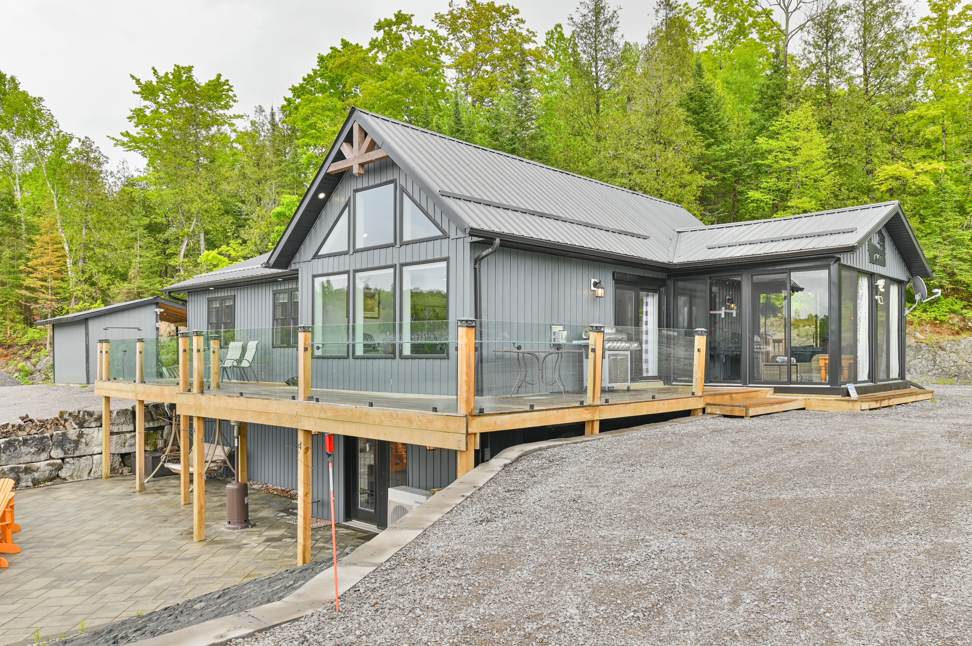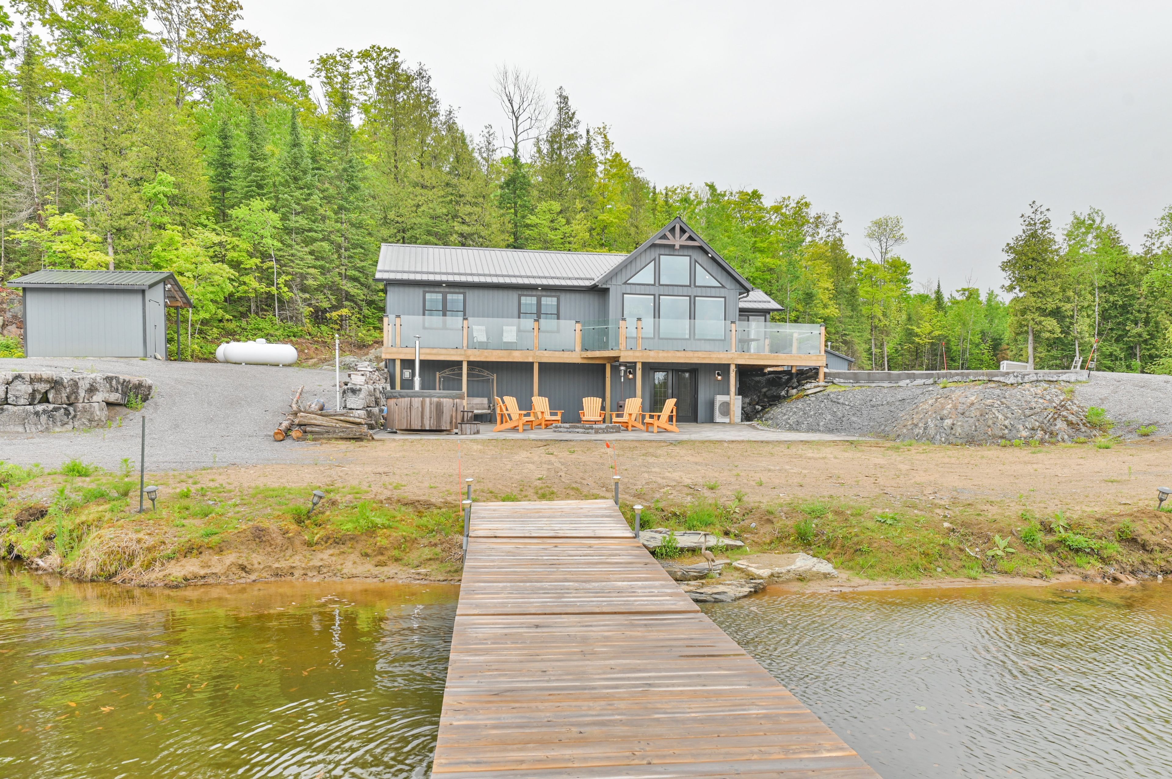 Escape to your own private retreat! Whether you're seeking peace and quiet with a waterfront view or the perfect place to host unforgettable gatherings filled with ATV and snowmobile adventures, this exceptional turn-key, off-grid property truly offers the best of both worlds. Set on 50 acres in a stunning natural landscape, and located near the Heritage Trail between Madoc and Bancroft, this property is accessed via a seasonal road and a long private driveway that leads to a breathtaking setting overlooking your own private lake, stocked with rainbow trout. The six year-old home features a thoughtfully designed main level with three bedrooms, two bathrooms, and a bright open-concept kitchen and living area. Large windows frame picturesque lake views and provide direct access to a full-length deck with sleek glass railings, as well as a charming three-season sunroom-perfect for relaxing or entertaining. The fully usable lower level includes a bar, a partially finished recreation area, and a walkout to an expansive interlocking stone patio. Here, you'll find a firepit and a wood-fired hot tub right at the water's edge, ideal for unwinding under the stars. Designed for self-sufficiency, the home is powered by an 11 kW diesel generator and features two propane fireplaces along with a heat pump providing both heating and air conditioning. A detached 24' x 20' garage with a wood stove, plus a 12-foot lean-to, offers ample storage for all your recreational equipment. Outdoor enthusiasts will love the endless opportunities for adventure, with abundant wildlife-including deer and moose-right at your doorstep, and numerous nearby lakes just a short drive away. Abutting 100's of acres of Conservation land, your privacy is guaranteed. This is a rare opportunity to own a truly special property, don't miss your chance.
