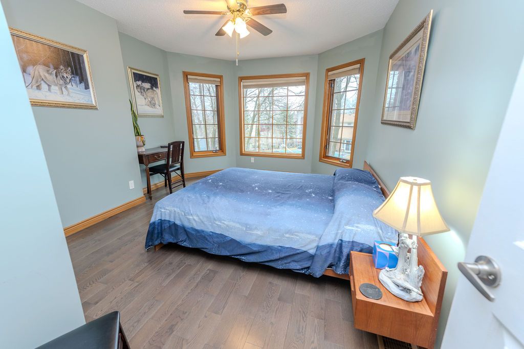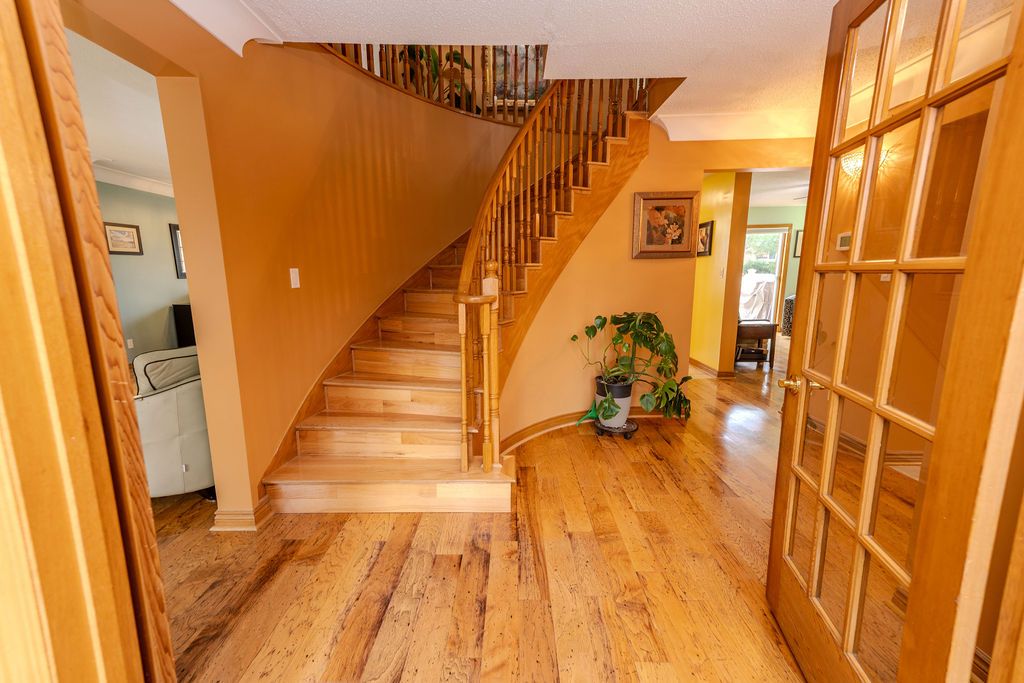 Located in Bayshore Estates, this executive 2 storey home offers comfort and luxury steps awayfrom nature. This home boasts more than 3000 sq ft of living space across three floors, plenty of room for your growing family. The main floor welcomes you with large living room, dining room and eat-in kitchen. There is also a family room with fireplace and sliding doors out to the deck that has seen many wonderful meals and many more to come. The upper floor has had all new hardwood installed. There are four large bedrooms, the primary with its own ensuite and walk in closet and a family bathroom as well. The basement has also had new vinyl flooring and there is a 5th bedroom or den there. A bonus feature is the rough-in for a wet bar if desired. Sellers have made a number of enhancements over the past nine years, including 2 new decks, new flooring and appliances, front door and ceiling fans (not that the central air doesn't work - it was new in 2018, they just love the air circulation), central vac in 2023 and the basement bathroom redone. The large back yard could easily accommodate a pool with room to spare. This is a friendly neighbourhood where people look out for one another. You will love being a part of it!