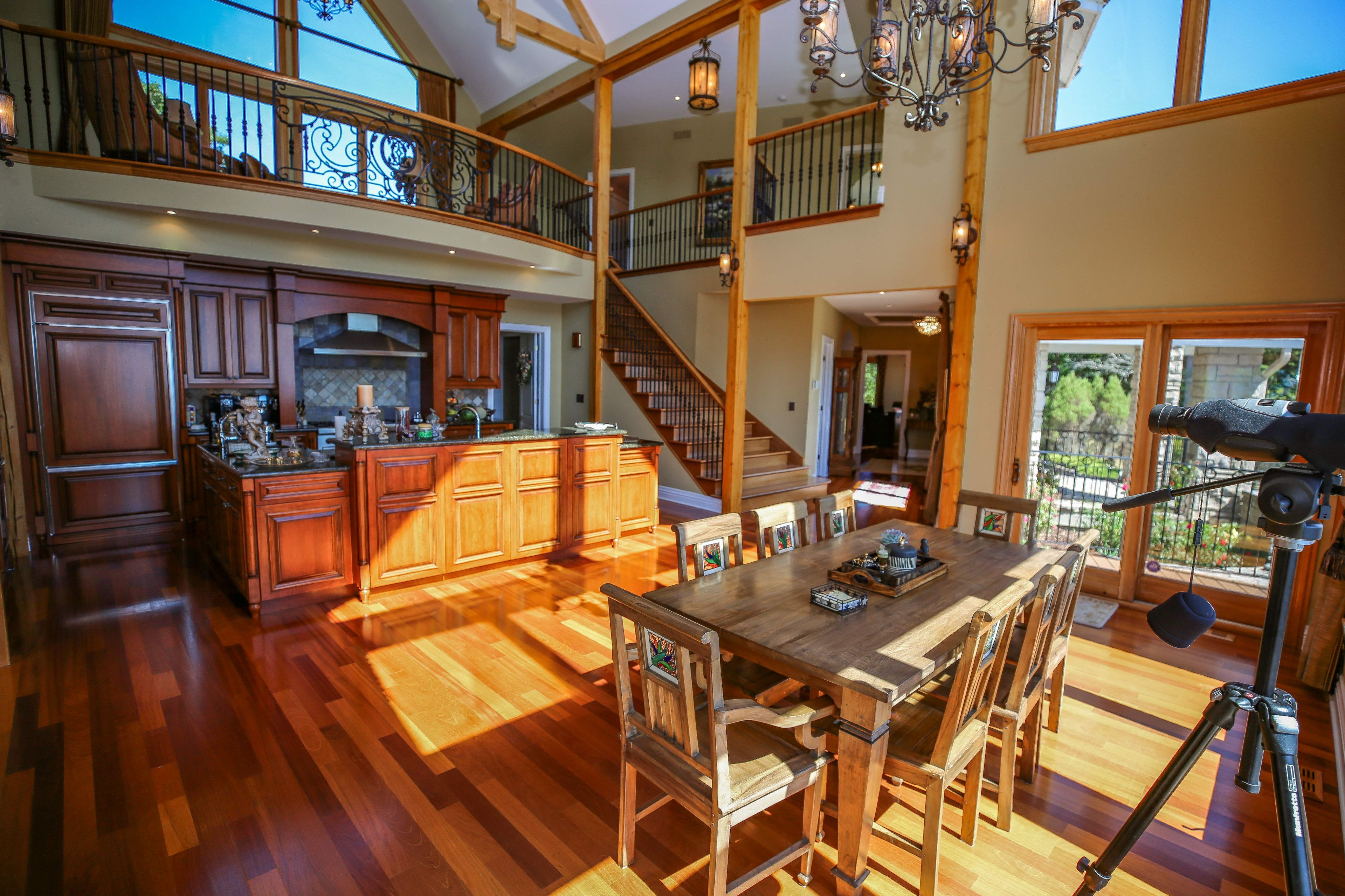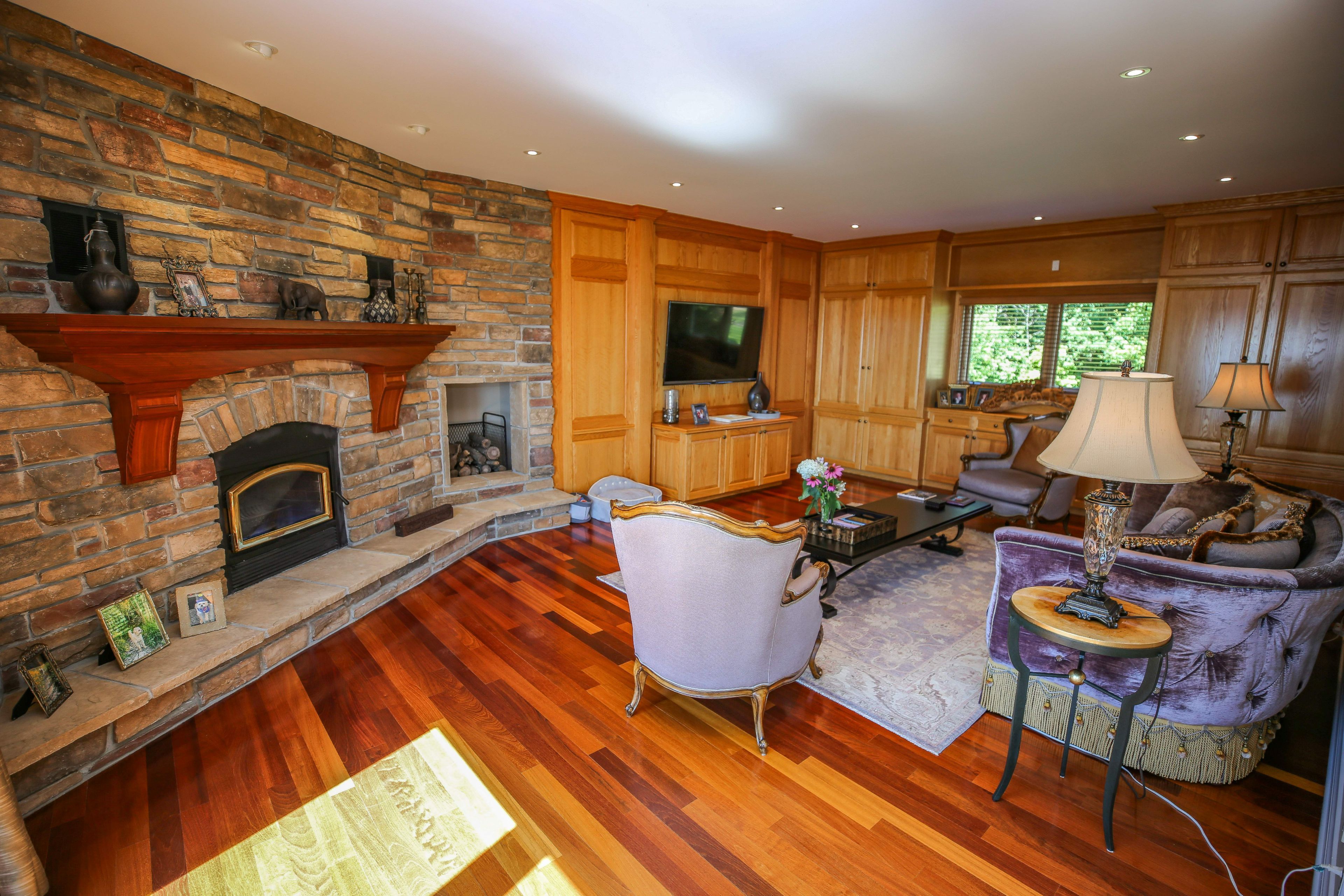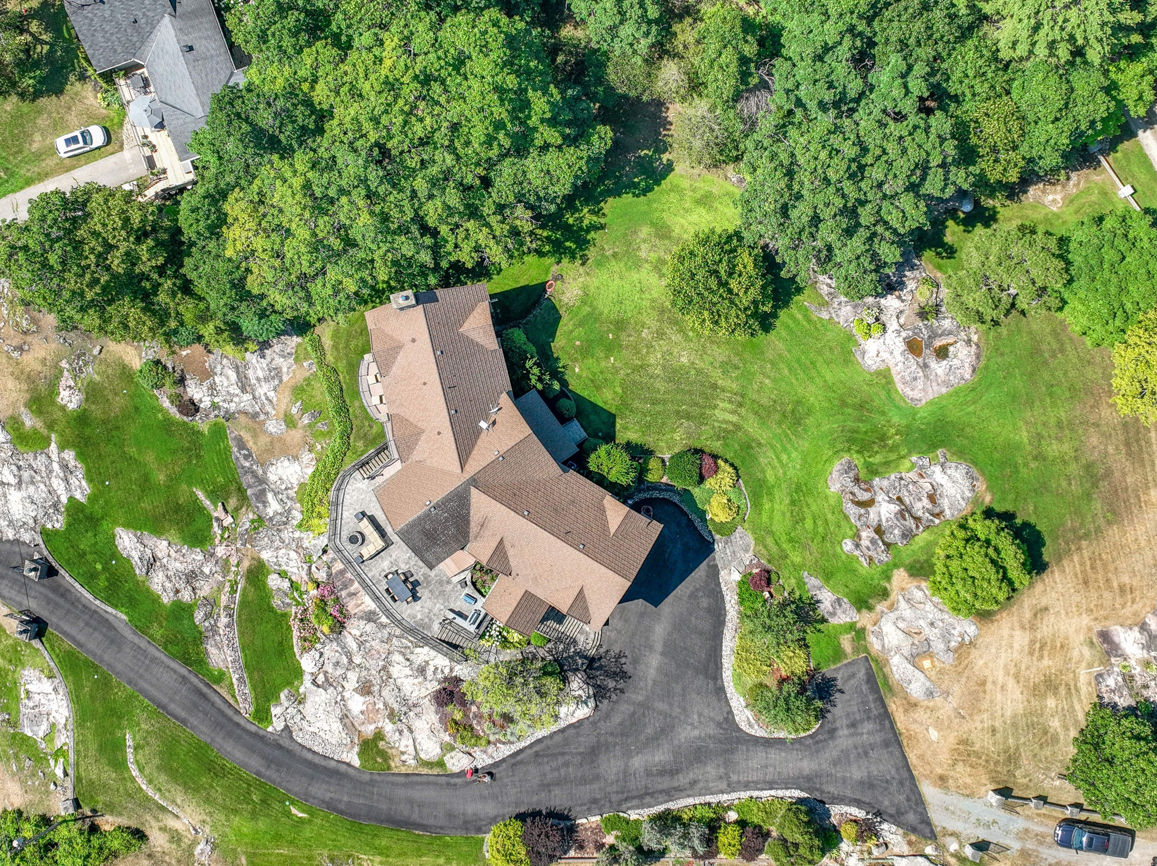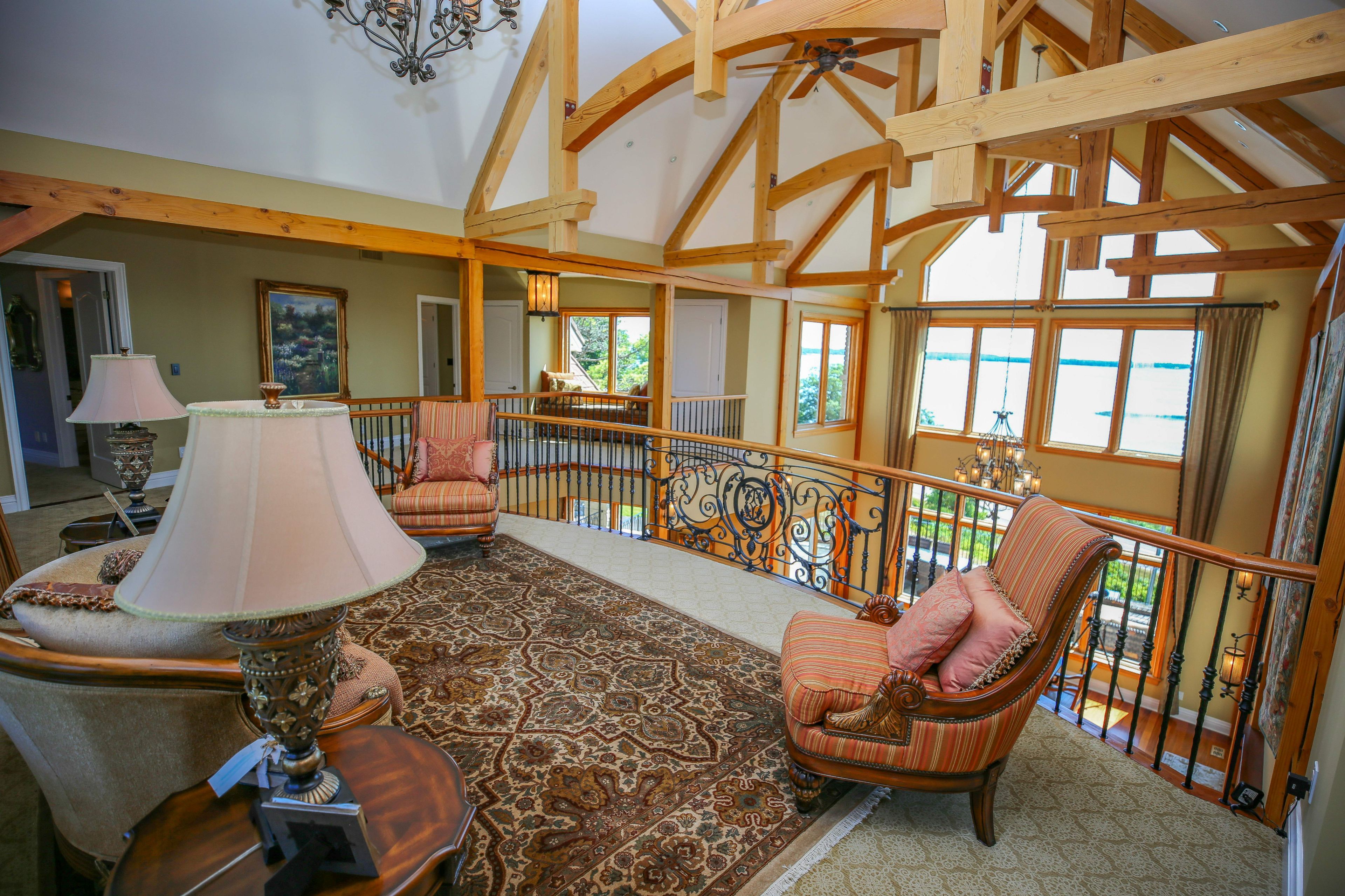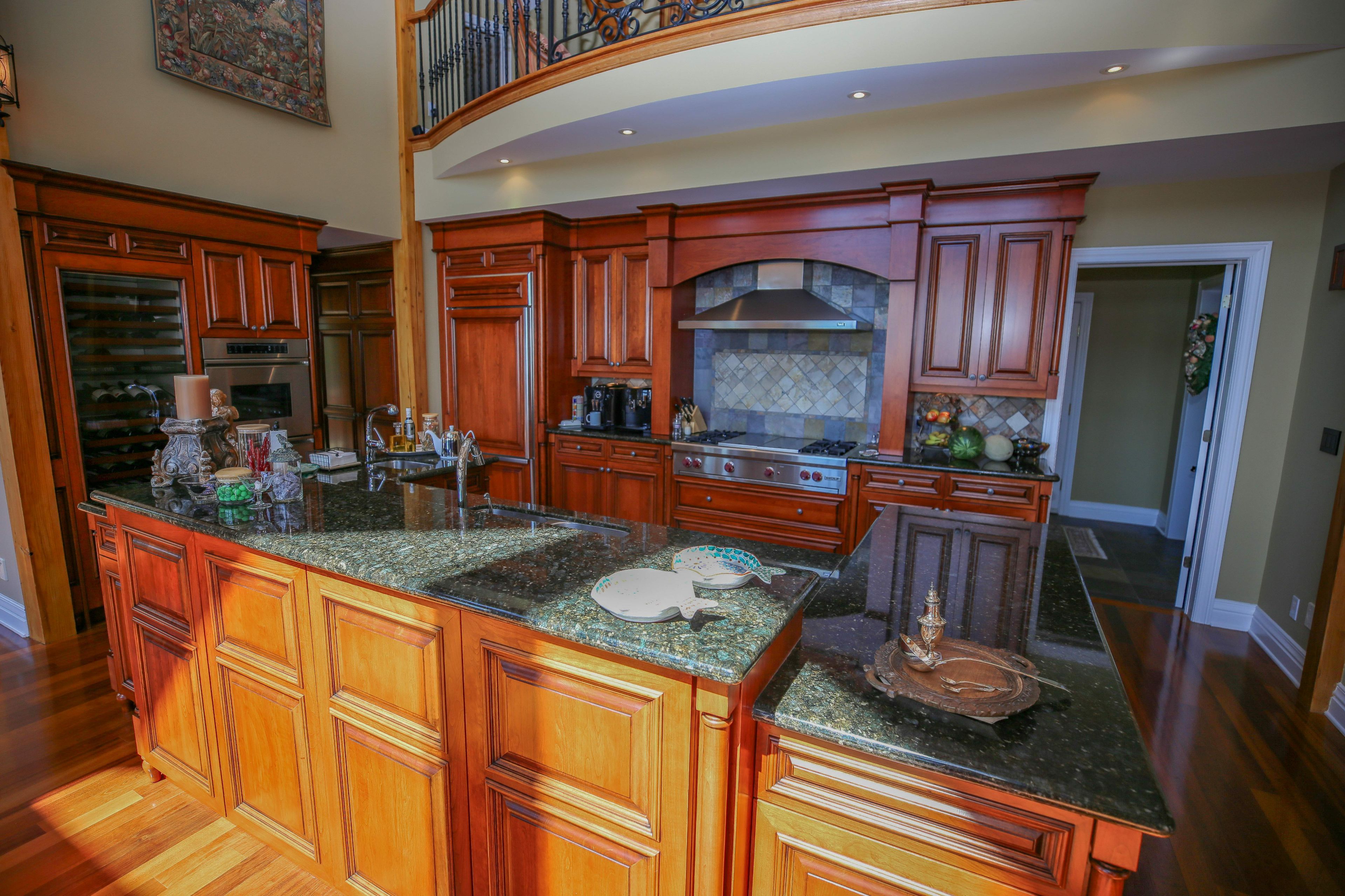 Perched high above the St. Lawrence River in the heart of the world-renowned 1000 Islands, this exceptional custom-built estate offers breathtaking panoramic views stretching to the iconic Singer Castle. A rare combination of timeless design, elevated privacy, and refined outdoor living, this is waterfront living at its finest. Spanning approximately 6,000 sq. ft., the home is designed to maximize light and scenery, with expansive floor-to-ceiling windows framing the ever-changing river views. Inside, rich Brazilian cherry hardwood and marble flooring, along with handcrafted Hubbardton Forge lighting, create a warm yet sophisticated atmosphere. Floor to ceiling stone fireplace with air tight wood insert, perfect for both relaxing and entertaining. The gourmet kitchen features custom cherry cabinetry, a Wolf gas stove, and two Dacor ovens, family room with custom built-ins and stunning water views. The principal suite offers a private retreat with a spa-inspired ensuite and picturesque outlook, while two additional bedrooms each include their own ensuite for added comfort and privacy. The walk-out lower level, complete with 10-foot ceilings and in-floor heating, provides exceptional additional living space with a rec room, wet bar, office, and exercise area. Outdoors, professionally landscaped grounds showcase extensive stonework, stamped concrete, and maintenance-free decking. Multiple entertaining areas, including a built-in BBQ and smoker, create the perfect setting to enjoy the riverfront backdrop. A wrought iron gated entrance and fencing add both elegance and security, with additional access from Old River Road. Additional features include a steel roof, two central air units, and direct access to 37 km of paved walking and cycling trails leading to Gananoque. A truly rare offering in one of Canada's most iconic waterfront settings - this is more than a home, it's a landmark 1000 Islands estate.