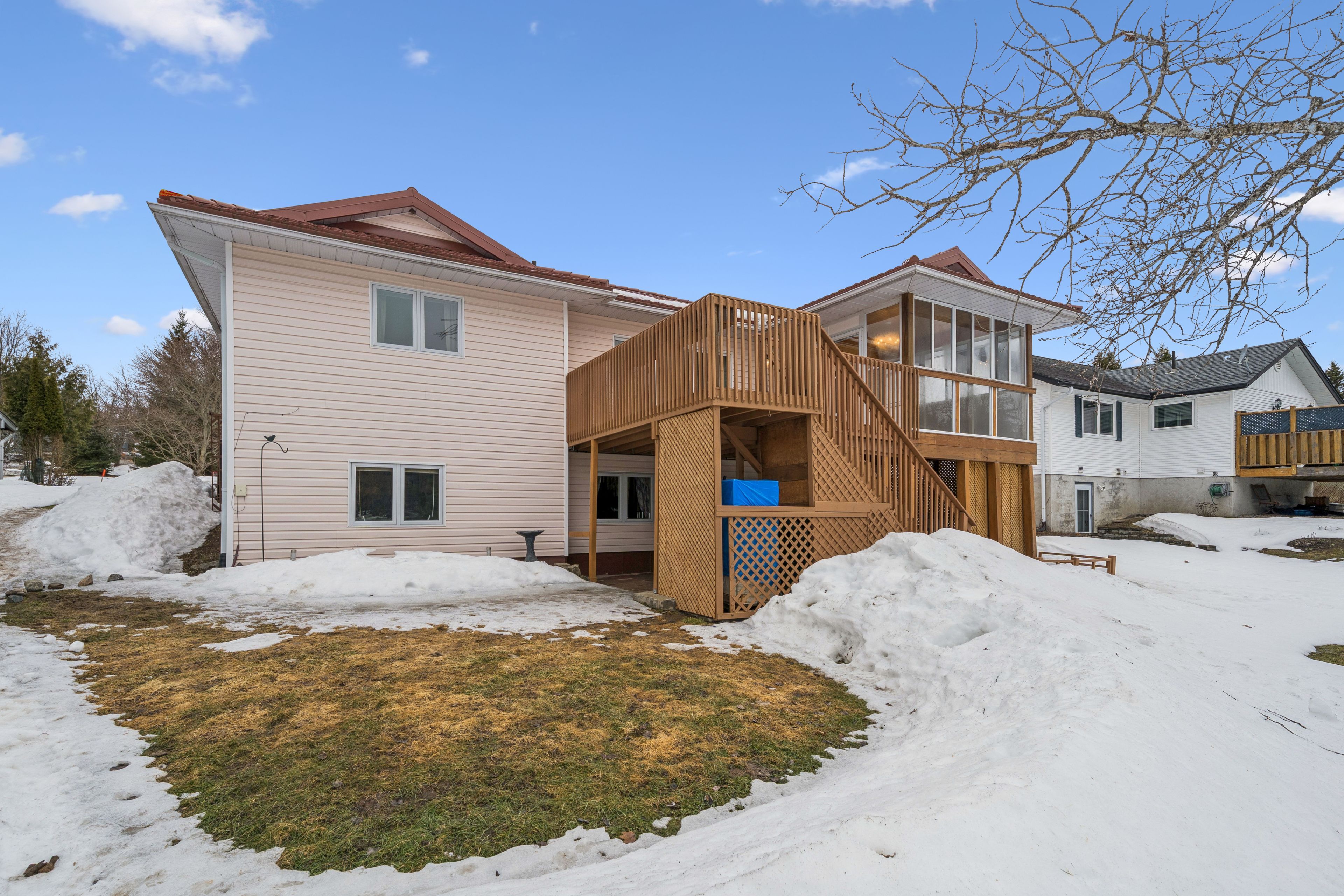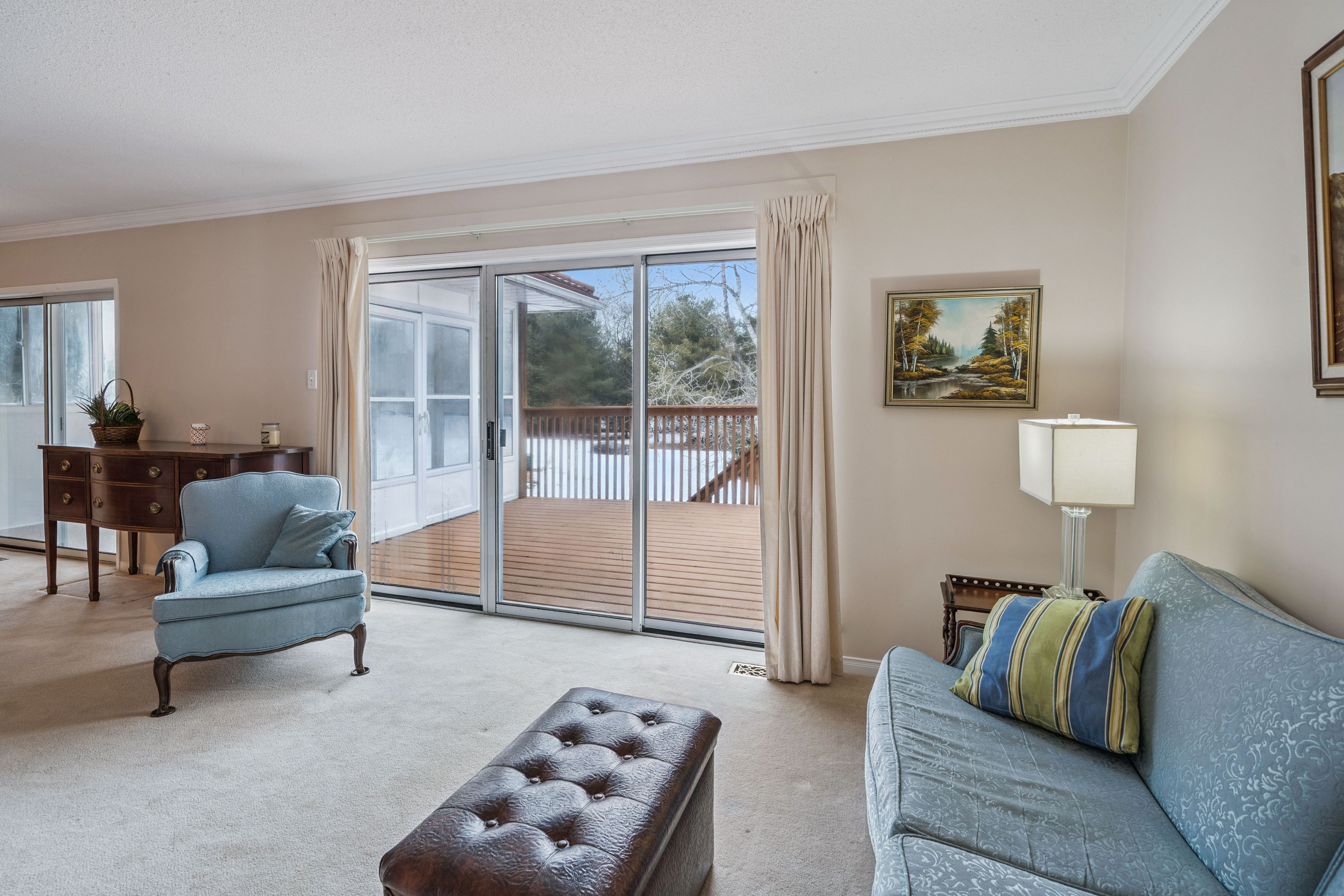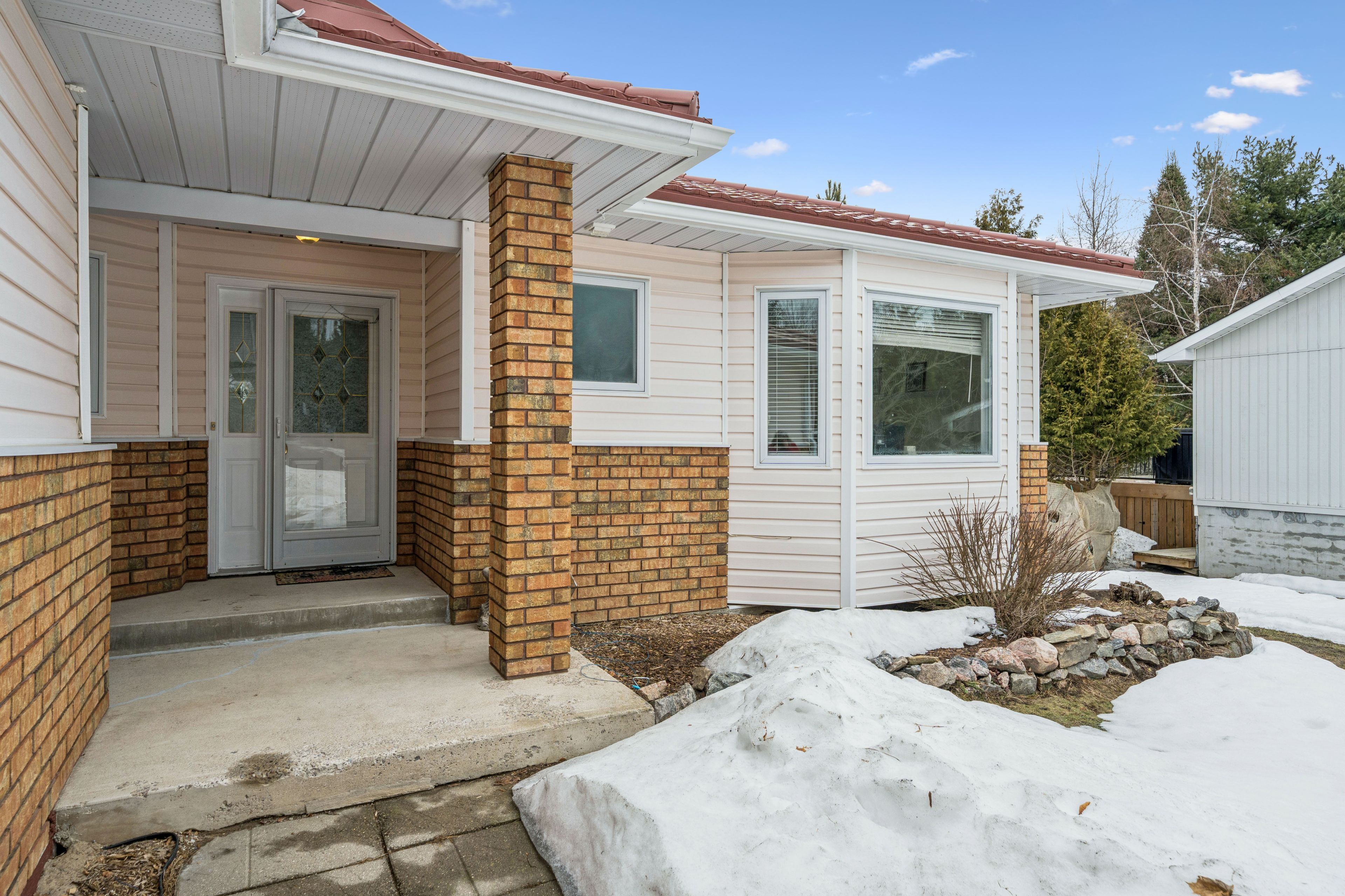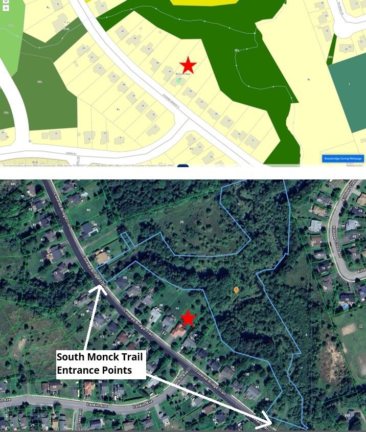 4-bdrm, 2-bath, 2200+ sqft, bungalow on an extra-deep ravine lot in a mature and desirable neighbourhood. The main floor offers 2 spacious bedrooms, a 4pc bathroom with a step-in shower, an eat-in kitchen with pantry, combined living and dining rooms (with crown moulding) where you can step out through oversized glass sliders to the elevated deck and Muskoka Room, with broad views over the ravine and forest. Downstairs, in the walk-out basement, is a great space for a possible in-law suite with 2-bdrms and a 3pc bathroom, large laundry room, high ceilings, a gas fireplace in the large family room, and sliding glass doors to the covered patio area. Outside, the lot is gently sloping from the front of the house to the back of the house, where it levels off for the remainder of the backyard... and backs onto a greenspace, with no possibility of future development. There is a covered front porch, double-wide paved driveway fitting 4 vehicles comfortably, and a double attached garage with mudroom leading into the kitchen. This ravine lot offers quick access (200m) to the South Monck hiking and biking trail system with over 9-kms in trails. The snowmobile trail is a distance away at the far end of Covered Bridge. The local playground is just a 300m stroll, and only 800m to shopping and dining.