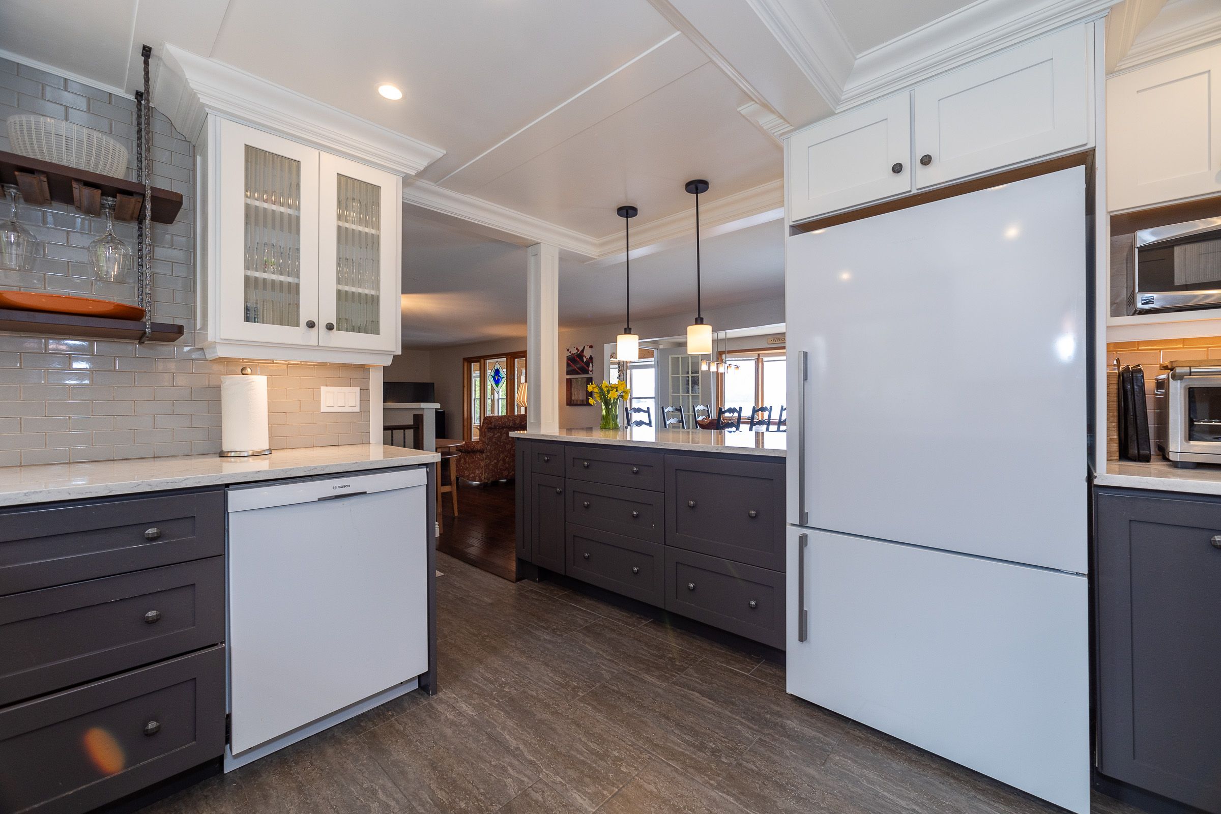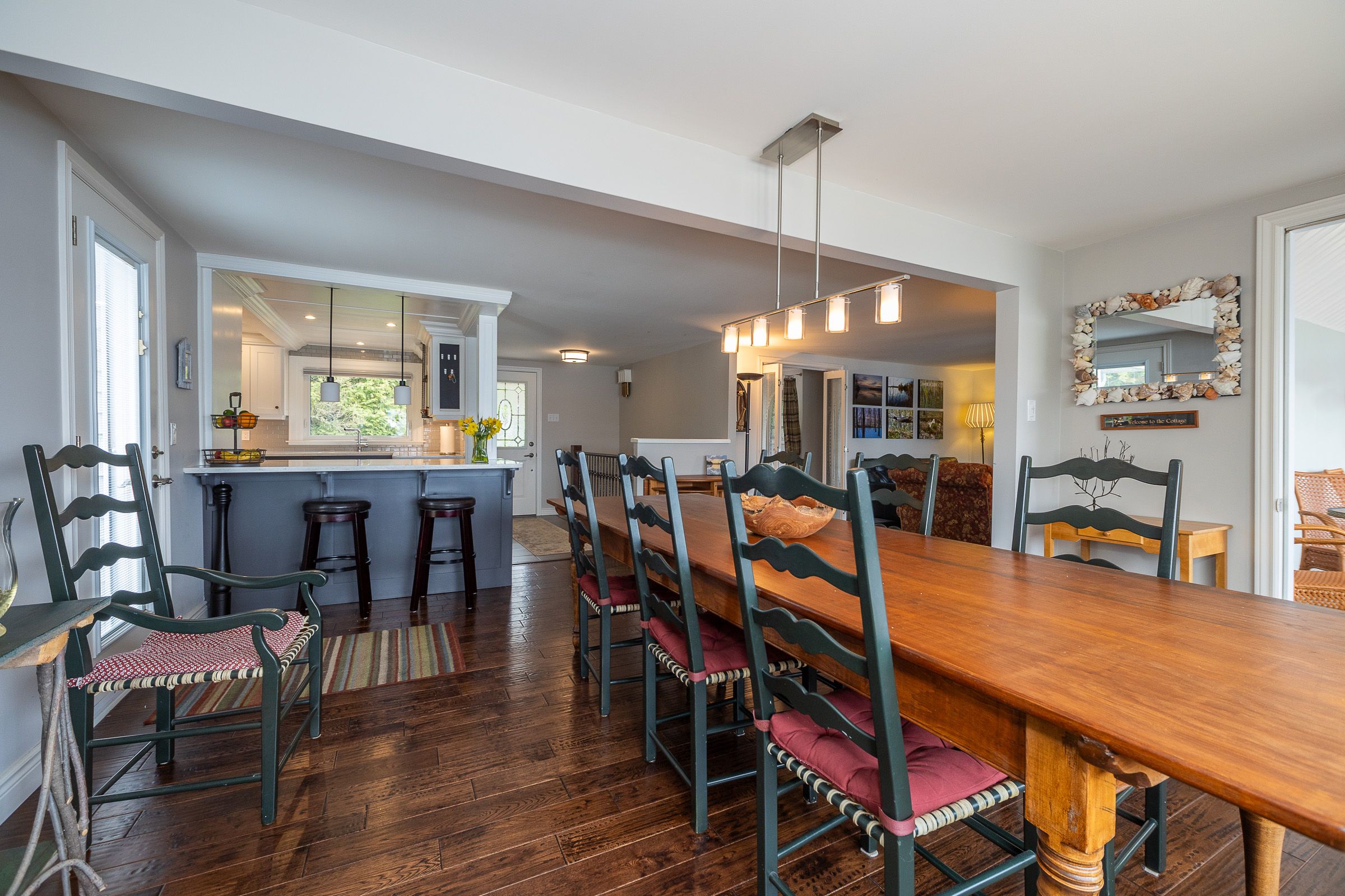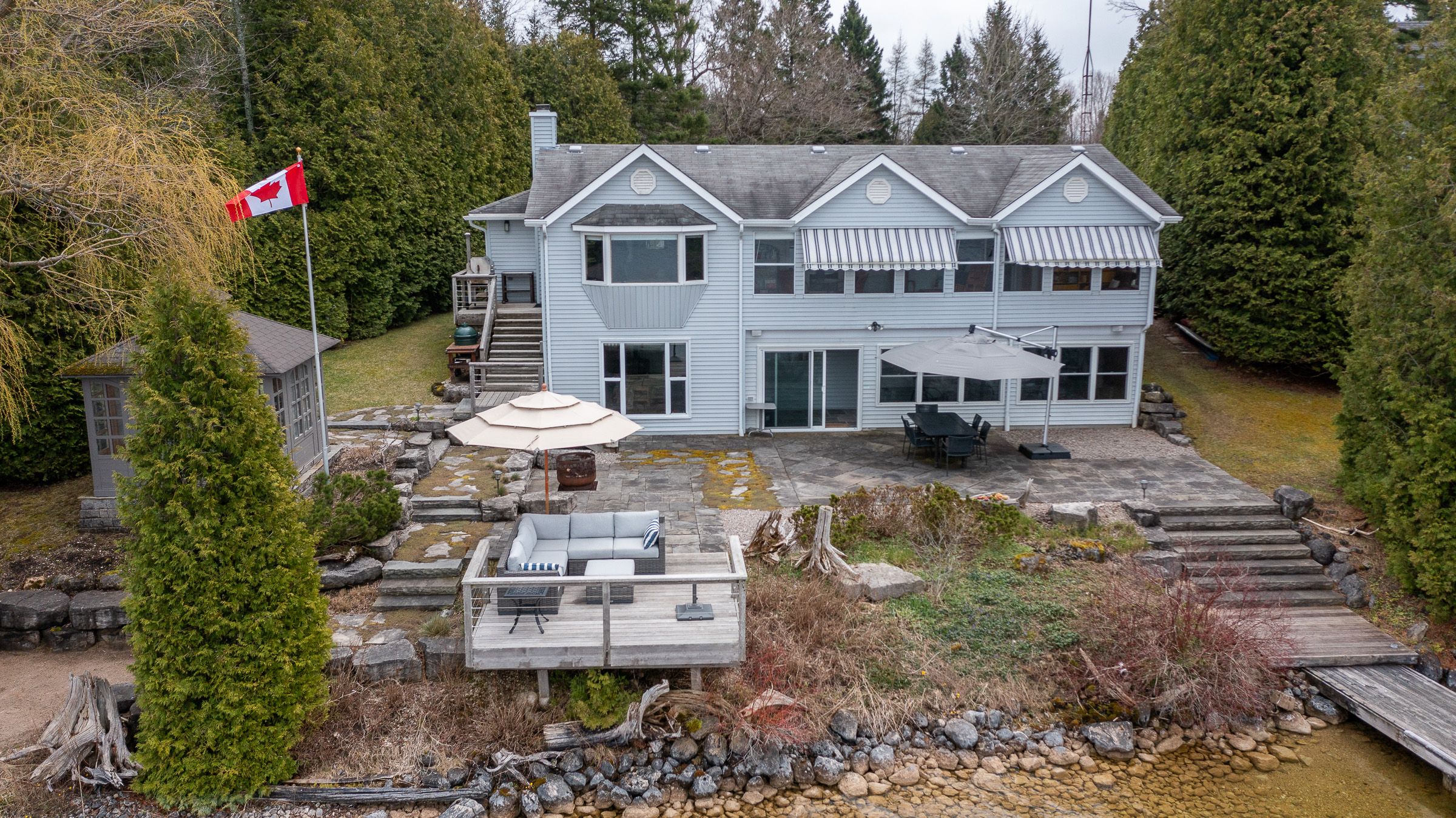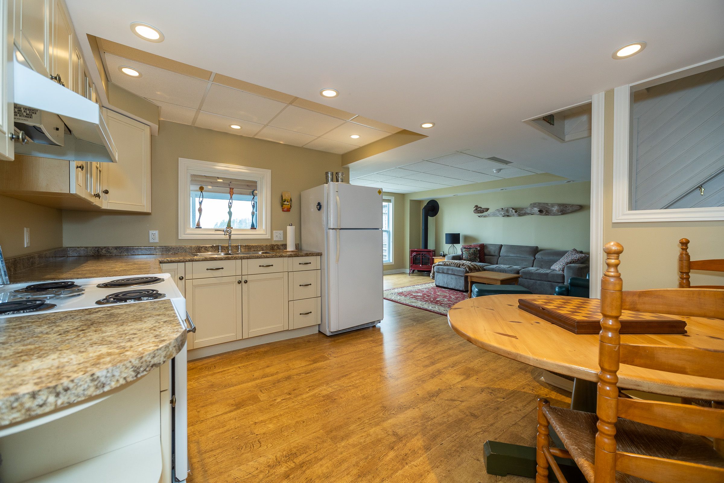 123' waterfront on Sunset Point, Lake Eugenia with unobstructed views from nearly every room on both levels. Enjoy the open kitchen, dining and living areas with direct access to the light-filled sunroom. Lower level walkout features a family room with propane free-standing stove, second kitchen, 2nd bath and great coat room with access to the attached garage. Walkout to stone patio, waterside deck, sheltered dock, enclosed gazebo, sandy beach area and everything desired in a waterfront property. Thoroughly enjoyed and lovingly maintained including updated kitchen and bath (2017), hot water tank (2023), sewage pump (2024), shingles (2010), eavestrough with leaf guard (2023). Shared ownership and use of Macdonald Farm with 127 acres of trails for recreational use.