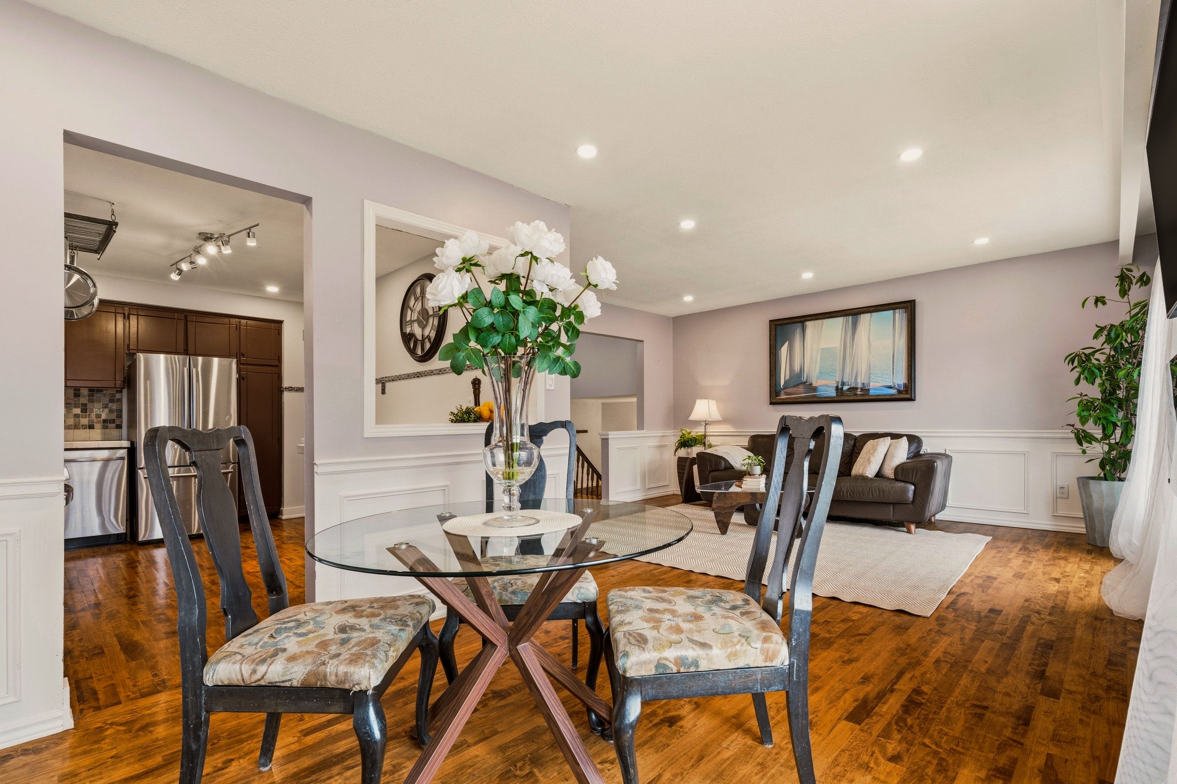 Welcome to this beautifully maintained side-split, perfectly situated on a premium pie-shaped lot backing onto Gatesbury Park in the highly sought-after East Waterdown neighbourhood.Offering over 2,000 sq ft of thoughtfully designed living space, this 3+1 bedroom, 2 full bathroom home blends comfort, functionality, and style. The main level features three generously sized bedrooms, a well-appointed 4-piece bathroom, and elegant hardwood flooring that adds warmth and sophistication.The bright, open-concept living and dining area is ideal for both everyday living and entertaining, seamlessly connecting to a spacious kitchen designed for family gatherings and hosting with ease.Step outside to your own private backyard oasis-an oversized, pie-shaped lot with a custom deck, mature trees, and direct park backing for added privacy and tranquility. It's the perfect setting for summer evenings, family time, or quiet relaxation.The fully finished lower level offers a large recreation room, an additional bedroom, and a second full bathroom-ideal for guests, teens, or multi-generational living.Additional highlights include a double car garage, fresh paint throughout, and true move-in ready condition.Located just minutes from parks, scenic walking, biking trails, Royal Botanical Gardens; top-rated schools, shopping, major highways, and the GO Train-this home offers the perfect balance of lifestyle and convenience.Simply move in and enjoy-everything has been done for you.