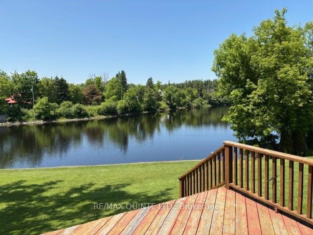 Enjoy the stunning Waterfront view of Moira River. Bungalow, with lots of natural light, 2 bedroom + office (could be 3rd bedroom), living room with full view of the river, patio doors to wrap around deck, Kitchen with separate dining room. Central air, Large electric awning over back deck facing the river. Attached garage with small workshop, partial basement to laundry/utility room. High and dry, no flooding level lot, paved drive. 2 sheds 1 with hydro. Generator hook up. Nice area, quiet paved road, just off highway. Minutes to Belleville.