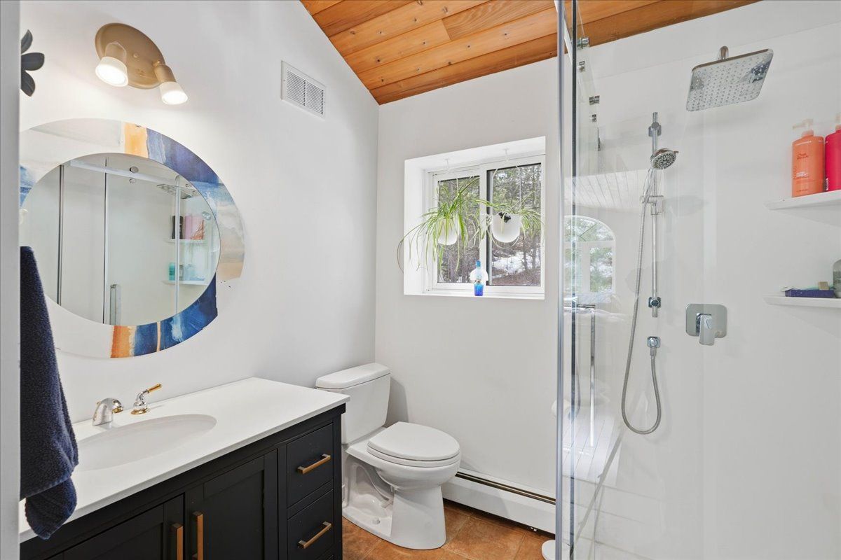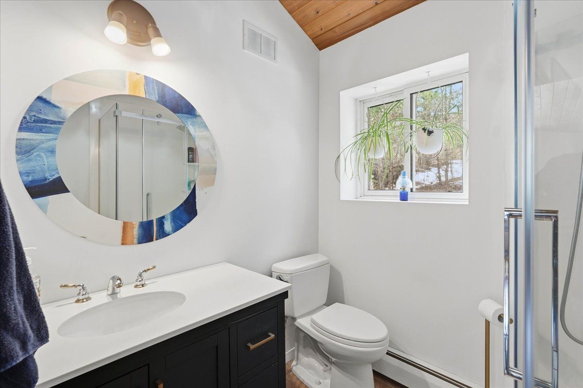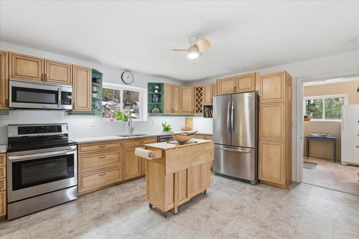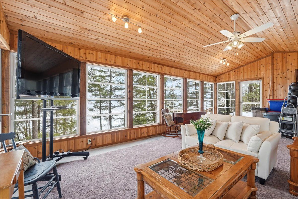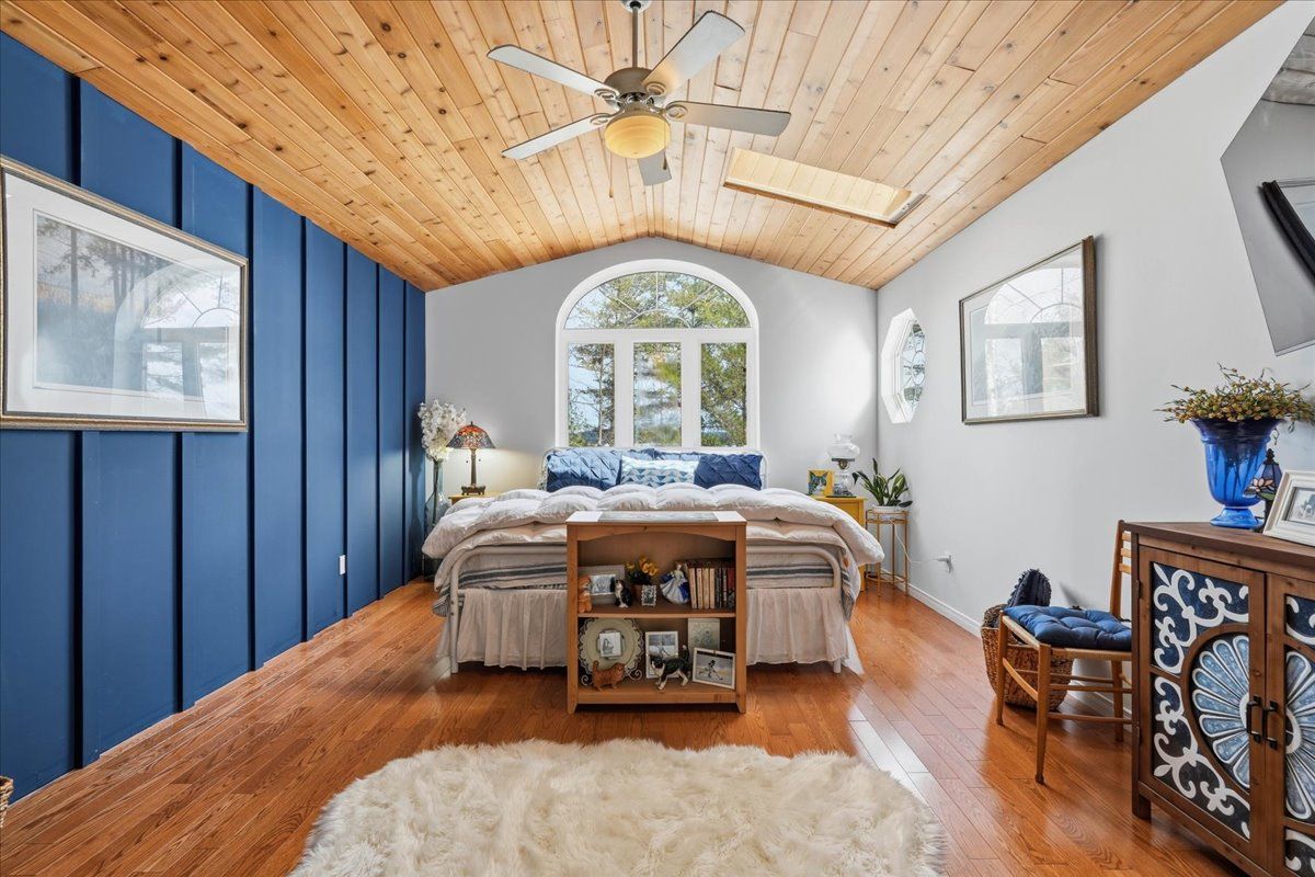 Set on one of Ontario's most iconic lakes - Mazinaw Lake, this year-round home offers a front row seat to one of the region's most unforgettable views, Bon Echo Rock rising across the lake. Tucked into a quiet, tree-lined setting on a municipally maintained road, the property strikes a rare balance of privacy, natural beauty, and easy access in every season. Built with lasting quality in mind, the home features ICF construction and in-floor radiant heating, creating a comfortable and energy-conscious lifestyle. The main level is designed for both everyday living and entertaining, with spacious principal rooms, a well-appointed kitchen with quartz countertops, and a dedicated dining area. A cedar-lined sunroom extends the living space and offers a relaxed place to unwind while taking in the surrounding landscape. Upstairs, the primary suite includes a walk-in closet and private ensuite, alongside two additional bedrooms and a full bath. The layout offers flexibility for families or guests, with additional space on the main floor that could serve as a home office or optional bedroom. The waterfront is equally impressive, with a clean shoreline, hard sand entry, and deep water off the dock, ideal for swimming, boating, and fishing. Known for its clarity and natural beauty, Mazinaw Lake is home to Bon Echo Provincial Park, offering miles of shoreline to explore, scenic hiking trails, and two sandy beaches just steps away from this rare gem!