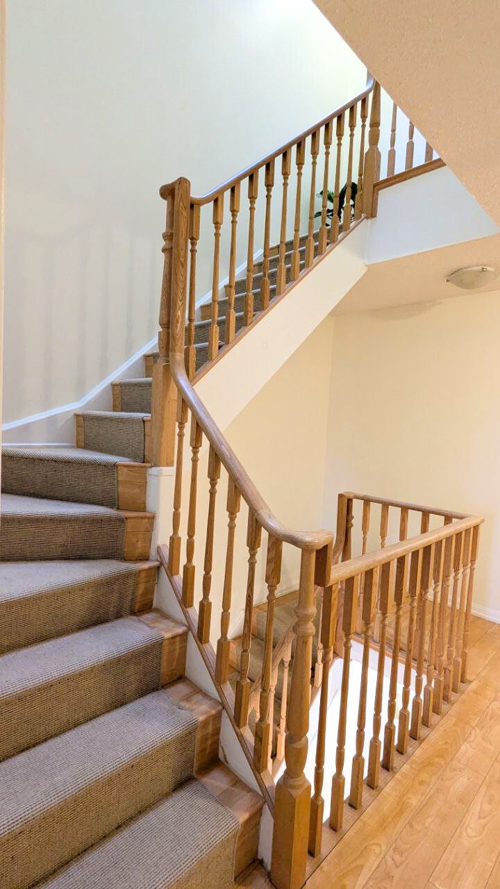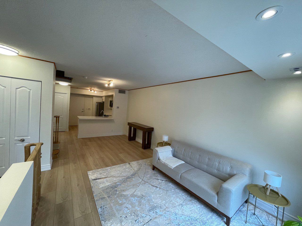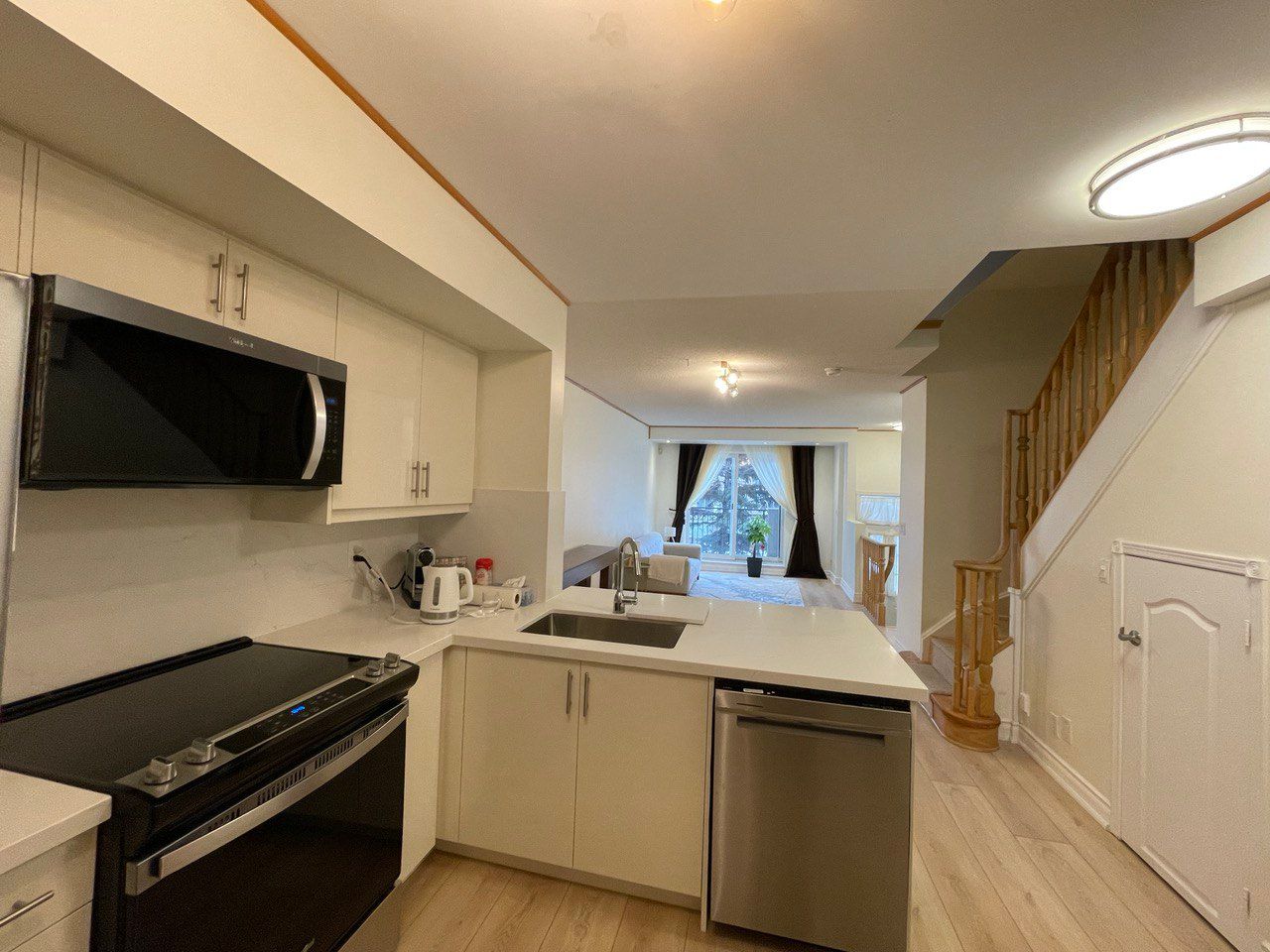 Rare townhouse in a quiet gated community, south exposure with park view, renovated, walking distance to Subway, family friendly complex, featuring private balcony with gas BBQ hookup. Newly renovated flooring (12mm Vinyl throughout first floor and entrance stairs) , modern cabinets, quartz countertops, deep sink, faucet (MOEN), brand new GE appliances (French-door fridge, range, microwave, dishwasher). Stacked GE washer & dryer (2023) on second floor, New American Standard toilets, modern powder room vanity, pantry with new shelving, under-stair storage. Walking distance to top-ranked schools: Earl Haig Secondary School, Cummer Valley Middle School, and McKee Public School, Mitchell Field Community Centre, Metro Grocery Store, shops, restaurants and parks. Easy access to TTC subway and major highways. 24-hr security. Elevator to underground parking. Locker, bike storage, car wash, EV charging station, visitor parking (P1), outdoor visitor parking near Block 1200. Maintenance includes landscaping, snow removal, parking & locker maintenance, and insurance. Hydro & gas separately metered.