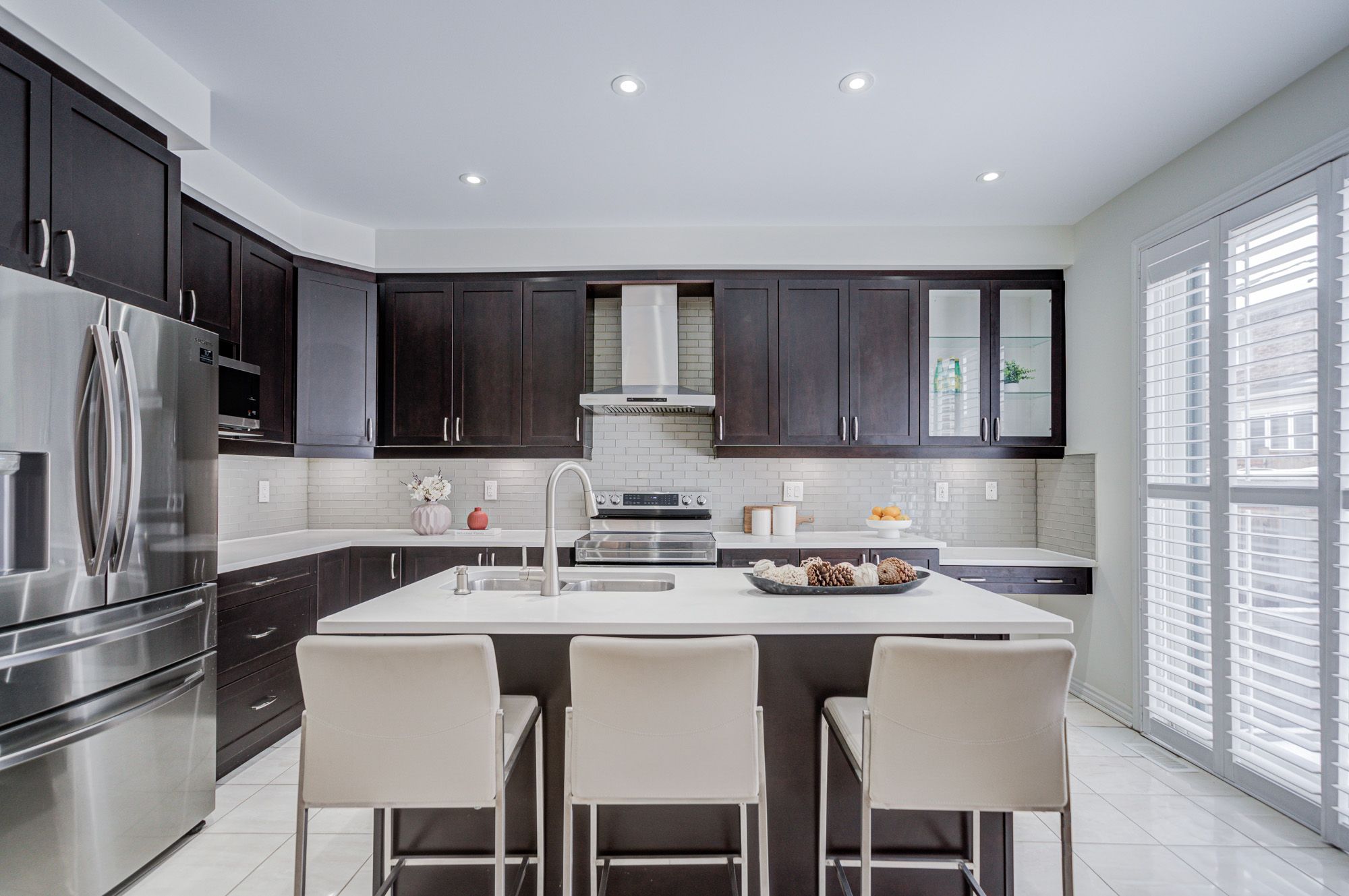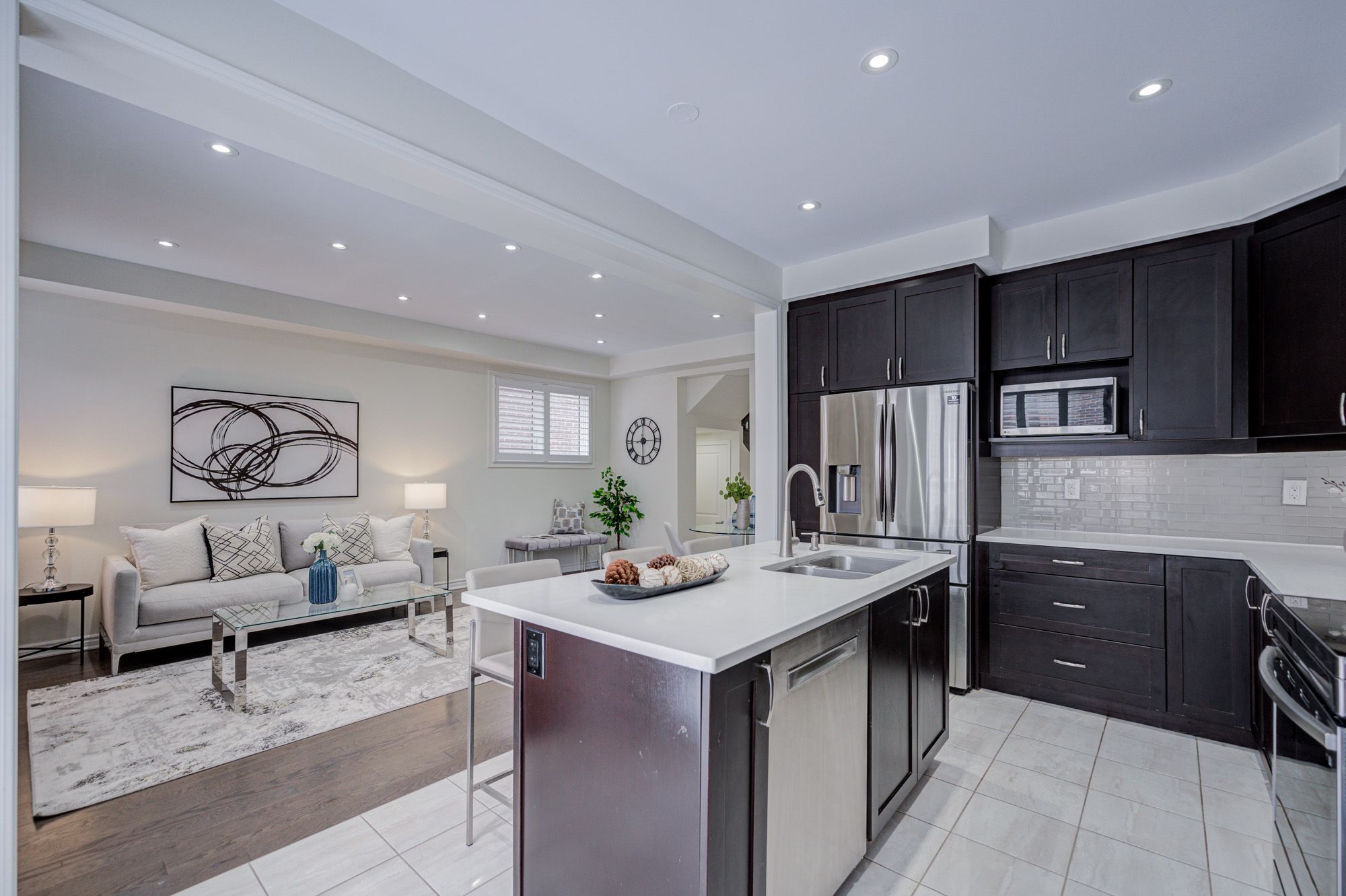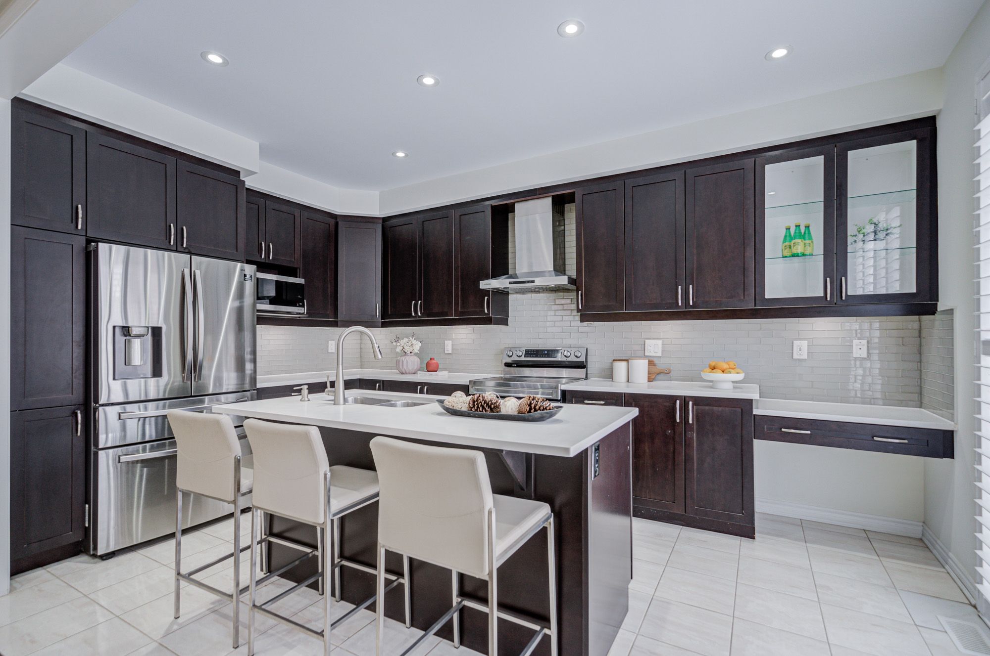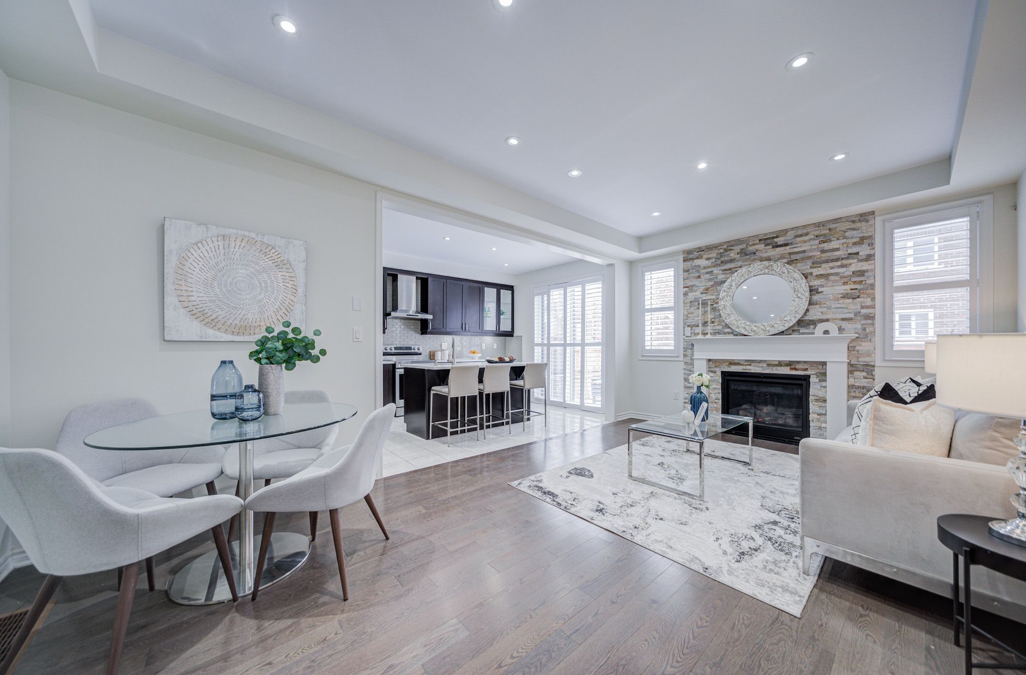 Stunning 5-year-old freehold end-unit townhome in the highly desirable Queens Common community, Whitby. A bright living space, feels like a semi-detached, loaded with $50K+ in upgrades. Spacious 3 bedrooms & 3 bathrooms, 2 bedrooms with walk-in closets, primary with 5- pc ensuite. Quartz countertops in kitchen & bathrooms, modern kitchen with stainless steel appliances, Bosch ultra-silent dishwasher, 850 CFM range hood, deep pantry cabinets, spice rack, under-mount lighting & glass cabinet bar setup. Smooth ceilings, pot lights throughout incl. porch, upgraded hardwood floors, California shutters, gas fireplace, elegant TV wall stonework. Upper-floor laundry with upgraded cabinets & linen closet. Cold room, humidifier, gas line to kitchen, garage door opener. Private driveway & built-in garage. POTL covers snow removal, garbage & common area maintenance. Steps to Whitby Health Centre, bus stop & pharmacy. Minutes to 412/401, GO Station within 10 mins, top-rated schools. New fire station coming nearby for added safety, plus upcoming banks, retail & daycare within walking distance. Book your showing Today!!