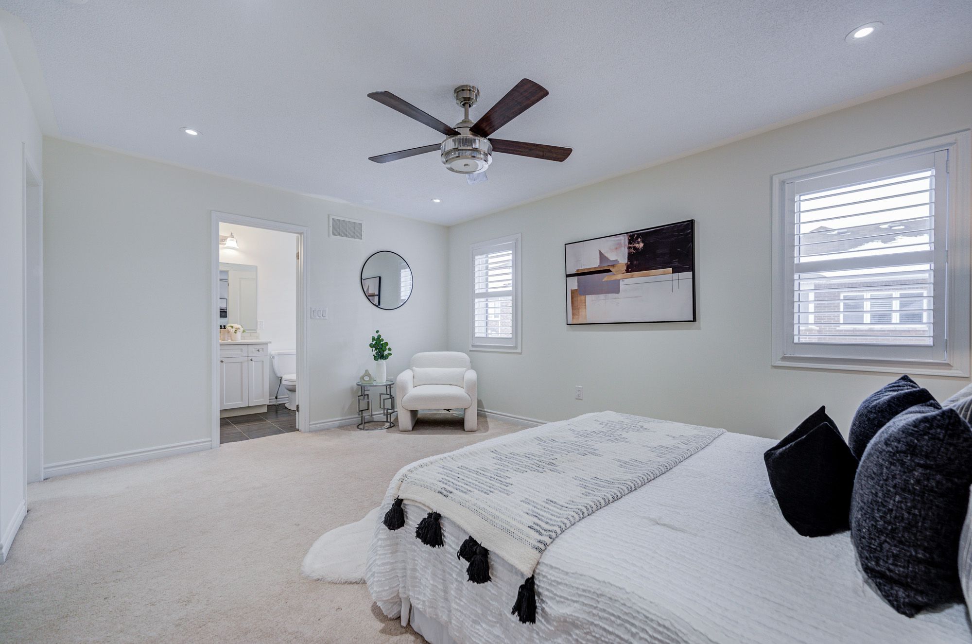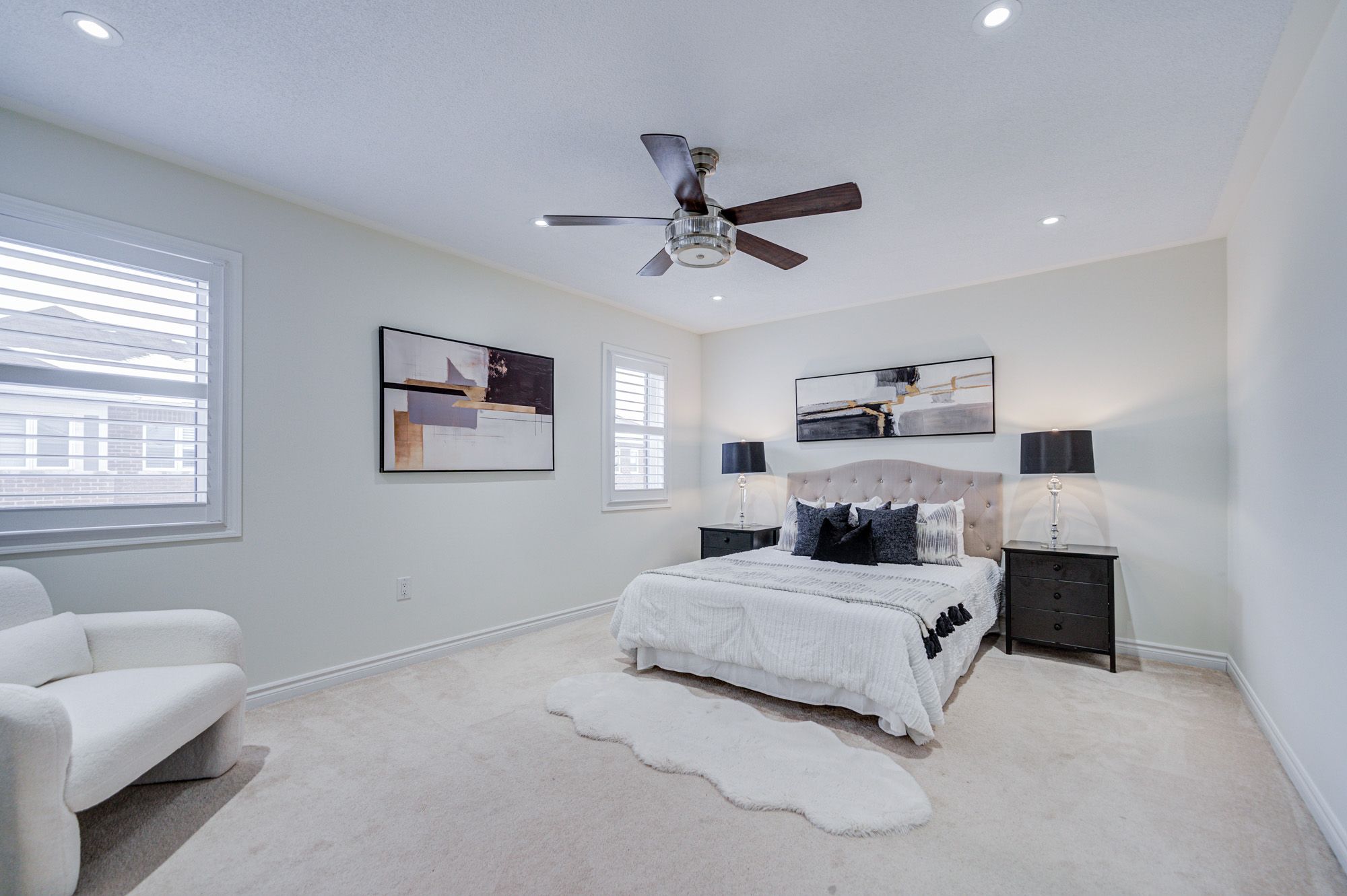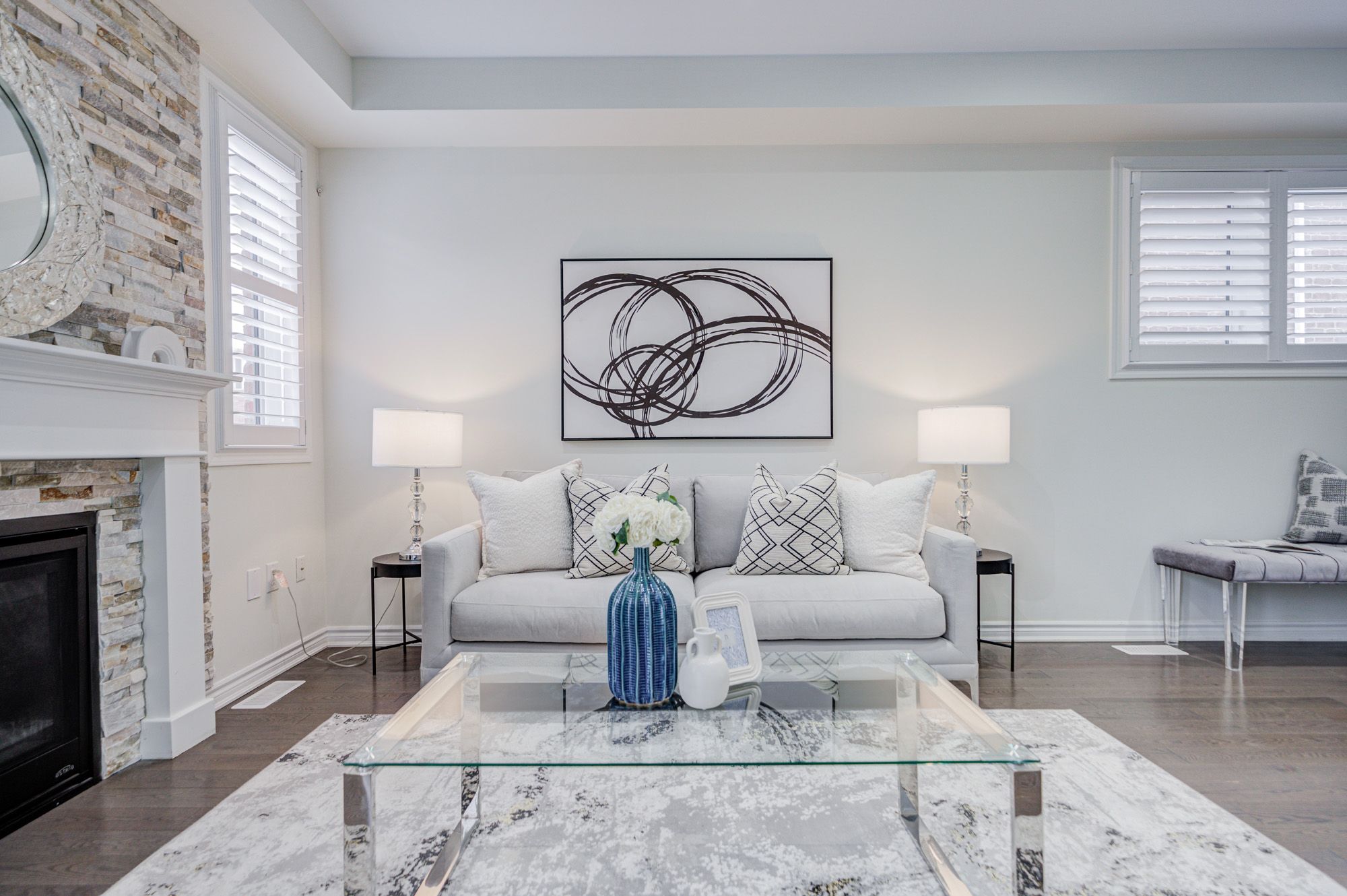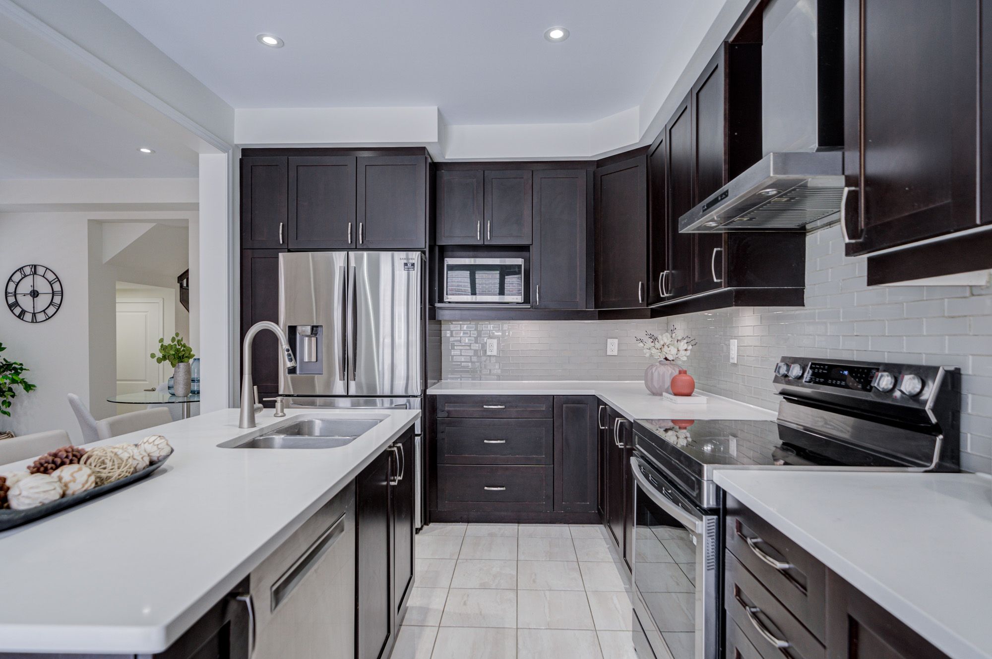 Stunning 5-year-old freehold end-unit townhome in the highly desirable Queens Common community, Whitby. A bright living space, feels like a semi-detached, loaded with $50K+ in upgrades. Spacious 3 bedrooms & 3 bathrooms, 2 bedrooms with walk-in closets, primary with 5- pc ensuite. Quartz countertops in kitchen & bathrooms, modern kitchen with stainless steel appliances, Bosch ultra-silent dishwasher, 850 CFM range hood, deep pantry cabinets, spice rack, under-mount lighting & glass cabinet bar setup. Smooth ceilings, pot lights throughout incl. porch, upgraded hardwood floors, California shutters, gas fireplace, elegant TV wall stonework. Upper-floor laundry with upgraded cabinets & linen closet. Cold room, humidifier, gas line to kitchen, garage door opener. Private driveway & built-in garage. POTL covers snow removal, garbage & common area maintenance. Steps to Whitby Health Centre, bus stop & pharmacy. Minutes to 412/401, GO Station within 10 mins, top-rated schools. New fire station coming nearby for added safety, plus upcoming banks, retail & daycare within walking distance. Book your showing Today!!