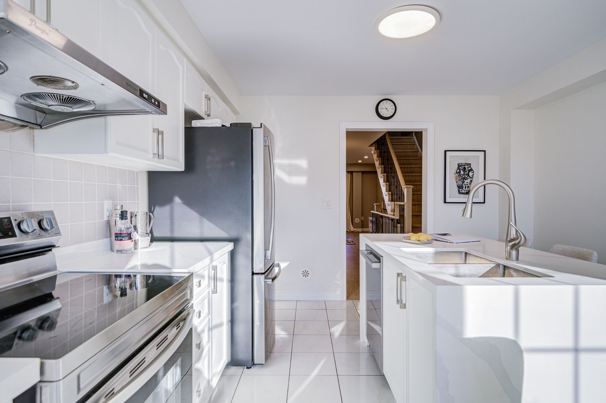 Prime Location Freehold Townhouse In The Highly Sought-After Berczy Community! Featuring 3 Bedrooms And 4 Washrooms, This Bright And Spacious Home Offers A Functional Layout Perfect For Family Living. Enjoy A Modern Eat-In Kitchen With A Spacious Dining Area, Freshly Painted Interiors (2023 & 2025). New Hardwood Flooring Throughout (2023) And New Wood Staircase. The Updated Kitchen Showcases A Brand New Countertop (2025). The Primary Bedroom Includes A 3-Piece Ensuite, A Large Closet, And A Walkout To A Private Balcony. Direct Garage Access To Basement Provides Convenience And The Potential For A Second Income Suite. Basement Offers Additional Storage Space. Walking Distance To Top-Ranked Schools (Stonebridge Ps & Pierre Elliott Trudeau Ss), Shops, Parks, And Transit. Minutes To Markville Mall, Supermarkets, Restaurants, Banks, Go Station, And More. Move In And Enjoy - This One Won't Last!