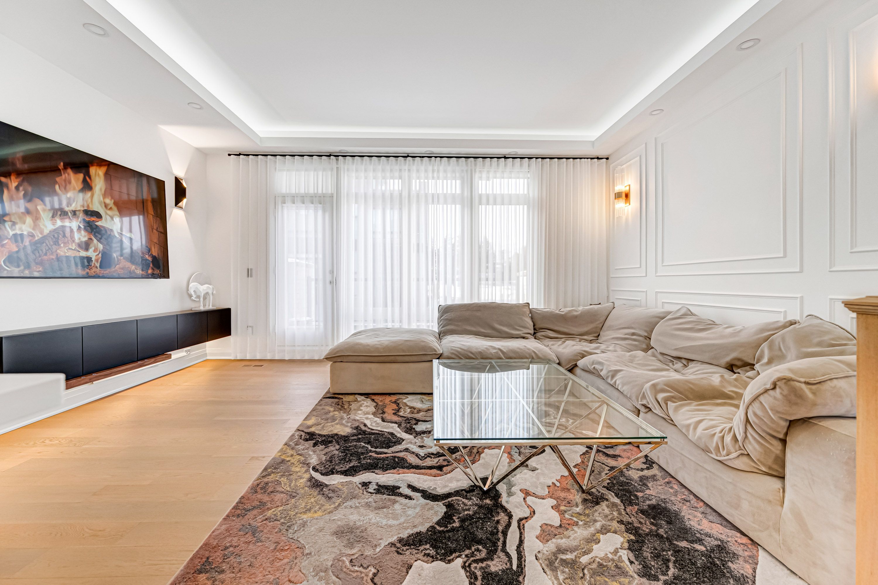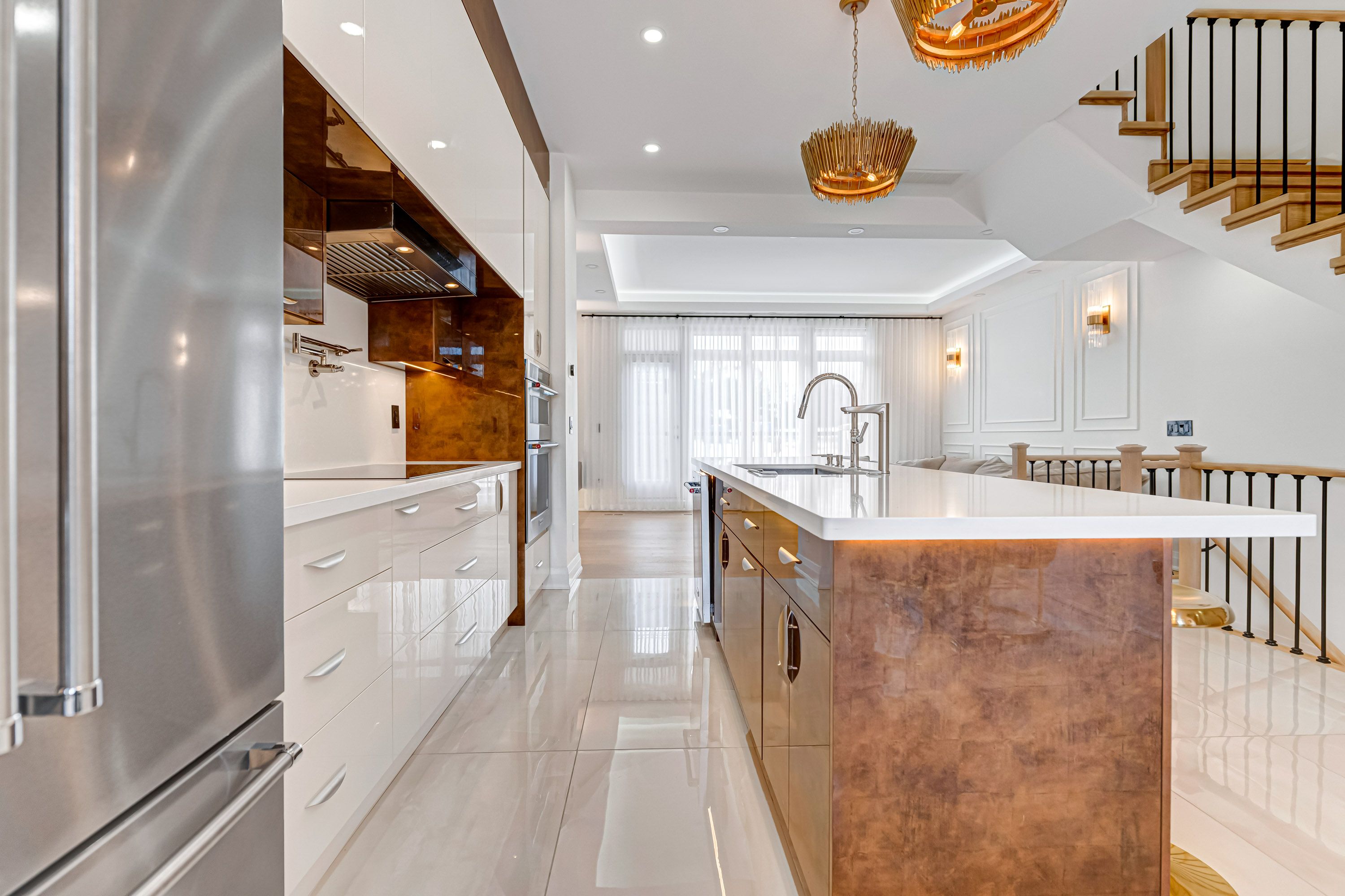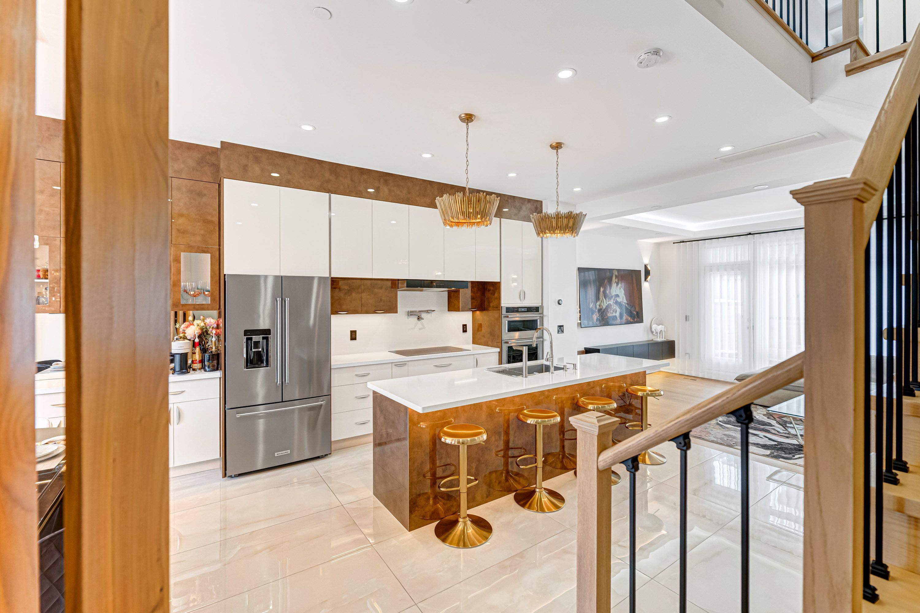 Over $$$250K upgrade! Welcome to this custom-designed, newly upgraded luxury townhouse featuring a rare double car garage.Step inside to discover elegant White Oak hardwood flooring throughout, complemented by a solid wood staircase with wrought iron spindles, smooth ceilings, and pot lights that enhance the home's bright, modern ambiance. This home offers 3 spacious bedrooms and 4 bathrooms, all upgraded with quartz countertops for a sleek, contemporary finish.The ground floor features a private home office with glass sliding doors and a fireplace, perfect for remote work or a quiet retreat.The second floor showcases an expansive open-concept living space with soaring 10-foot ceilings. The family room is highlighted by a floor-to-ceiling custom wall panel design, while the living area presents a carefully curated modern aesthetic. The fully upgraded chef's kitchen is a true showpiece, featuring luxury cabinetry in stylish modern tones, ceiling-height cabinets with display shelving and accent lighting, a designer backsplash, and an oversized quartz waterfall island that doubles as a breakfast bar. Step out from the living room onto a spacious terrace, ideal for outdoor dining, summer gatherings, or entertaining under the stars.The third floor offers a serene retreat with 9-foot ceilings, anchored by a generous primary bedroom with a custom-designed feature wall, a modern ensuite bathroom, and a built-in closet system.At the top, enjoy a spectacular rooftop terrace complete with BBQ space and a Jacuzzi, offering the ultimate outdoor living experience-perfect for hosting friends, relaxing, or enjoying stunning sunset views.This exceptional home combines thoughtful upgrades, luxury finishes, and an unbeatable location, close to top-rated Richmond Hill High School, Lake Wilcox, Highway 404, GO Train Station, Richmond Green Park, Costco, and Oak Ridges Community Centre.Don't miss this rare opportunity to own a truly exceptional townhouse.