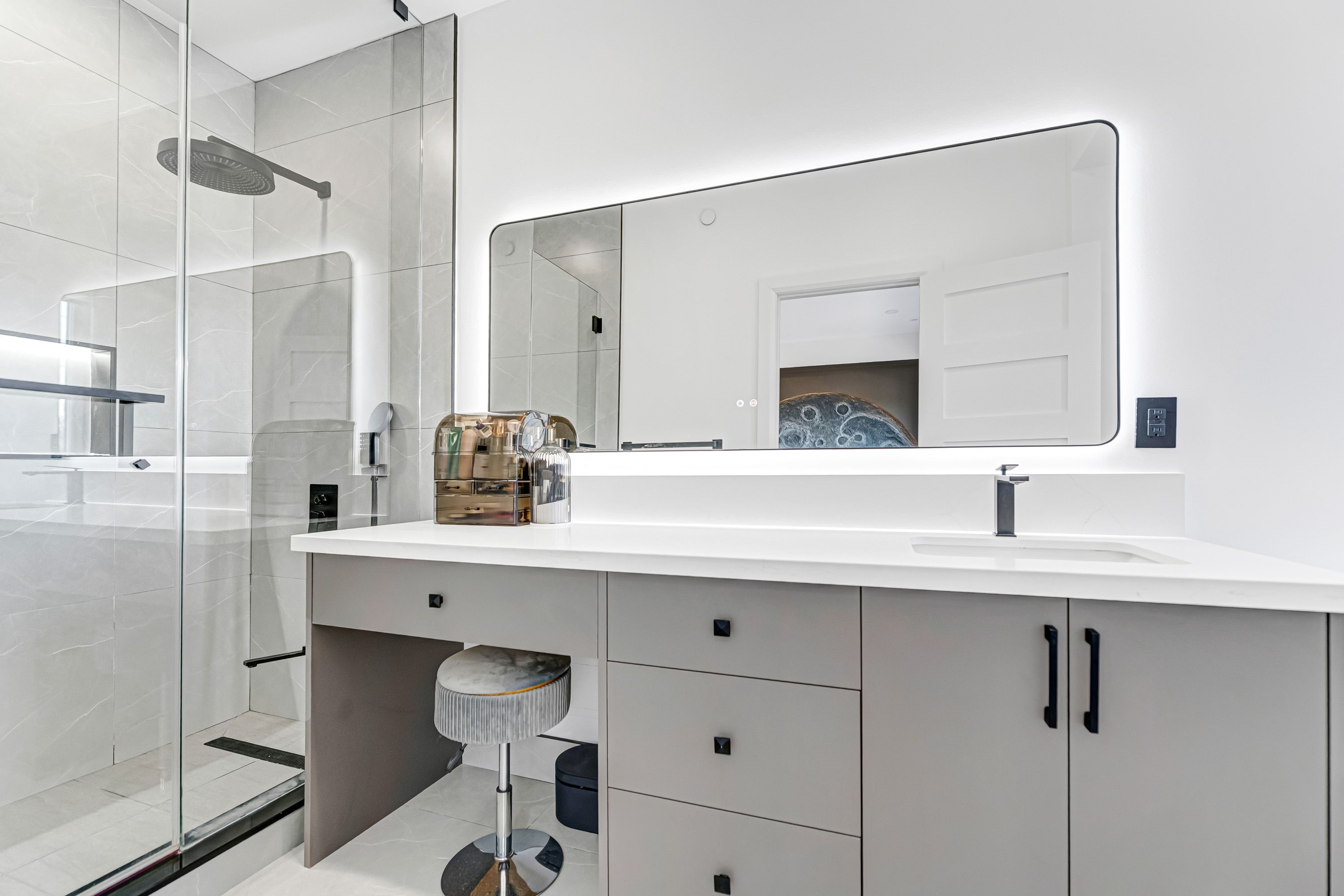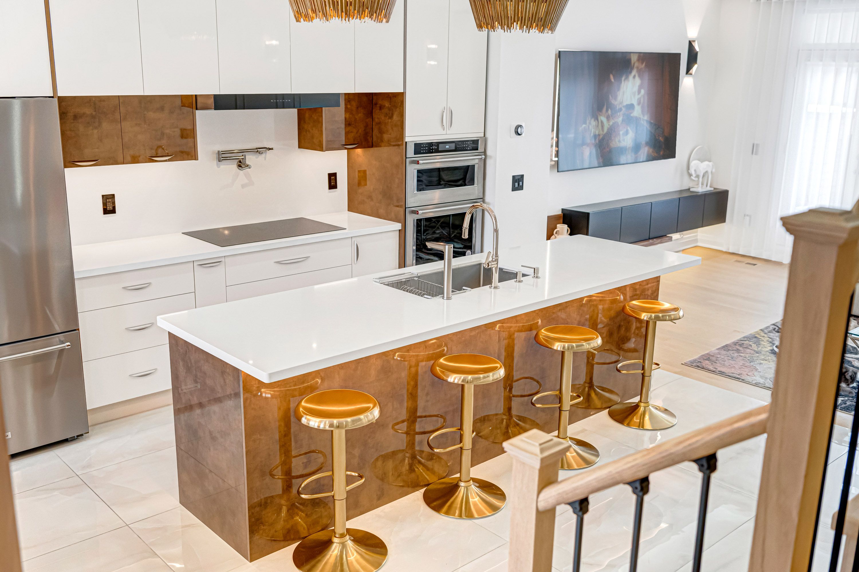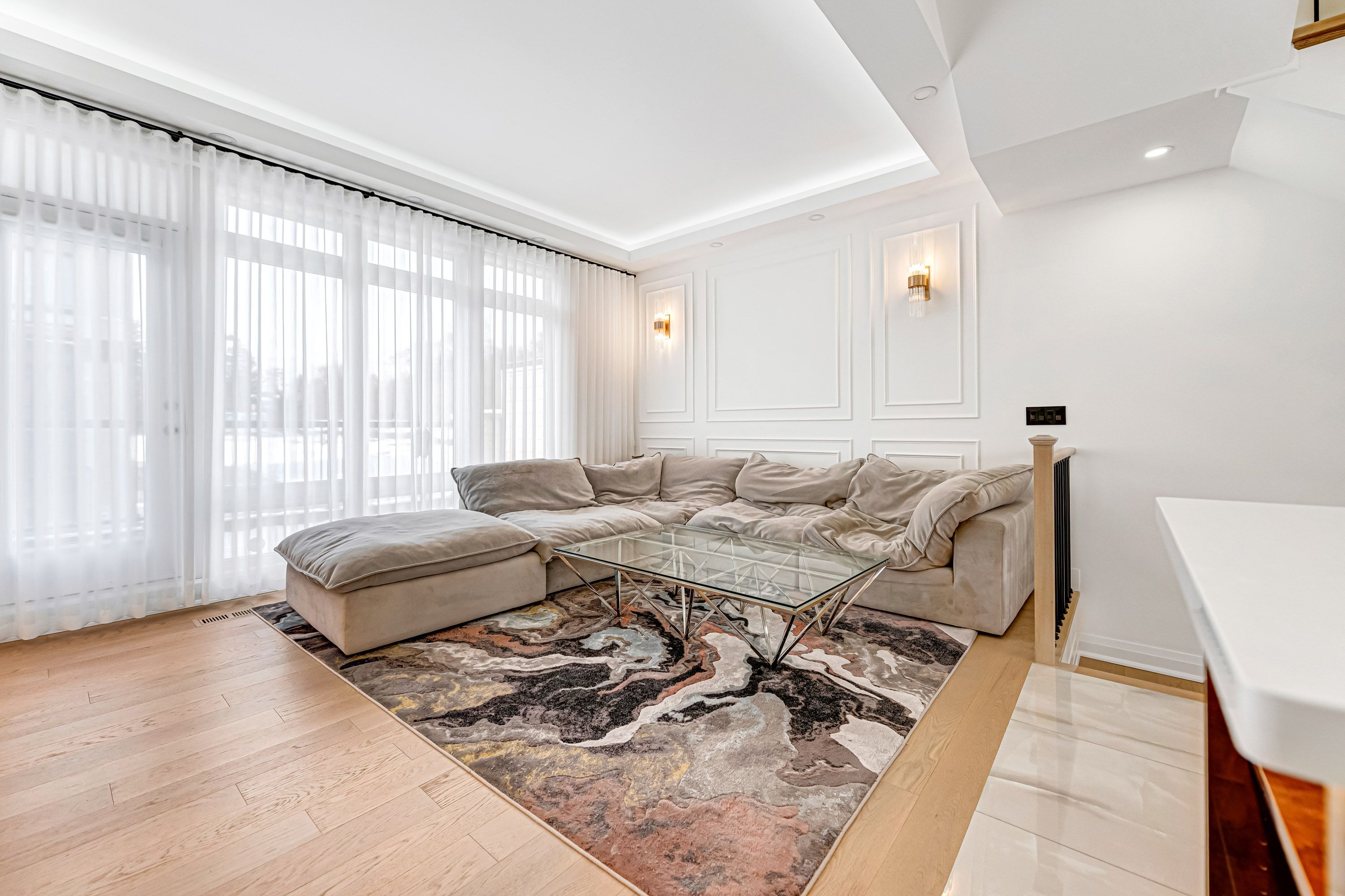 Over $$$250K upgrade! Welcome to this custom-designed, newly upgraded luxury townhouse featuring a rare double car garage.Step inside to discover elegant White Oak hardwood flooring throughout, complemented by a solid wood staircase with wrought iron spindles, smooth ceilings, and pot lights that enhance the home's bright, modern ambiance. This home offers 3 spacious bedrooms and 4 bathrooms, all upgraded with quartz countertops for a sleek, contemporary finish.The ground floor features a private home office with glass sliding doors and a fireplace, perfect for remote work or a quiet retreat.The second floor showcases an expansive open-concept living space with soaring 10-foot ceilings. The family room is highlighted by a floor-to-ceiling custom wall panel design, while the living area presents a carefully curated modern aesthetic. The fully upgraded chef's kitchen is a true showpiece, featuring luxury cabinetry in stylish modern tones, ceiling-height cabinets with display shelving and accent lighting, a designer backsplash, and an oversized quartz waterfall island that doubles as a breakfast bar. Step out from the living room onto a spacious terrace, ideal for outdoor dining, summer gatherings, or entertaining under the stars.The third floor offers a serene retreat with 9-foot ceilings, anchored by a generous primary bedroom with a custom-designed feature wall, a modern ensuite bathroom, and a built-in closet system.At the top, enjoy a spectacular rooftop terrace complete with BBQ space and a Jacuzzi, offering the ultimate outdoor living experience-perfect for hosting friends, relaxing, or enjoying stunning sunset views.This exceptional home combines thoughtful upgrades, luxury finishes, and an unbeatable location, close to top-rated Richmond Hill High School, Lake Wilcox, Highway 404, GO Train Station, Richmond Green Park, Costco, and Oak Ridges Community Centre.Don't miss this rare opportunity to own a truly exceptional townhouse.