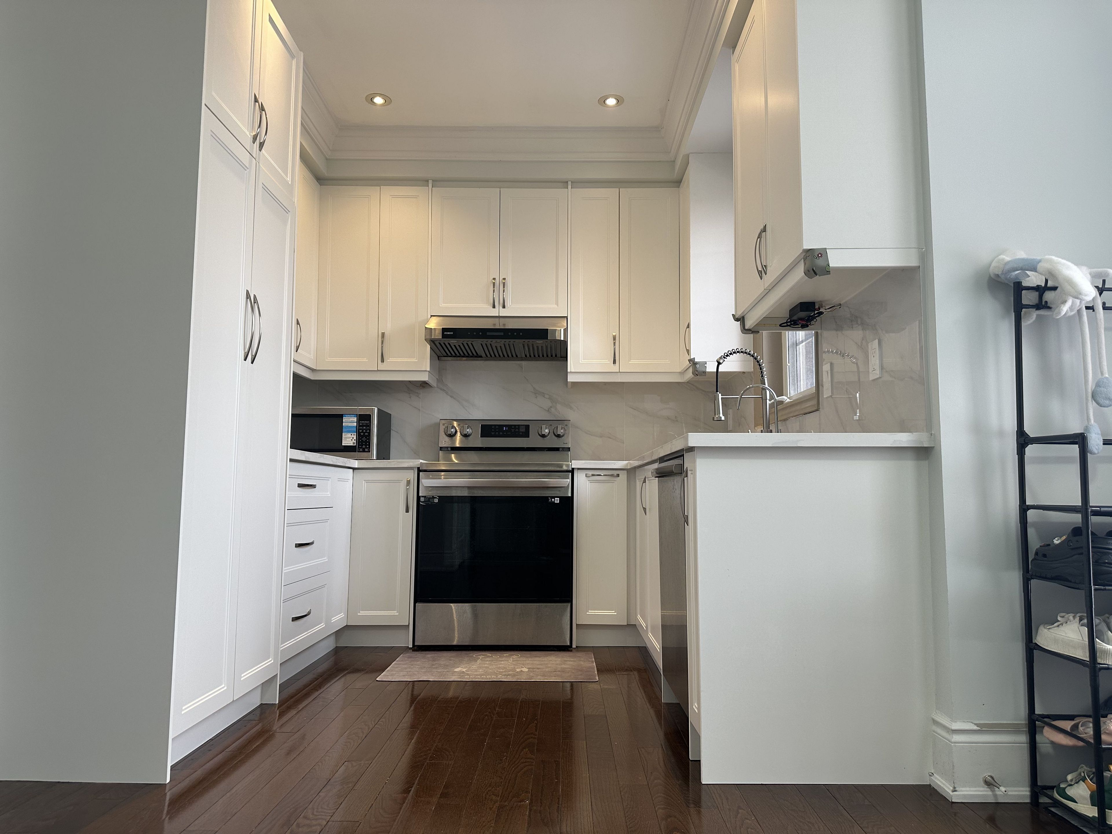 Rare layout with 4 regular bedrooms + 2 rooms on ground level.Spacious freehold townhouse offering a functional and versatile layout ideal for families.Brand new renovated kitchen (2025) featuring modern cabinetry, updated counters and backsplash.Second floor primary ensuite fully renovated (2025) providing a fresh and contemporary feel.Freshly painted throughout in 2025, bright, clean and move-in ready.Modern kitchen with tall cabinets and built-in appliances. Combination of laminate and ceramic flooring. Pot lights. Lots of windows bringing in natural light. Iron stair pickets and oak staircase. Plenty of storage space. Large laundry room.Yard with flagstone patio/walkway perfect for family enjoyment.Property features 2 separate extra rooms and a 3 pc washroom on the lower level with walk-out to ground level.