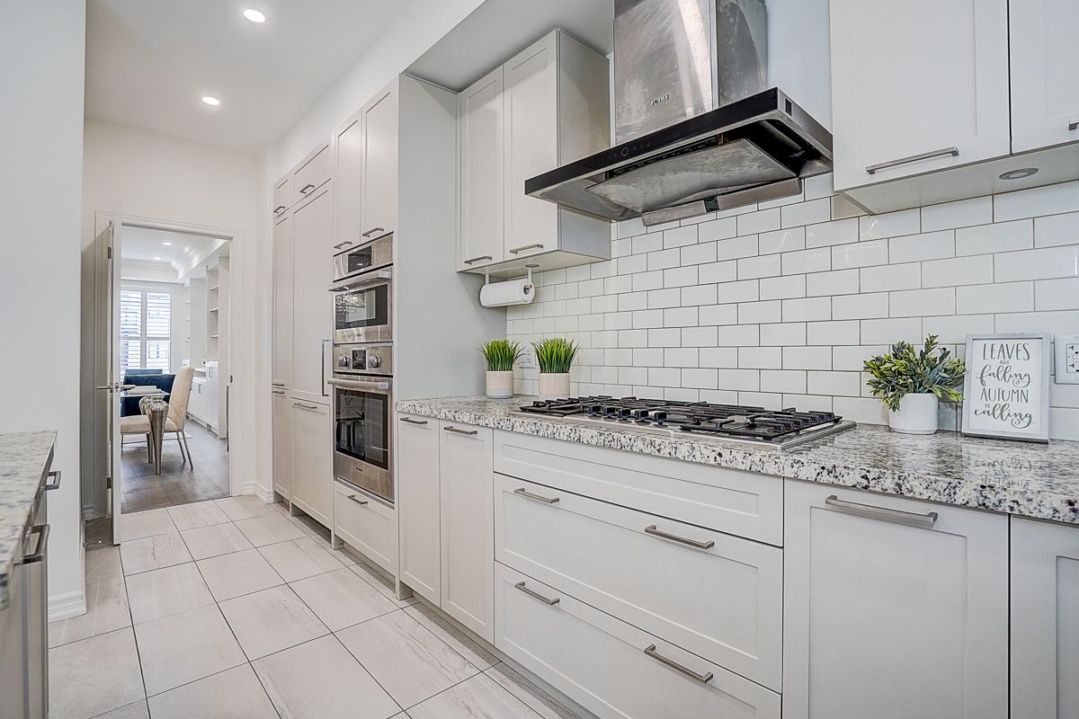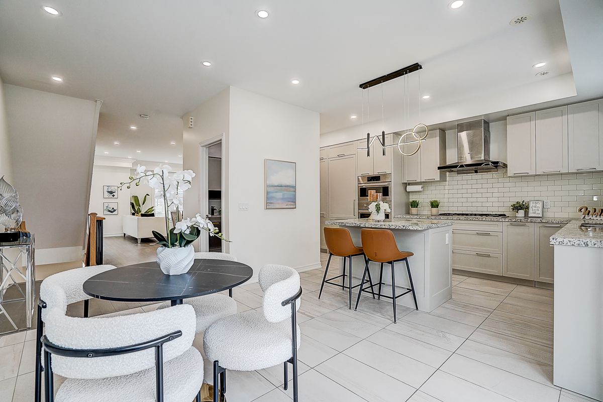 Amazing Double Car Garage W 4 Parking Spaces Luxury Freehold Th In The Heart Of Downtown Markham. Elegant living space with 9 ft ceilings throughout, skylight, upgraded wood floors, smooth ceilings Granite Kitchen Counter Top, Kitchen Island, B/I High End Bosch Appliances, Gas Cook Top,Oak Stairs W Iron Picket Handrails, overlooking a spacious breakfast area large enough to use as a formal dining room, with a walk-out to a huge private terrace equipped with a BBQ gas line, perfect for entertaining. Premium Lot Facing To The Park, Lot Of Sunshine, Finished Basement W 3Pc Bath, Big Terrace; Located in prime Unionville with unbeatable convenience-steps to Whole Foods, ICBO, Panera Bread, BMO, RBC, VIP Cineplex, top restaurants, shopping and public transit, and minutes to Hwy 404/407. Highly coveted school zone including top-ranked Unionville HS.