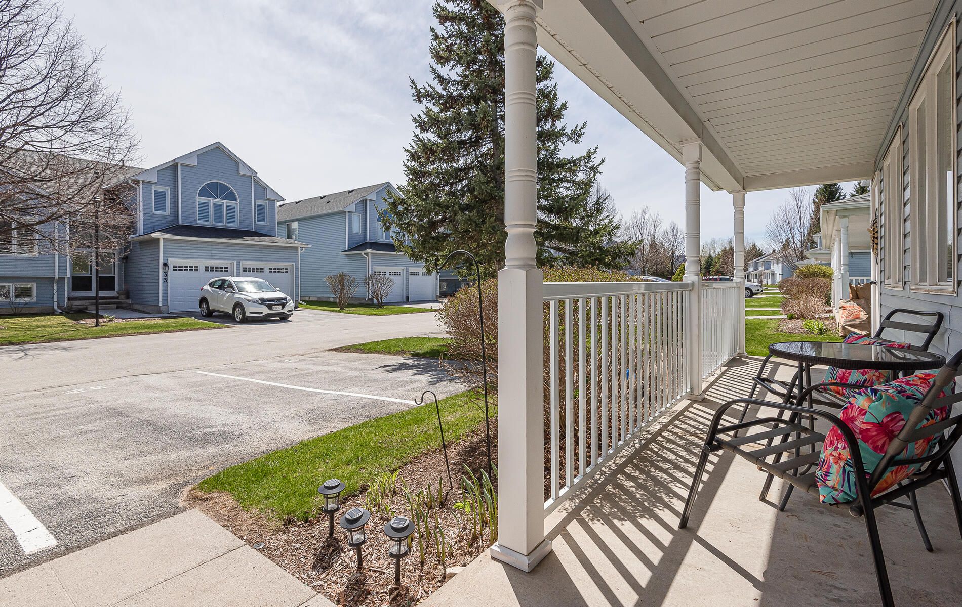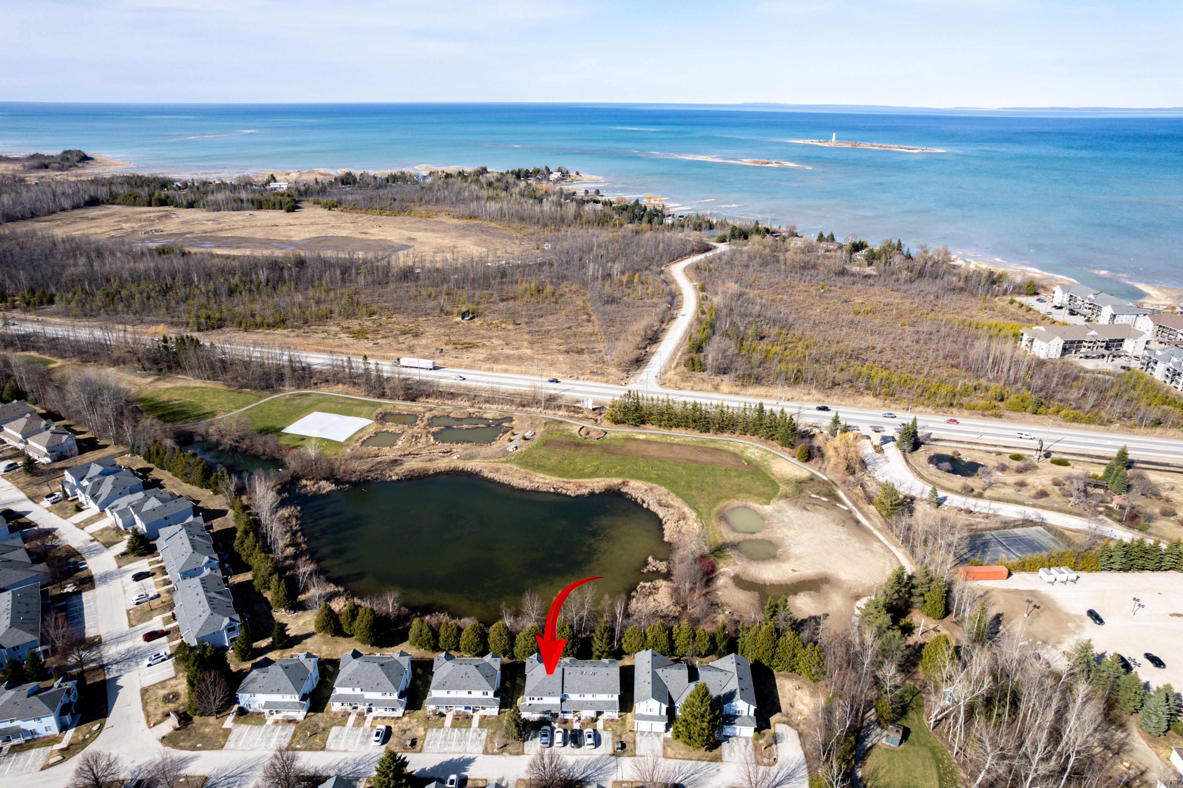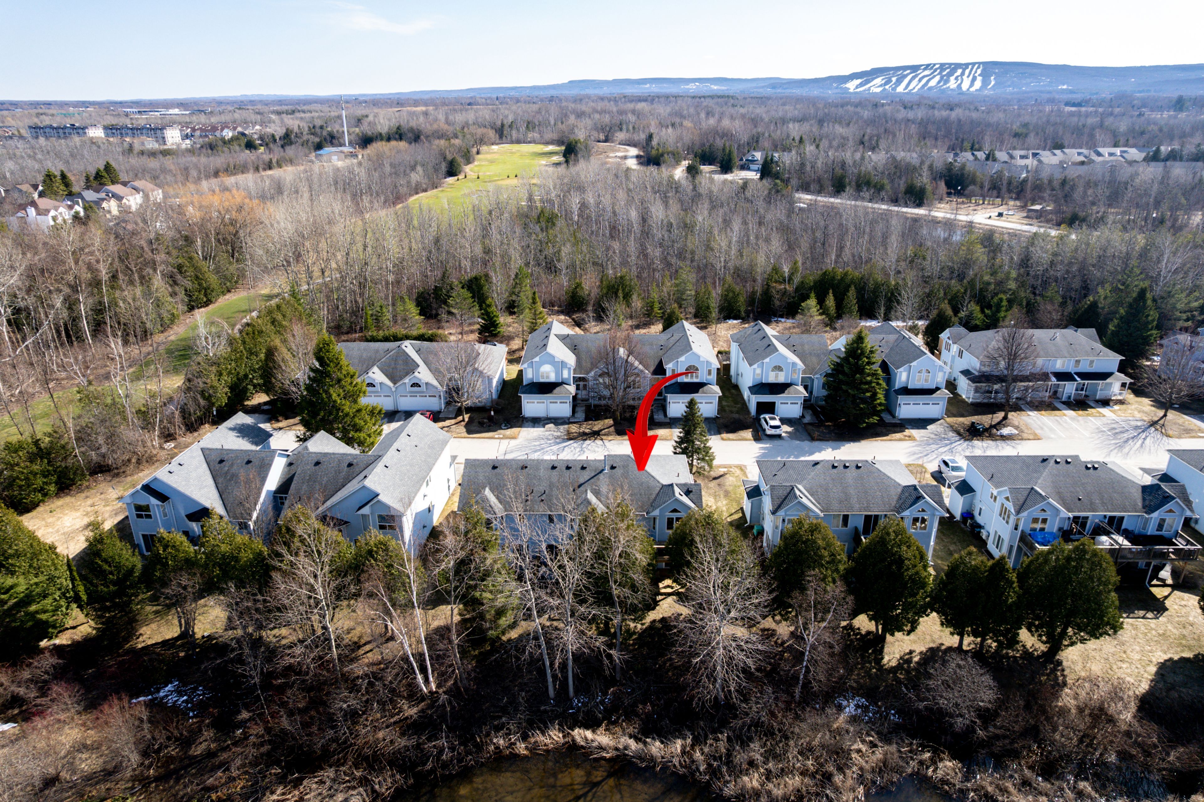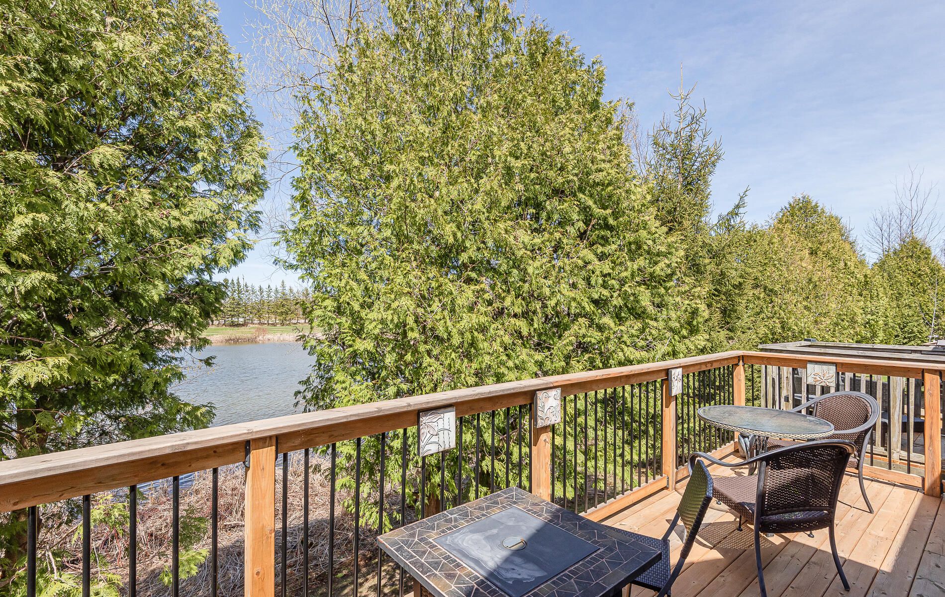 Welcome to your new home that truly stands out! This stunning, beautifully maintained 4-bdrm, 3-bath home offers the perfect balance of beauty, comfort, convenience & low-maintenance living. Thoughtfully designed for everyday living and entertaining, whether enjoyed year-round or as a weekend retreat. Enjoy breathtaking views of a tranquil pond (home to swans) & the lush fairways of Cranberry Golf Course. This 2-story residence is a peaceful retreat, featuring 3 bdrms on the main flr, incl. a master /w 3-pc ensuite & walkout to a large new deck overlooking the serene landscape. Two other bdrms & another 3-pc bath complete the main flr. The 4th bdrm & a 4-pc bath are on the upper lvl. All bdrms offer large closets for ample storage. Upstairs you'll find a bright, open floor plan /w an updated modern kitchen boasting new floor-to-ceiling cabinetry, SS appliances & quartz stone counters that provide both style & functionality for cooking & entertaining. The spacious living room features soaring cathedral ceilings, expansive windows filling the space /w natural light, & a cozy fireplace for winter evenings. Step outside to the 2-tier deck (2021), ideal for outdoor dining, relaxation, or enjoying the stunning surroundings. Patio doors replaced in 2020, updated baths, meticulously maintained & move-in ready. As part of a well-kept community, enjoy access to an outdoor pool & landscaped common areas, plus exterior maintenance, snow removal & plenty of parking provided by the condo corp. End-unit of 3, offering added space & privacy! Located in one of Collingwood's most sought-after areas, near golf, Niagara Escarpment hiking, skiing at Blue Mountain, & downtown Collingwood's shops, restaurants & waterfront. Georgian Bay offers sailing, kayaking, paddle boarding & water sports, as well as biking & hiking trails to explore. Whether adventure or relaxation, this home offers it all. Don't miss this move-in ready townhouse condo; the perfect place to call home!