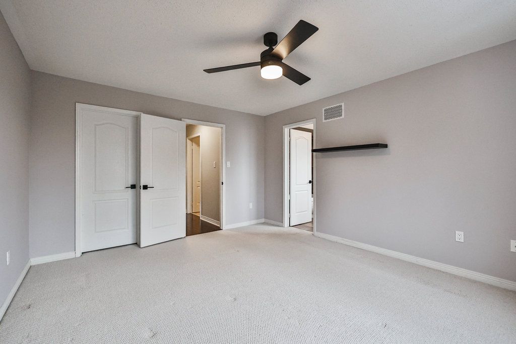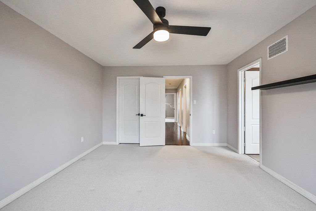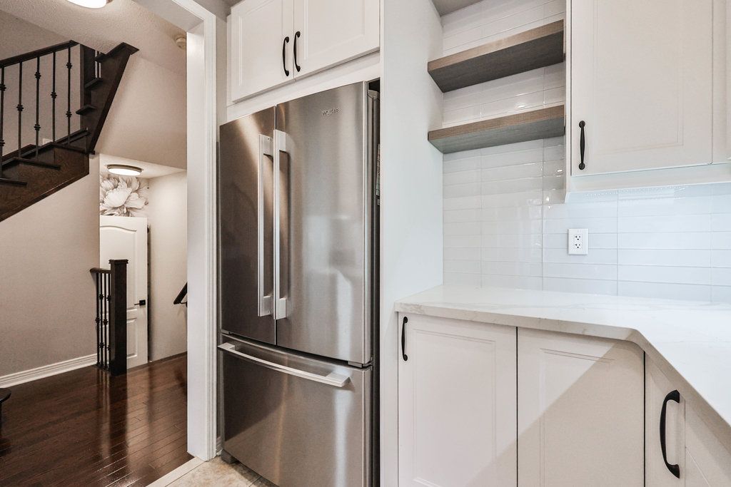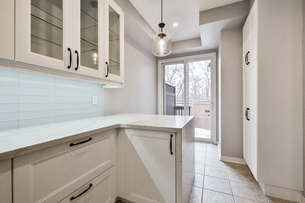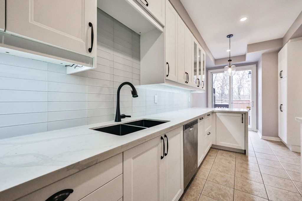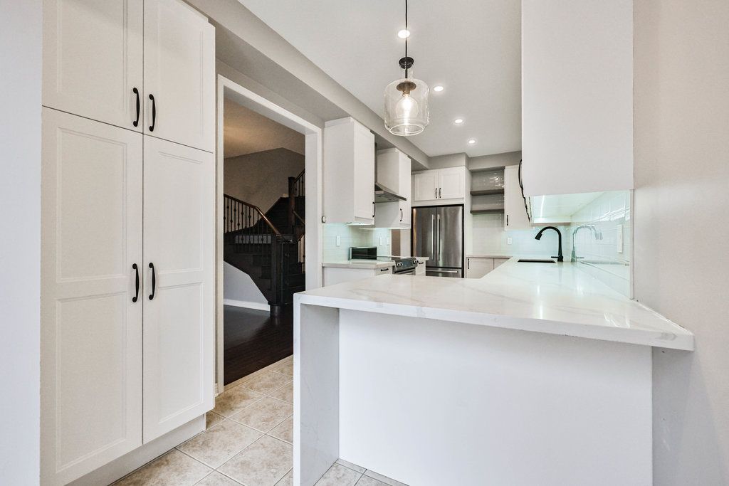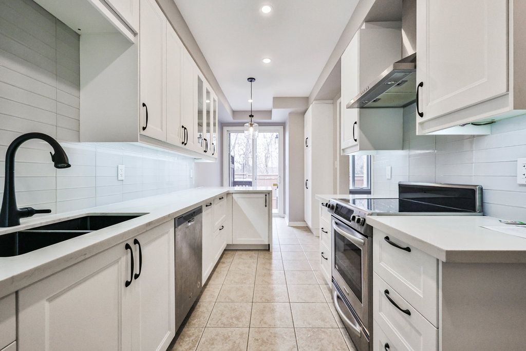 Welcome home. Upgraded executive townhome located in the prestigious Millcroft neighbourhood. The spacious open-concept main floor features a recently renovated kitchen, dining, and living area with a gas fireplace and walkout sliding door to a private ravine backyard. The bright kitchen offers white cabinetry, quartz countertops, and stainless steel appliances. A convenient main-floor powder room and interior access to the garage add everyday ease. The upper level boasts a generous primary bedroom with a recently updated ensuite and walk-in closet, two additional spacious bedrooms, and an upgraded 4-piece bath. The fully finished basement includes a large rec room with oversized window, a 3-piece bath, and ample storage. Tenant responsible for all utilities & hot water heater rental. No pets preferred.
