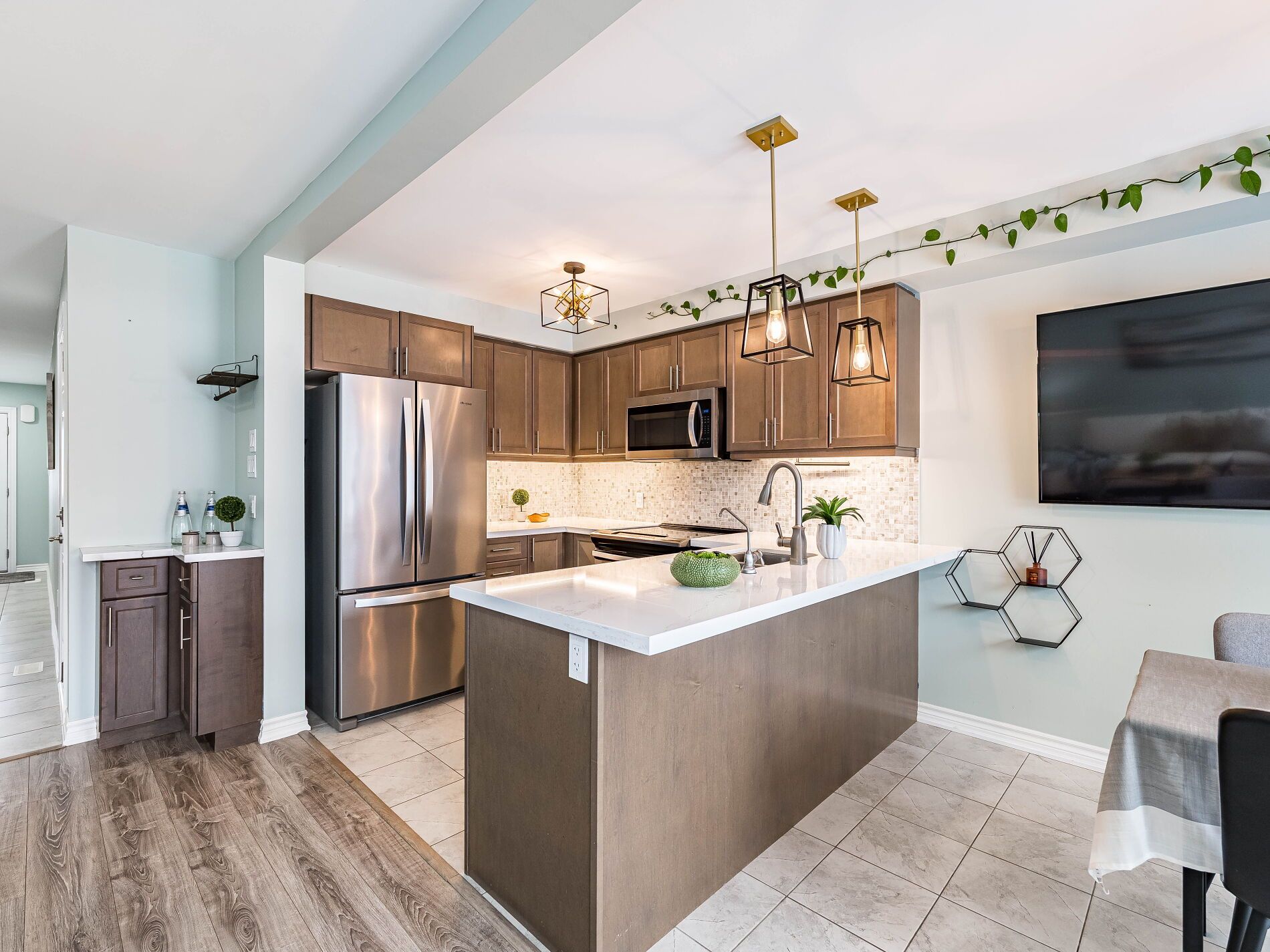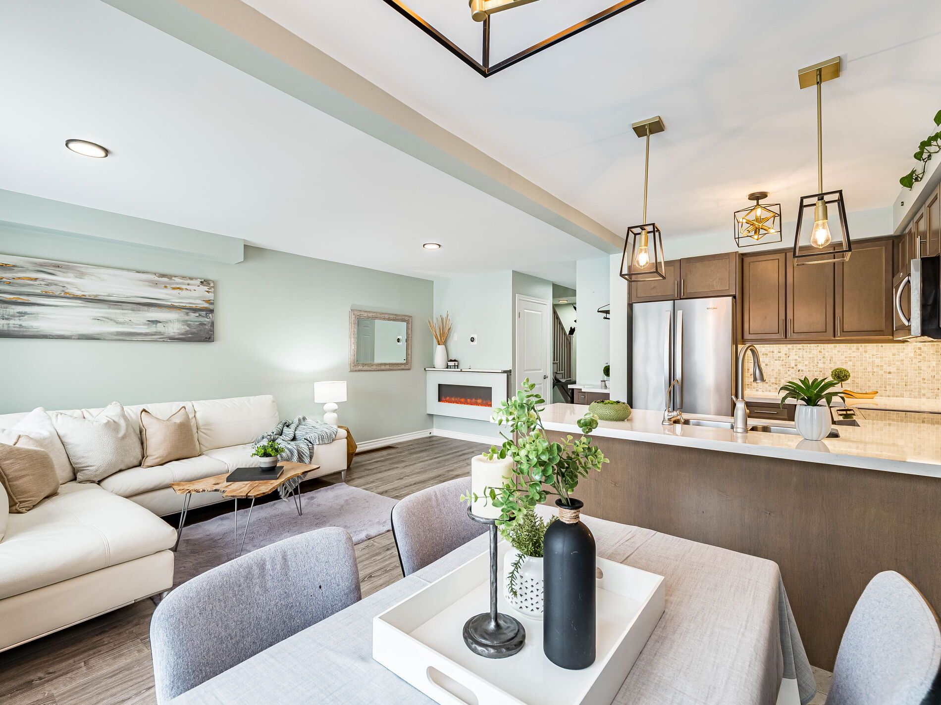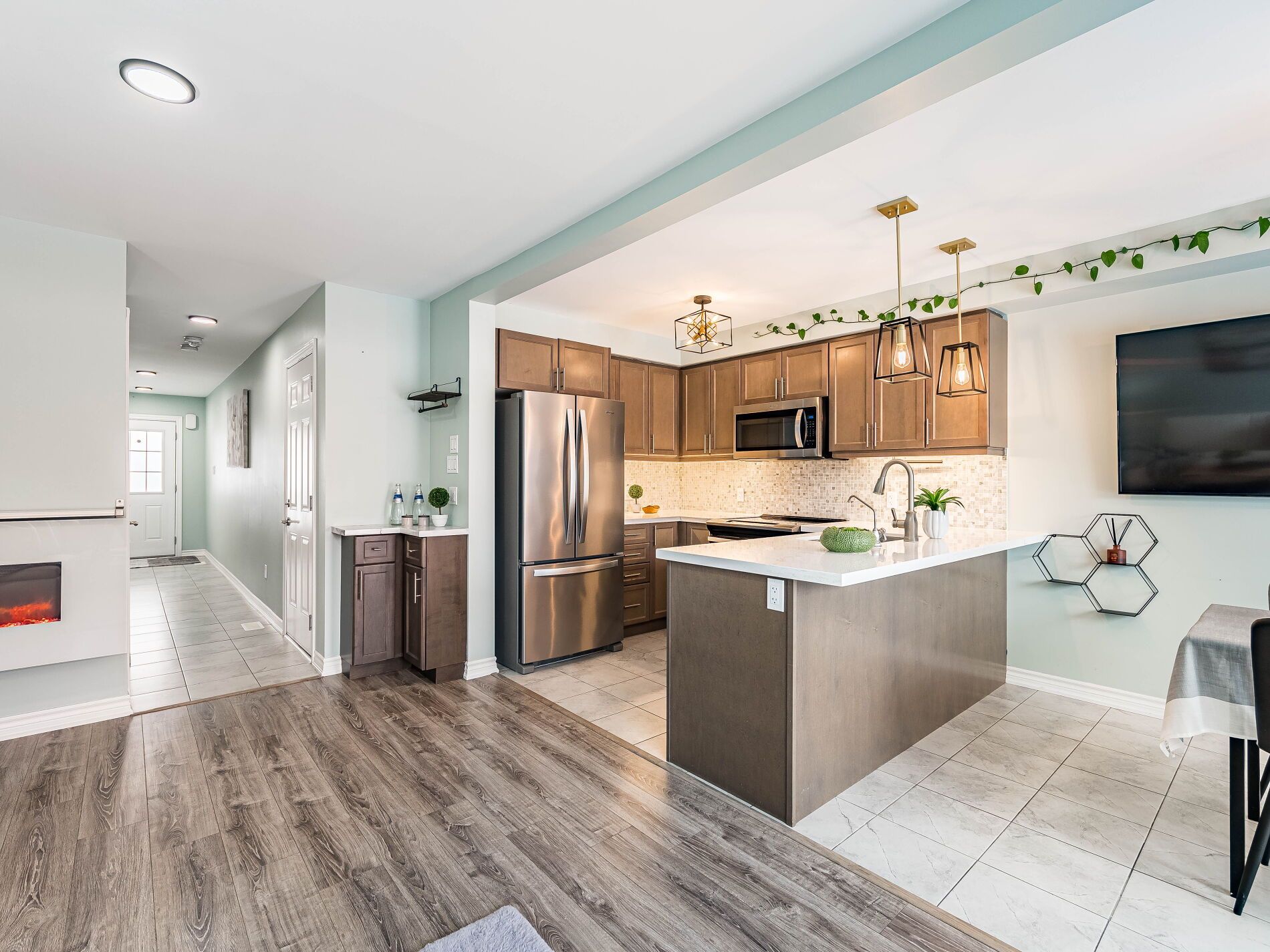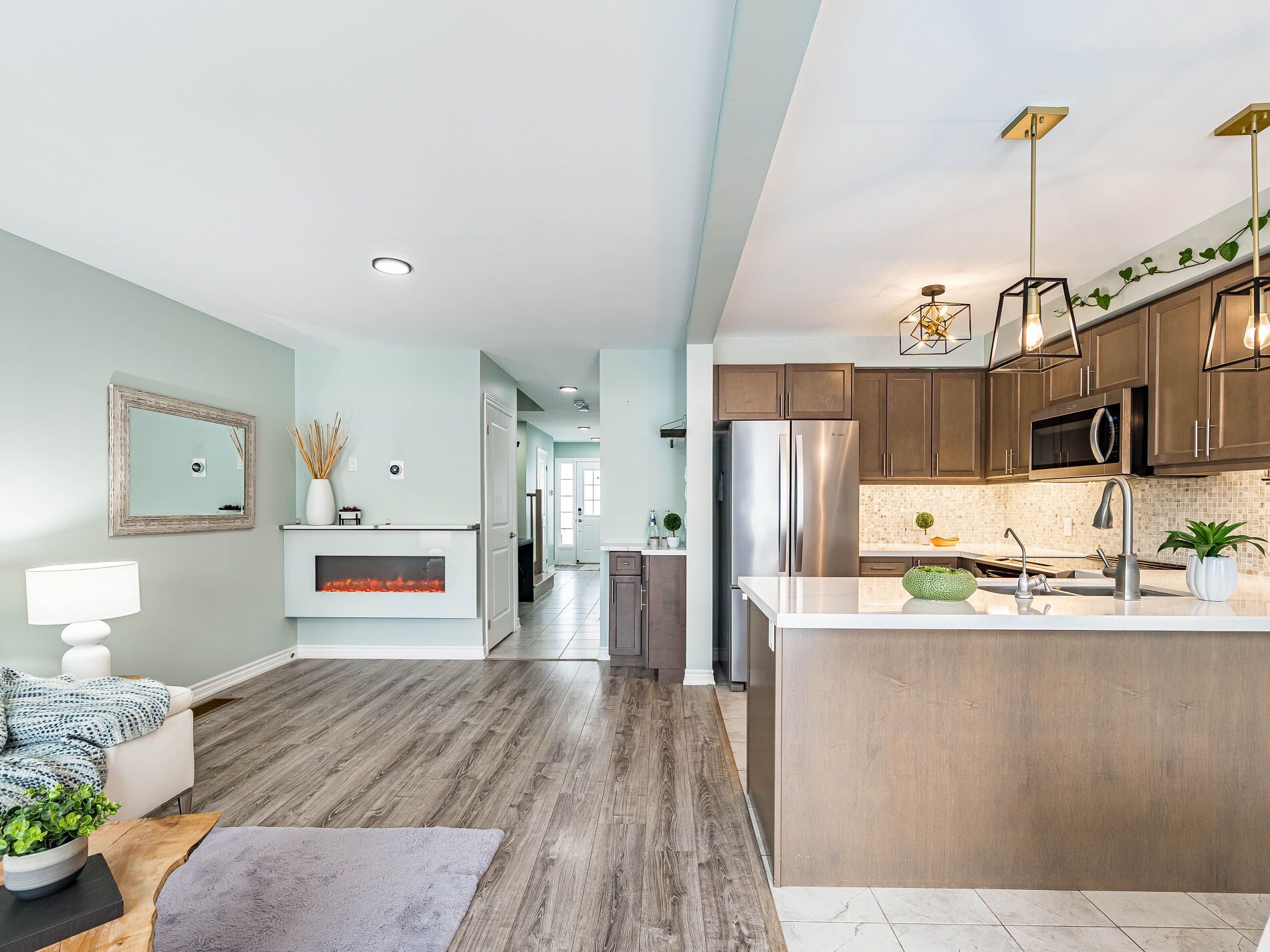 Welcome to this beautifully maintained freehold townhouse in the heart of Orangeville, where modern style meets functional family living in an unbeatable location. With no homes behind, enjoy rare privacy and peaceful backyard views. This bright, open-concept home offers 3 bedrooms and 3 bathrooms designed for comfortable everyday living and effortless entertaining. The main floor features updated light fixtures, a cozy electric fireplace, and a charming, dedicated coffee bar perfect for busy mornings or hosting friends. The stylish kitchen is beautifully appointed with quartz countertops, a sleek backsplash, and stainless-steel appliances. Upstairs, the spacious king-sized primary retreat includes a walk-in closet and a private 3-piece ensuite with a walk-in shower. Two additional generously sized bedrooms and a full bath provide ample space for family, guests, or a home office. Additional highlights include a solid wood staircase, convenient main-floor powder room, freshly painted interior, HRV system, rough-in for central vacuum, and a single-car garage with door opener. The unfinished basement with a bathroom rough-in offers exciting potential to create the space you've always envisioned. Rental hot water tank. Step outside to a low-maintenance, manicured backyard with no rear neighbours ideal for relaxing evenings, entertaining, or safe outdoor play. Located just minutes from the shops, restaurants, cafés, and year-round events of historic downtown Broadway, as well as the trails and natural beauty of Island Lake Conservation Area, this move-in-ready home perfectly balances small-town charm with modern convenience. An exceptional opportunity for first-time buyers, growing families, or investors looking to be part of one of Orangeville's most welcoming communities.