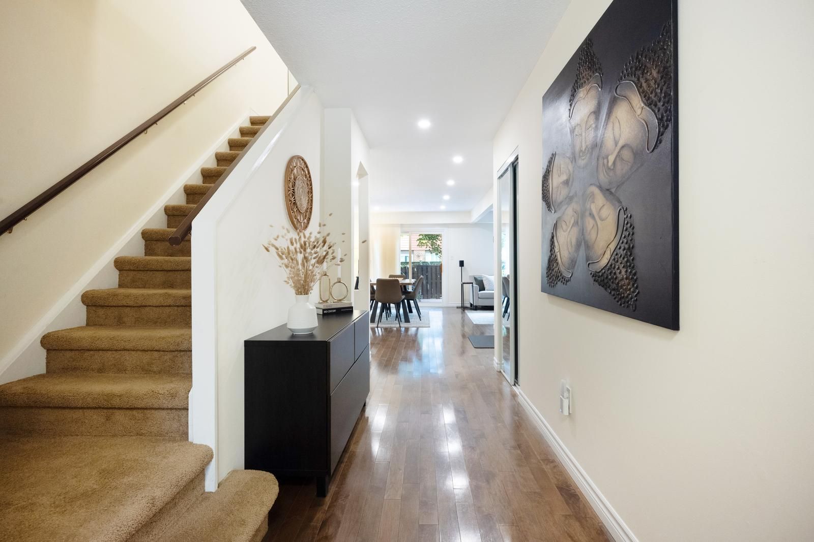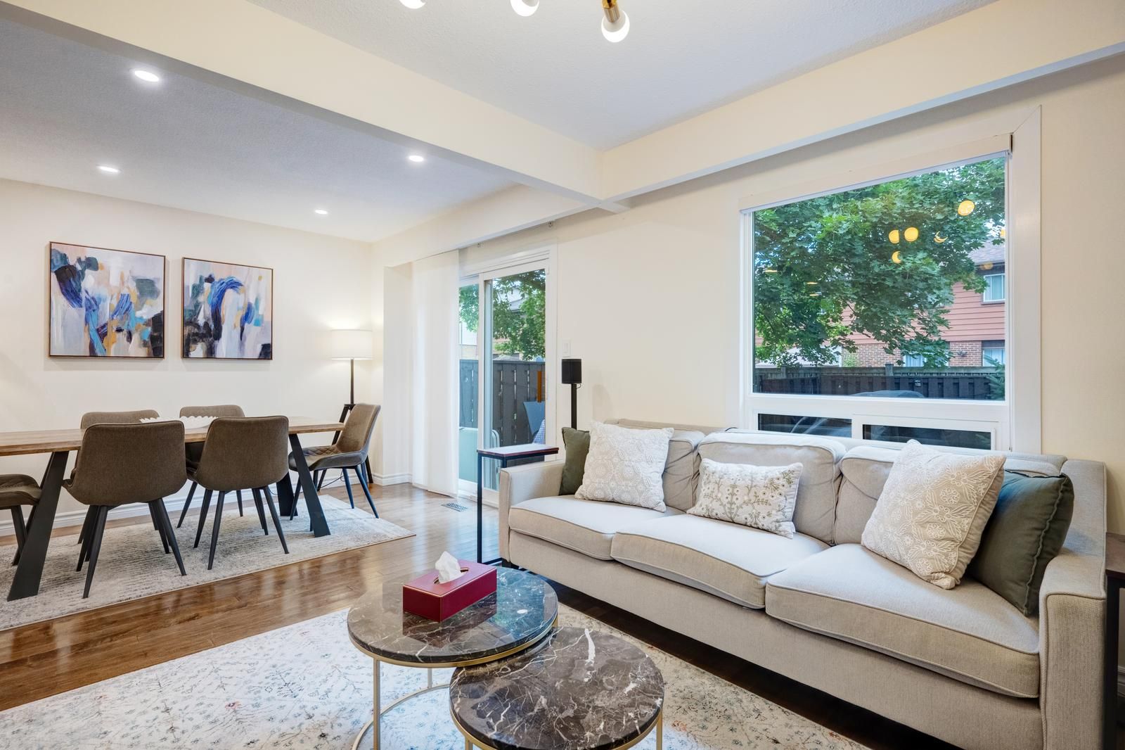 Welcome home! With over 1,500 sqft of living space, this beautiful 4 bedroom, 3 bathroom family friendly home is situated in the mature and desired Dorset Park neighbourhood. The main floor offers new vinyl flooring(2024), newly updated 2 pc bathroom, generously sized living room, dining room and kitchen with ample amounts of storage. Access to deck to a privately fenced backyard with natural gas hook up. On the second floor you will find 4 full-sized bedrooms with the primary bedroom offering semi-ensuite privilege. The newly renovated basement(2024) comes with a large recreation room, storage/work room/5th bedroom and laundry. In close proximity to local parks, schools, public transit, shopping, and highways - this home is in a great family community . Furnace (2024), Roof (2021), Bedroom Windows(2024),Main Floor& Basement Vinyl Flooring & Pot Lights(2024), Updated 2pc Bathroom(2024)