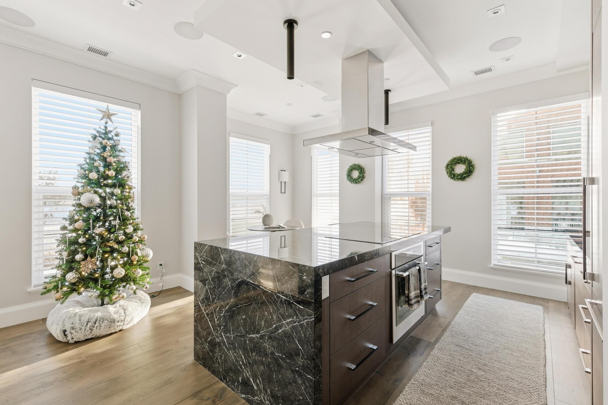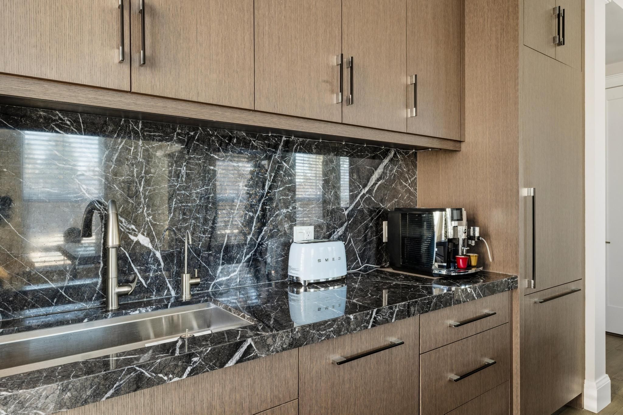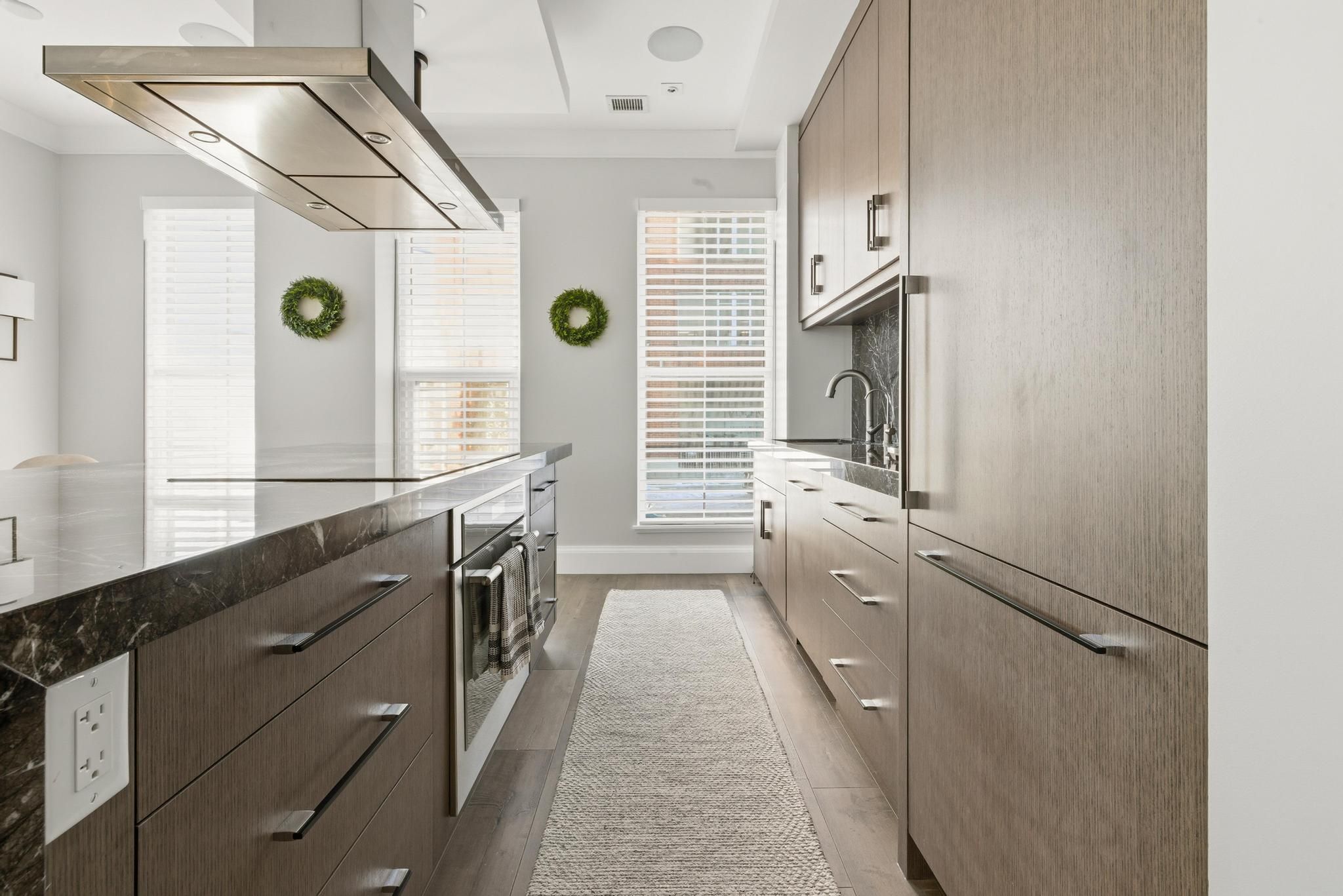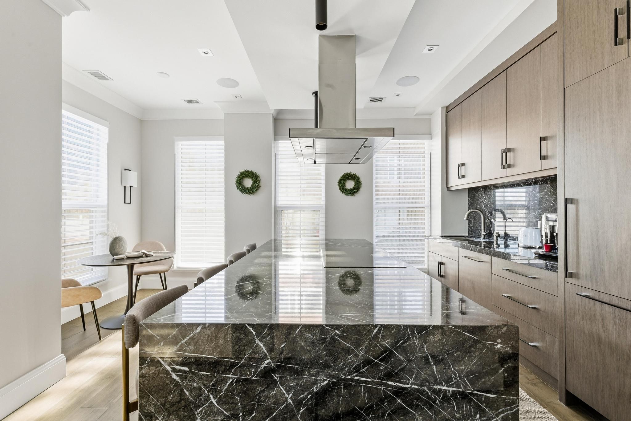 This one-of-a-kind executive three level townhome is an extraordinary offering in the heart of Uptown Waterloo, crafted for those who expect an elevated standard of living. Every detail has been curated with intention, delivering three bedrooms, five bathrooms, and a level of refinement that reflects true luxury. The gourmet kitchen stands as a statement piece, featuring premium Thermador appliances, a Wolf commercial rangehood, a sculptural marble waterfall island, and a full marble backsplash that together create an atmosphere of exceptional sophistication. Wide plank hardwood flooring, heated floors throughout all tiled areas and bathrooms, and expansive floor to ceiling windows shape the interior with warmth, natural light, and architectural elegance. The private top floor retreat offers a sanctuary of calm with a serene bedroom suite, spa inspired finishes, generous proportions, and an enhanced sense of privacy. Each additional bedroom is complete with its own ensuite, ensuring an uncompromised experience for family and guests. Everyday living is enriched by a private in suite elevator, in suite laundry, extensive storage, and a beautifully finished lower-level ideal for additional living, wellness, or an elevated work from home space. Residents enjoy exclusive access to exceptional amenities including full concierge service, a premium fitness centre, refined guest suites, a putting green, curated outdoor barbecue terraces, and an elegant party room designed for sophisticated gatherings. Three dedicated underground parking spaces and two storage lockers provide a rare level of convenience in an urban setting. Perfectly positioned in Uptown Waterloo, this residence offers immediate access to fine dining, boutique shopping, cafes, wellness studios, green spaces, live entertainment, transit, and the iconic Vincenzo's. A remarkable opportunity to experience luxury urban living where design, craftsmanship, and lifestyle converge at the highest level.