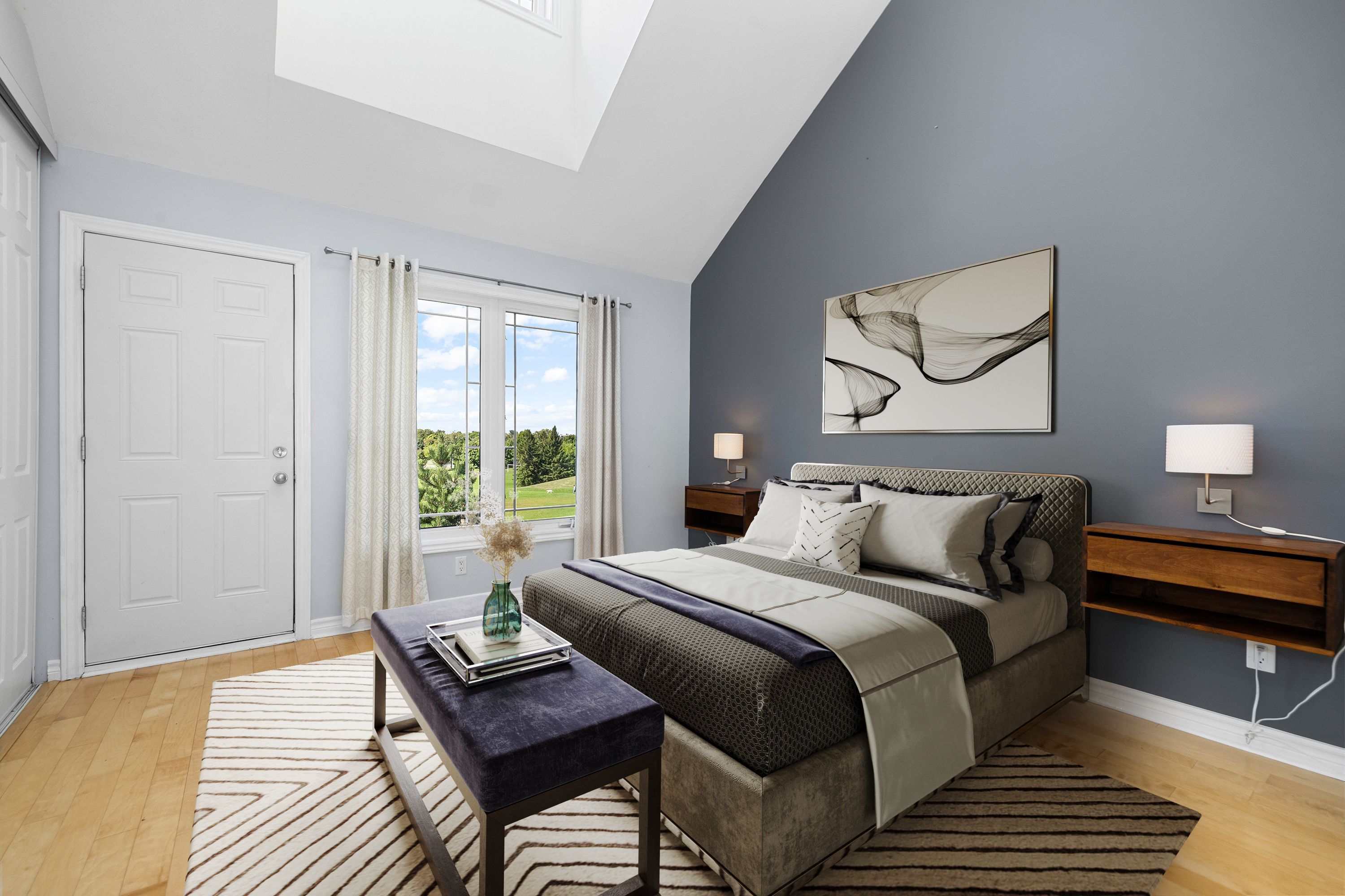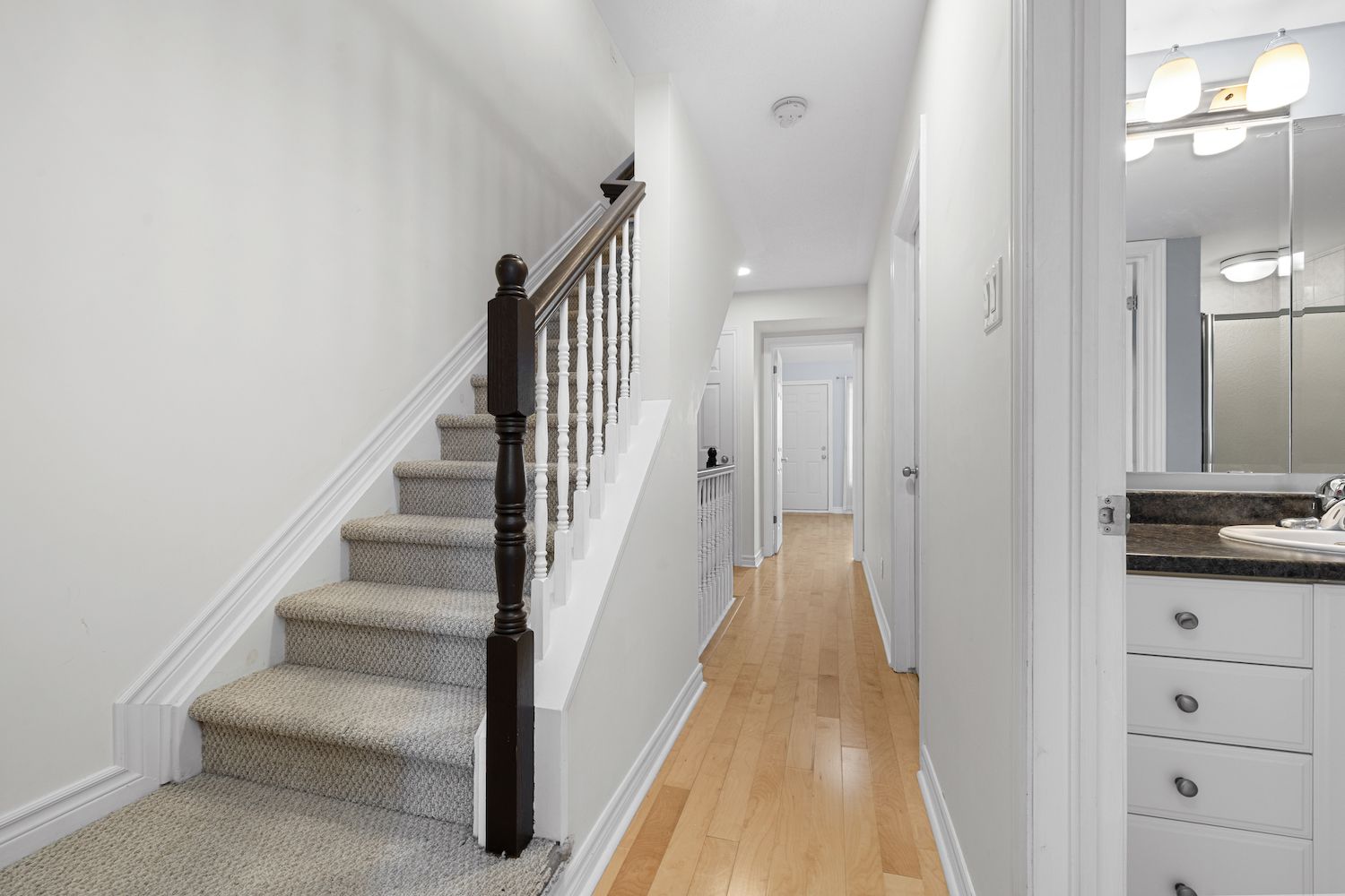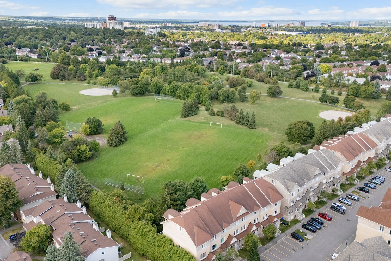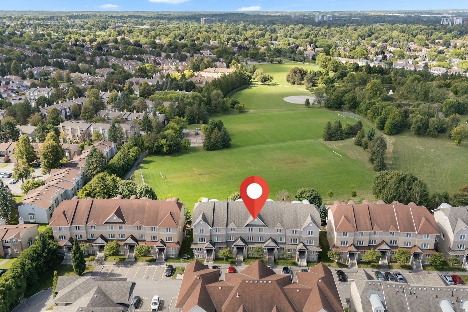 Welcome to 239 Paseo Private, a spacious three-level condominium townhome conveniently located in Centrepointe, Nepean. Offering nearly 1,400 sq. ft. of living space, this home combines functionality with comfort in a premium location. The open-concept main level features a generous living and dining area, a versatile eat-in kitchen with patio doors to the balcony, plus a powder room. Upstairs, the primary bedroom boasts vaulted ceilings, a wall of closets, its own private balcony, and a full ensuite bath. The second bedroom enjoys cheater-ensuite access to a second full bathroom. This level also includes a storage room plus laundry/utility space. The top-level loft provides many possibilities...perfect as a home office, media room, or even a third bedroom. All three levels feature hardwood flooring. Main balcony (15'1" x 7'2") off kitchen, plus balcony off the primary bedroom (7'2" x 5'9") with gorgeous views overlooking Centrepointe Park with 36 acres of parkland. Enjoy nightly sunsets over the park and plenty of sunlight all day long. Parking spot #16 right in front of unit with lots of visitors' parking nearby. Furnace 2008; A/C 2024; washer and dryer 2024. All this, just steps from parks, shops at College Square, Ben Franklin Place with a skating rink in winter, the Ottawa Public Library, Meridian Theatre, and public transit. Current Status Certificate available upon request. Don't miss this exceptional opportunity in Centrepointe! Some photos virtually staged.
