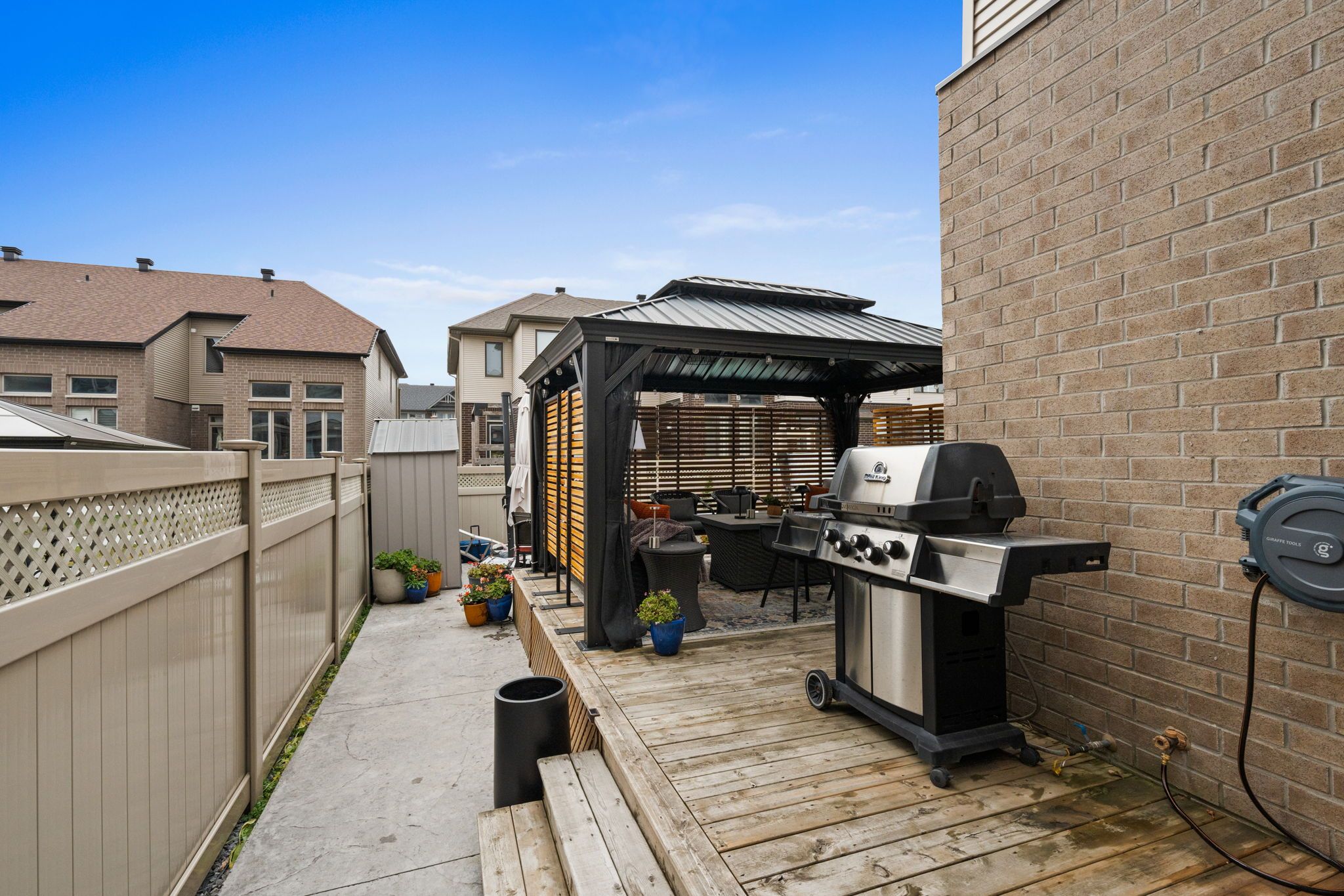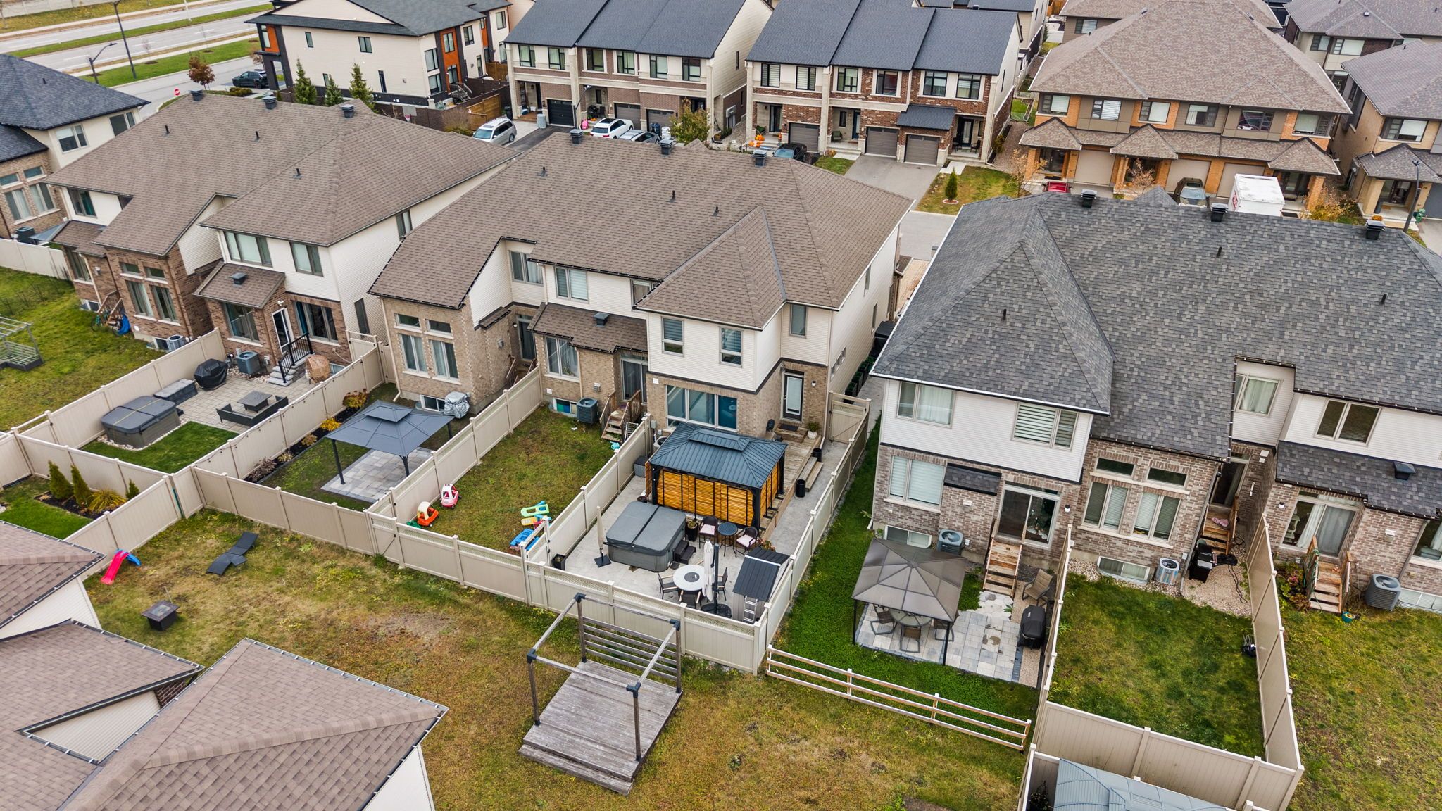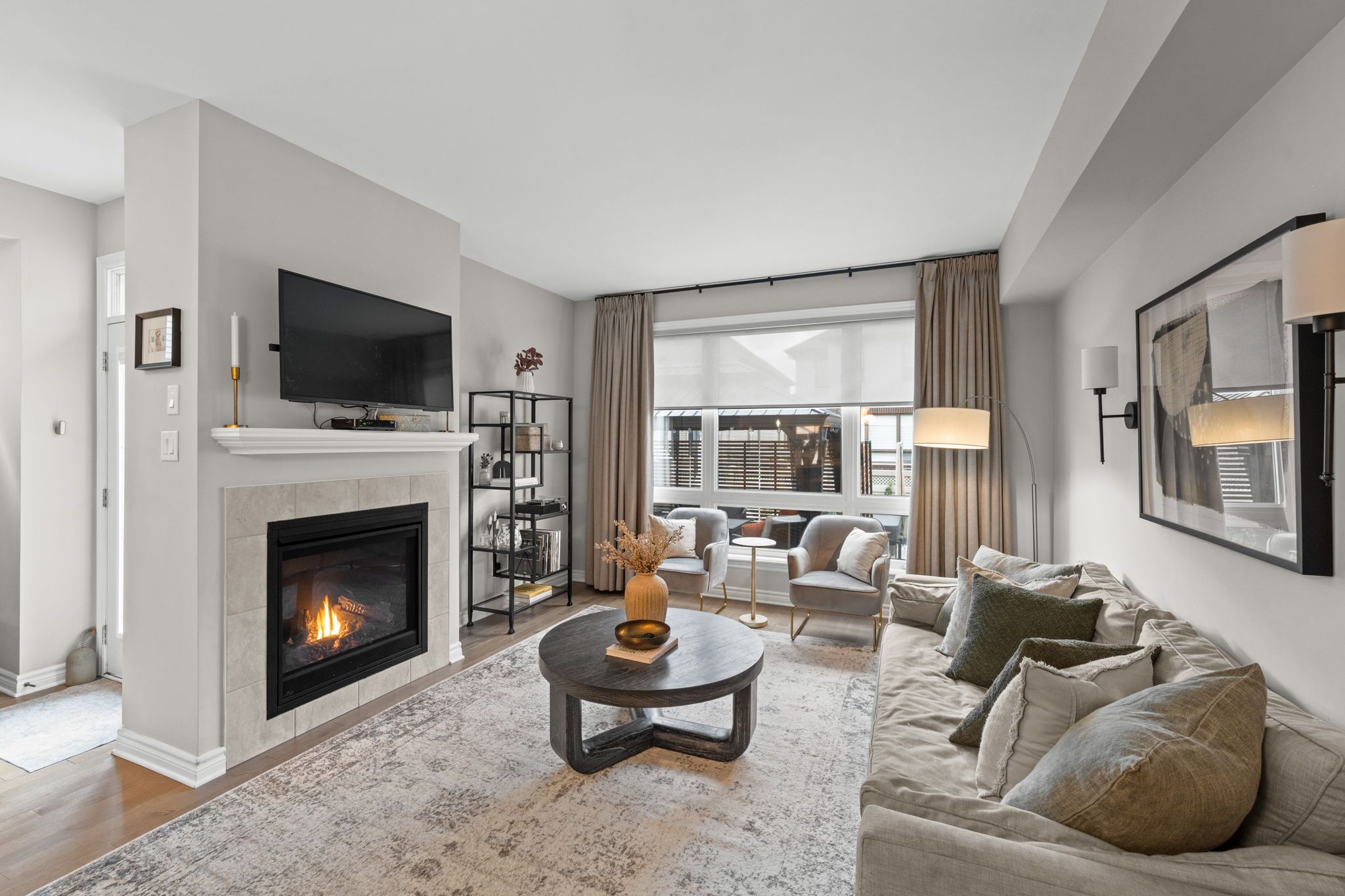 Stunning and sophisticated, this open-concept 3+1 bedroom, 3-bath Richcraft Hudson model impresses from the moment you step inside. The upgraded gourmet kitchen features stainless steel appliances, a pantry, and a generous island with quartz countertops. The cozy living room with gas fireplace offers expansive windows (enhanced with solar window film on the west side for improved energy efficiency), filling the space with natural light. Upstairs, the spacious primary suite boasts his and hers walk-in closets and a luxurious 5-piece ensuite complete with a soaker tub and glass shower. Two additional good-sized bedrooms, a full bathroom, and convenient 2nd-floor laundry complete this level. The fully finished lower level adds valuable living space with a versatile rec-room ideal for a home gym, play area, or entertainment area, along with a 4th bedroom or office, ample storage, and a bathroom rough-in. The backyard has been transformed into a private retreat. Enjoy a large deck with pergola and privacy screens, a stamped concrete patio leading to the fire pit, and a relaxing hot tub, all enclosed by a fence for added privacy. Exterior upgrades also include Celebright permanent outdoor lighting, perfect for creating ambiance in any season, as well as retractable screen doors on both the front and rear entrances for added comfort. Located in the heart of Riverside South, you're just minutes from shopping, parks, restaurants, schools, and more! This home is truly move-in ready and designed for comfort, luxury, and everyday convenience.