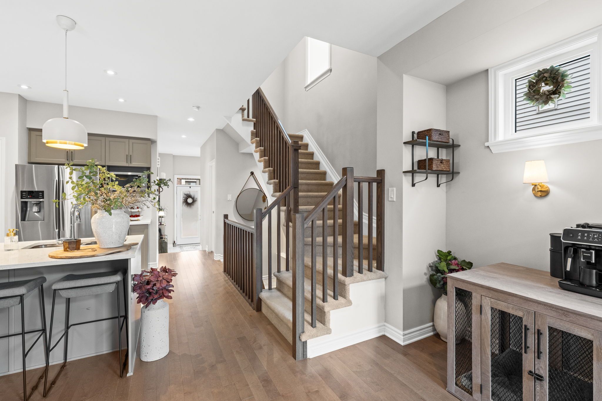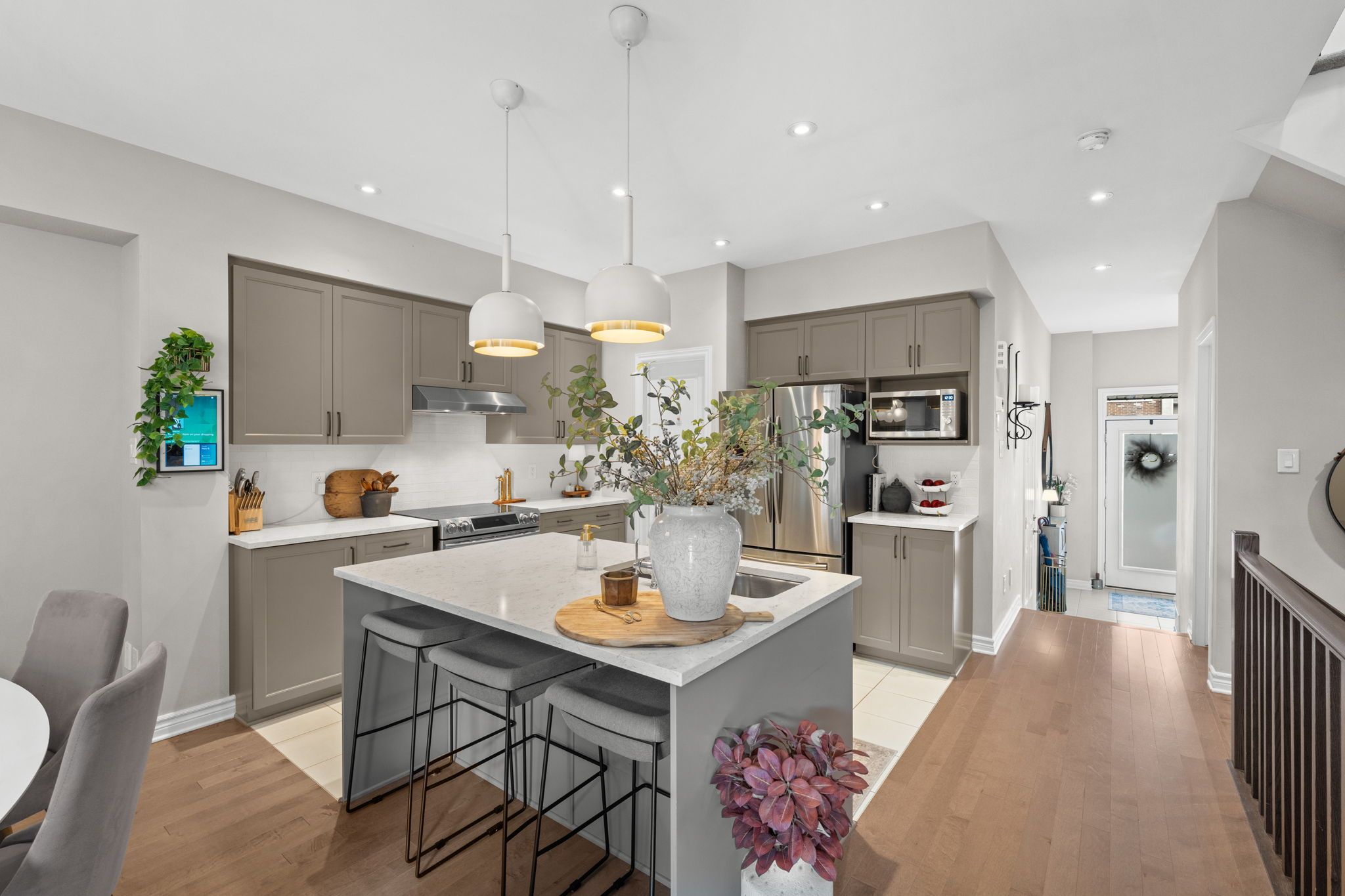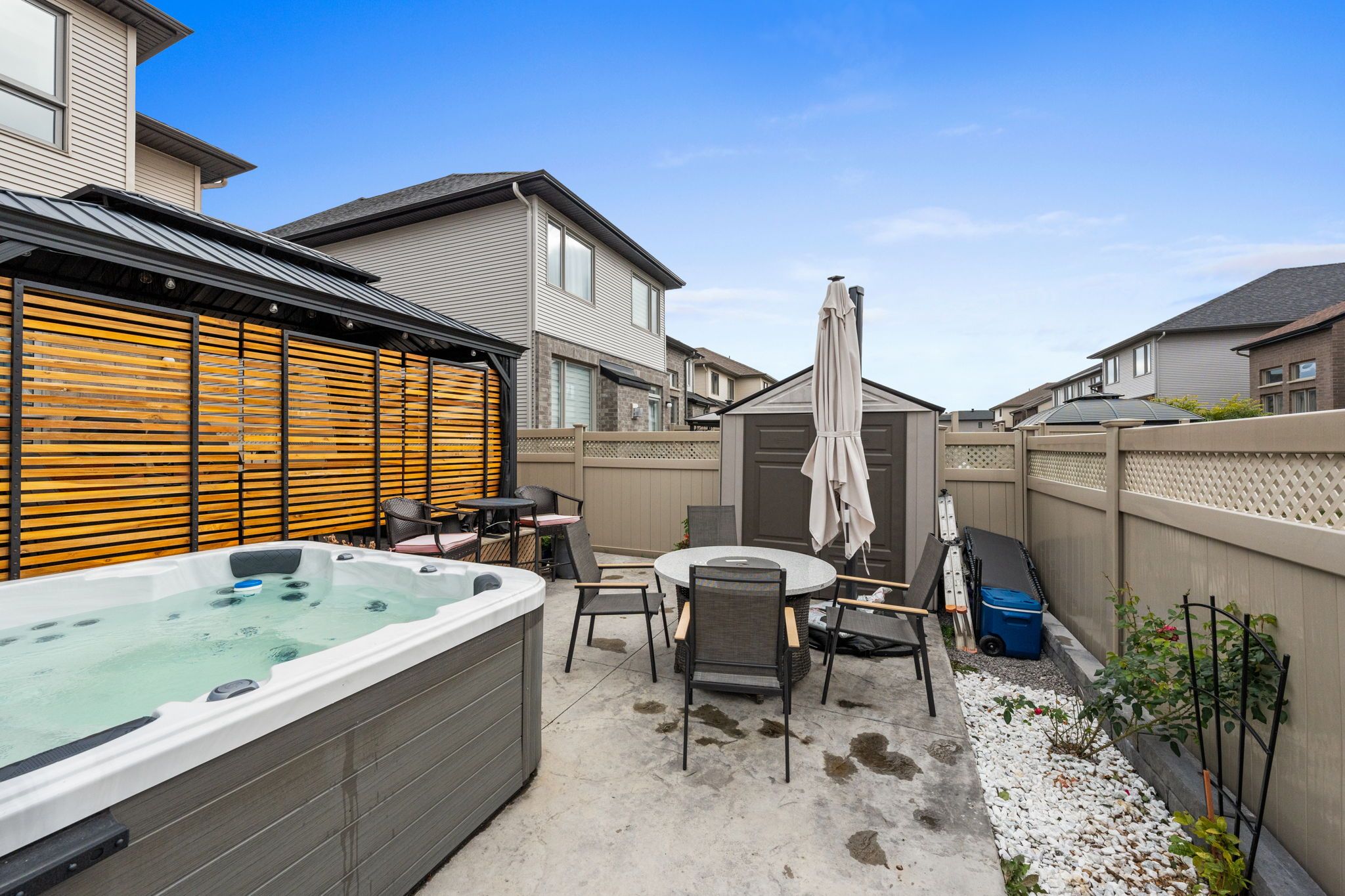 Stunning and sophisticated, this open-concept 3+1 bedroom, 3-bath Richcraft Hudson model impresses from the moment you step inside. The upgraded gourmet kitchen features stainless steel appliances, a pantry, and a generous island with quartz countertops. The cozy living room with gas fireplace offers expansive windows (enhanced with solar window film on the west side for improved energy efficiency), filling the space with natural light. Upstairs, the spacious primary suite boasts his and hers walk-in closets and a luxurious 5-piece ensuite complete with a soaker tub and glass shower. Two additional good-sized bedrooms, a full bathroom, and convenient 2nd-floor laundry complete this level. The fully finished lower level adds valuable living space with a versatile rec-room ideal for a home gym, play area, or entertainment area, along with a 4th bedroom or office, ample storage, and a bathroom rough-in. The backyard has been transformed into a private retreat. Enjoy a large deck with pergola and privacy screens, a stamped concrete patio leading to the fire pit, and a relaxing hot tub, all enclosed by a fence for added privacy. Exterior upgrades also include Celebright permanent outdoor lighting, perfect for creating ambiance in any season, as well as retractable screen doors on both the front and rear entrances for added comfort. Located in the heart of Riverside South, you're just minutes from shopping, parks, restaurants, schools, and more! This home is truly move-in ready and designed for comfort, luxury, and everyday convenience.