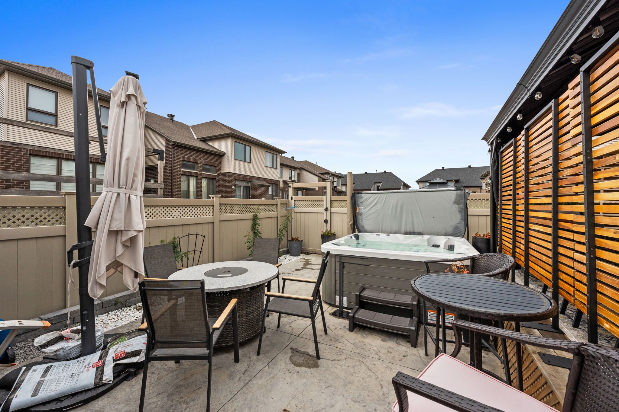 - Exterior Features: Deck, Hot Tub, Landscaped, Patio
