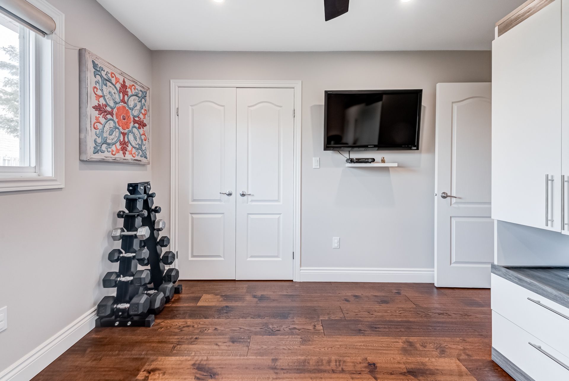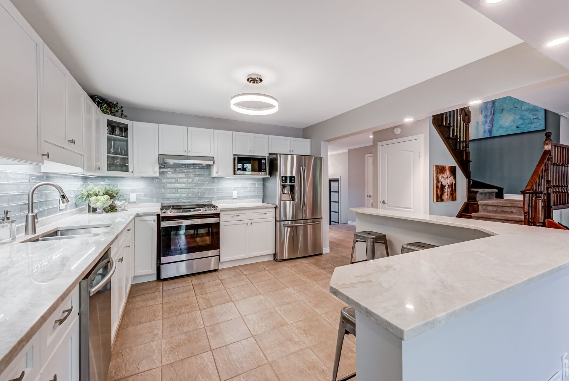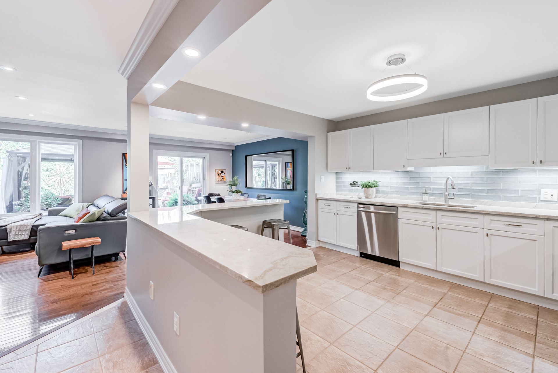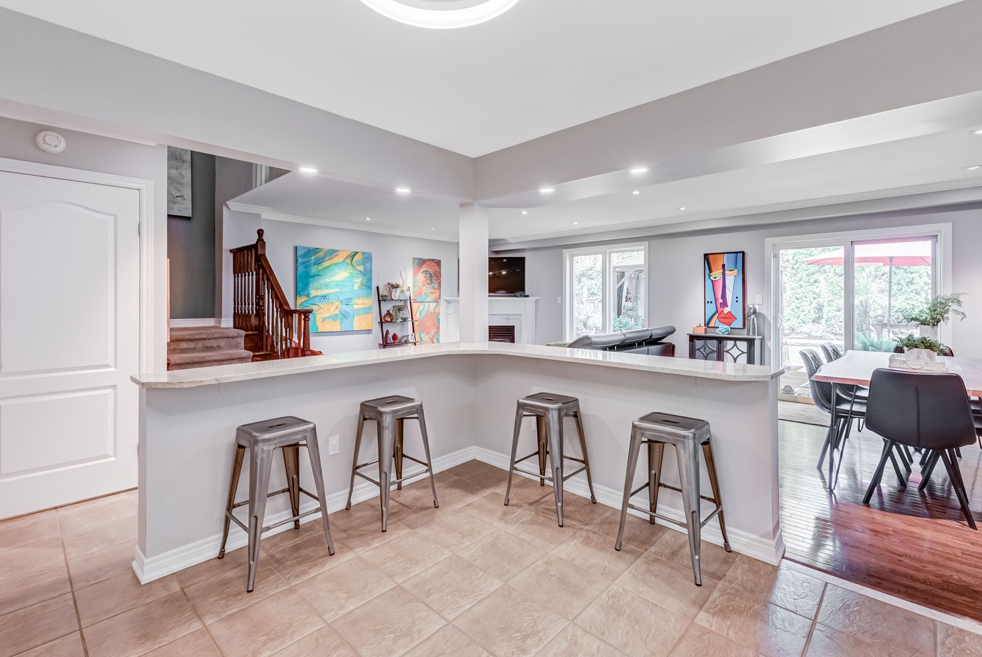 Gorgeous, professionally updated freehold townhome across from a Conservation Area with a number of paths and ponds for the enjoyment of nature lovers and dog enthusiasts. There is 1890 sq ft on the main and second floors, and almost 2700 sq ft of finished living space total. Inviting backyard with a deck, gazebo, 5-person hot tub, and lovely, mature greenery. Open concept main floor features hardwood flooring in the large living room with a gas fireplace, and in the dining room there are sliding doors to a deck. A stunning kitchen includes a gas stove, granite counter tops, a gorgeous tile backsplash and a breakfast/entertainment bar. The finished basement features luxury vinyl flooring, built-in custom wall-to-wall cupboards and drawers with bar fridge and a wet bar/refreshment area. Cabinetry surrounds an area for a wall mounted TV of up to an 85" with electric fireplace below. The second floor includes feature décor walls, a loft area, engineered hardwood throughout, custom blinds and a convenient laundry room. The spacious primary bedroom has a large 4-piece ensuite and walk-in closet. The main bath has a walk-in shower and a modern, free-standing vanity with 2 under mount sinks. The bedroom that is used as an exercise room has a Murphy bed offering a multi-purpose room including a guest room, exercise room or office. The Murphy bed has a storage cabinet and a pull out side table. Insulated garage is ideal for hobbyists in winter. Updates include AC/Furnace/Roof, 2 bathrooms, kitchen, basement, and pot lights throughout 3 levels including bedroom closets. Walk to amenities, shopping and restaurants. Two-minute drive to a large dog park. Close to highway access. This home is turnkey so just move in and enjoy all that this home and area have to offer!