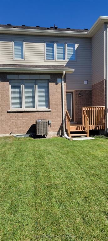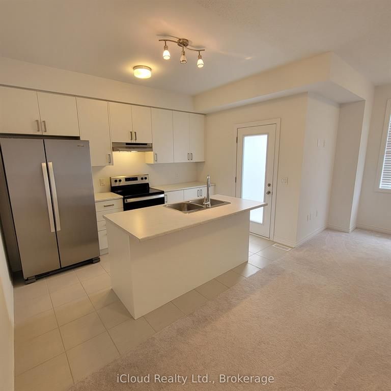 Welcome to this Modern Brick and Stone (Elevation B - Premium) townhouse in Fergus's new Storybrook subdivision. Located on a quiet, low-traffic, family friendly street. Step inside to discover an inviting open concept layout, where the seamless flow between the dining area and living room and kitchen creates the perfect atmosphere for relaxation and entertaining. The kitchen features stainless steel appliances, beautiful white cabinetry, a centre island and walk out to a backyard deck perfect for summer BBQs and morning coffee. The 2nd floor has a great master bedroom with a 4 piece en-suite, including an oversized glass shower, double sink vanity. Facing due west, the master bedroom bank of windows provides terrific natural light through out the upper hallway. The 2 front bedrooms, large main bathroom and laundry room round out the 2nd floor. The unfinished basement has tons of potential with ample space and a good sized egress window. It can be finished at your leisure, adding more finished space for your personal needs. The townhouse includes AC, water softener and garage door opener. Walk to the new Grand River Public School, neighbourhood parks, walking paths and trails. Just a quick drive to Fergus and Elora shopping centres. Don't miss the opportunity to make this exquisite property your own. Schedule your showing today and experience the epitome of comfort and style. A Must See!