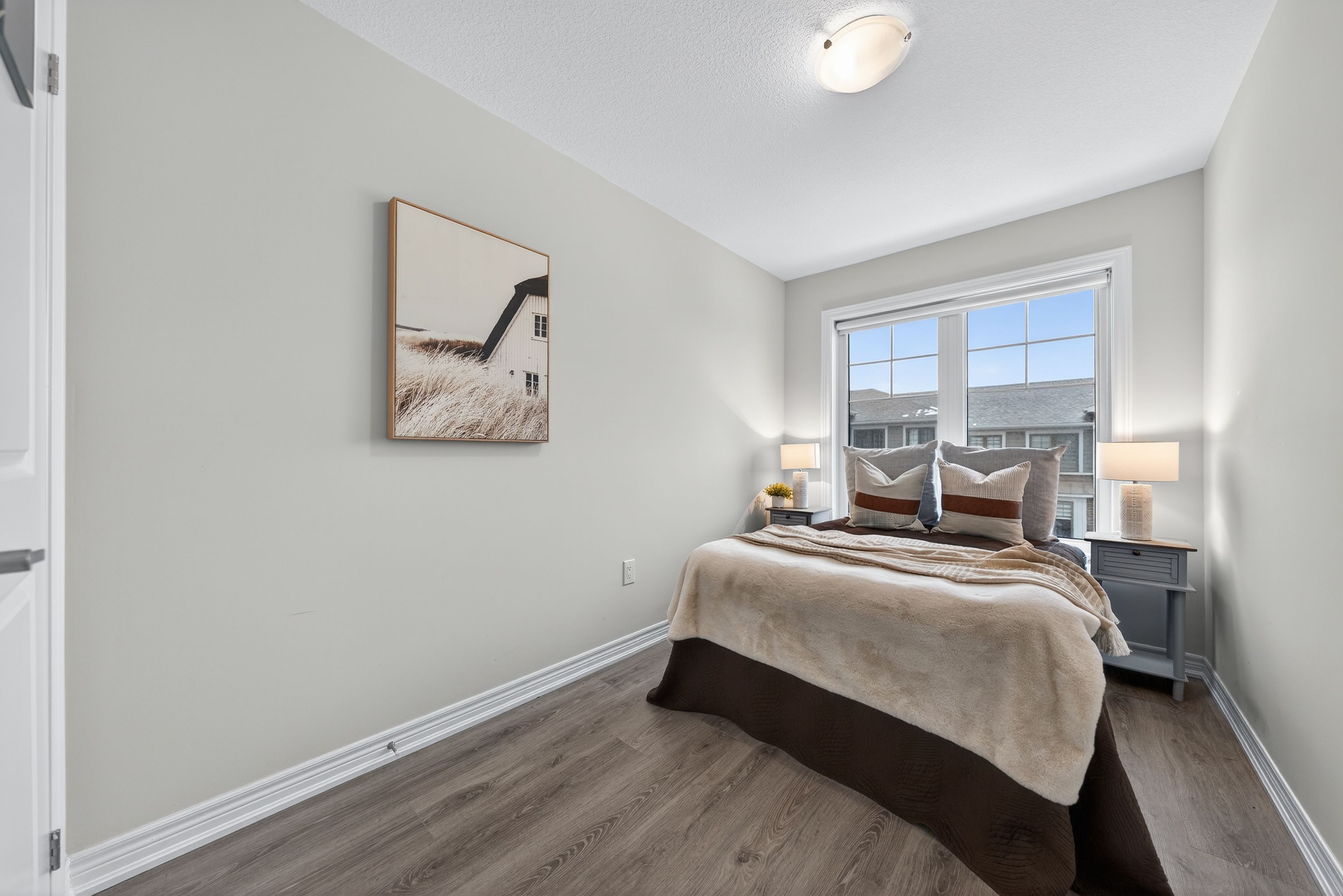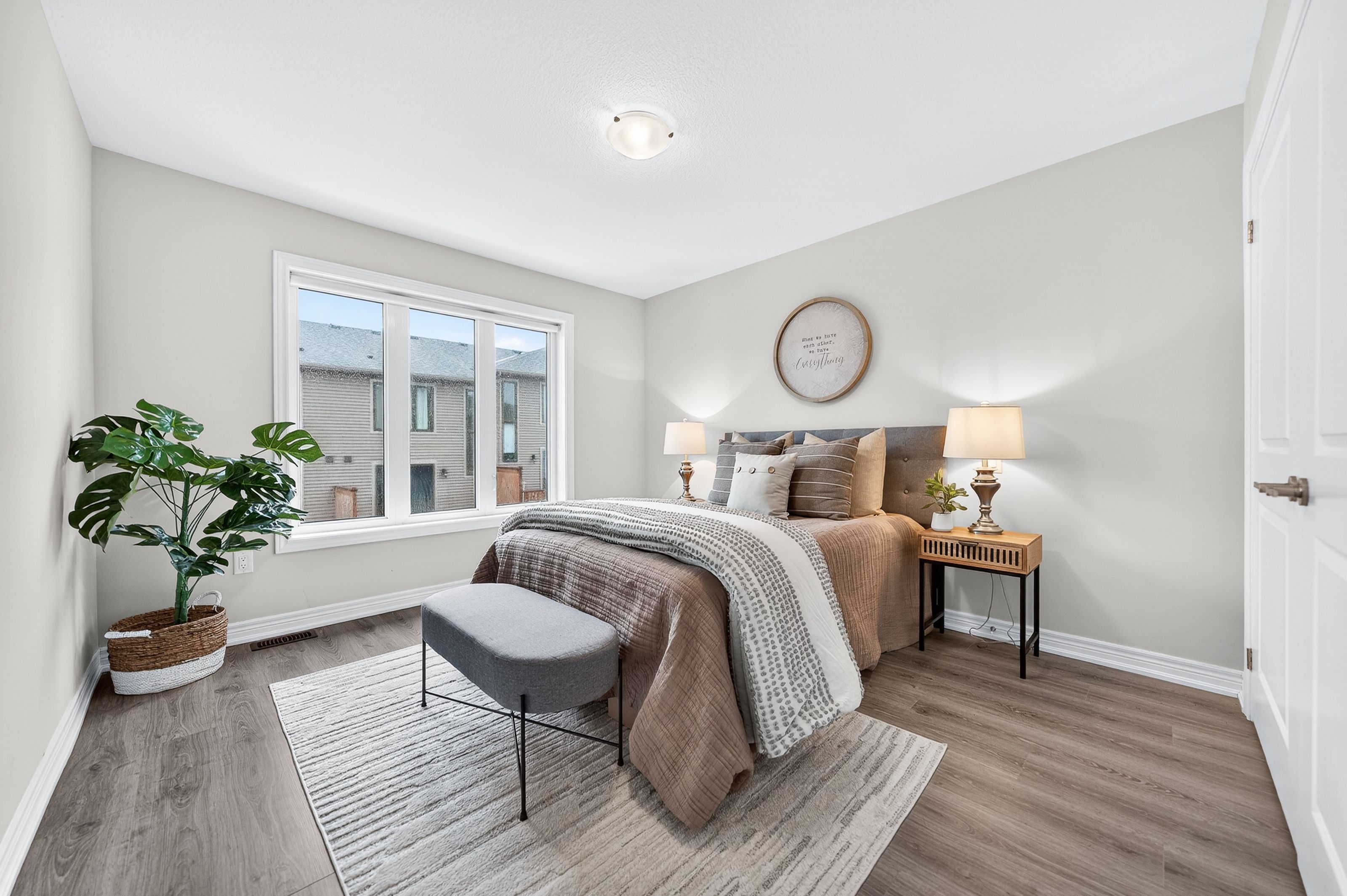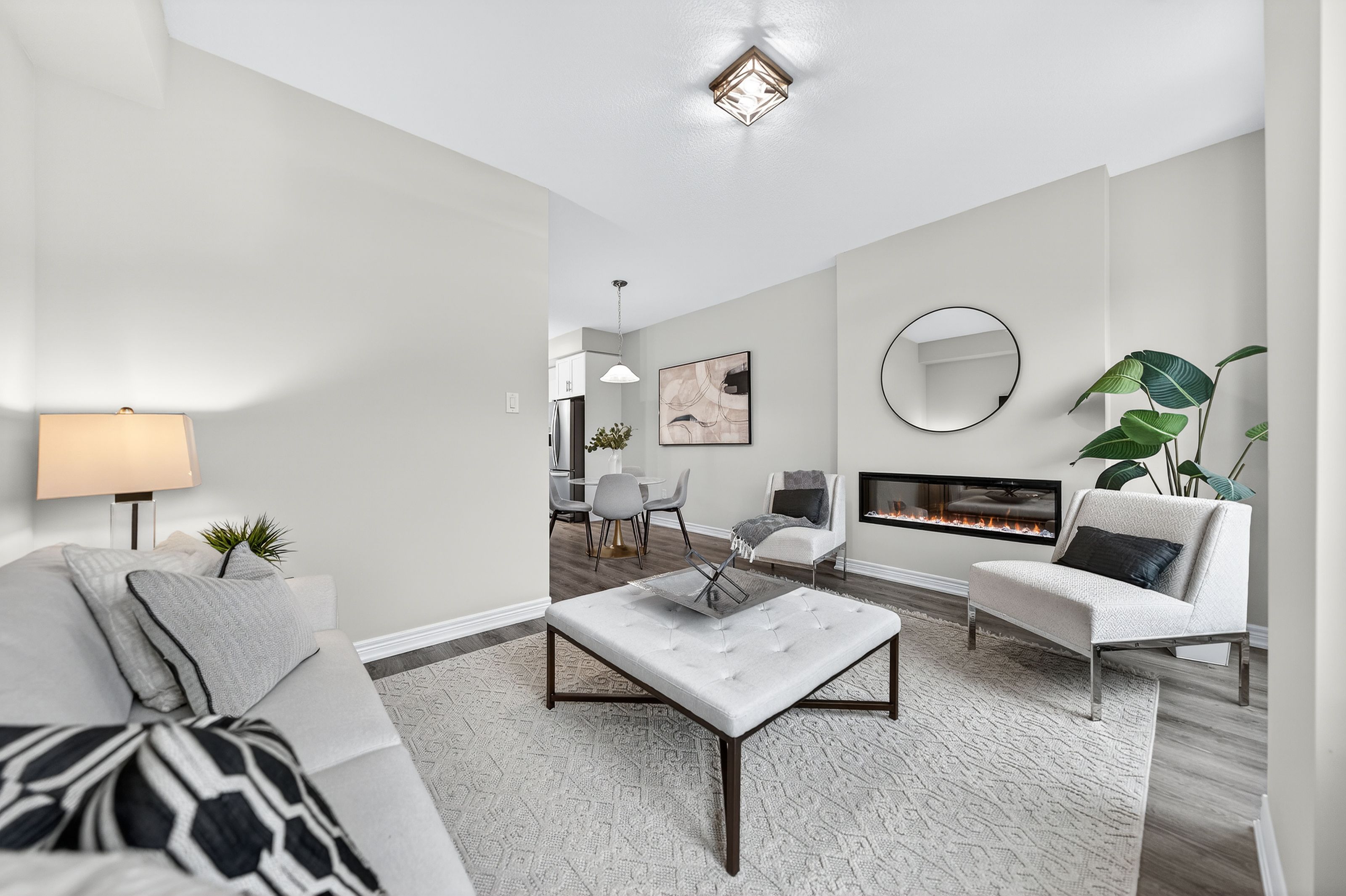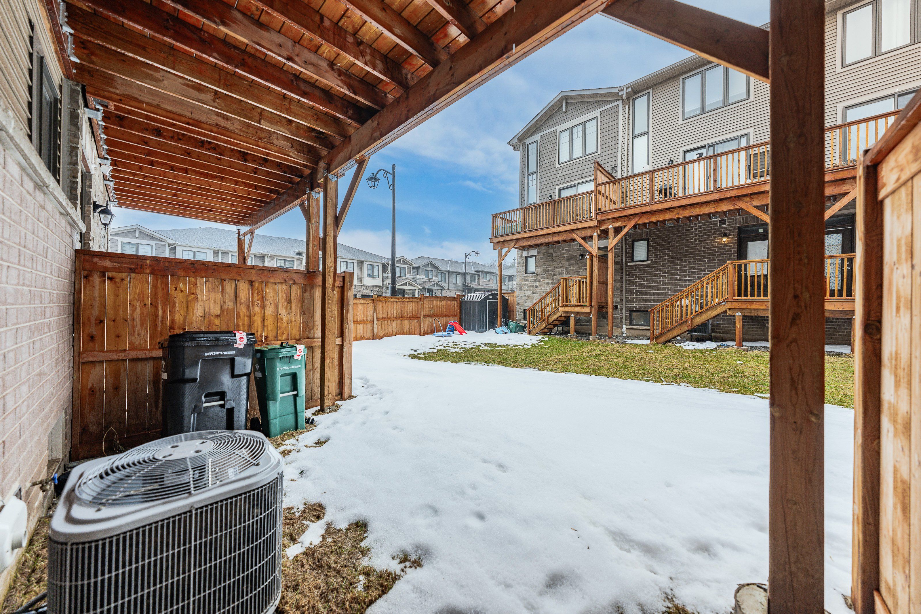 Welcome to this exceptional, freshly painted move-in ready townhome nestled in one of Cambridge's most desirable communities. Thoughtfully designed for modern living, this bright and beautifully appointed home features 9 ft ceilings, elegant finishes, and a spacious open-concept layout that seamlessly blends style, comfort, and everyday functionality. Over 1900sqft of total living space. Perfect for first-time buyers, growing families, or professionals. The main living level impresses with an abundance of natural light streaming through oversized windows, highlighting a warm and inviting living space anchored by a sleek electric fireplace. The contemporary white kitchen is both stylish and practical, showcasing quartz countertops, a large center island with breakfast seating, stainless steel appliances, subway tile backsplash, and ample cabinetry, all complemented by convenient roll-down blinds. Step outside to the private rear deck with privacy side panels, offering a peaceful retreat for relaxing or entertaining. A hardwood staircase leads to the upper level where three generously sized bedrooms provide comfort and versatility, each featuring large windows and neutral décor. The 4-piece bathroom includes a quartz vanity, soaker tub, and ceramic tile shower surround. Excellent location approximately 35 minutes to Mississauga, 15 minutes to University of Waterloo and Wilfrid Laurier University, and 20 minutes to University of Guelph. Walking distance to Walmart, Home Depot, Tim Hortons, Canadian Tire, Starbucks, and numerous shops, dining, and everyday amenities.