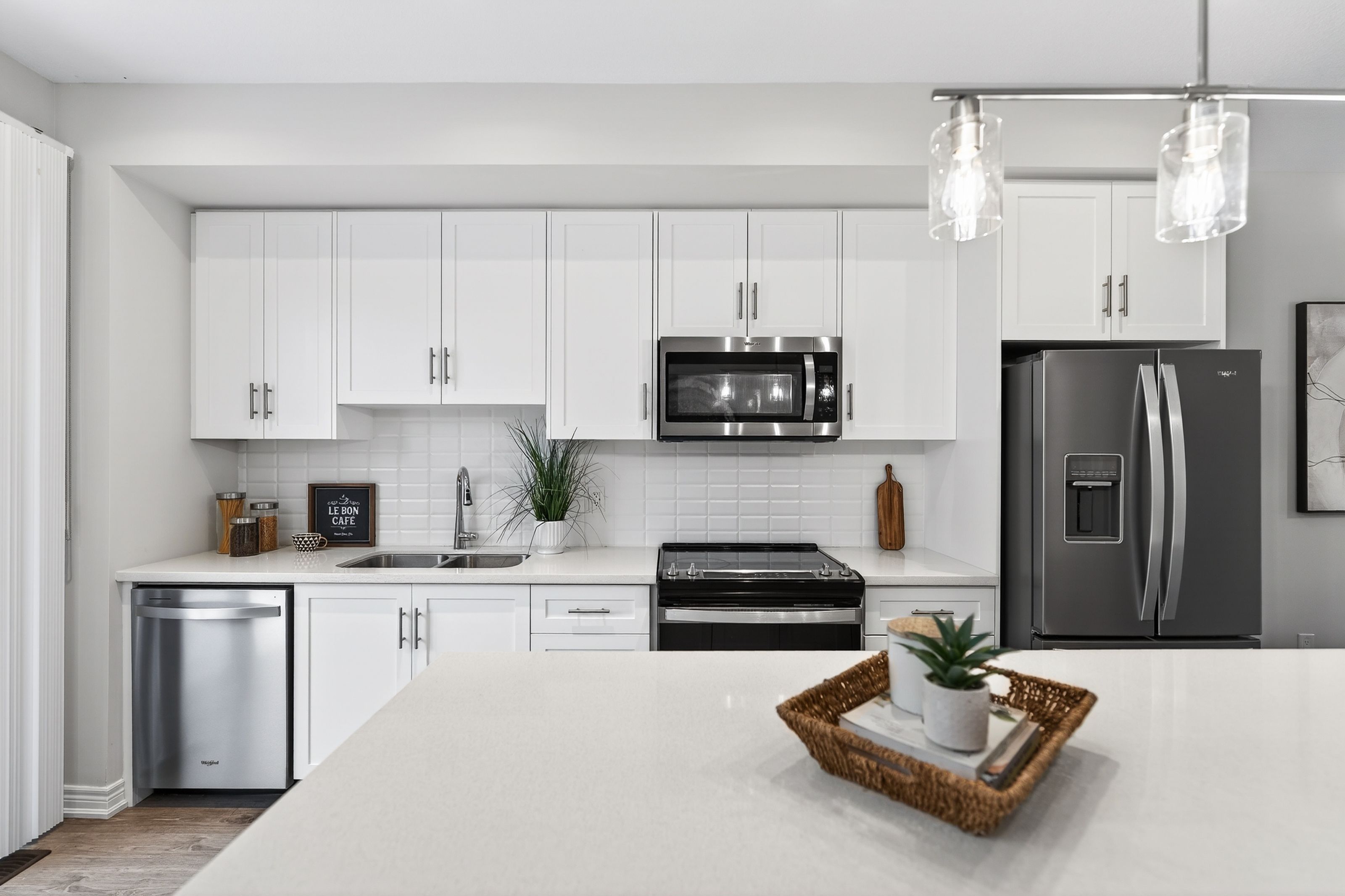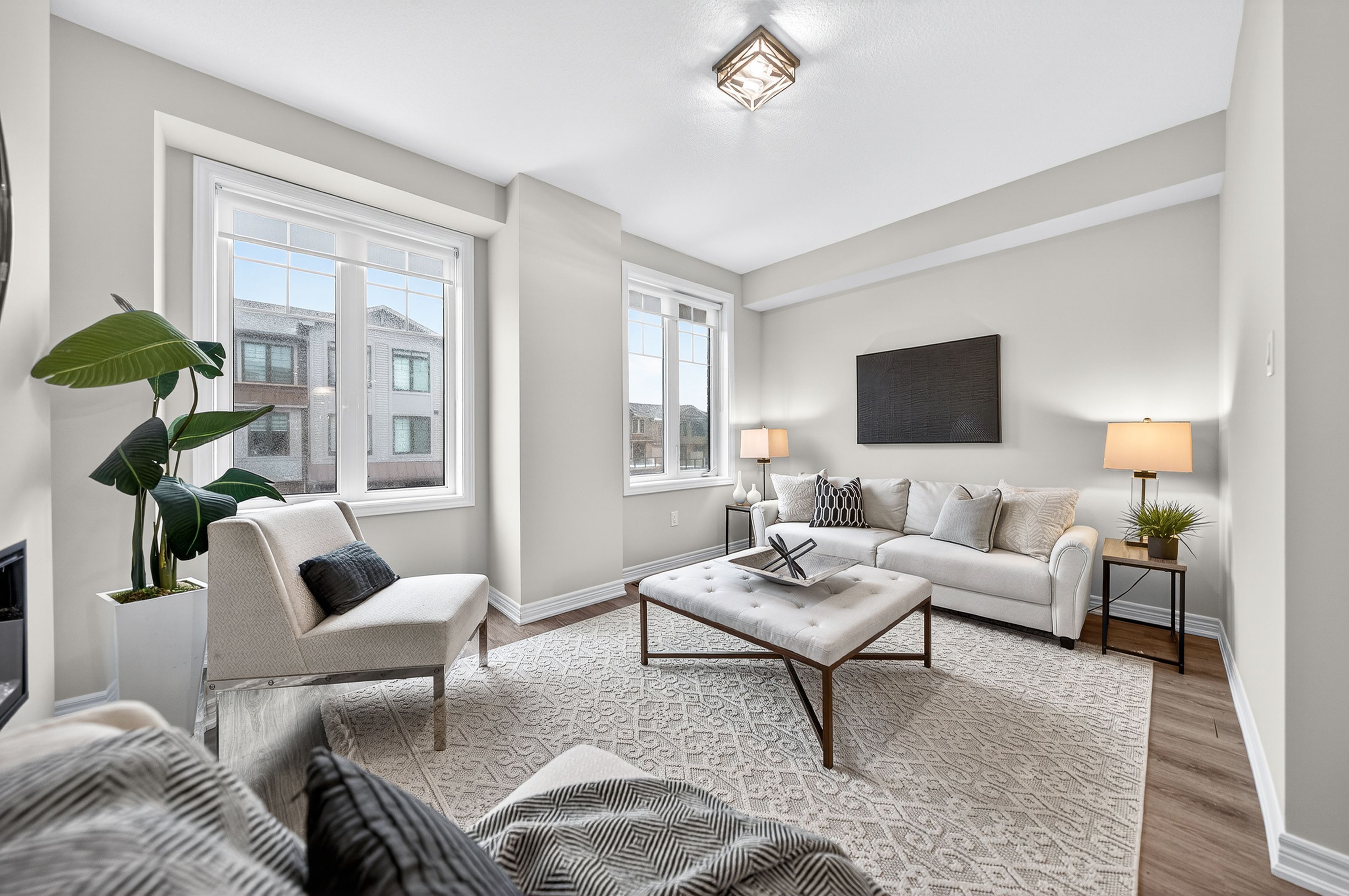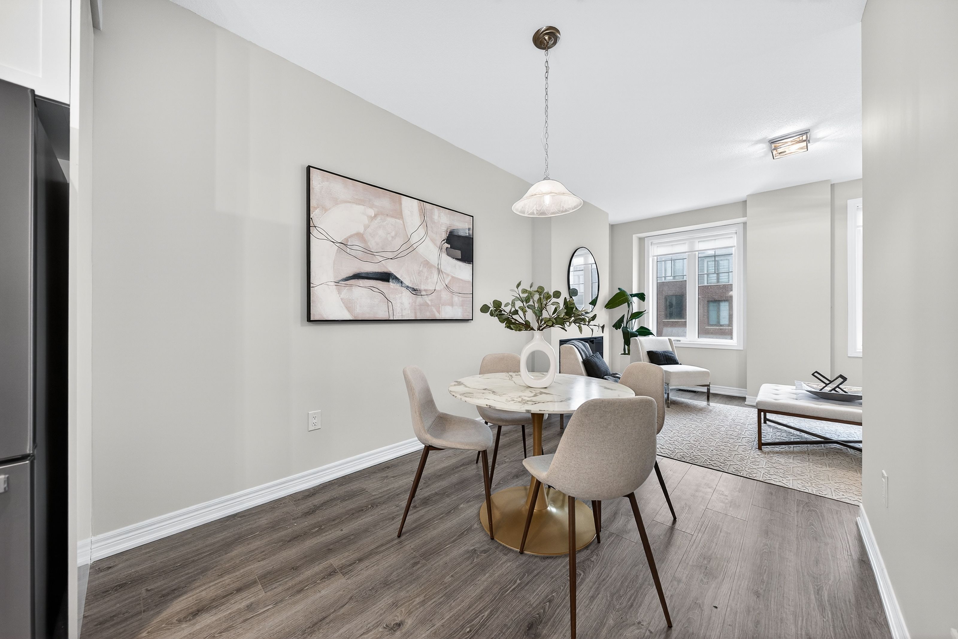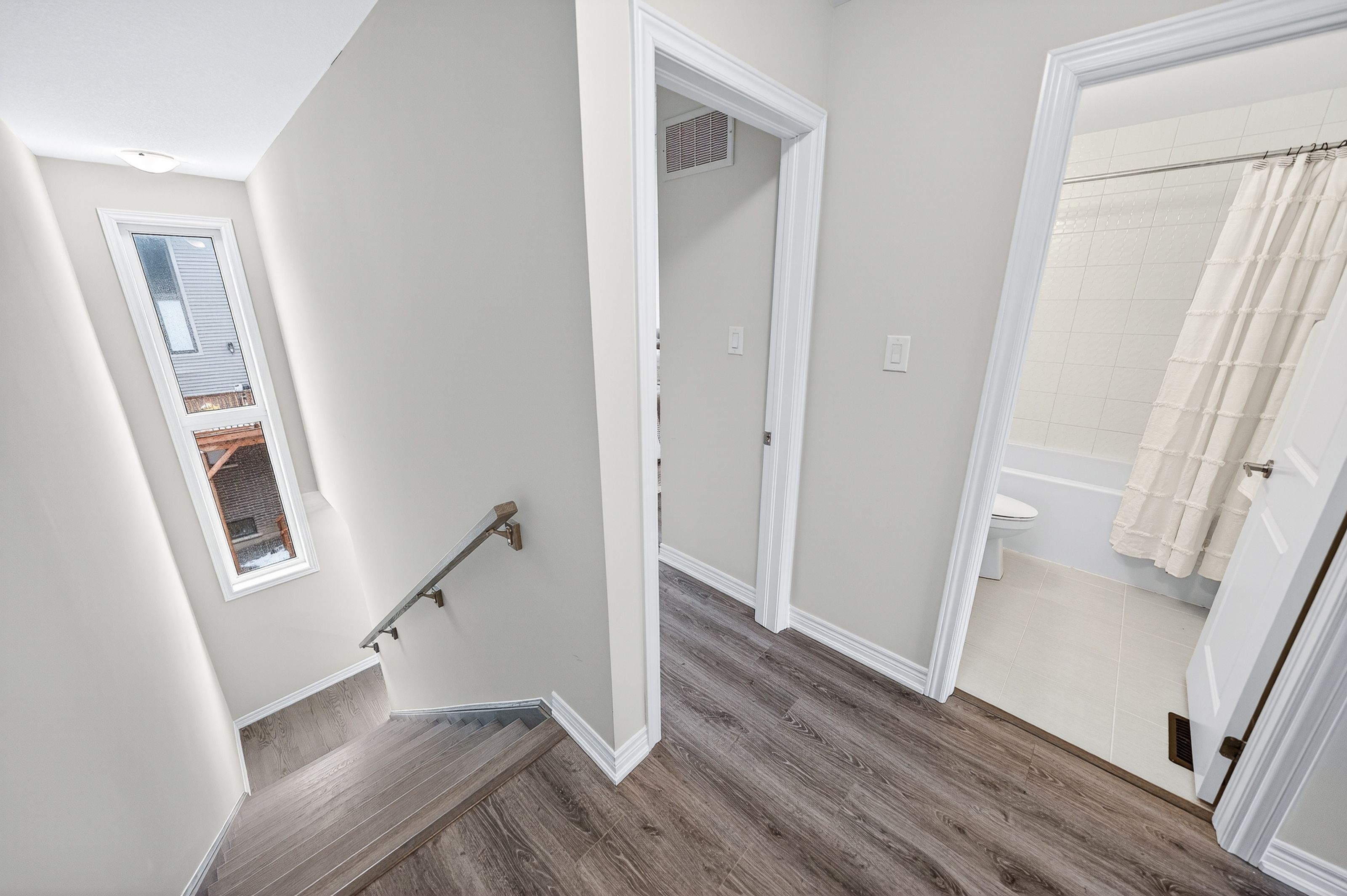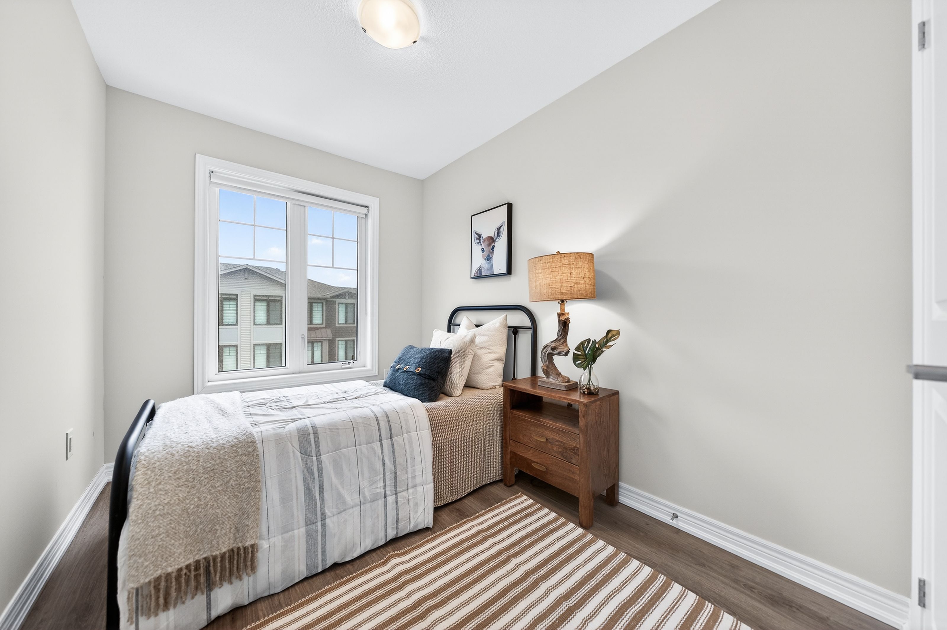 Welcome to this exceptional, freshly painted move-in ready townhome nestled in one of Cambridge's most desirable communities. Thoughtfully designed for modern living, this bright and beautifully appointed home features 9 ft ceilings, elegant finishes, and a spacious open-concept layout that seamlessly blends style, comfort, and everyday functionality. Over 1900sqft of total living space. Perfect for first-time buyers, growing families, or professionals. The main living level impresses with an abundance of natural light streaming through oversized windows, highlighting a warm and inviting living space anchored by a sleek electric fireplace. The contemporary white kitchen is both stylish and practical, showcasing quartz countertops, a large center island with breakfast seating, stainless steel appliances, subway tile backsplash, and ample cabinetry, all complemented by convenient roll-down blinds. Step outside to the private rear deck with privacy side panels, offering a peaceful retreat for relaxing or entertaining. A hardwood staircase leads to the upper level where three generously sized bedrooms provide comfort and versatility, each featuring large windows and neutral décor. The 4-piece bathroom includes a quartz vanity, soaker tub, and ceramic tile shower surround. Excellent location approximately 35 minutes to Mississauga, 15 minutes to University of Waterloo and Wilfrid Laurier University, and 20 minutes to University of Guelph. Walking distance to Walmart, Home Depot, Tim Hortons, Canadian Tire, Starbucks, and numerous shops, dining, and everyday amenities.