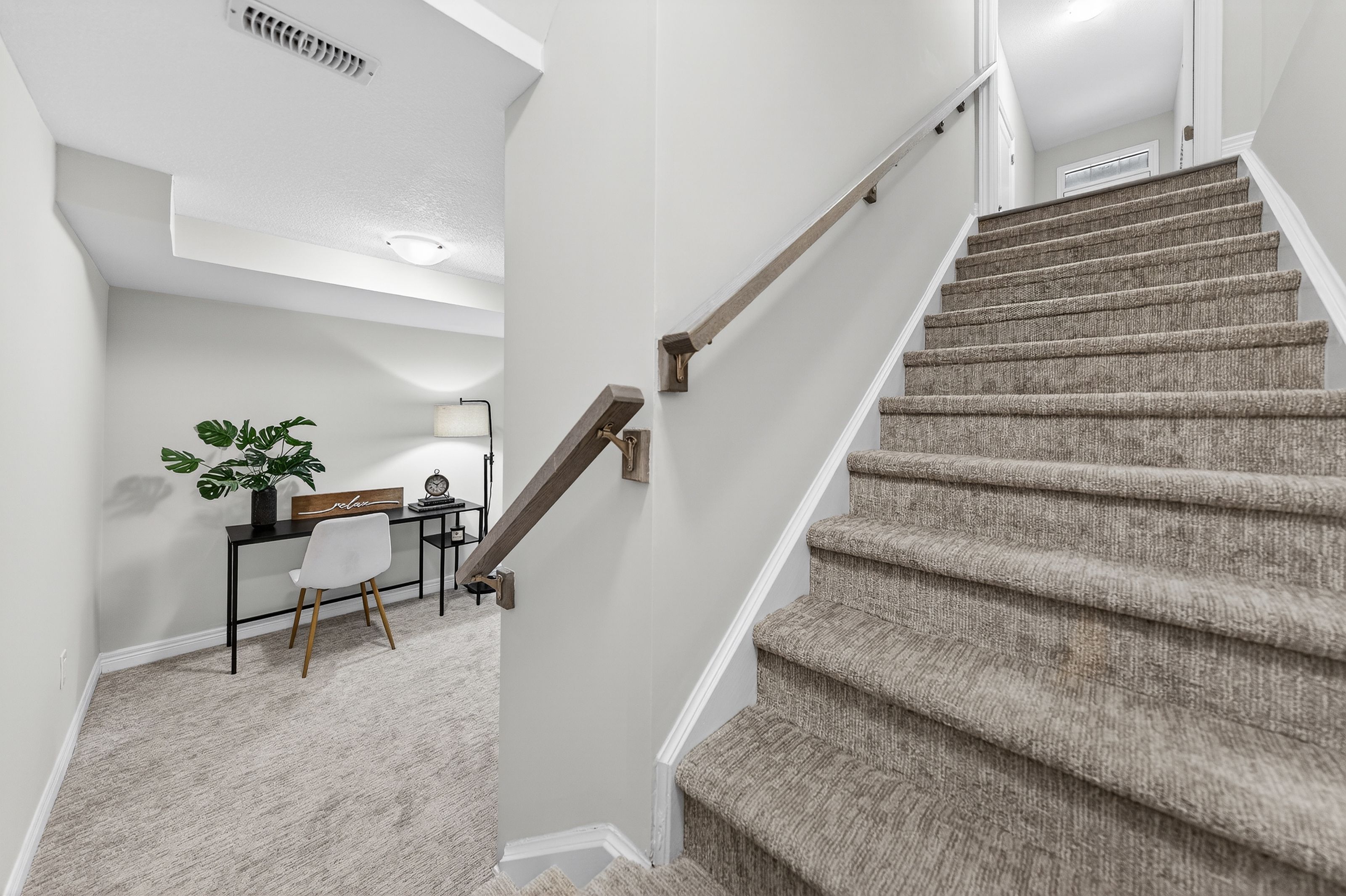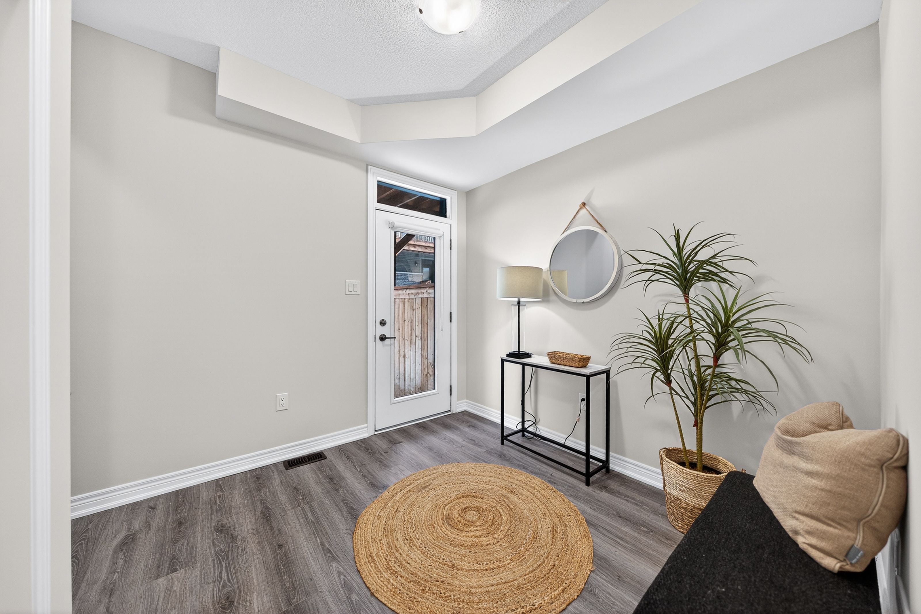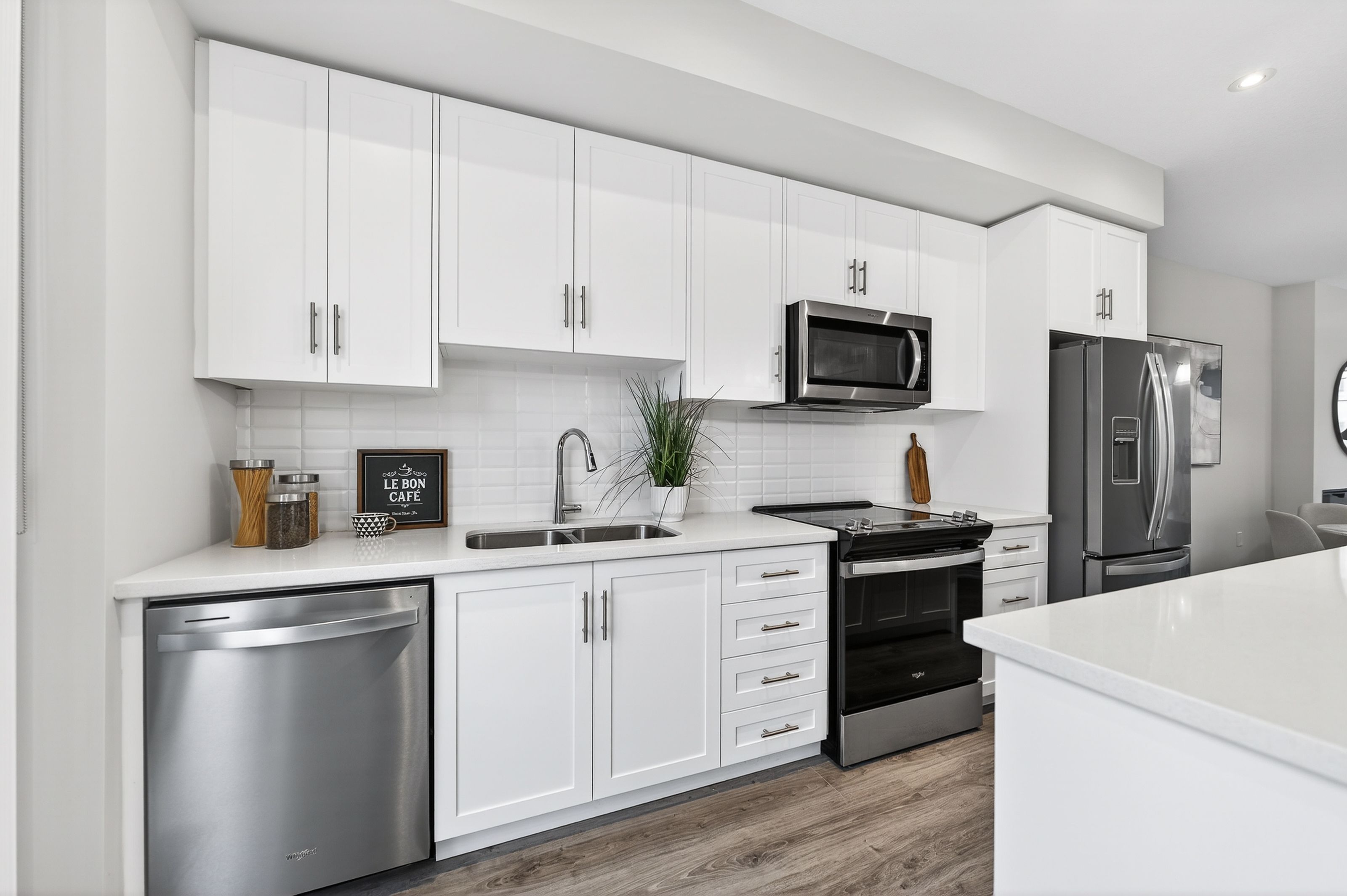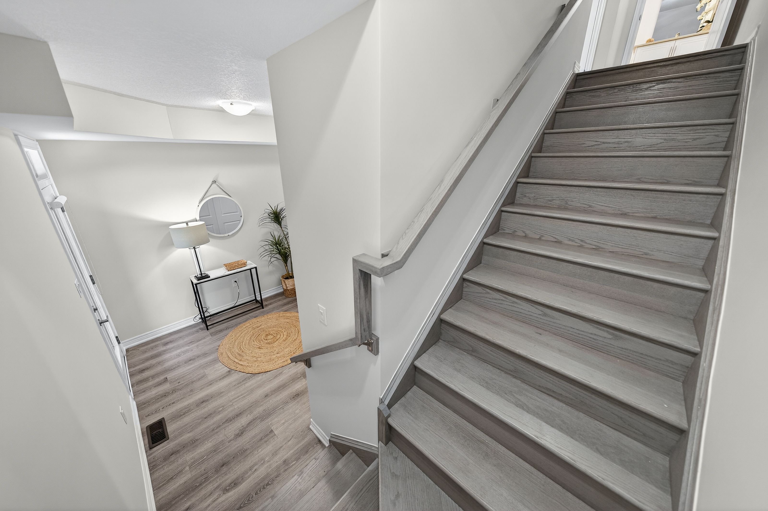 Welcome to this exceptional, freshly painted move-in ready townhome nestled in one of Cambridge's most desirable communities. Thoughtfully designed for modern living, this bright and beautifully appointed home features 9 ft ceilings, elegant finishes, and a spacious open-concept layout that seamlessly blends style, comfort, and everyday functionality. Over 1900sqft of total living space. Perfect for first-time buyers, growing families, or professionals. The main living level impresses with an abundance of natural light streaming through oversized windows, highlighting a warm and inviting living space anchored by a sleek electric fireplace. The contemporary white kitchen is both stylish and practical, showcasing quartz countertops, a large center island with breakfast seating, stainless steel appliances, subway tile backsplash, and ample cabinetry, all complemented by convenient roll-down blinds. Step outside to the private rear deck with privacy side panels, offering a peaceful retreat for relaxing or entertaining. A hardwood staircase leads to the upper level where three generously sized bedrooms provide comfort and versatility, each featuring large windows and neutral décor. The 4-piece bathroom includes a quartz vanity, soaker tub, and ceramic tile shower surround. Excellent location approximately 35 minutes to Mississauga, 15 minutes to University of Waterloo and Wilfrid Laurier University, and 20 minutes to University of Guelph. Walking distance to Walmart, Home Depot, Tim Hortons, Canadian Tire, Starbucks, and numerous shops, dining, and everyday amenities.
