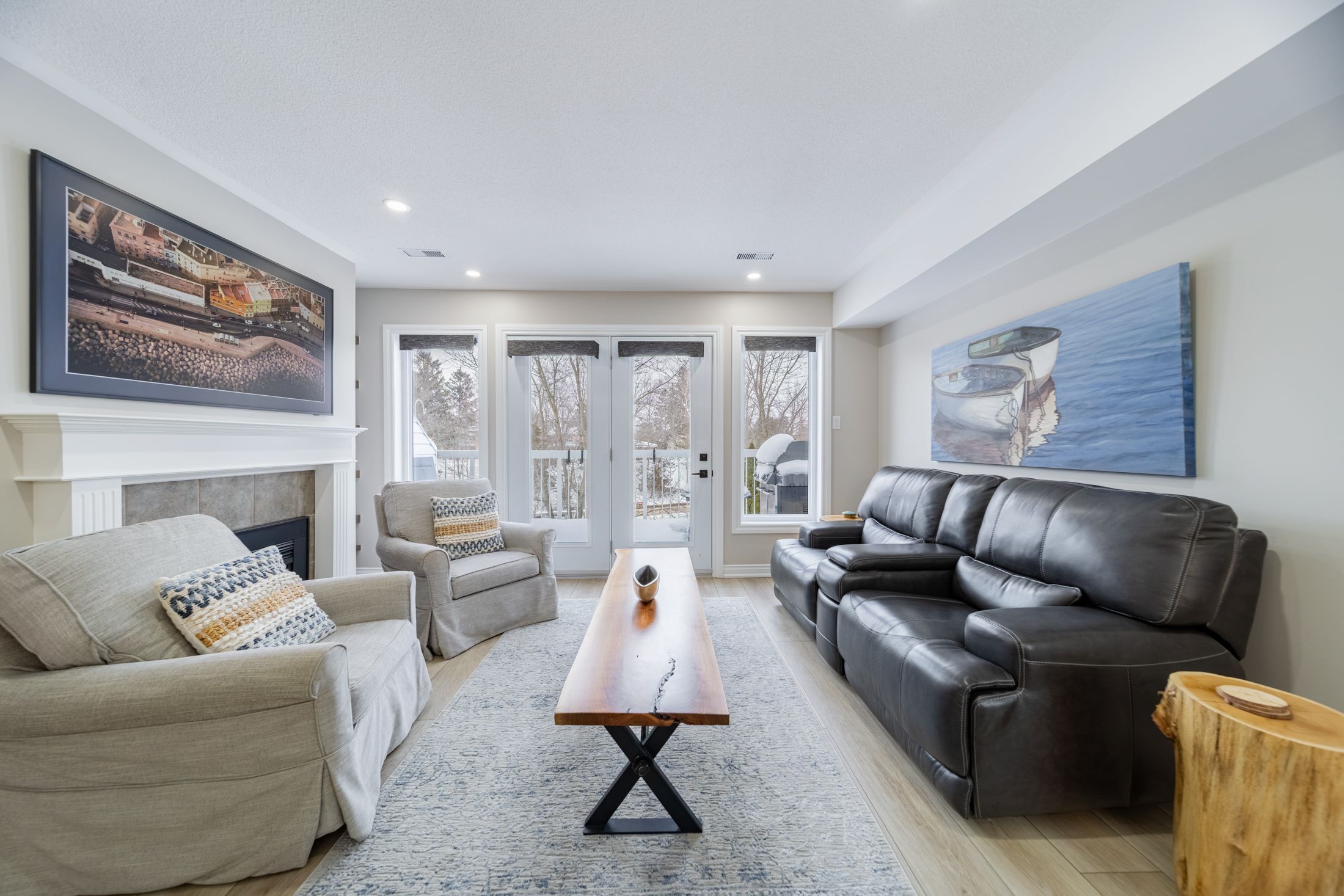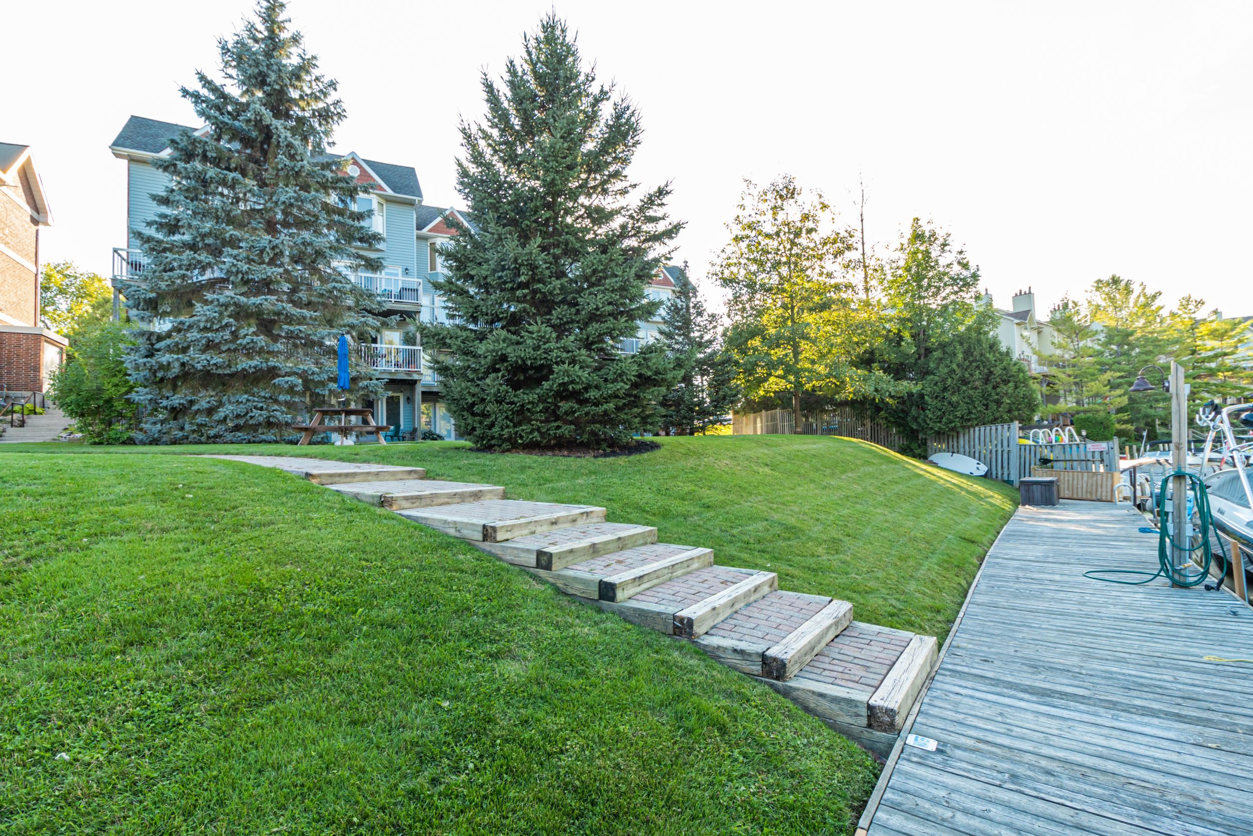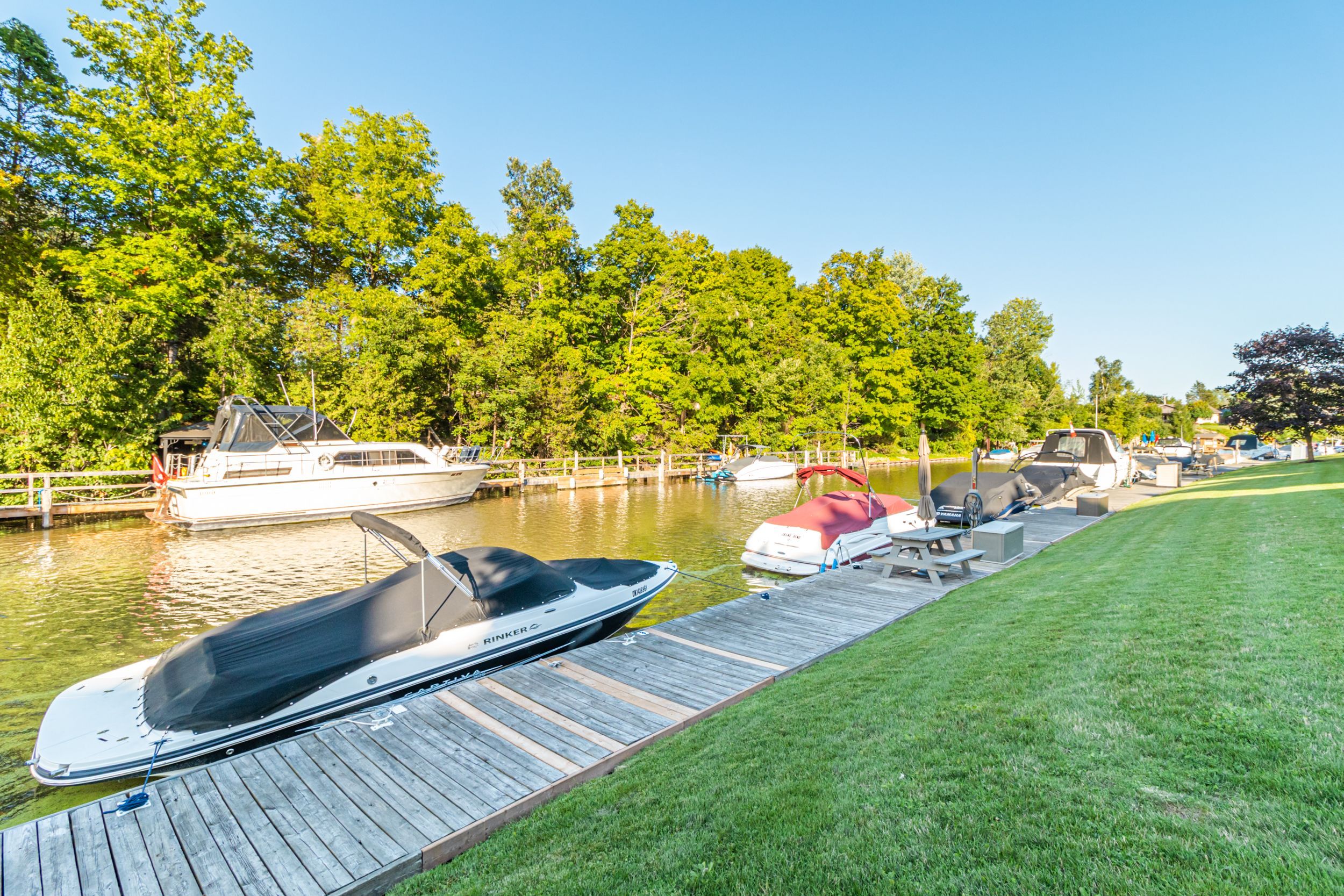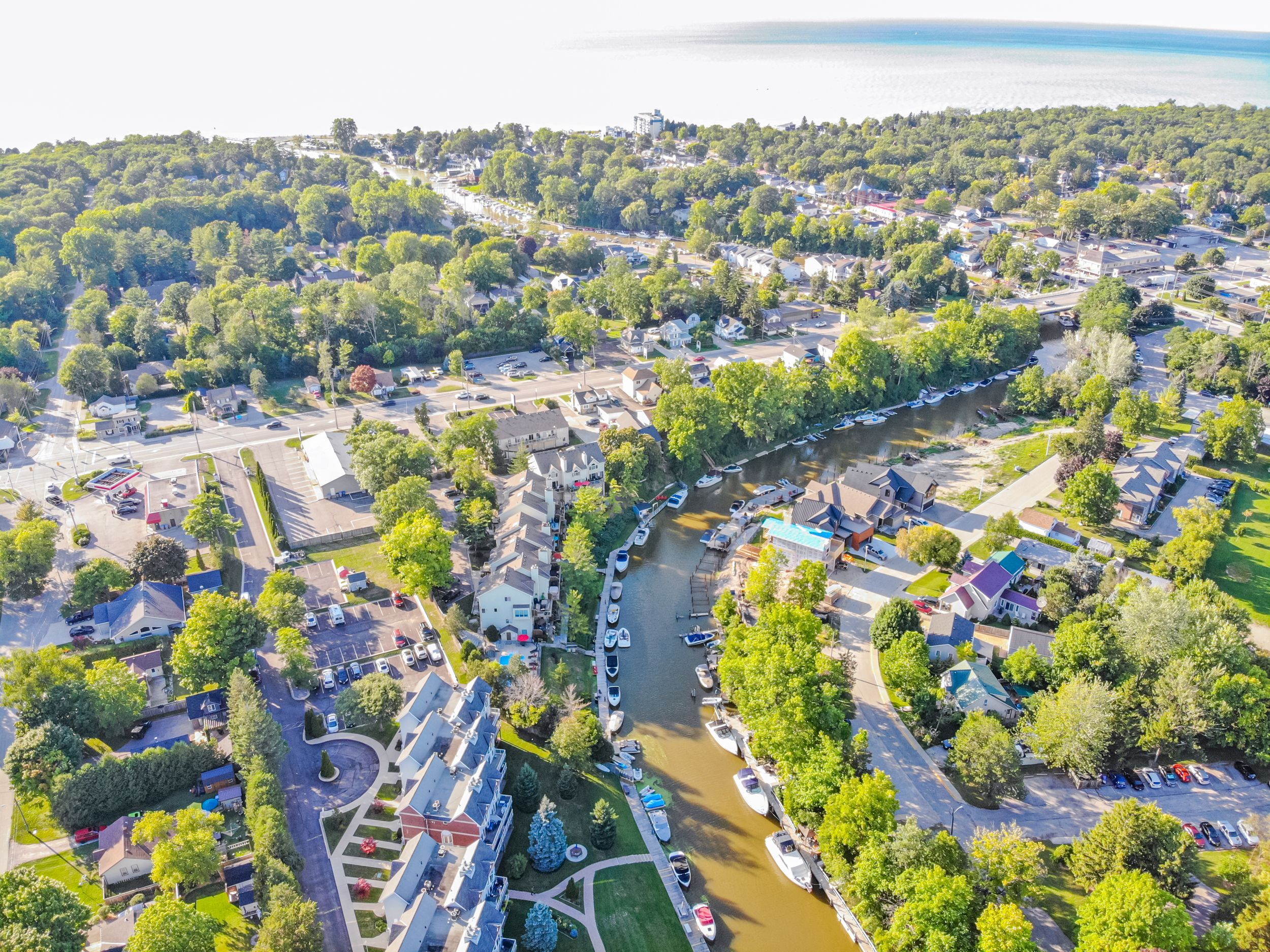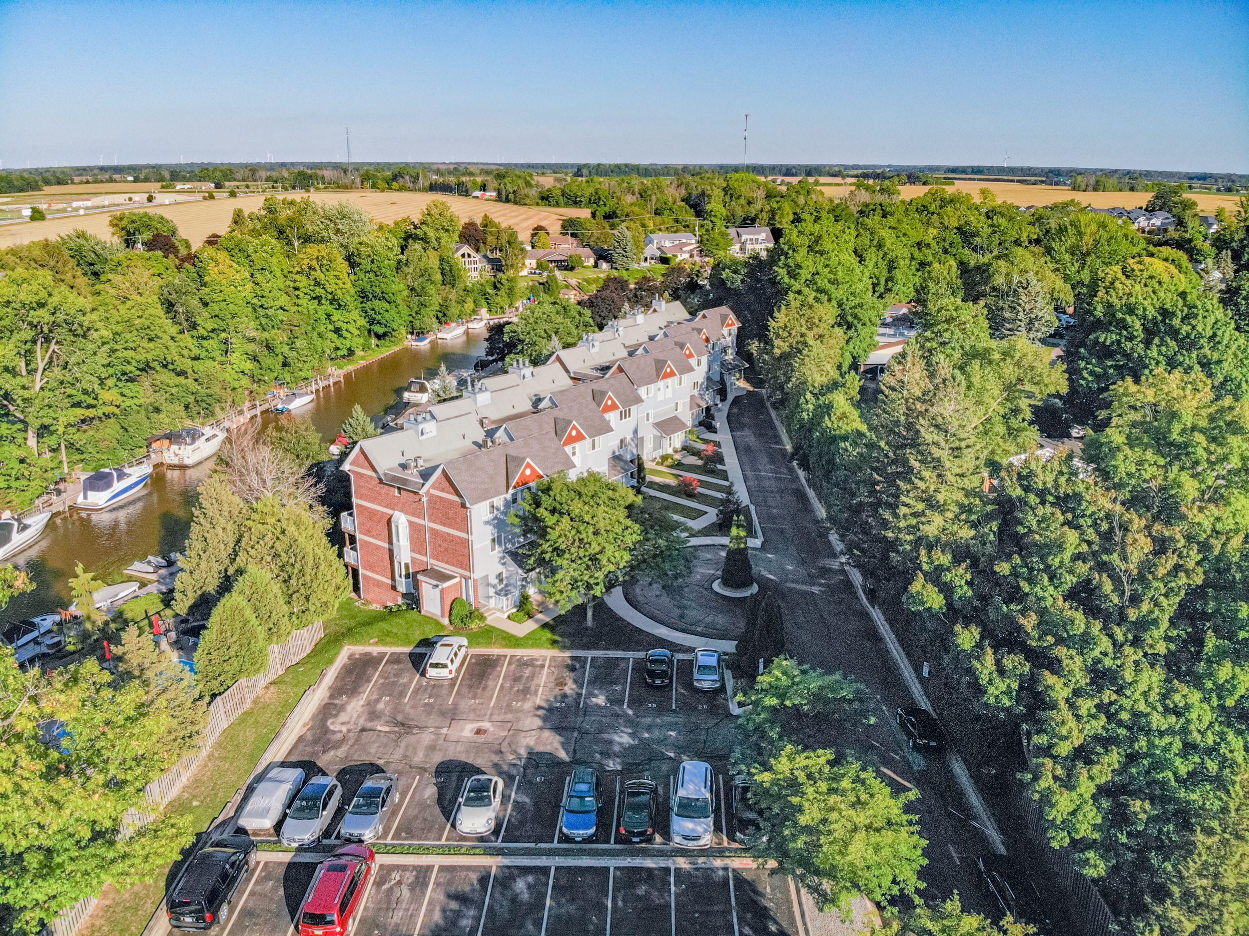 PREMIUM RENOVATED 2-storey 3 bed, 2 bath townhouse condo in Grand Bend's GATED WATERFRONT community, Harbour Gates. This complex is set on 3 ACRES & 700' OF WATERFRONT, featuring an inground saltwater pool, tennis court, meticulous grounds and a controlled entry gate. Owners enjoy first right of refusal on a 30' BOAT SLIP DIRECTLY OUT FRONT OF THE UNIT - all at a dockage rate of just $25/ft. Be on the water in minutes and cruise out to Lake Huron to enjoy turquoise waters or award winning sunsets - or enjoy a short stroll to South Beach, Main Beach, dining, shopping & the strip in minutes. Offering 1,233 SQ FT OF LIVING SPACE, this TURNKEY END UNIT is a true showstopper. SIGNIFICANT PREMIUM UPGRADES were completed in 2023 feat. a high quality kitchen with quartz counters, maple cabinetry, and PREMIUM APPLICANCES including a panel-ready LIEBHERR fridge, panel-ready AEG dishwasher, AEG induction cooktop & built-in oven, Panasonic built-in microwave, Marvel dual-zone wine/beverage cooler & much more. Patio doors lead to a raised deck overlooking the waterfront and boat slip. The living room features a fireplace with timber and tile surround, and custom built-ins. The gorgeous, bright primary suite includes waterfront views, large double closets, automatic blackout blinds, and a beautifully updated cheater ensuite bath with a low curb shower and high end finishings & fixtures. OTHER UPGRADES: Powder room ('23), mudroom cabinetry/bench ('23), laundry room cabinetry/counter/sink ('23), LG ThinQ washer/dryer ('23), furnace & owned tankless water heater ('23), luxury vinyl plank flooring ('22), interior doors, ('22) stair railing ('22), pot lights ('23), paint ('23). Positioned at the back of the complex, you will enjoy added privacy and no neighbours on one side. This end unit comes with a DEDICATED PARKING SPOT and ample visitor parking. Bonus: PET FRIENDLY ANDLOW FEES OF $245/MONTH incl. building insurance, maintenance, roof, windows, snow removal & property management.