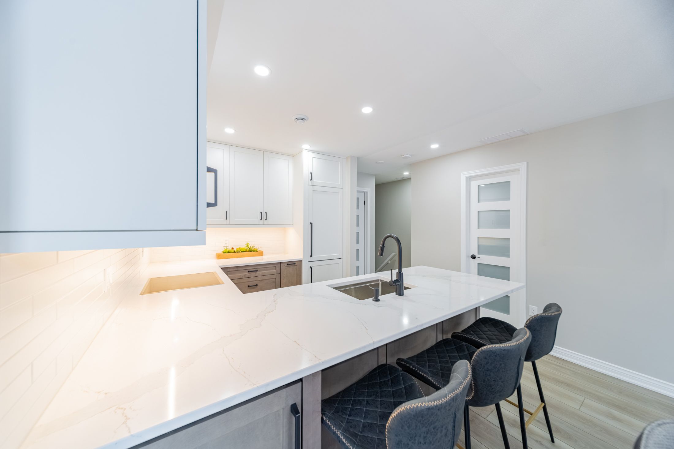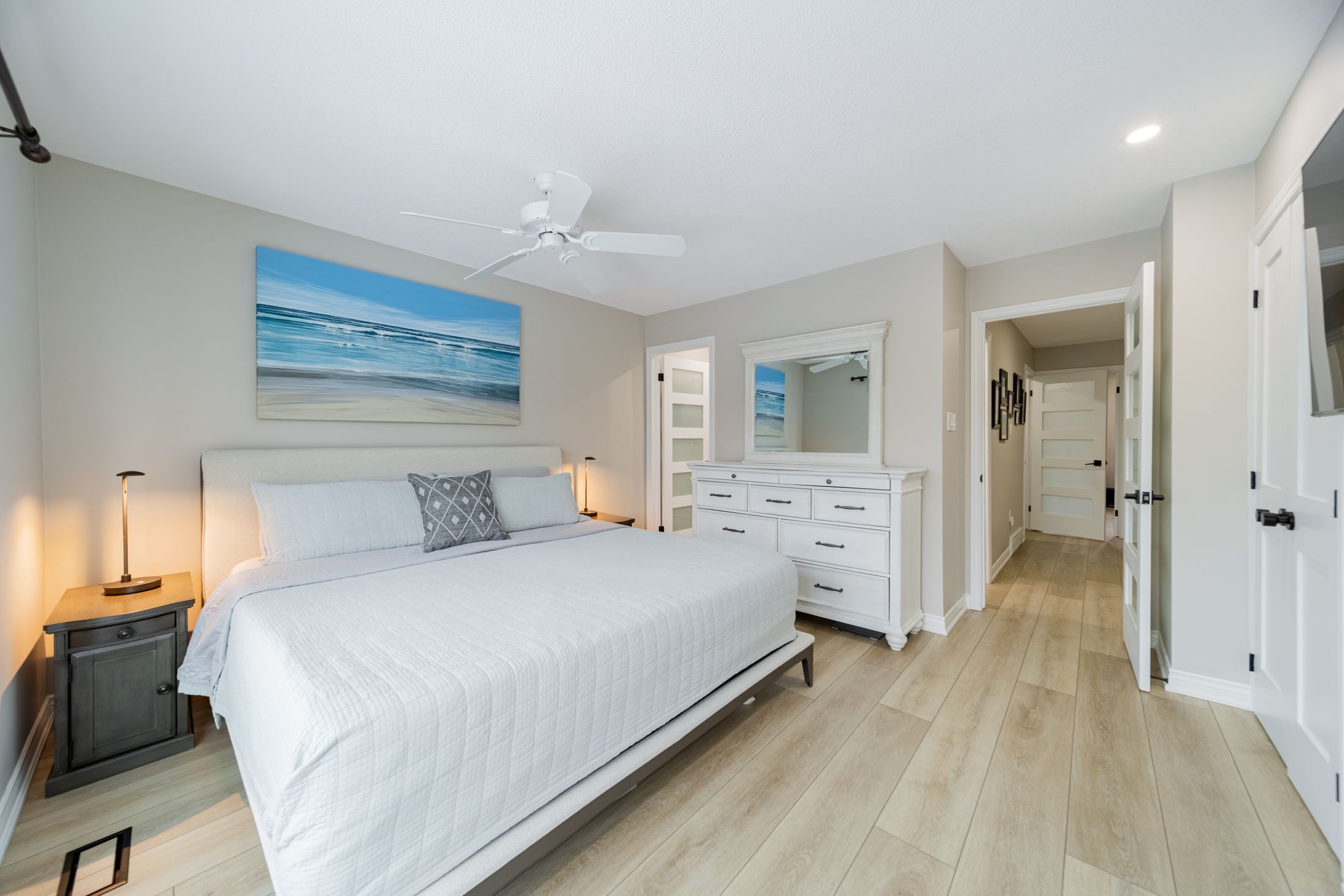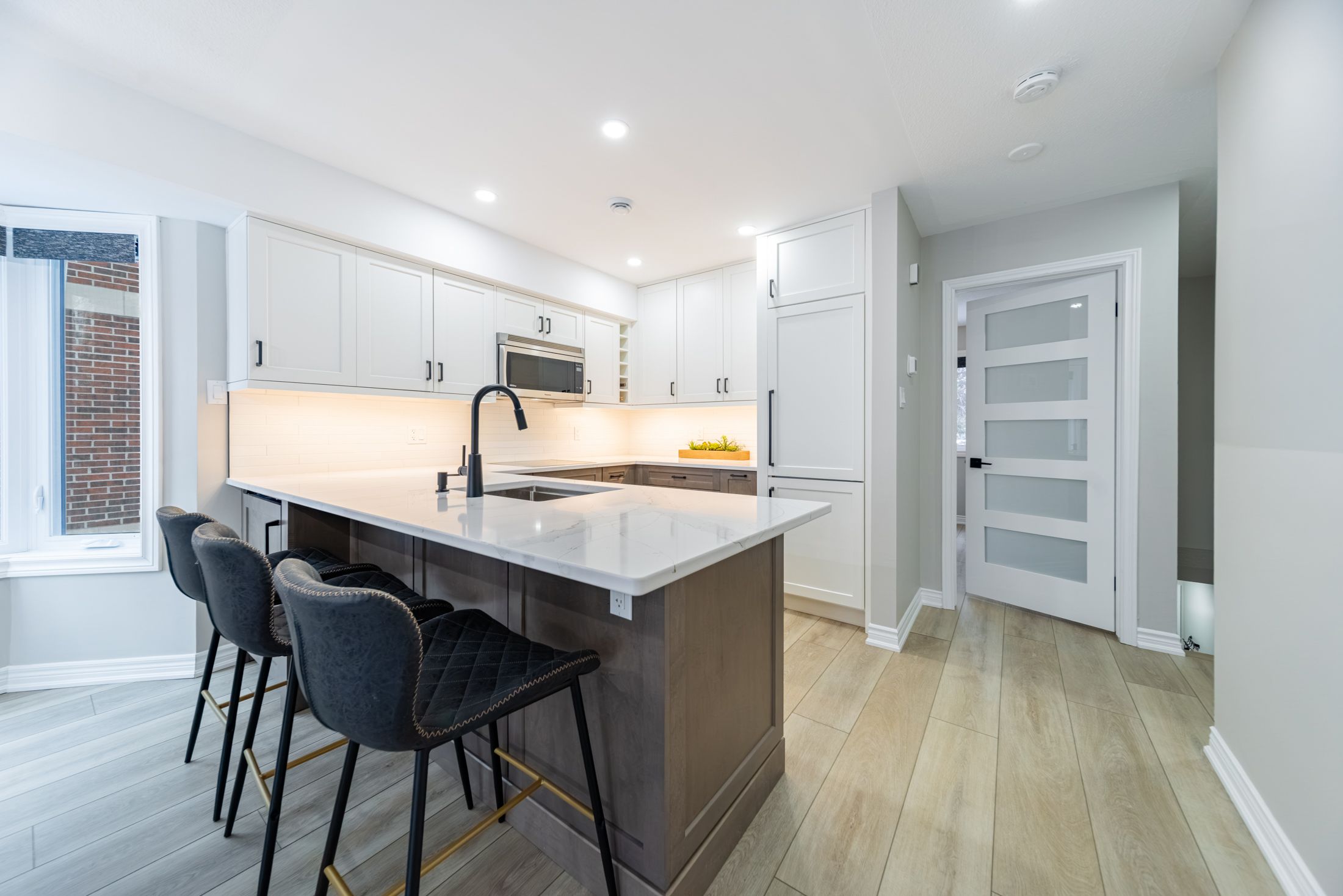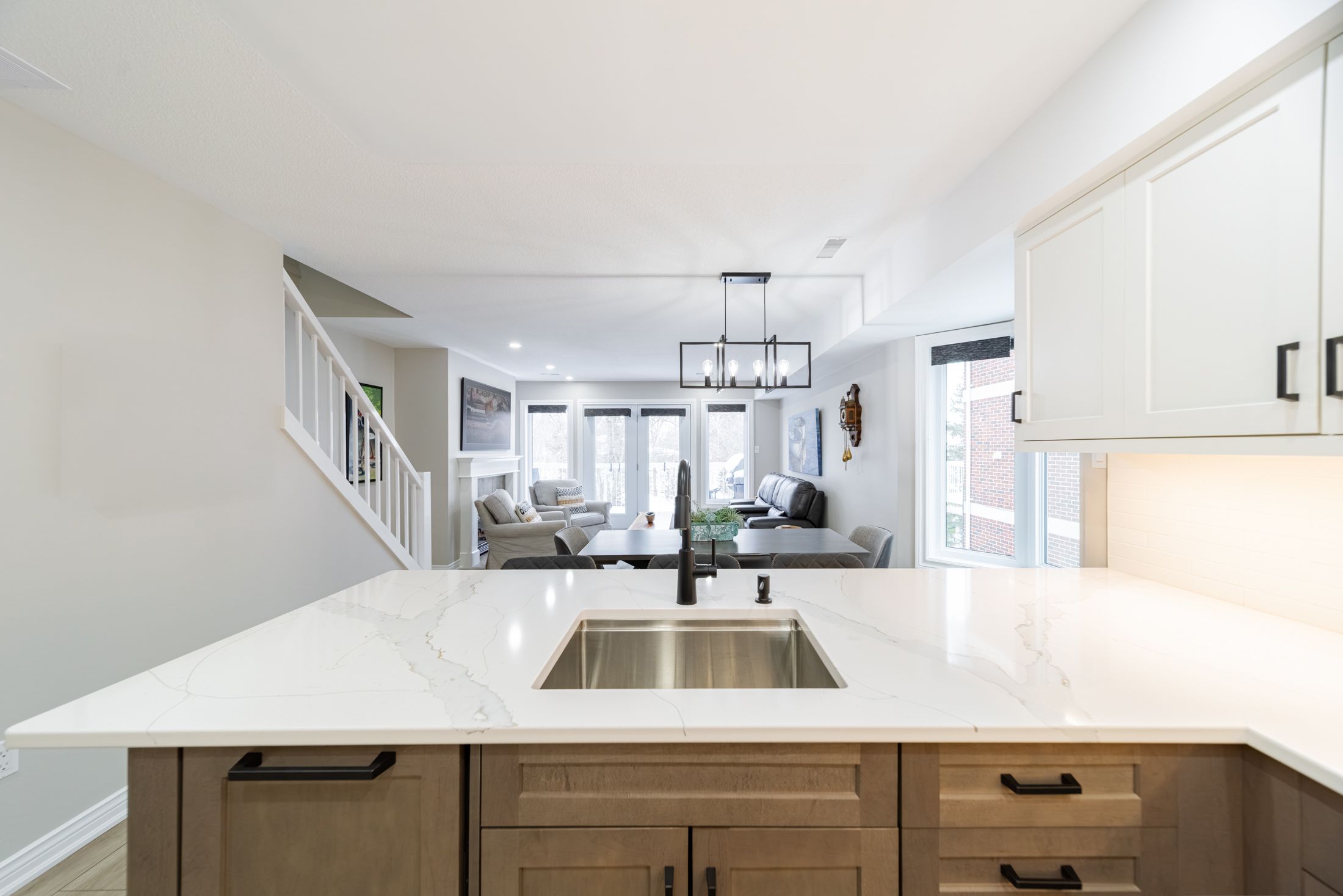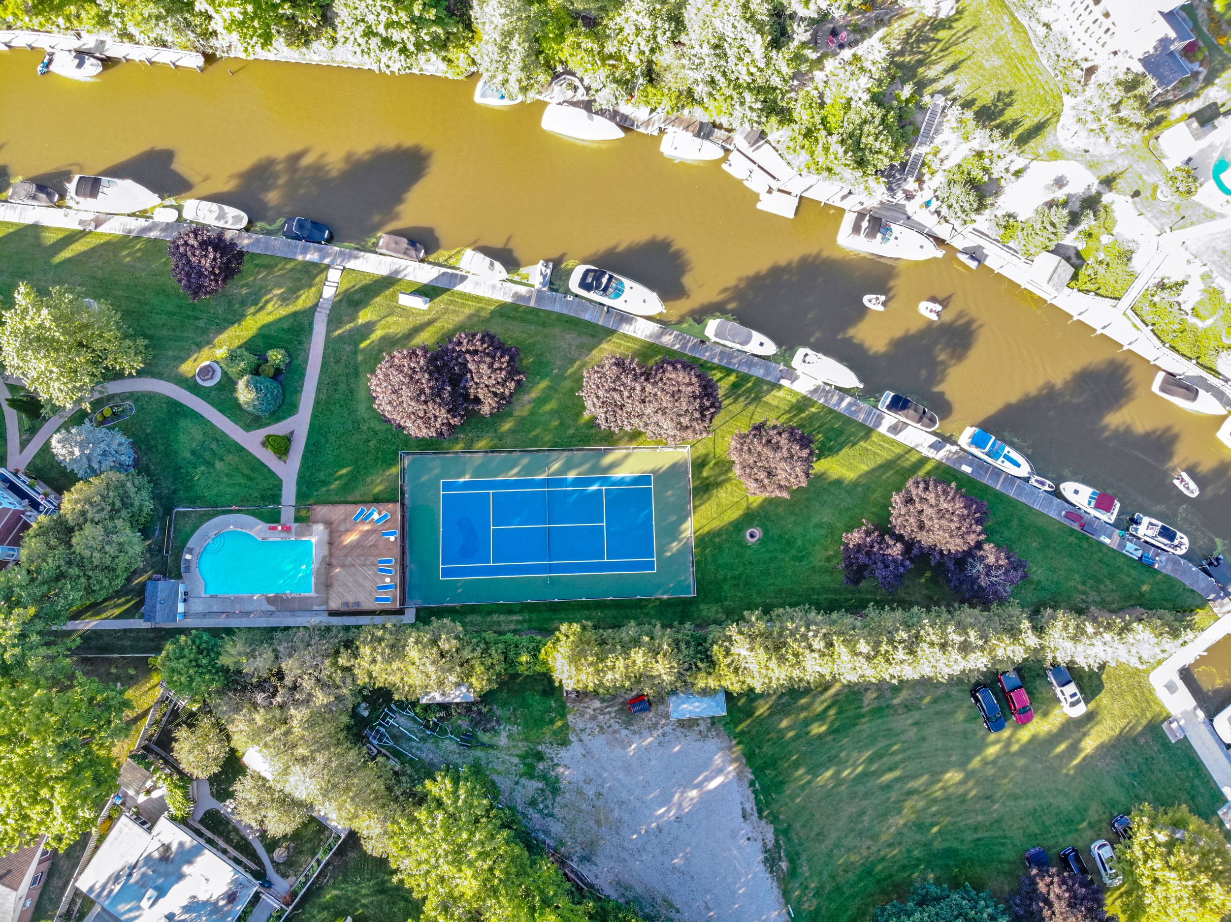 PREMIUM RENOVATED 2-storey 3 bed, 2 bath townhouse condo in Grand Bend's GATED WATERFRONT community, Harbour Gates. This complex is set on 3 ACRES & 700' OF WATERFRONT, featuring an inground saltwater pool, tennis court, meticulous grounds and a controlled entry gate. Owners enjoy first right of refusal on a 30' BOAT SLIP DIRECTLY OUT FRONT OF THE UNIT - all at a dockage rate of just $25/ft. Be on the water in minutes and cruise out to Lake Huron to enjoy turquoise waters or award winning sunsets - or enjoy a short stroll to South Beach, Main Beach, dining, shopping & the strip in minutes. Offering 1,233 SQ FT OF LIVING SPACE, this TURNKEY END UNIT is a true showstopper. SIGNIFICANT PREMIUM UPGRADES were completed in 2023 feat. a high quality kitchen with quartz counters, maple cabinetry, and PREMIUM APPLICANCES including a panel-ready LIEBHERR fridge, panel-ready AEG dishwasher, AEG induction cooktop & built-in oven, Panasonic built-in microwave, Marvel dual-zone wine/beverage cooler & much more. Patio doors lead to a raised deck overlooking the waterfront and boat slip. The living room features a fireplace with timber and tile surround, and custom built-ins. The gorgeous, bright primary suite includes waterfront views, large double closets, automatic blackout blinds, and a beautifully updated cheater ensuite bath with a low curb shower and high end finishings & fixtures. OTHER UPGRADES: Powder room ('23), mudroom cabinetry/bench ('23), laundry room cabinetry/counter/sink ('23), LG ThinQ washer/dryer ('23), furnace & owned tankless water heater ('23), luxury vinyl plank flooring ('22), interior doors, ('22) stair railing ('22), pot lights ('23), paint ('23). Positioned at the back of the complex, you will enjoy added privacy and no neighbours on one side. This end unit comes with a DEDICATED PARKING SPOT and ample visitor parking. Bonus: PET FRIENDLY ANDLOW FEES OF $245/MONTH incl. building insurance, maintenance, roof, windows, snow removal & property management.
