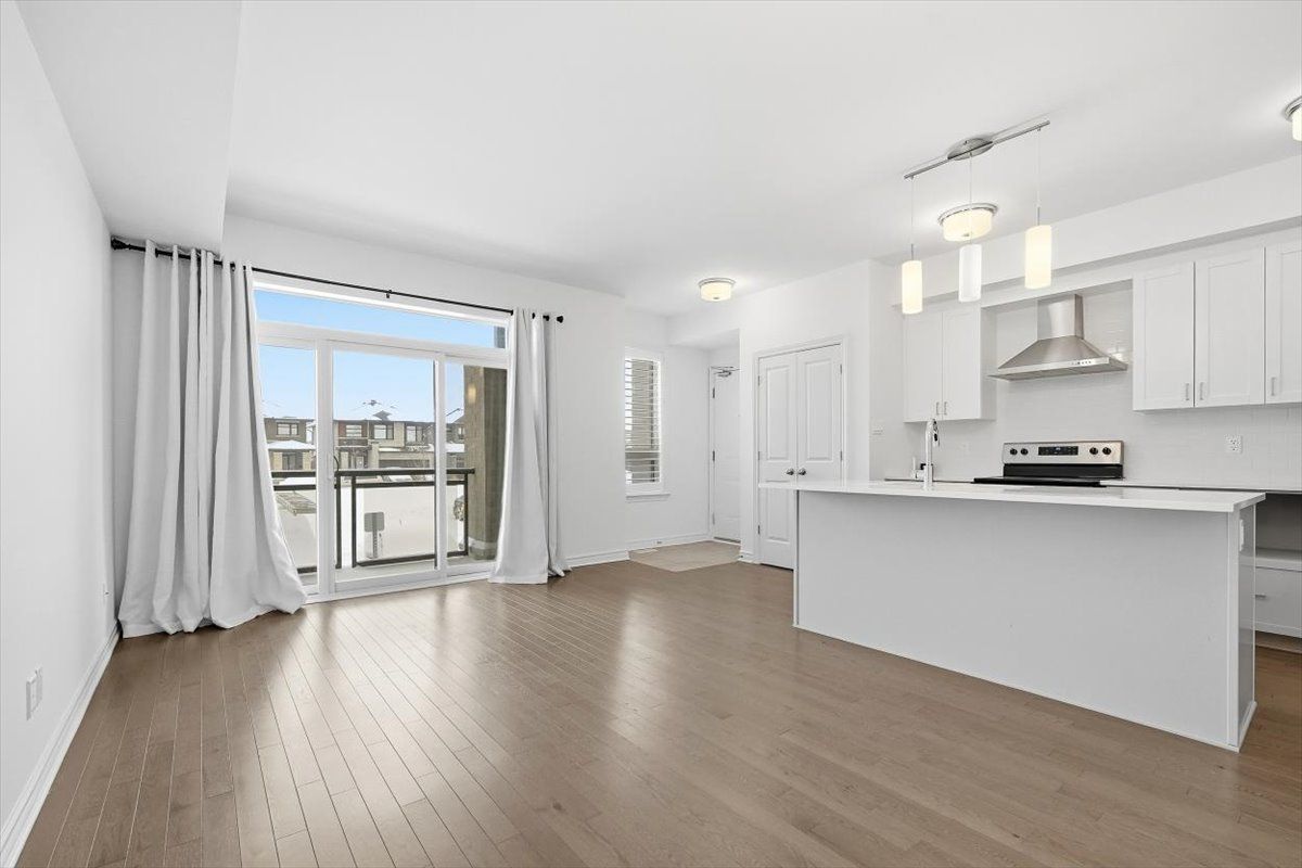 This modern & freshly painted 2 bedroom, 2 bathroom Richcraft condo nestled in Trailsedge, a tranquil Orleans neighborhood is surrounded by parks, nature trails, bike paths, and a variety of outdoor recreation. The open-concept main level is bathed in natural light and features 9-foot ceilings, pristine hardwood floors and a great layout. The kitchen offers beautiful white cabinetry, stone countertops, stainless steel appliances and an island with seating. The open-concept living/dining room area offers flexibility for various furniture arrangements and layouts, and it opens onto your own east-facing balcony to enjoy the sunrise on quiet mornings! Completing the main floor is a convenient partial bathroom with extra storage. On the lower level you will find a great size primary bedroom with a walk-in closet, a great size secondary bedroom, a full bathroom and laundry area. Low maintenance fees cover snow removal, bike storage, exterior landscaping/grass cutting and upkeep. Easy access to transit, shopping and amenities.