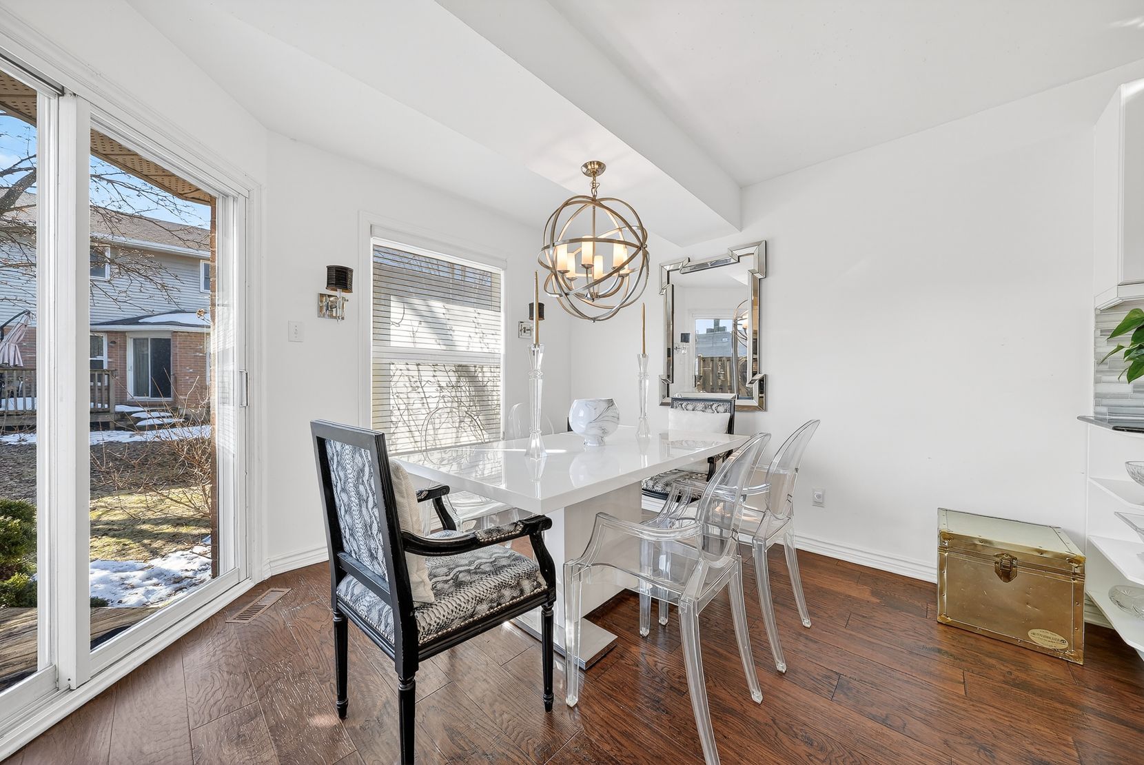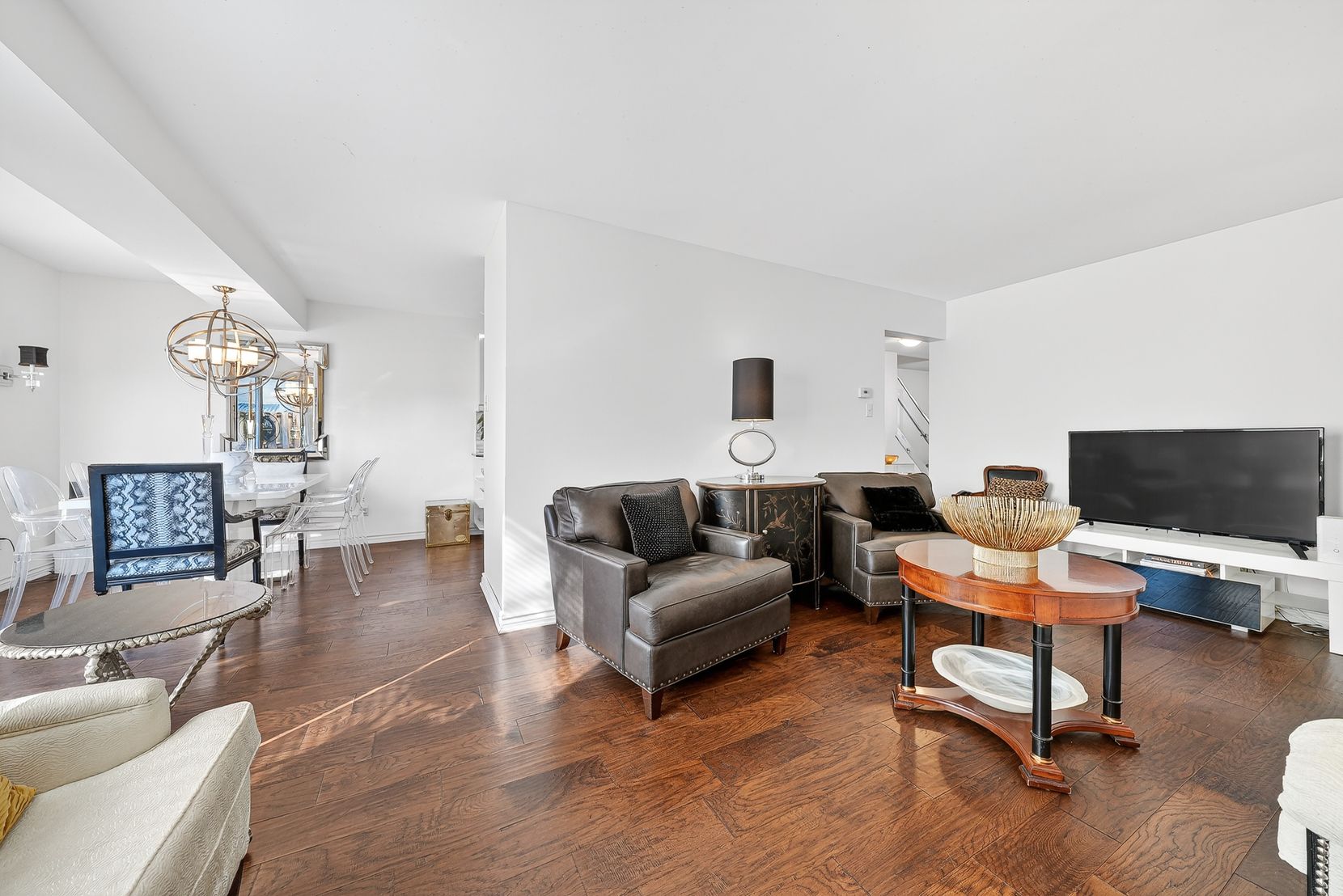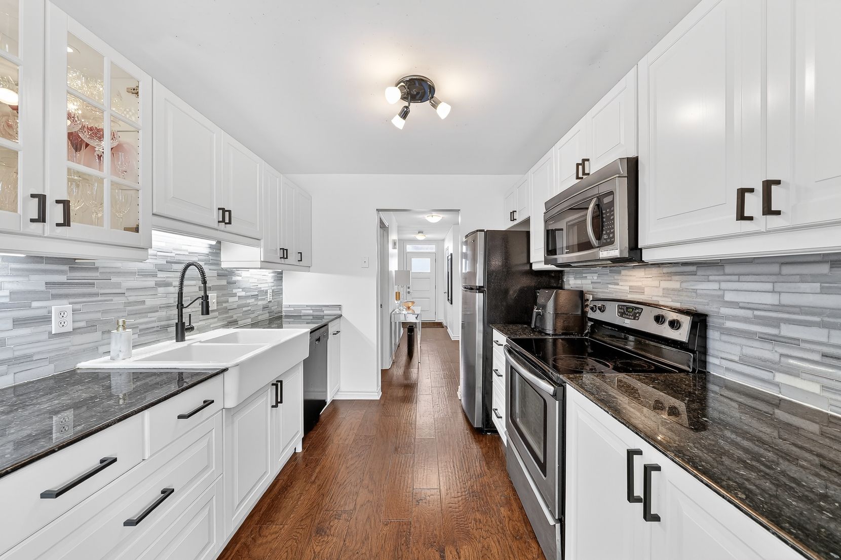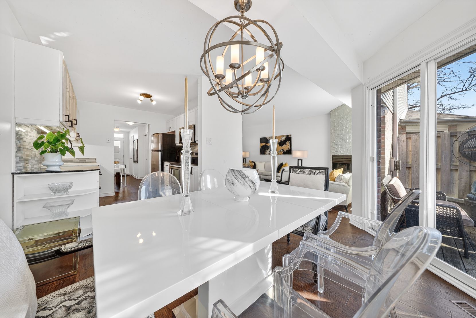 Tucked away in a quiet inside location, this two-storey condo townhouse offers exceptional privacy thanks to its position within the complex and the mature trees surrounding the common area. Meticulously improved throughout, the home features engineered hardwood on both levels and smooth ceilings in all major rooms (popcorn removed), with the exception of the two guest bedrooms. Upon entry, you're welcomed by a striking glass-and-metal stair railing that leads to the second level, creating a modern focal point in the foyer. The carpet-free interior - with carpet only on the staircase - includes a bright living room with a gas fireplace and neutral white walls that enhance the natural light. The kitchen is clean and well maintained, featuring hard surface countertops and a classic farmhouse-style sink, along with generous cabinetry and storage. Upstairs are three well-sized bedrooms, including a spacious primary retreat with a walk-in closet and abundant closet space throughout the home. The beautifully renovated ensuite offers a walk-in shower, and the main bath has also been tastefully updated. The finished lower-level rec room provides additional flexible living space, ready for your personal décor. This pet-free home also includes an attached garage and low monthly condo fees of $335. Ideally located close to grocery stores, restaurants, schools and offering quick access to major highways for easy commuting. Pride of ownership is evident throughout.