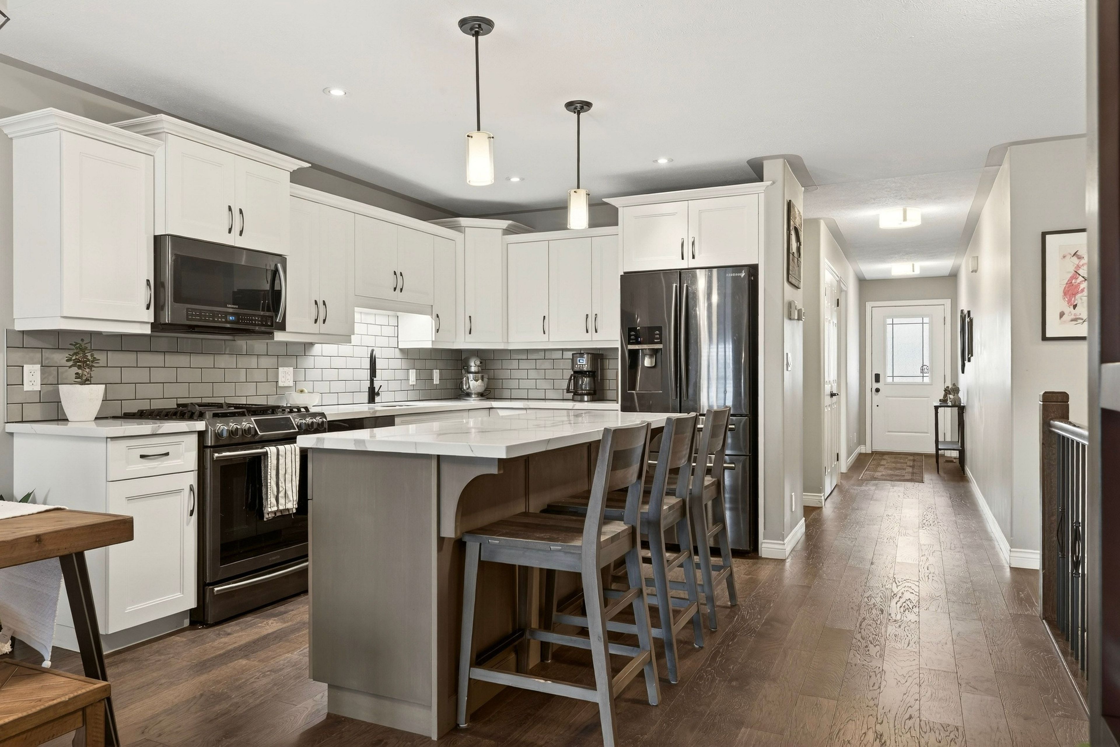 Turnkey, stylish and quietly showing off. 67 MacNeil is spacious, bright and ready to flex! This upgraded Boer Construction bungalow serves up 2+1 bedrooms, a fully finished basement, and a layout that actually makes sense. Hardwood floors, quartz countertops, modern finishes, and California shutters keep things looking sharp, while the kitchen (hello upgraded backsplash and charcuterie-approved fridge) is ready to host your next wine night. The basement brings the bonus space; rec room, extra bedroom, full bath, and a flex area that can be your gym, office, or "I'll figure it out later" zone. Fully fenced backyard? Check. Gas BBQ hookup? Obviously. Walkable to shops, gas, and everyday essentials? You bet. Super welcoming street in a neighbourhood you'd be proud to call "your community".