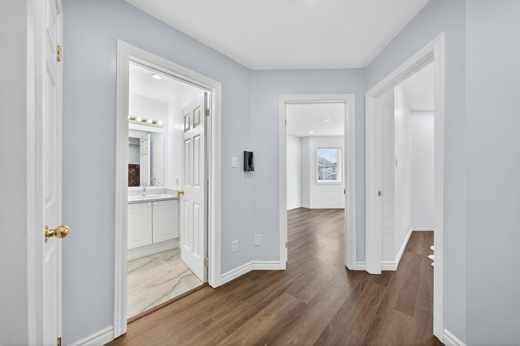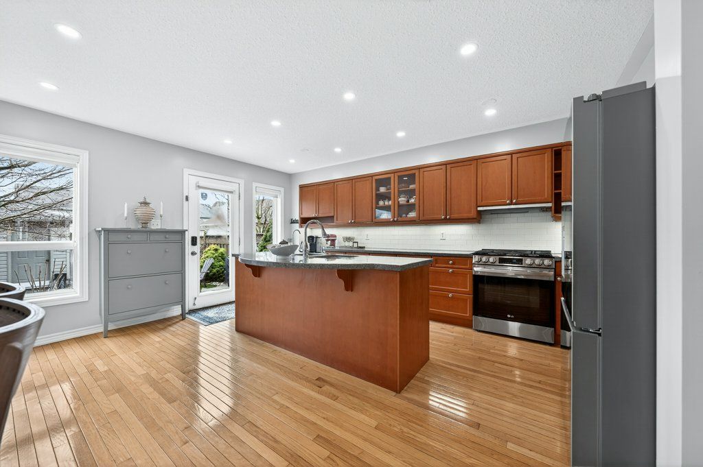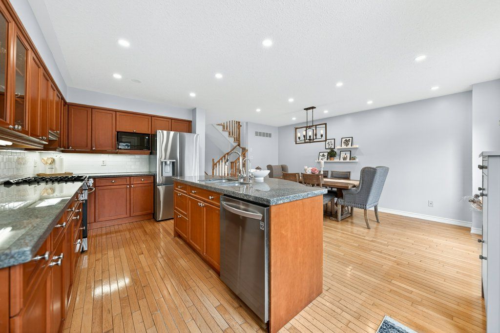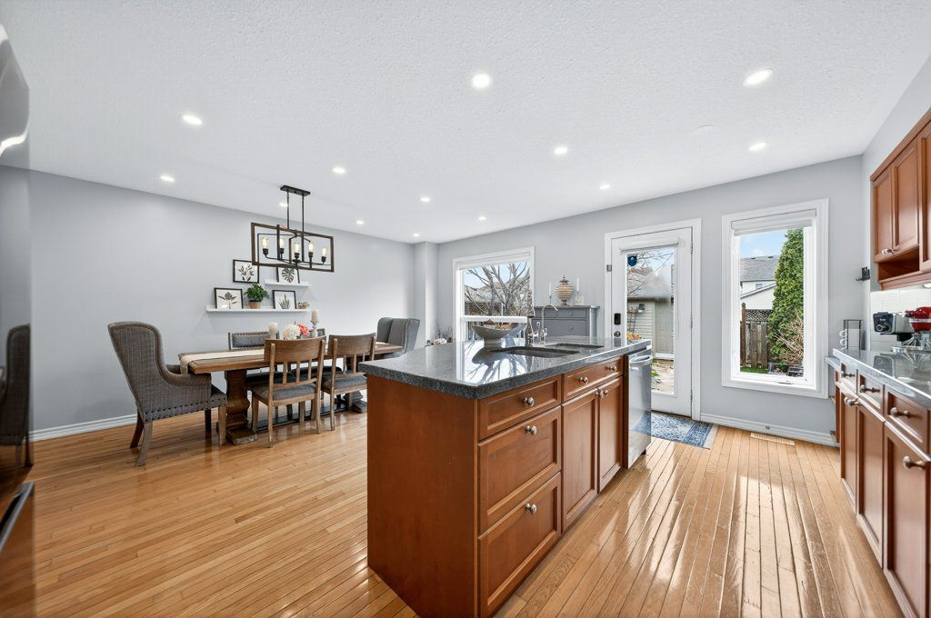 Welcome to this beautifully updated "freehold" home in the highly sought after Eastbridge community of Waterloo, a rare opportunity in an area known for its amazing schools and low turnover. This move in ready property showcases extensive upgrades throughout, including a kitchen with maple cabinetry, granite countertops, stylish new backsplash (2025), and newer stainless steel LG appliances (2024-25), along with a dedicated drinking water filtration system (2025). The home features gleaming oak hardwood floors on the main level, new laminate flooring upstairs (2025), and three spacious bedrooms complemented by two fully renovated 3-piece bathrooms (2025) and an updated powder room (2024) on the main floor. Major mechanical upgrades completed in late 2024 include a heat pump, A/C, humidifier, on-demand water heater, and water softener, which are all owned, plus a Samsung smart washer and dryer (2024). Freshly painted home (2025-26). This home also offers a detached garage (roof 2025) with additional driveway parking. Step outside to a low maintenance backyard retreat with a large flagstone patio, water feature, and plenty of sunshine, perfect for relaxing or entertaining. With a lot of peace of mind and a stunning community, this is a no brainer!