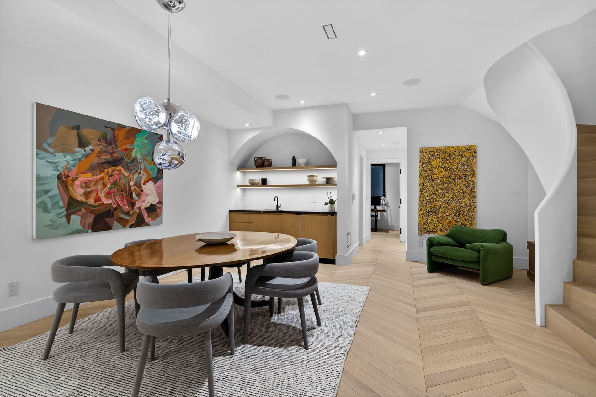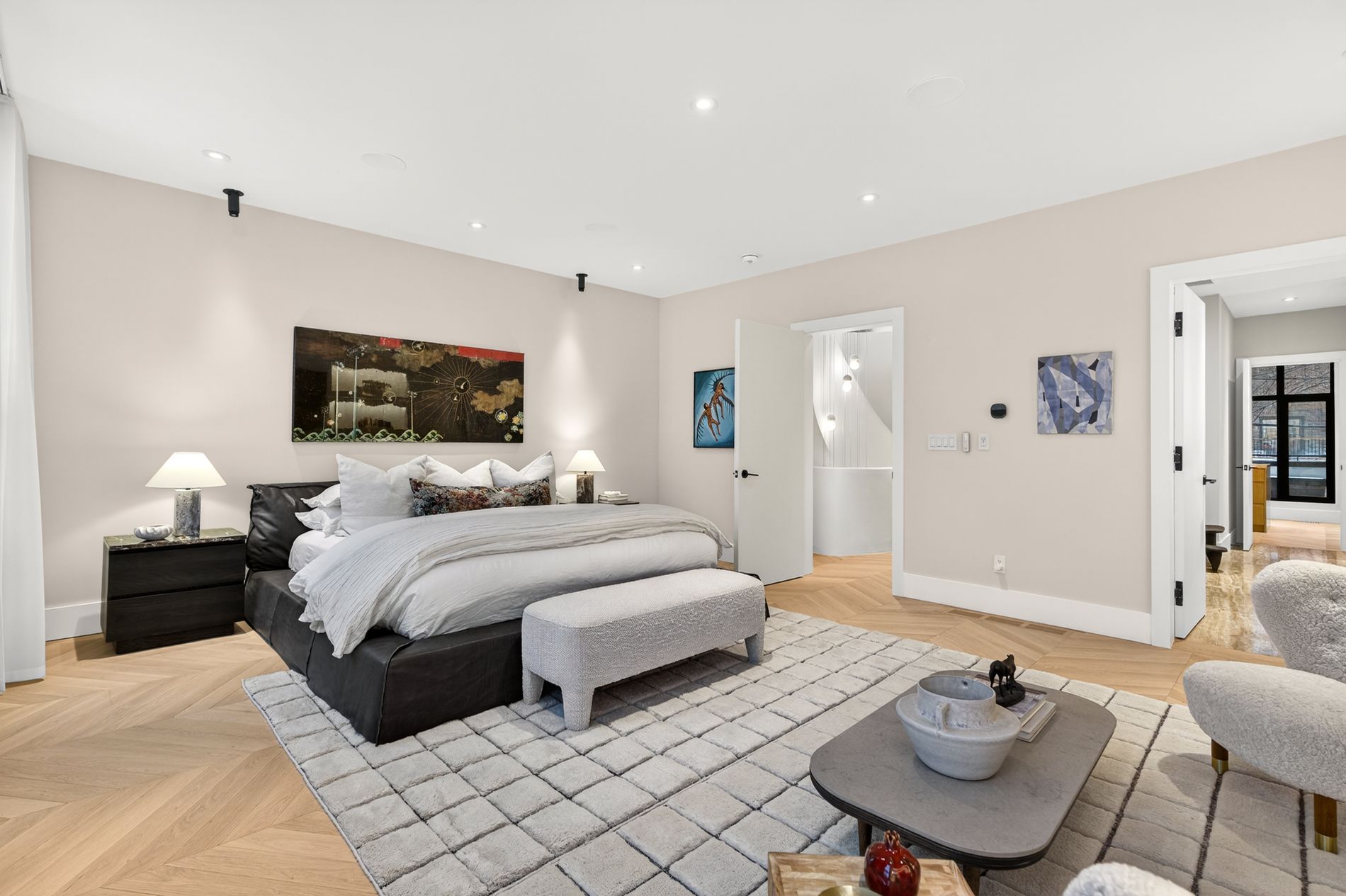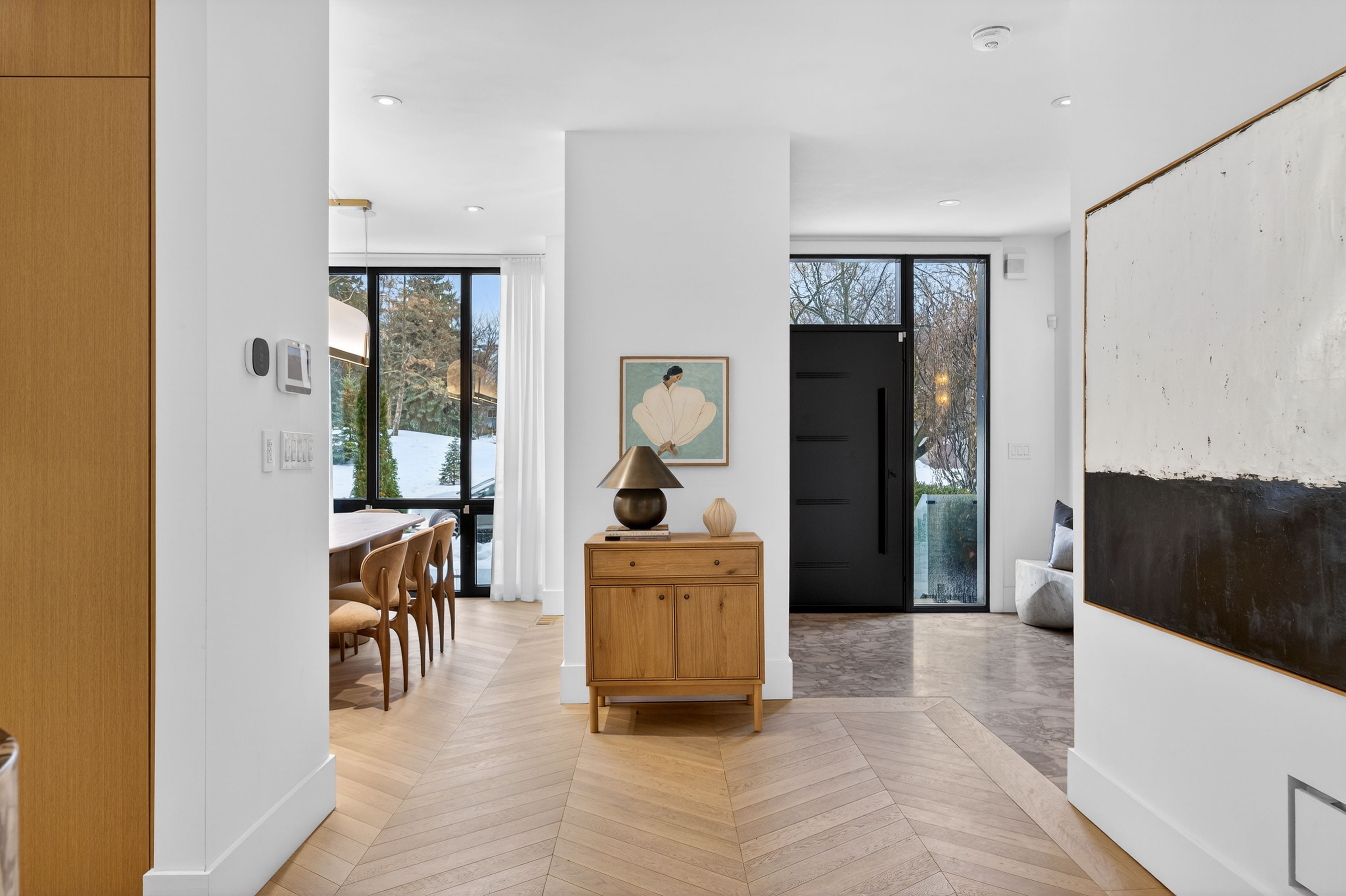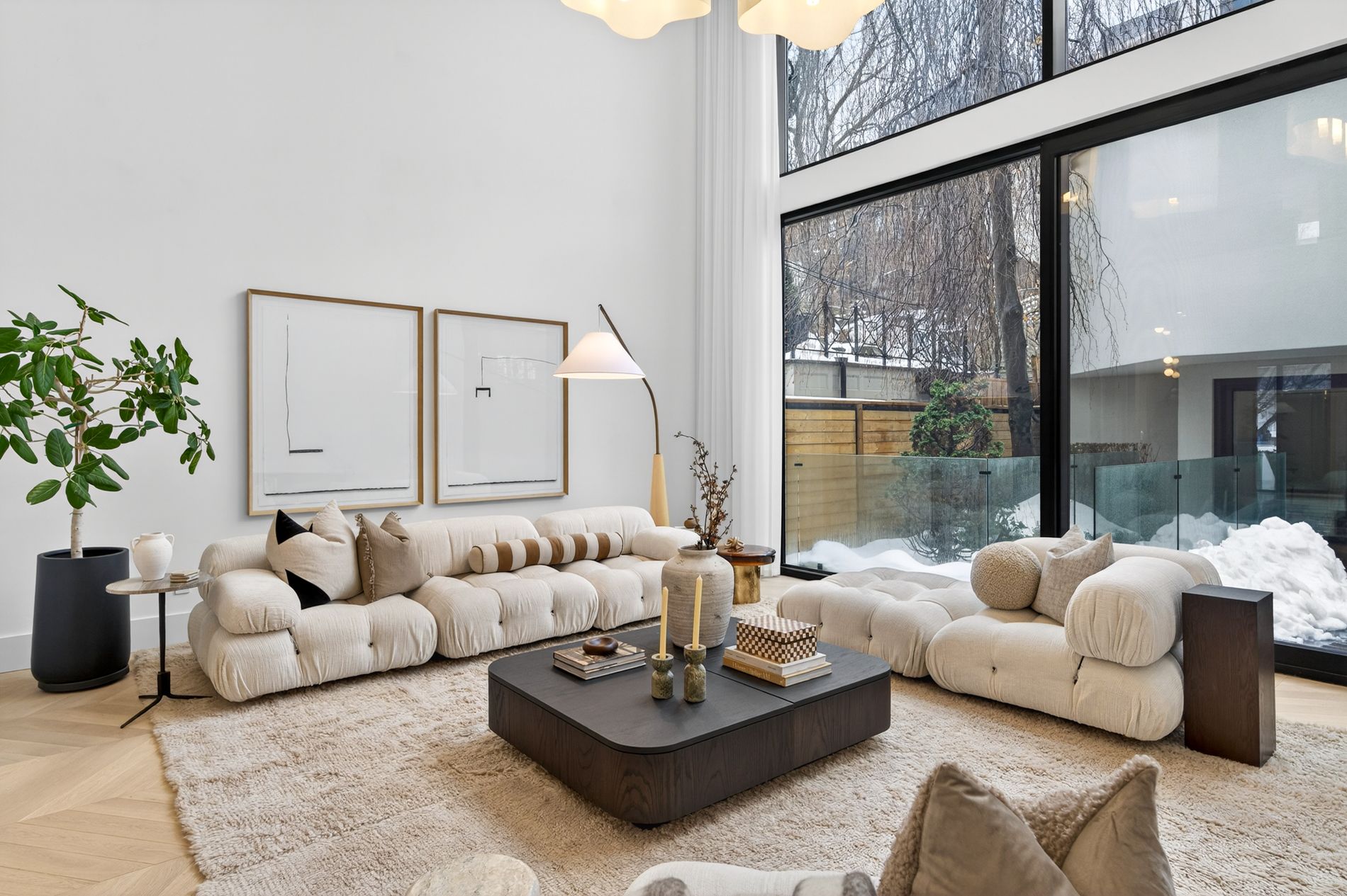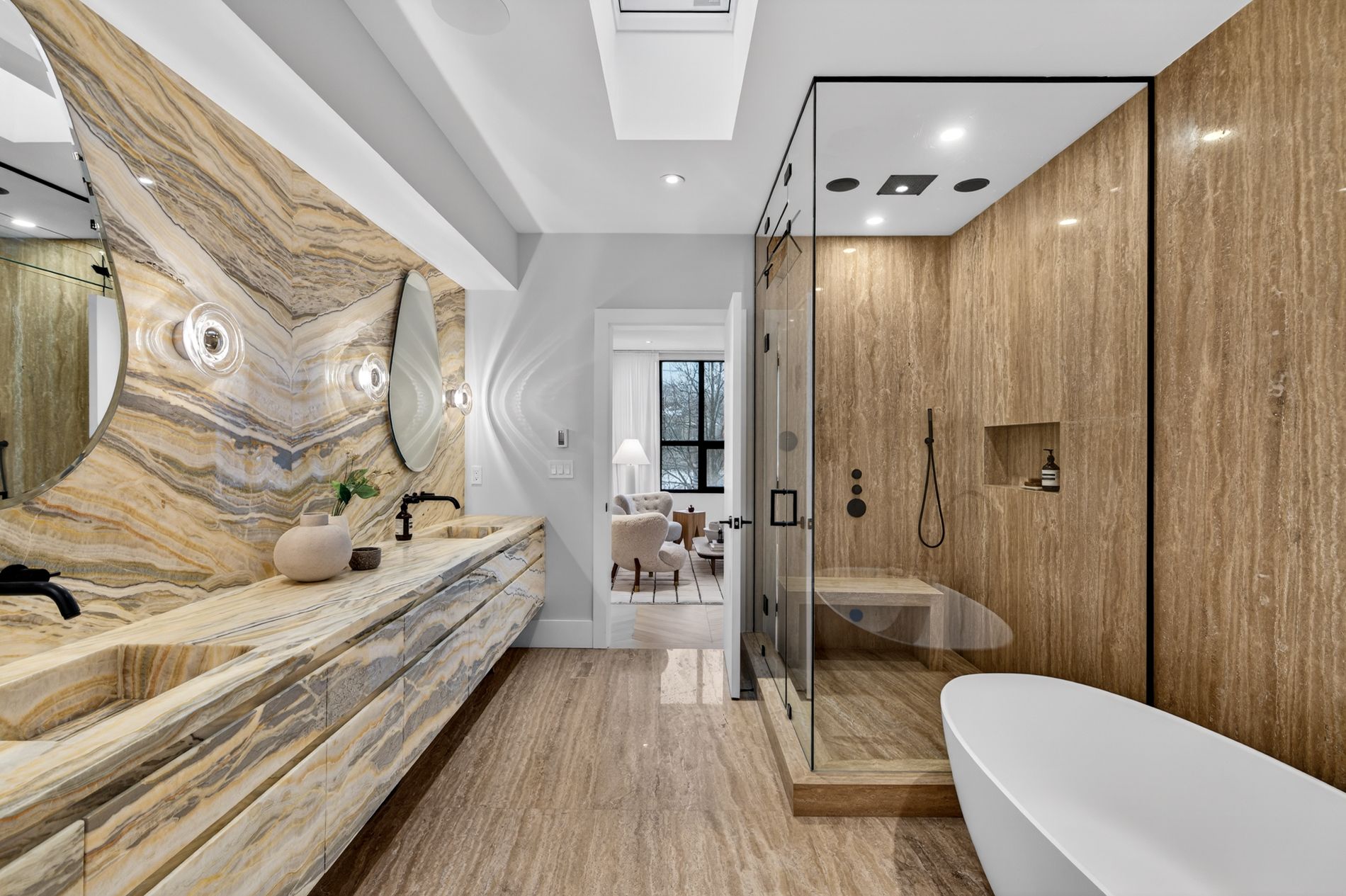 Set on the dividing line of Yorkville and Rosedale, 63 Pears is a remarkable custom home that offers a unique proposition to the Toronto marketplace as it is one of a dwindling number of luxury residences in the central core with protected views into greenspace. Completed in 2025, this truly spectacular home offers 3,562 square feet of above-grade living, complemented by a fully finished lower level and a private gym beneath the detached garage. A central elevator connects all floors, including the rooftop terrace, providing seamless accessibility and the opportunity to age in-place. The foyer dazzles at first glance with heated terrazzo flooring, while a full wall of rift-cut white oak millwork frames two large double closets, while the dining room offers endless park views through the floor-to-ceiling glass window and features a custom wine display for over 200 bottles. At the centre of this home, the kitchen is anchored by a dramatic ten-foot island wrapped in Calacatta viola rose marble, including its drawer fronts, while custom rift-cut white oak cabinetry lines the perimeter. The living room unfolds beneath soaring 19-foot ceilings and a striking wall of south-facing glass. A gas fireplace acts as a form of art with a custom surround that expands to the ceiling while the oversized sliding doors connect to the private landscaped gardens, the detached garage and a fully finished and heated gym! On the second floor, a sunlit south-facing library overlooks the cascading living room, while two bedroom suites each hold individual marble-clad ensuites and personalized closet systems. The third floor is dedicated entirely to the primary suite, with a marble-clad ensuite and an incredible dressing room with a centre island and south-facing walk-out. On the roof, an unbelievable terrace awards an oasis of privacy and an exciting entertaining space overlooking the park, all connected via the elevator. Beneath the garage, a home gym/studio is heated for year-round use!