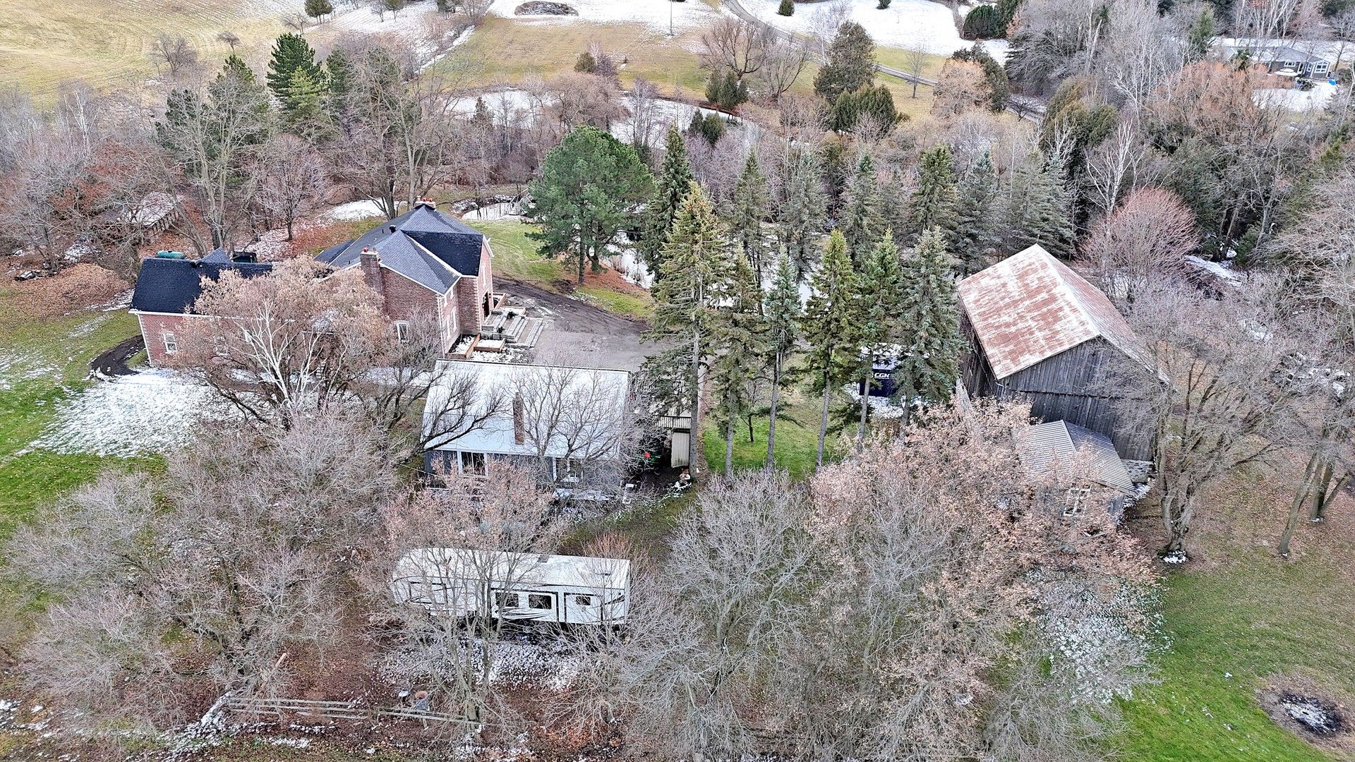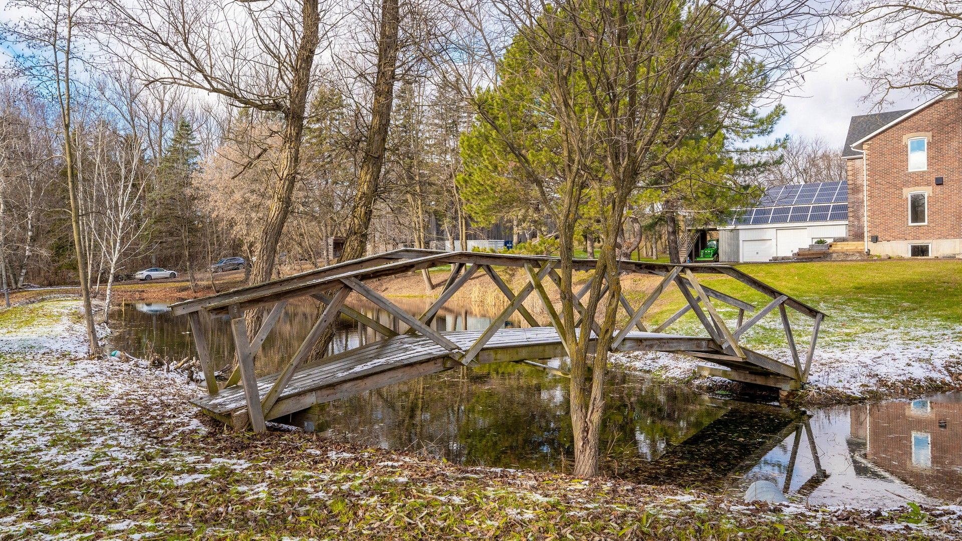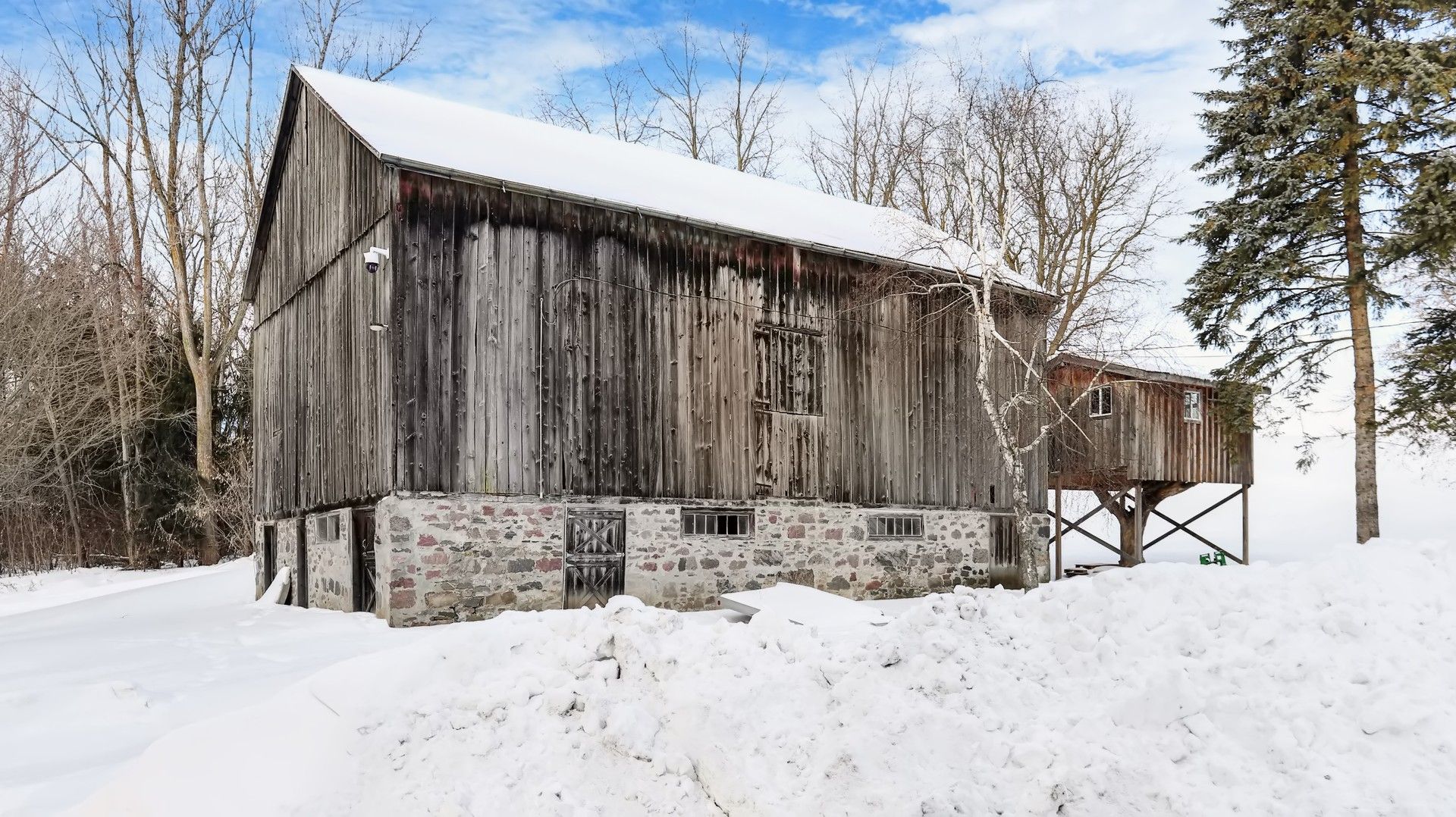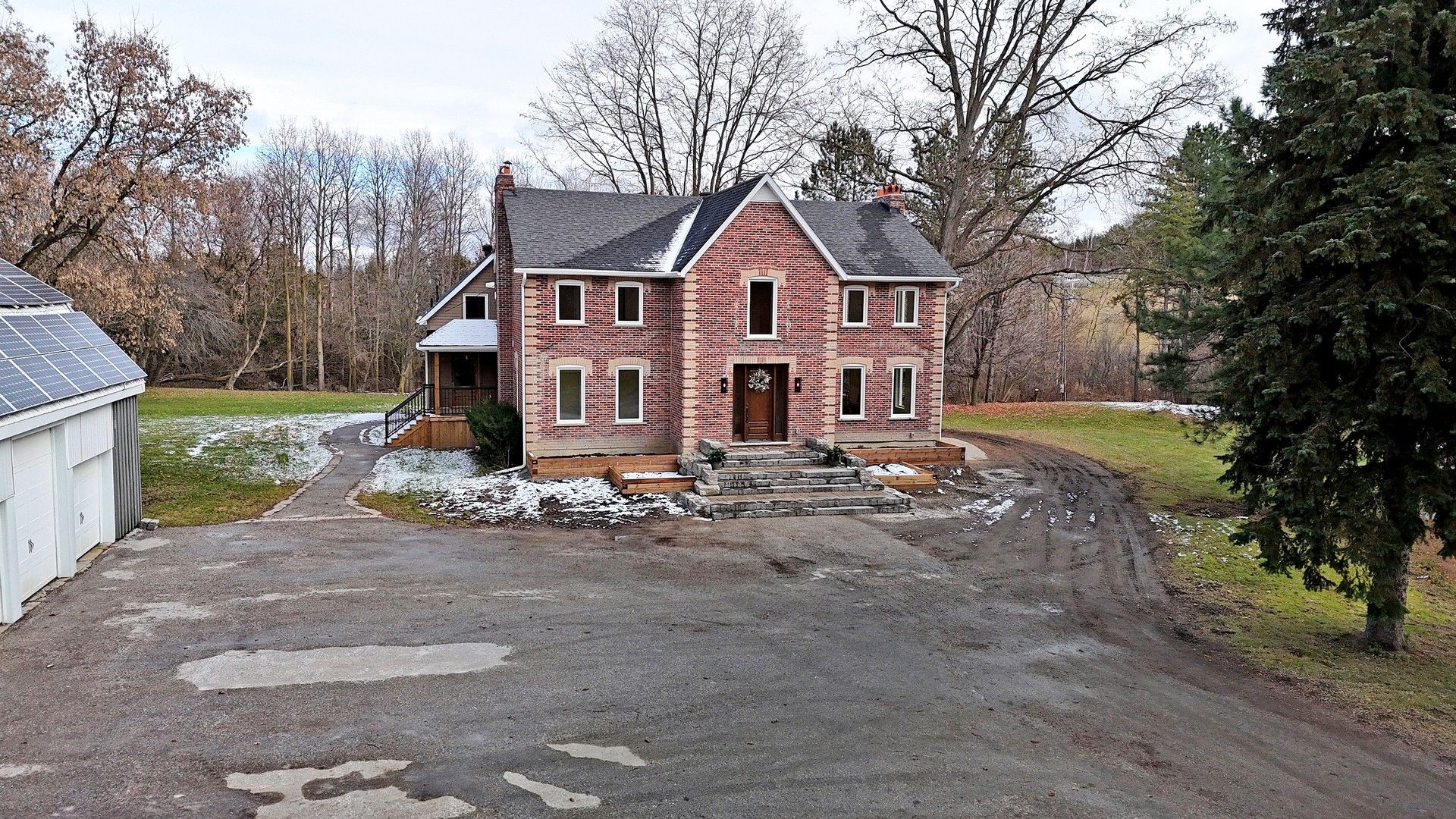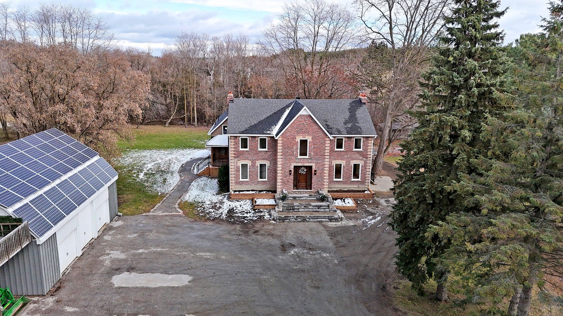 Century farmhouse charm meets modern luxury - enter through a private, winding tree-lined driveway loading to this breathtaking 12-acre property of rolling hills and tranquil ponds, minutes from Highways 400 and 27 in prestigious King Township. Offering over 7,000 sqft of finished living space, this fully renovated home was taken to the studs and rebuilt with exceptional craftsmanship. Soaring ceilings and expansive windows frame picturesque views, while the open-concept layout delivers bright, functional living without compromising comfort. The chef's kitchen showcases premium Thermador appliances, custom cabinetry by Povey Custom Woodworking, and a large island made for gathering. Thoughtfully upgraded throughout with imported European tile, designer finishes, new plumbing, electrical, HVAC, geothermal-ready systems, and solar power income for added efficiency and value. Leathered granite fireplaces, smart lighting, high-end fixtures, and a restored sauna elevate the experience. Outdoors, enjoy a new covered deck and professionally landscaped grounds. A carriage house offers parking for 3+ vehicles with a private 2-bedroom apartment above, complemented by an original 1800s barn. A separate home office with bedroom and ensuite ideal as an in-law or nanny suite includes additional lower-level walkout space. Crafted by award-winning Gatti Brother Renovations, this is more than a renovation it's a legacy home, reimagined. See attached full list of renos and features. A carriage house includes second floor living quarters. Private trails lead to the meandering Schomberg Creek and across a charming bridge to a serene pond - perfect for summer swims or winter hockey games. This is a property for those in search of something truly special.