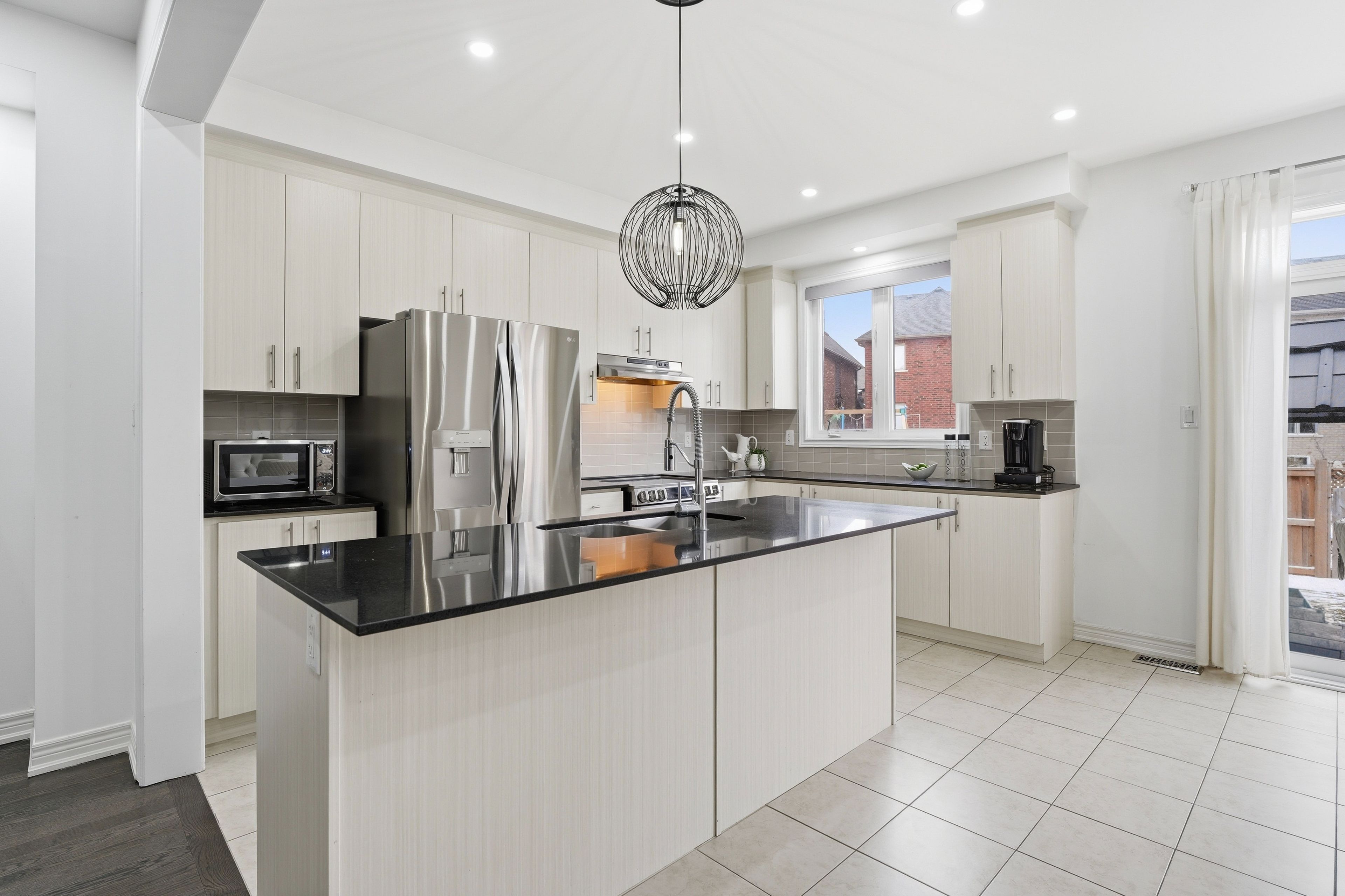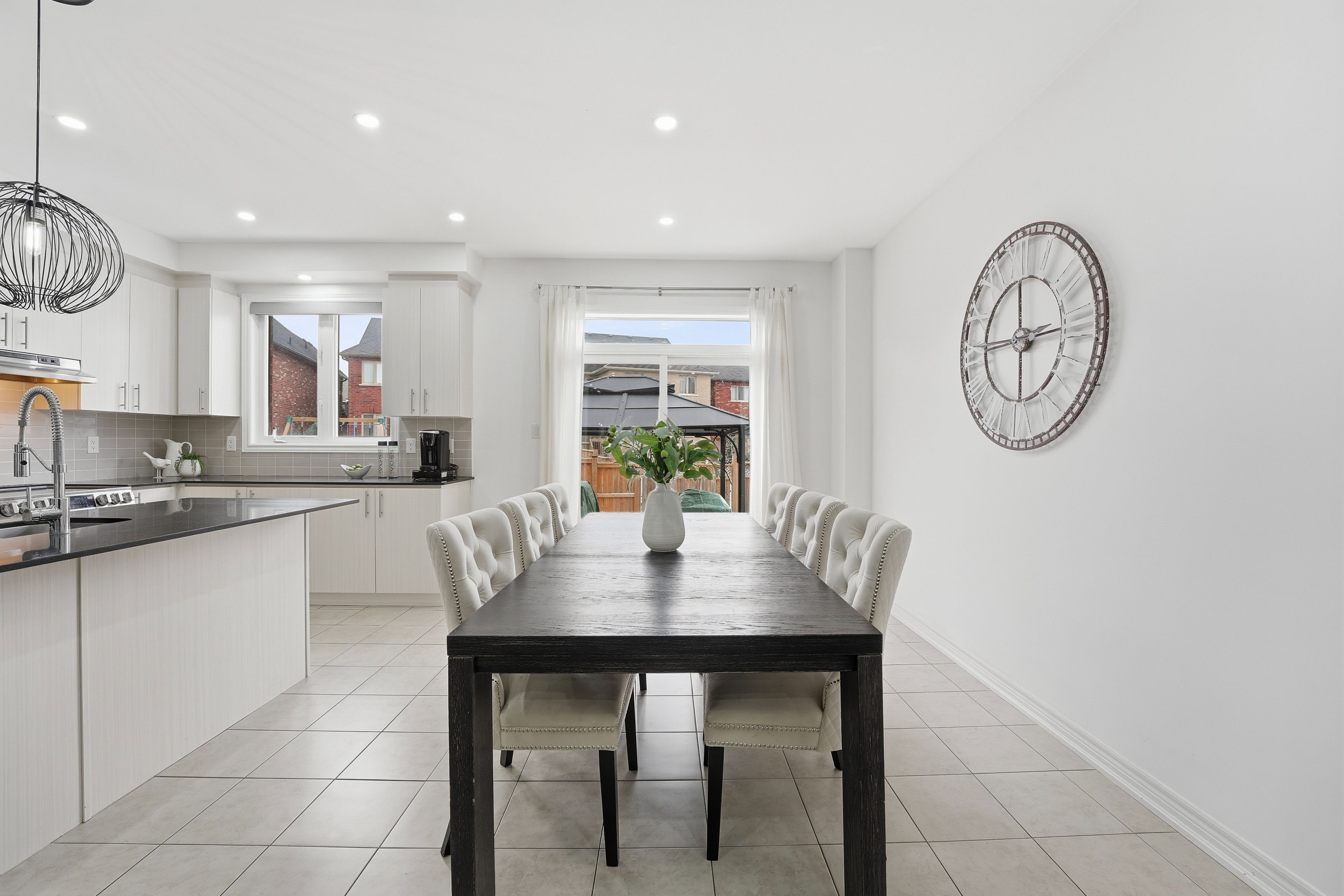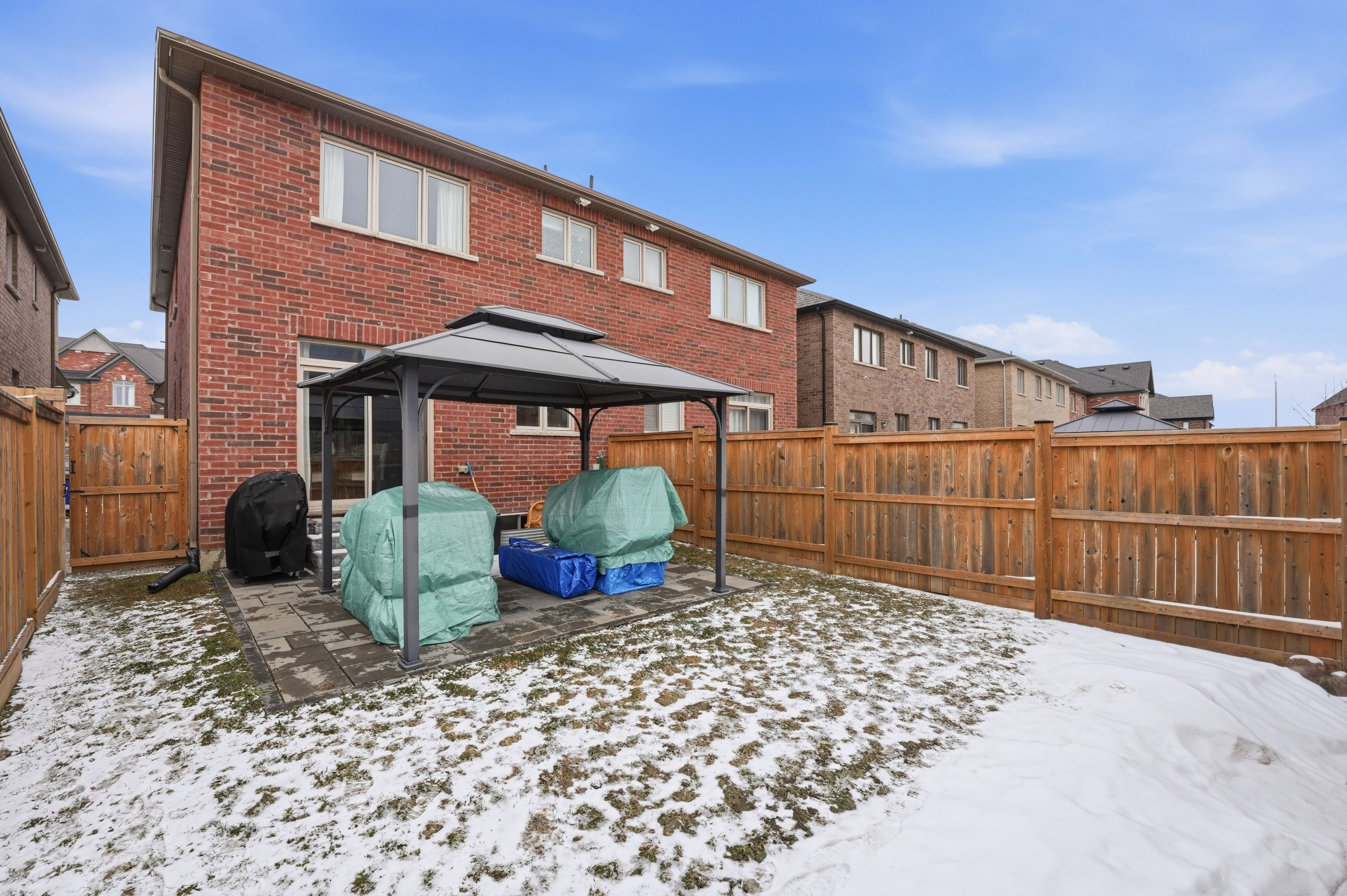 Rare offering in Alcona. This 4 bedroom semi detached home, built in 2017, delivers the space buyers are searching for without the detached price point. The open concept main floor features engineered hardwood, pot lights, and a fireplace that anchors the living space. The kitchen is finished with ivory cabinetry, quartz countertops, stainless steel appliances, and a centre island with breakfast seating. Walk out from the eat-in area to a fully fenced yard with gazebo and interlock. Upstairs offers four well sized bedrooms, including a primary with walk-in closet and a 5piece ensuite with double sinks, separate shower, and soaker tub. The finished basement adds a recreation room, 3 piece bathroom, and additional storage. Located minutes to Lake Simcoe, beaches, parks, and schools. This is where lifestyle meets affordability.
