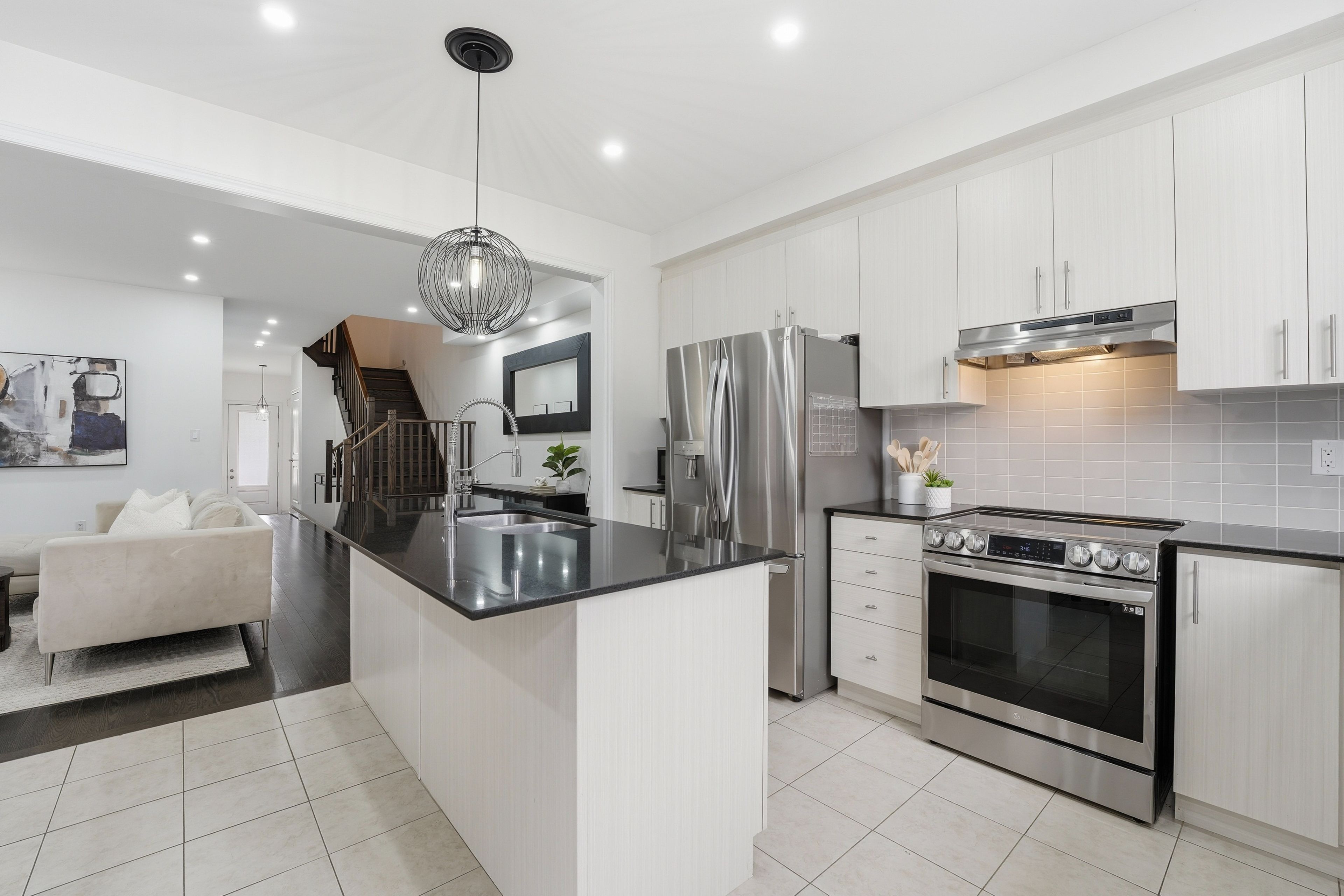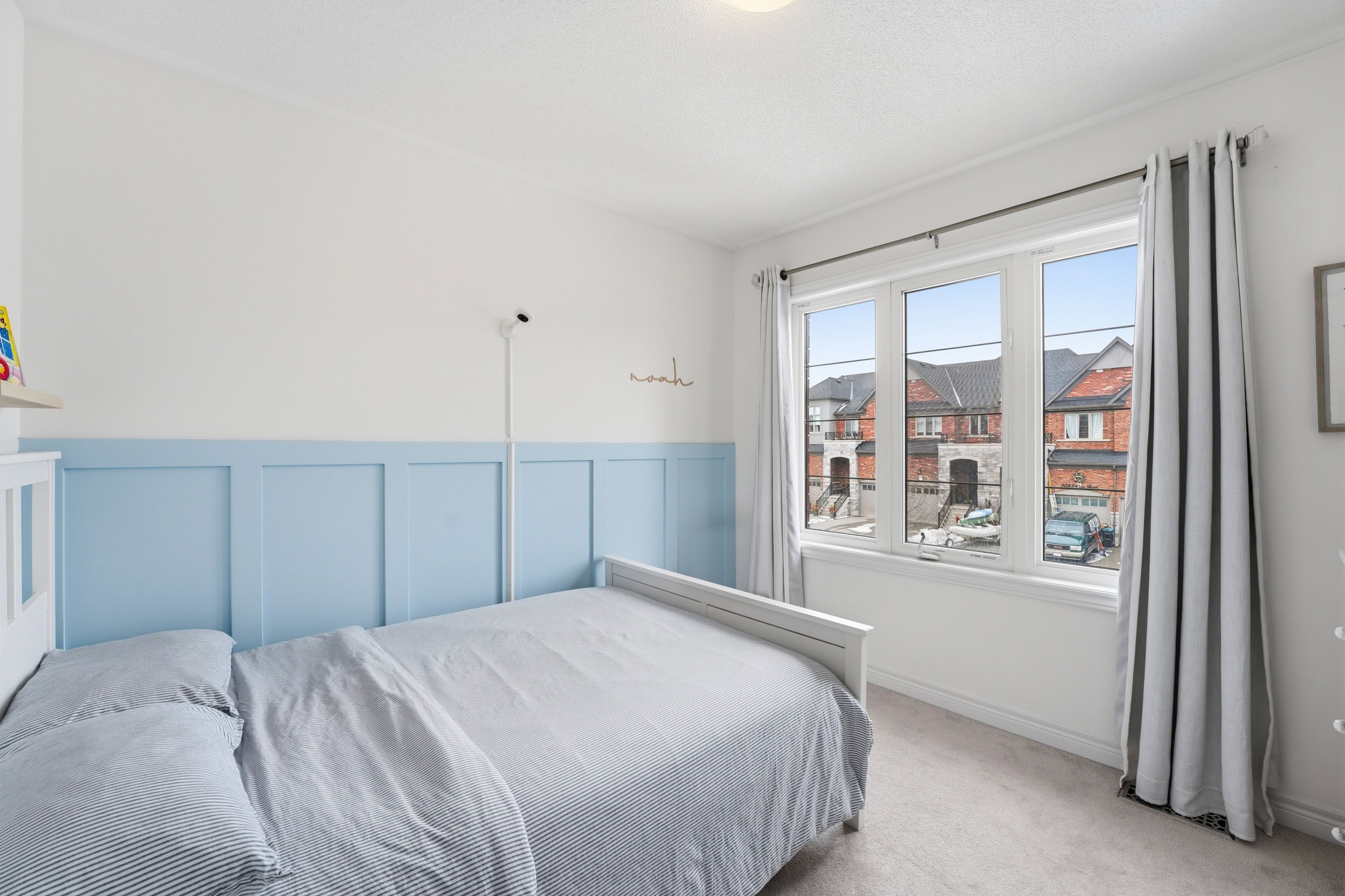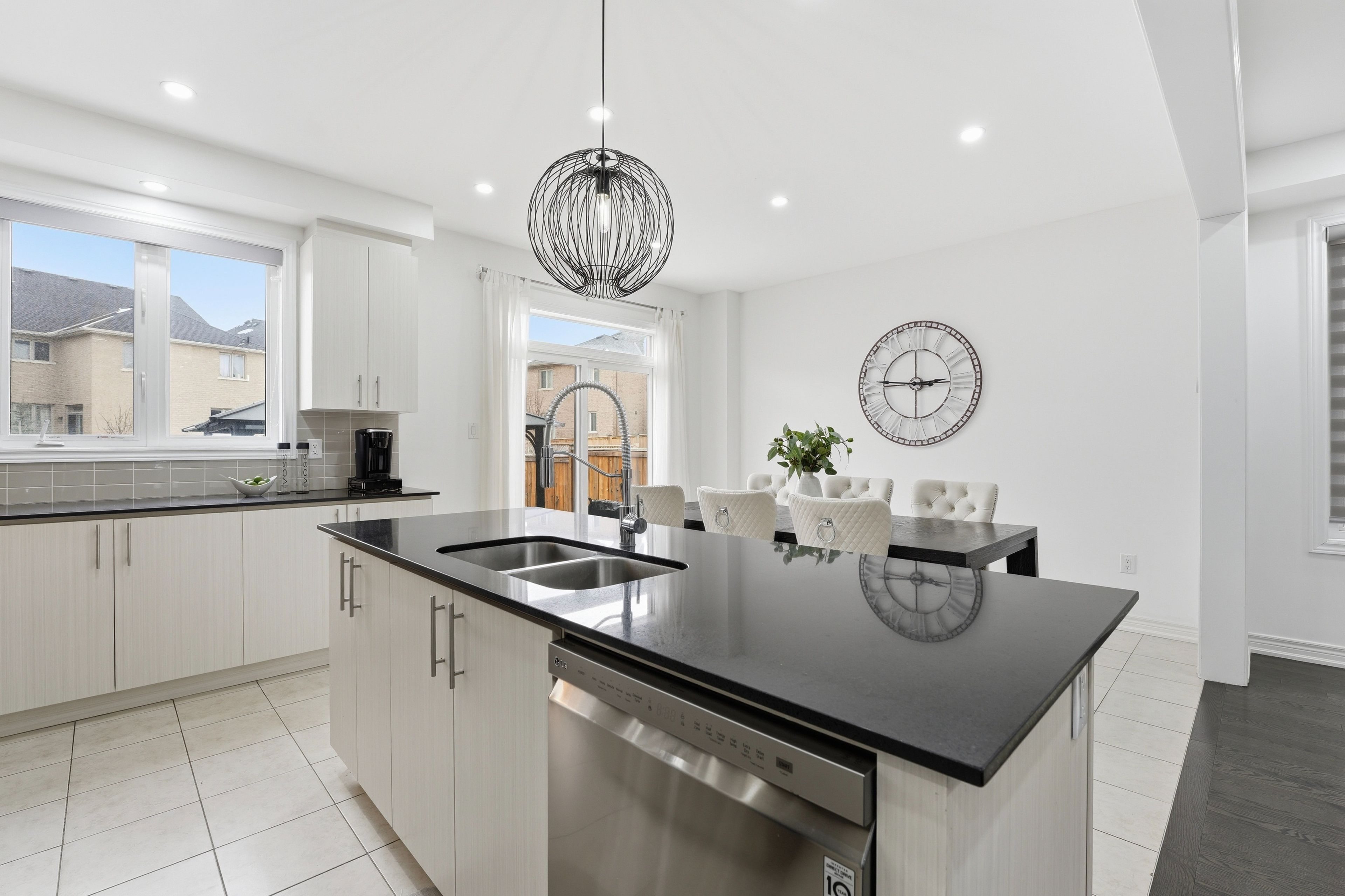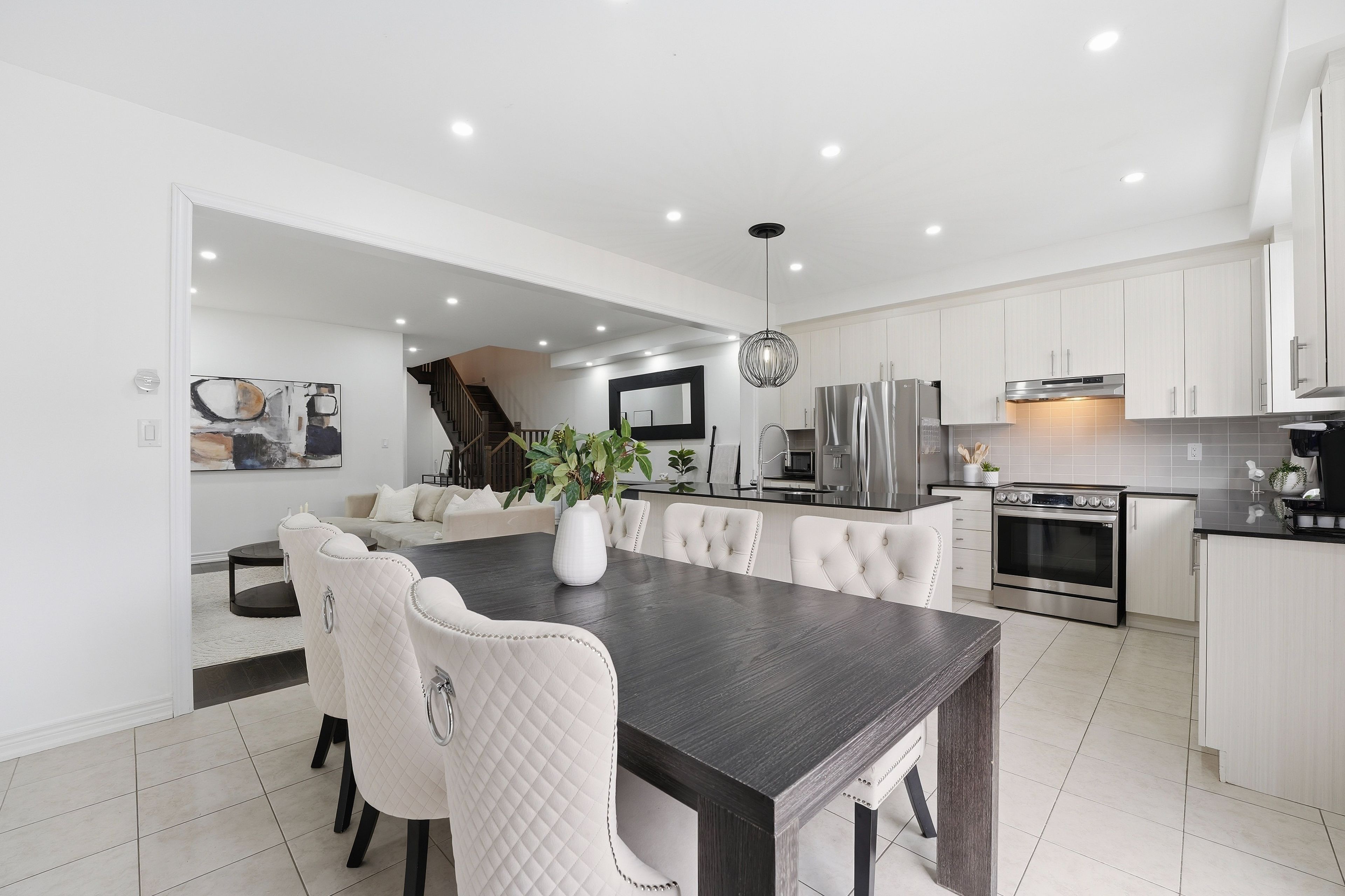 Rare offering in Alcona. This 4 bedroom semi detached home, built in 2017, delivers the space buyers are searching for without the detached price point. The open concept main floor features engineered hardwood, pot lights, and a fireplace that anchors the living space. The kitchen is finished with ivory cabinetry, quartz countertops, stainless steel appliances, and a centre island with breakfast seating. Walk out from the eat-in area to a fully fenced yard with gazebo and interlock. Upstairs offers four well sized bedrooms, including a primary with walk-in closet and a 5piece ensuite with double sinks, separate shower, and soaker tub. The finished basement adds a recreation room, 3 piece bathroom, and additional storage. Located minutes to Lake Simcoe, beaches, parks, and schools. This is where lifestyle meets affordability.