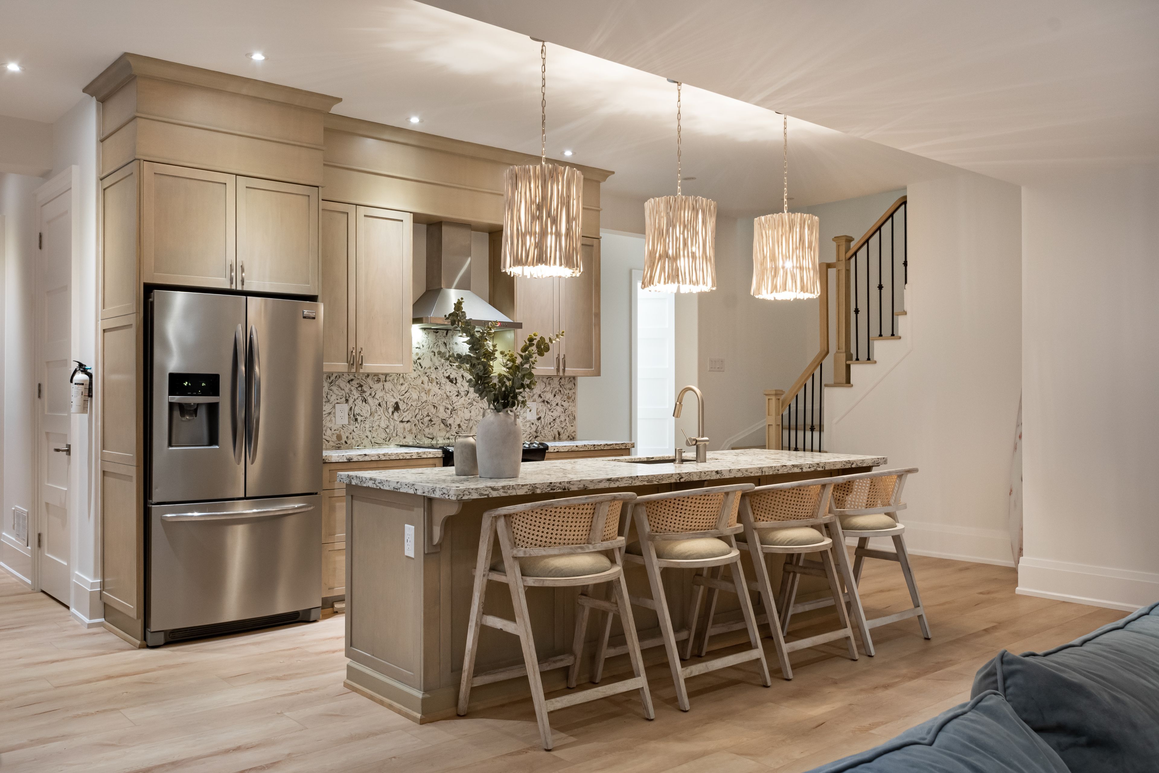 - 内部特点: Bar Fridge, Carpet Free, Central Vacuum, In-Law Capability, In-Law Suite, Primary Bedroom - Main Floor, Sauna, Steam Room, Water Heater
