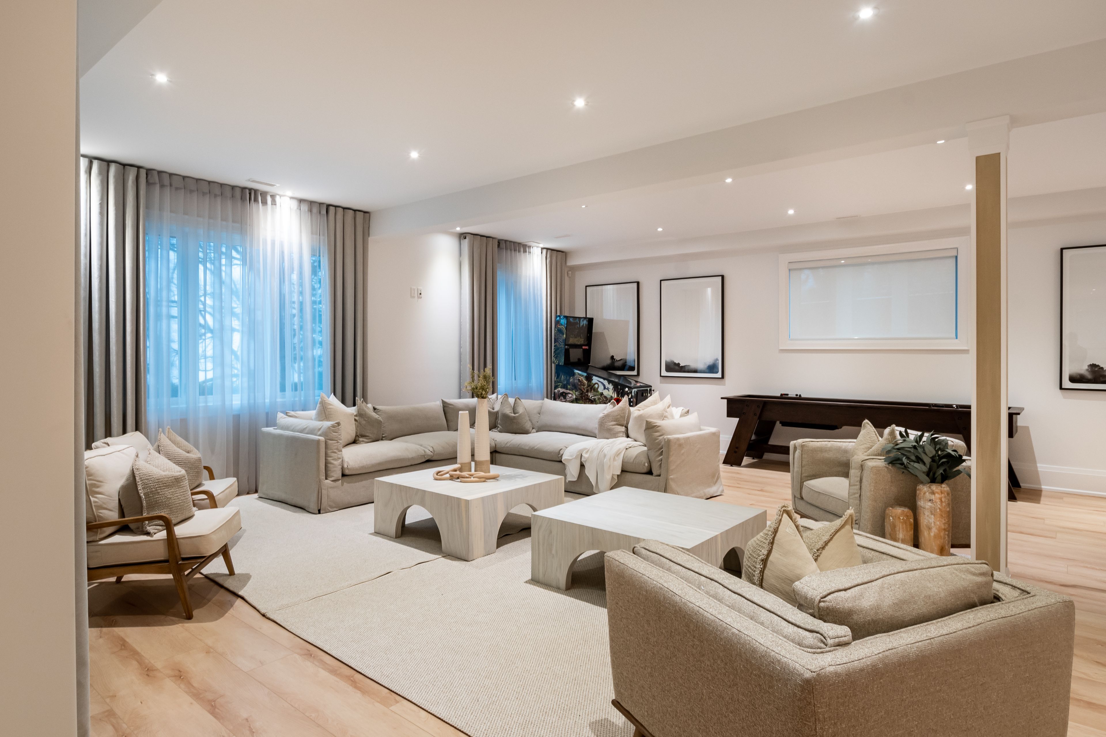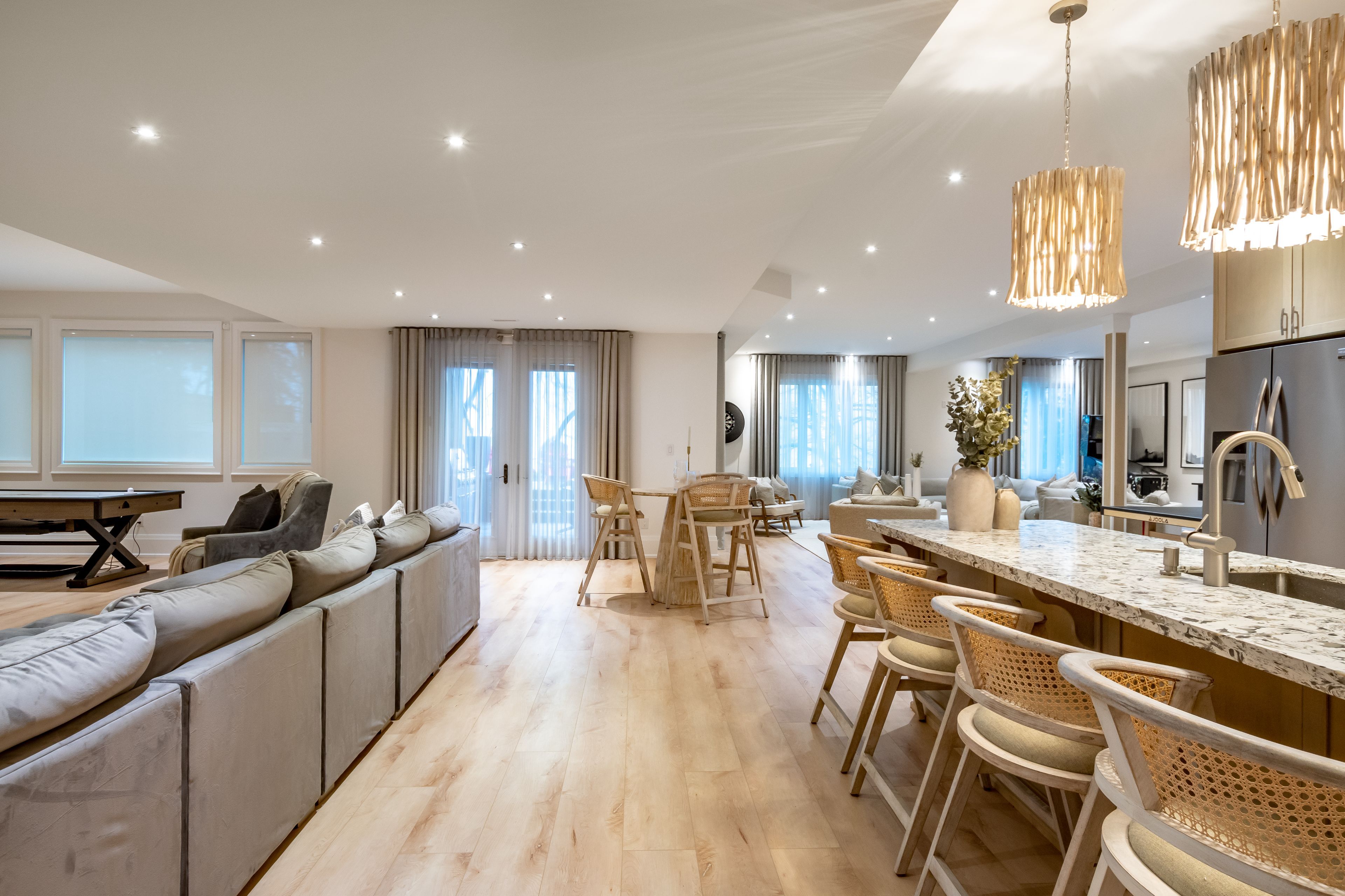 A Truly Exceptional Coastal-Inspired Luxury Waterfront Bungalow Featuring 7 Bedrooms & 8 Bathrooms, Fully-Renovated And Sold Completely Furnished, Offering Approximately 6,800 Sq Ft Of Thoughtfully Designed Living Space On Almost 80 Ft Of Sandy Lake Simcoe Shoreline With A Gradual, Family-Friendly Entry And Water Deep Enough For Boating And Docking. Reimagined From Top To Bottom By A Toronto-Based Design Studio, This Bright, Move-In-Ready Residence Pairs Refined Craftsmanship With A Designer-Created Lakehouse Aesthetic. Natural Textures, Soft Wood Tones, Custom Millwork, Designer Lighting And Siberian Engineered Hardwood Floors Are Complemented By Expansive Windows And Abundant Natural Light Throughout. The Main Level Features A Stunning Open-Concept Kitchen, Dining And Great Room - Flooded With Sunlight And Positioned To Capture Lake Views. The Kitchen Offers Custom Cabinetry, Oversized Island, Premium Appliances, And Curated Finishes. The Great Room Showcases A Statement Fireplace, Built-Ins, Coffered Ceilings And Walk-Out To Glass-Panel Deck. A Grand Foyer With Vaulted Ceiling, Formal Dining Room, Private Office And Four Bedrooms Complete The Main Floor. The Primary Retreat Includes Lake Views, Spa-Inspired 5-Piece Ensuite, And Custom Walk-In Closet. The Fully-Finished Walk-Out Lower Level Offers 9.5' Ceilings, Second Kitchen, Two Bedrooms And Private Wellness Spa Featuring Sauna And Steam/Aroma Shower - Ideal For Entertaining Or Extended Family Living. The Finished Loft Above The Oversized 3-Car Garage Includes A Kitchenette And 3-Piece Ensuite, Offering Excellent Flexibility For Guests Or Additional Living Space. Outdoor Living Is Equally Curated With Dock, Lakeside Deck, Wooden Barrel Sauna, Hot Tub And Sun-Soaked Lounge Areas Designed For Year-Round Enjoyment. Everything You See Included. A Rare Opportunity To Own A Fully-Furnished, Designer Lakefront Home With Ample Parking And Walking Distance To Shops, Golf And Amenities In The Heart Of Jackson's Point.