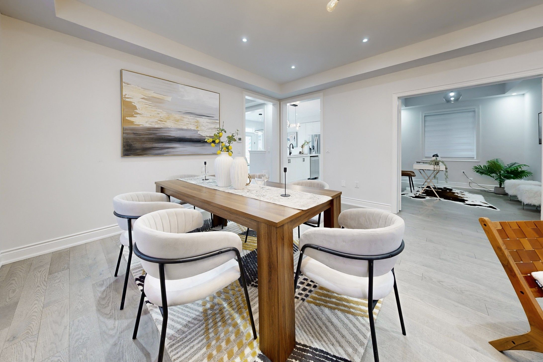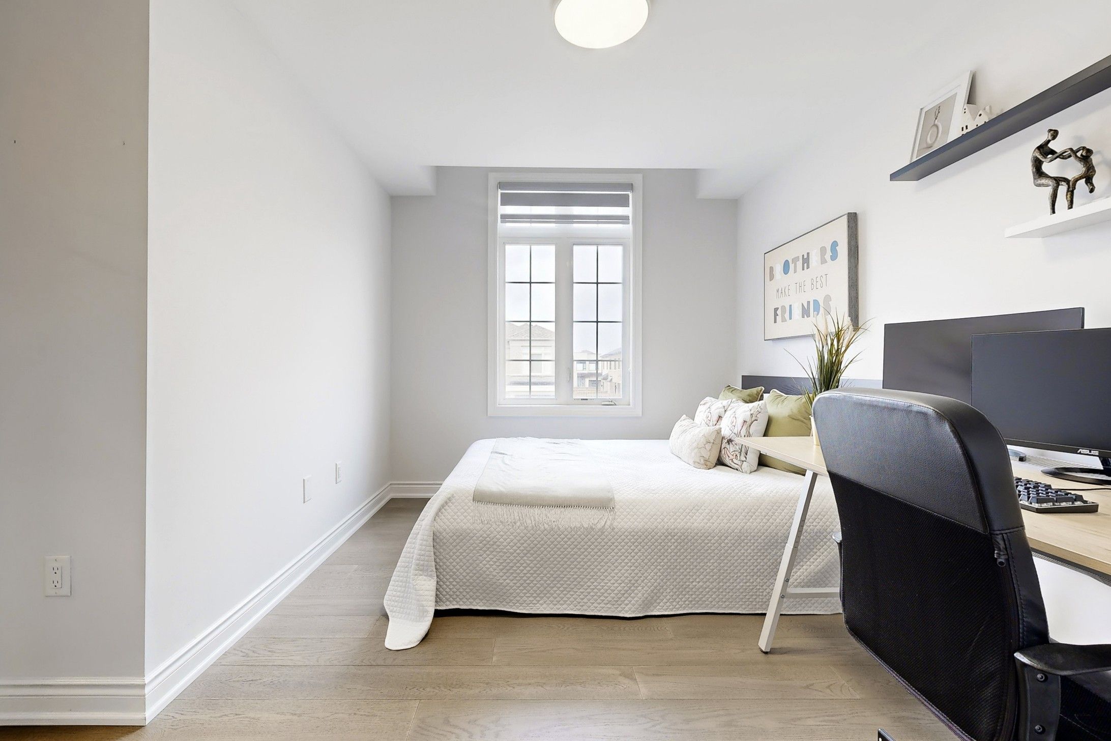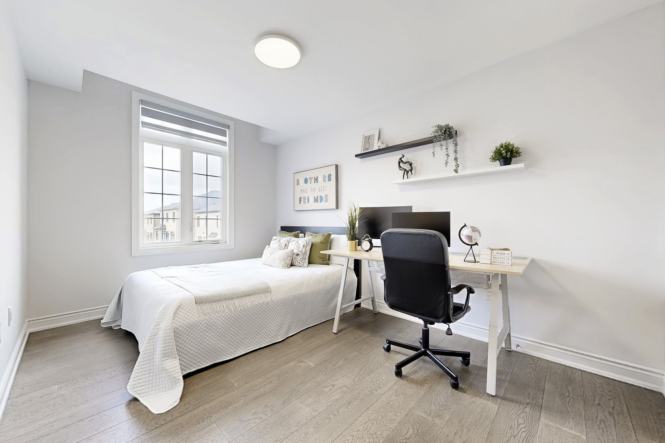 Must See .Stunning Executive 3118 sqft 5-Bedroom Residence in a Mature & Highly Sought-After Community! Built in 2022 and with Tarion New Home Warranty. Bright, functional layout features 9ft ceilings on the main floor and upgraded hardwood flooring throughout the entire house (No Carpet!).A gourmet Chef's kitchen boasts granite countertops, Gas stove, SS appliances .A private office provides the ideal workspace at Main floor . Fully fenced backyard. Perfect for multi-generational living! Second floor offers 3 spacious bedrooms with private ensuites and 2 bedrooms sharing a functional bath room. The rare no-sidewalk lot offers a long driveway parking up to 6 cars. Unfinished basement awaits your personal vision. Prime location: walking distance to high ranking schools, short distance to Hwy 404/407, 8 mins to Markham, and close to premium shopping mall. Experience the perfect blend of luxury, privacy, and accessibility in this established neighborhood!