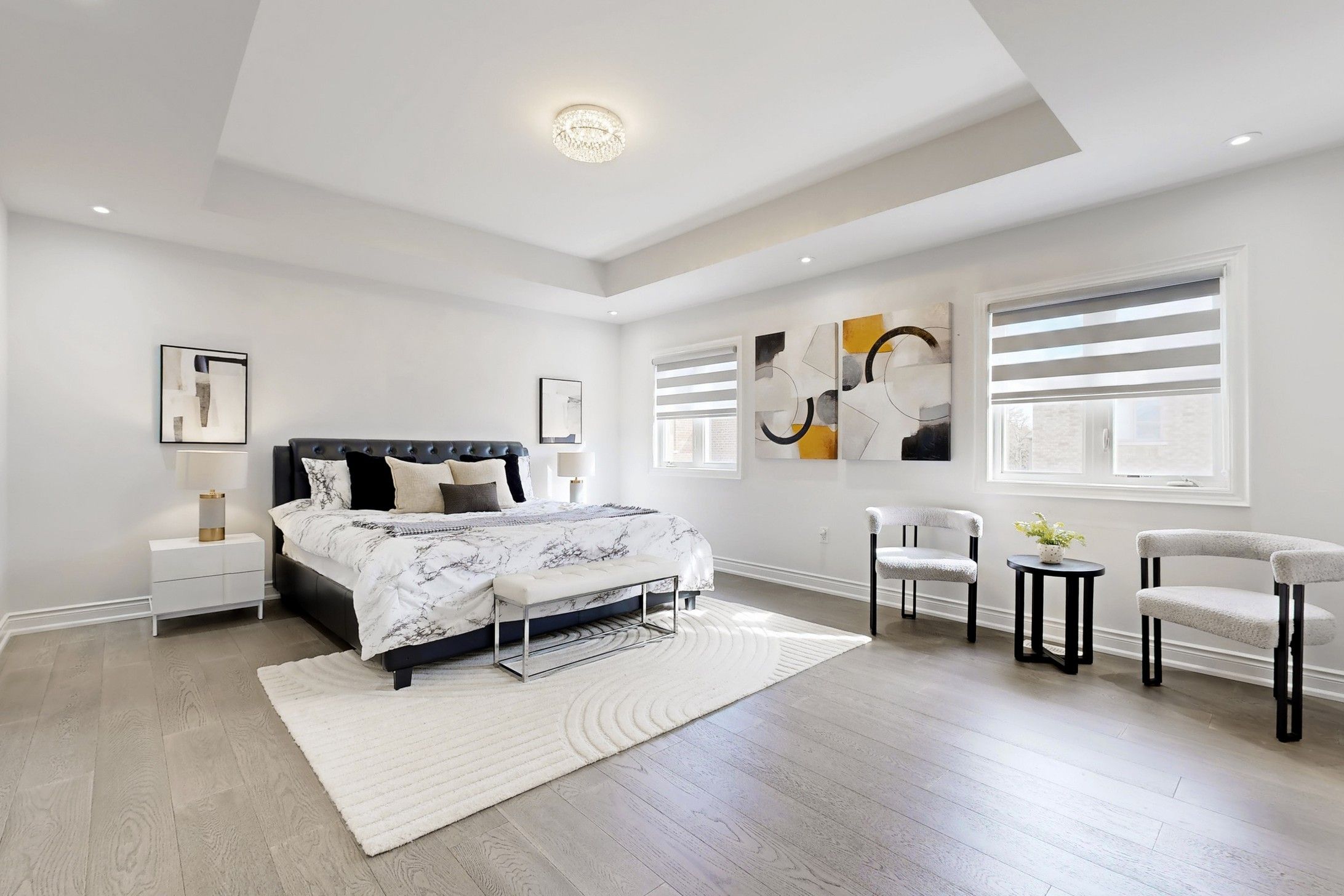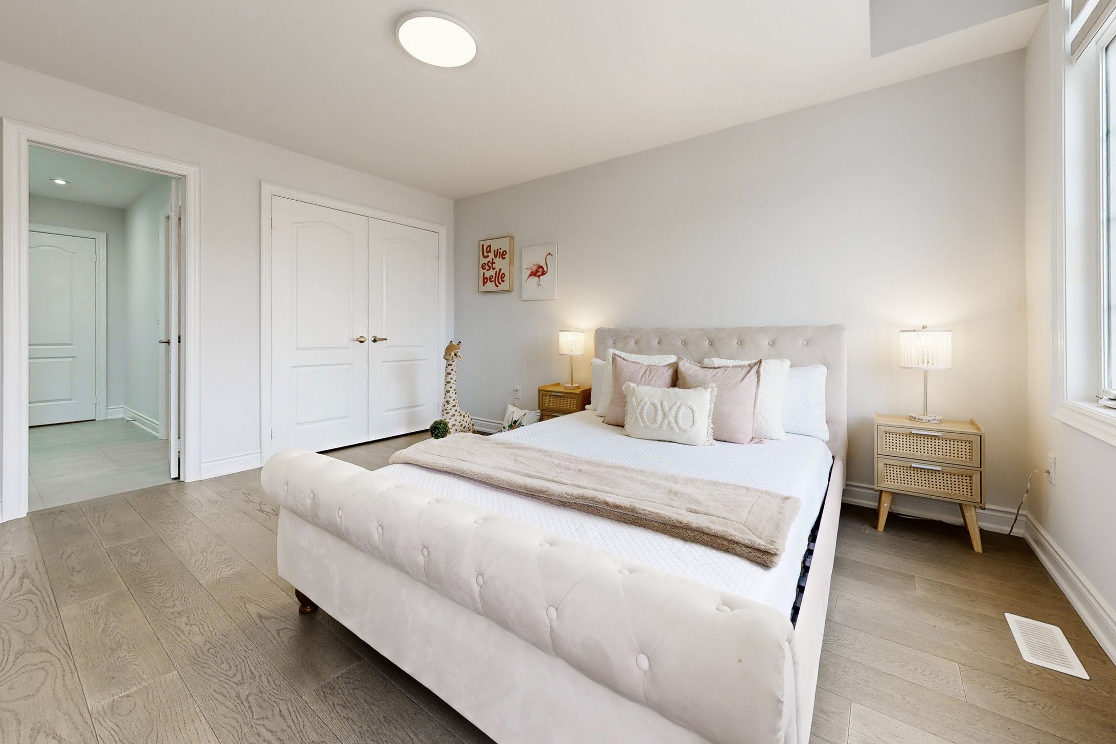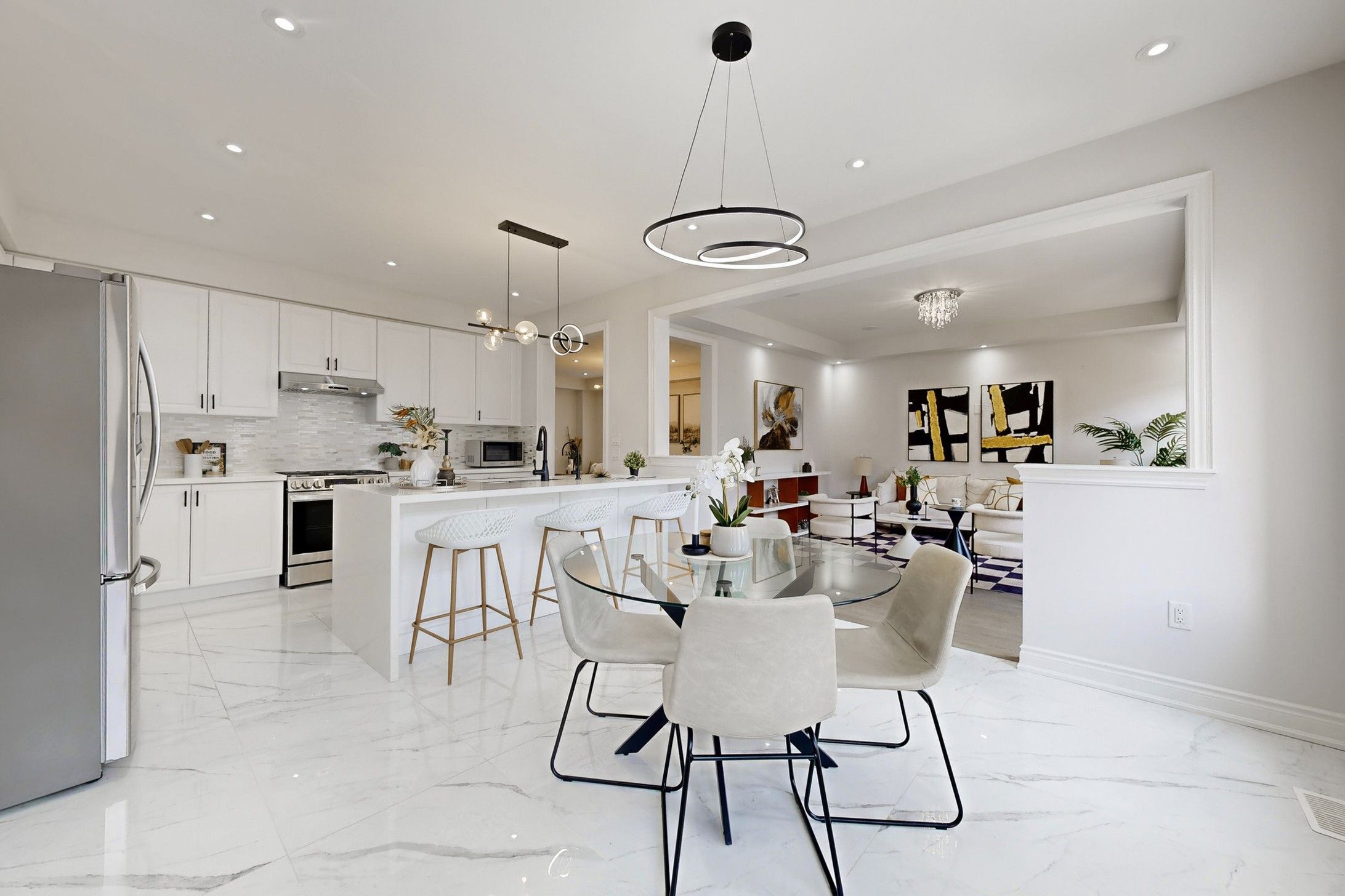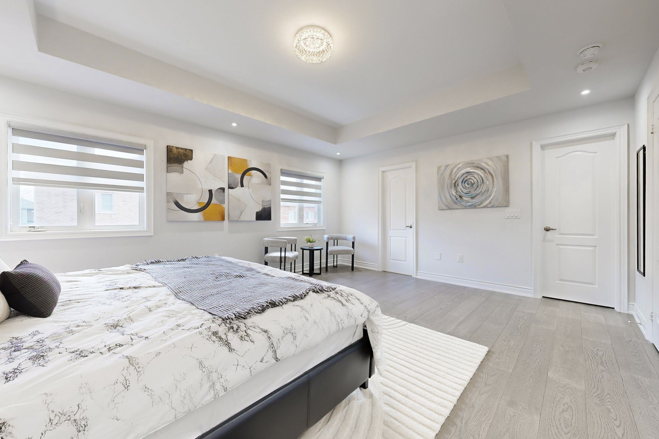 Must See .Stunning Executive 3118 sqft 5-Bedroom Residence in a Mature & Highly Sought-After Community! Built in 2022 and with Tarion New Home Warranty. Bright, functional layout features 9ft ceilings on the main floor and upgraded hardwood flooring throughout the entire house (No Carpet!).A gourmet Chef's kitchen boasts granite countertops, Gas stove, SS appliances .A private office provides the ideal workspace at Main floor . Fully fenced backyard. Perfect for multi-generational living! Second floor offers 3 spacious bedrooms with private ensuites and 2 bedrooms sharing a functional bath room. The rare no-sidewalk lot offers a long driveway parking up to 6 cars. Unfinished basement awaits your personal vision. Prime location: walking distance to high ranking schools, short distance to Hwy 404/407, 8 mins to Markham, and close to premium shopping mall. Experience the perfect blend of luxury, privacy, and accessibility in this established neighborhood!