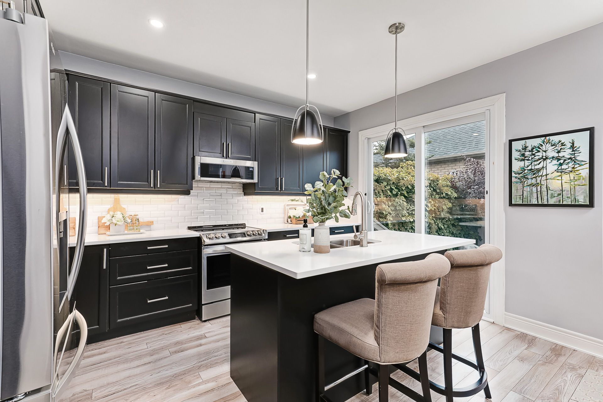 Chic & Coveted in Olde Towne Collingwood! Timeless Charm meets Modern Luxury in Prime Downtown Location~ Tastefully renovated detached brick home (2465 sf of finished living space ) in the heart of one of Collingwood's most sought-after neighbourhoods. Enjoy small-town charm with top-tier urban amenities and year-round walkability to downtown dining, boutique shopping, waterfront trails, and cultural attractions. This versatile bungaloft floor plan offers ideal MAIN-FLOOR living, perfect for a range of lifestyles. The chef's kitchen (appliances 2023) features a peninsula island, breakfast bar, and spacious dining area-ideal for both daily life and entertaining. The open-concept Great Room is flooded with natural light, featuring vaulted ceilings and a cozy gas fireplace. Outside, enjoy a private, south-facing low maintenance courtyard for al fresco dining or quiet relaxation. The covered front porch (west-facing) offers the perfect place to enjoy a glass of wine and the Georgian Bay breeze! Main-floor primary suite is a true retreat and includes a walk in closet and a spa-inspired ensuite with double vanity, walk-in shower, and elegant soaker tub. Upstairs, find two generous bedrooms, spacious loft area (office/library or flex Space) and a renovated 4-pc bath with heated floors and glass walk-in shower-ideal for guests or family. Step inside from the attached garage (19.62 X 10.93 ft ) into a stylish mudroom/laundry area and convenient powder room. The finished lower level offers a bright rec room (gym/craft room) with fireplace, plus a storage/workshop area. Meticulously updated throughout-just move in and enjoy! Additional Highlights~ A/C (2023), 3 Bathrooms Beautifully Renovated, Kitchen Backsplash, New Patio Door (2023) to Garden, Walk in Closet Enhancement (2026)~ Loft Bedroom, Designer Lighting, Washer/ Dryer (2020), Eave trough/ Gutter System (2022), Driveway Interlocking Stone, Custom Cabinets in Storage Room, Utility Sink in Storage Room.