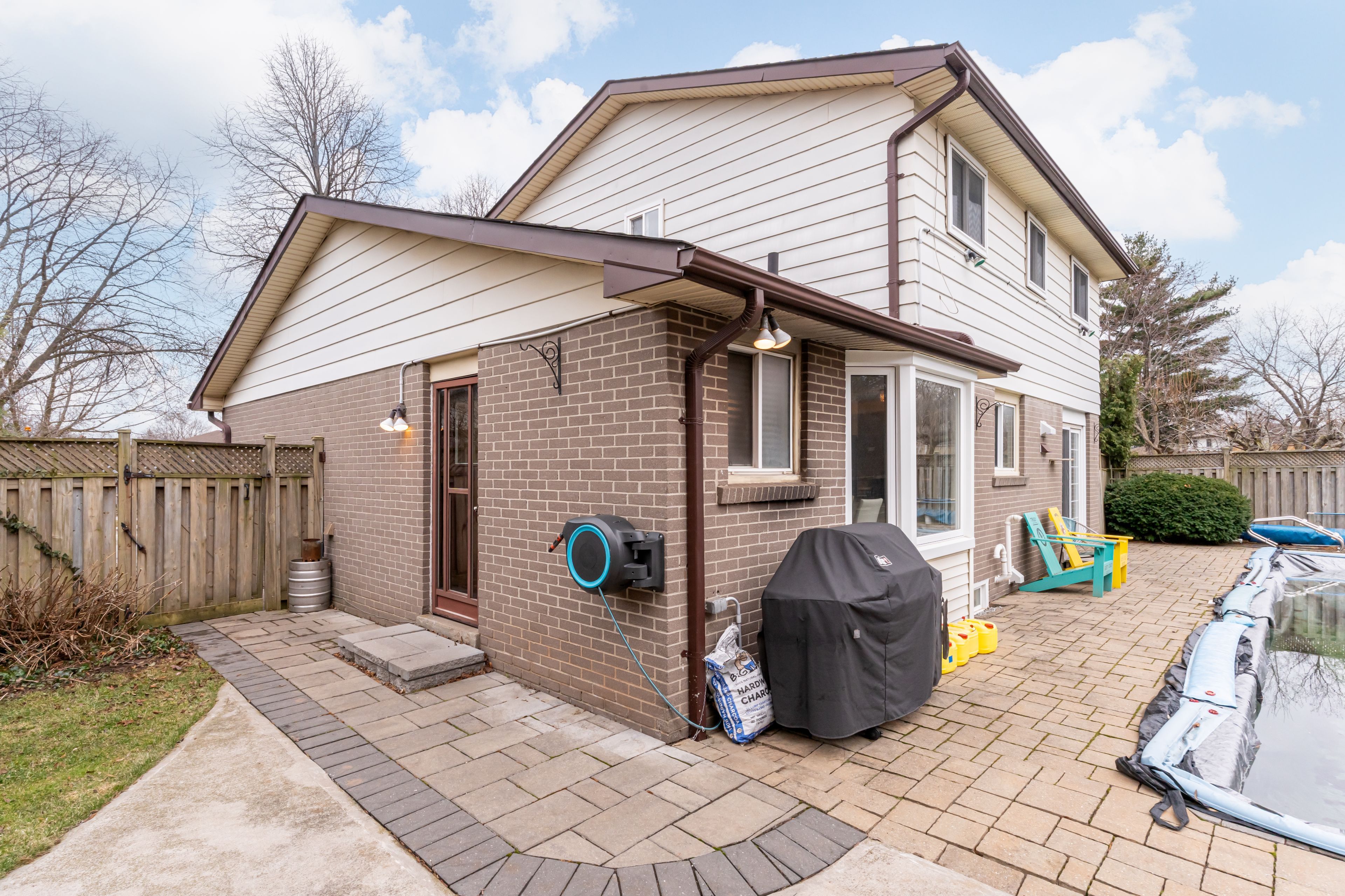 Beautifully updated home in Burlington's sought after, family friendly Palmer neighbourhood! This detached 2 storey home offers 4 spacious bedrooms and 3 bathrooms, combining comfort, functionality, and outdoor living. The bright main level features hardwood flooring, large bay windows (2022), and a seamless flow between the living and dining areas. The updated kitchen (2017) offers granite countertops, updated cabinetry, grey tile backsplash, and a functional galley style layout with ample storage, along with a bright breakfast area featuring a bay window (2022) and convenient side door access to the backyard. The finished basement adds valuable living space with a versatile recreation room complete with a wood burning fireplace and above grade windows, an updated 3 piece bathroom (2022), and a dedicated laundry room (2024) with floor to ceiling storage, ideal for a growing family. Step outside to your private backyard retreat featuring a large in ground pool with updated liner and motor (2024), interlock patio, concrete seating area, hot tub, and a cabana with electrical (2017), perfect for summer entertaining. Additional highlights include an attached garage with interior access, interlock driveway (2020), and private parking. Ideally located within walking distance to schools and transit, and just minutes to major routes, shopping, parks, and everyday amenities. A wonderful opportunity to own a move in ready home in a desirable, family oriented neighbourhood.
