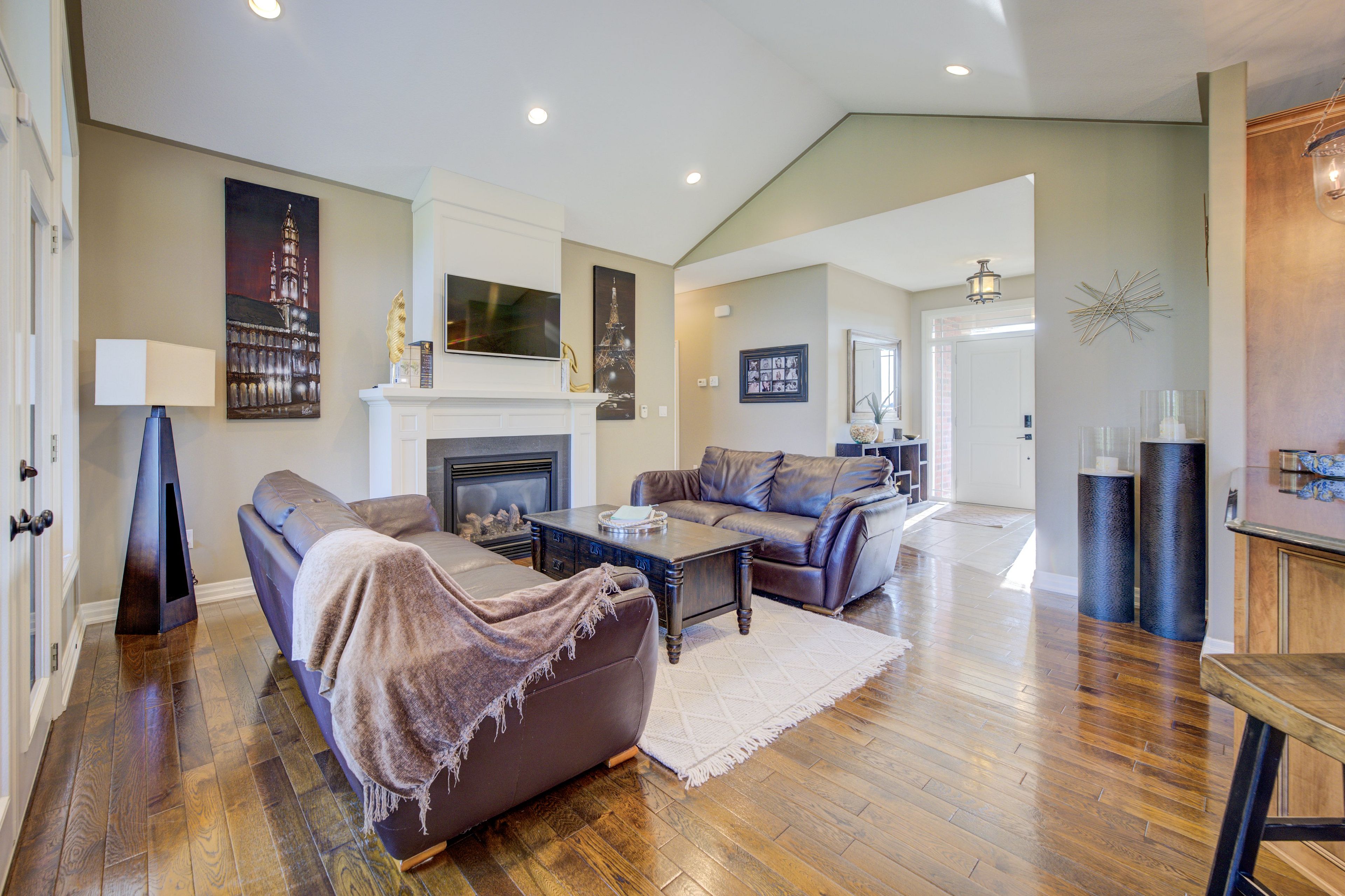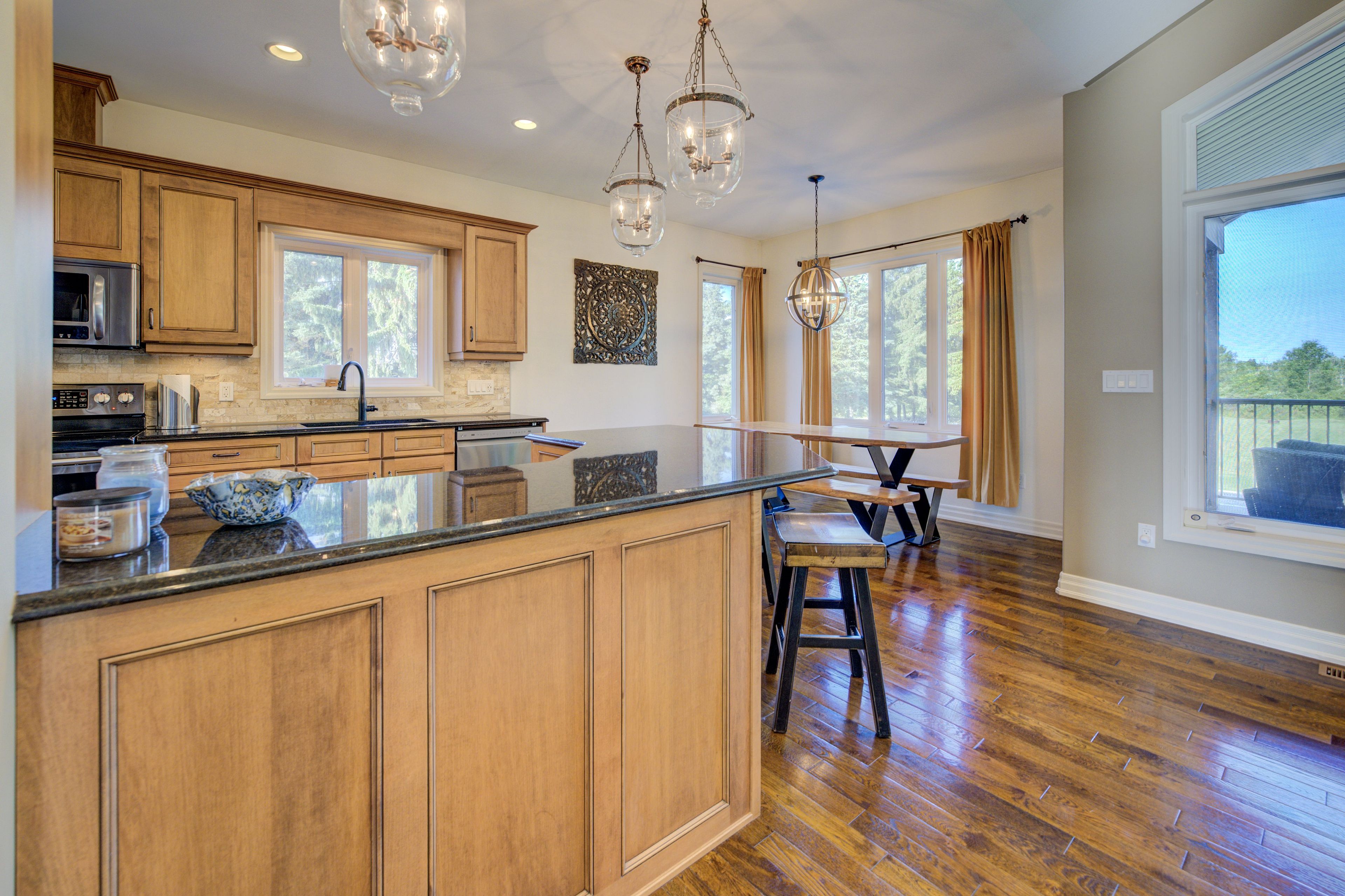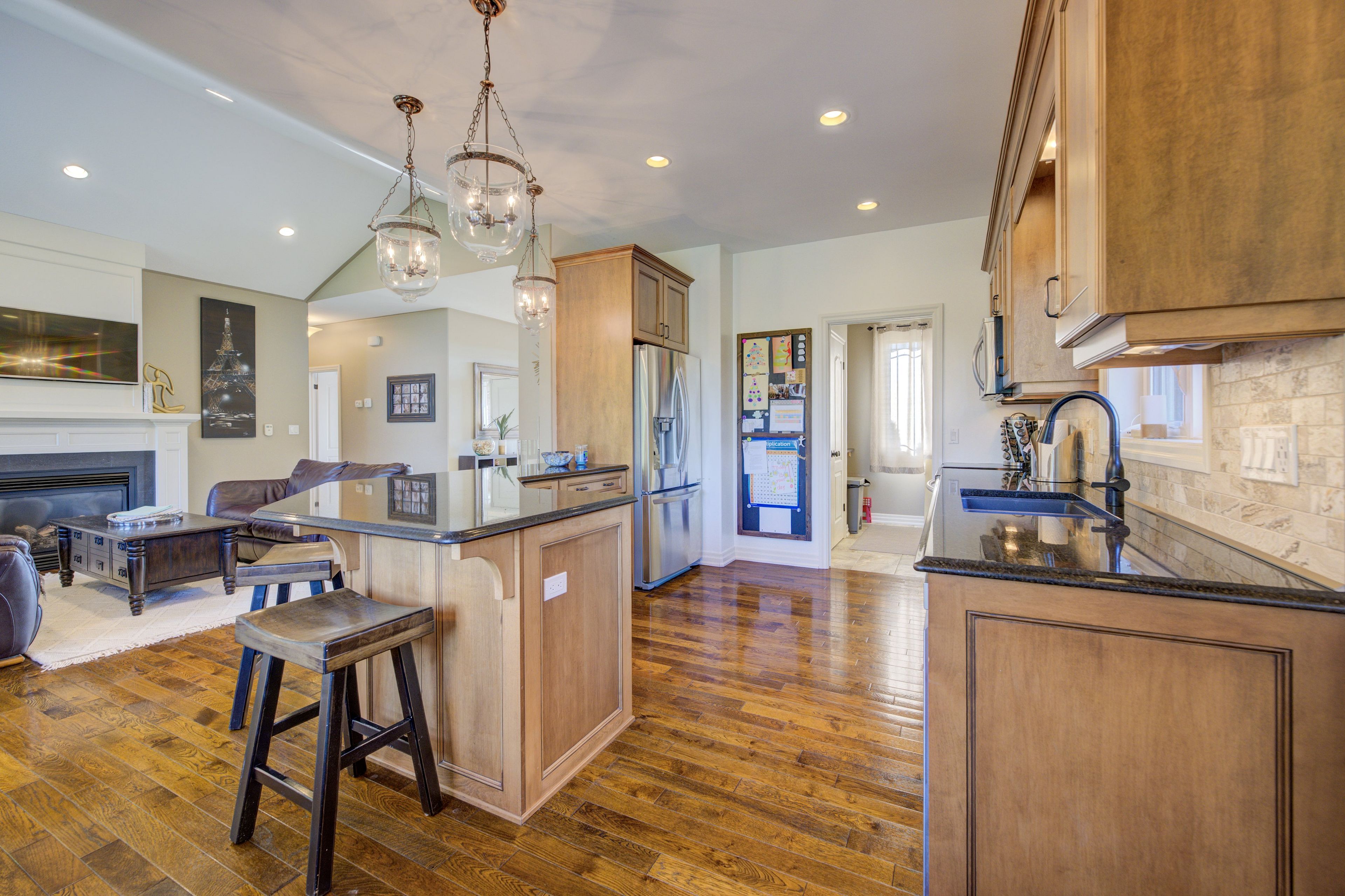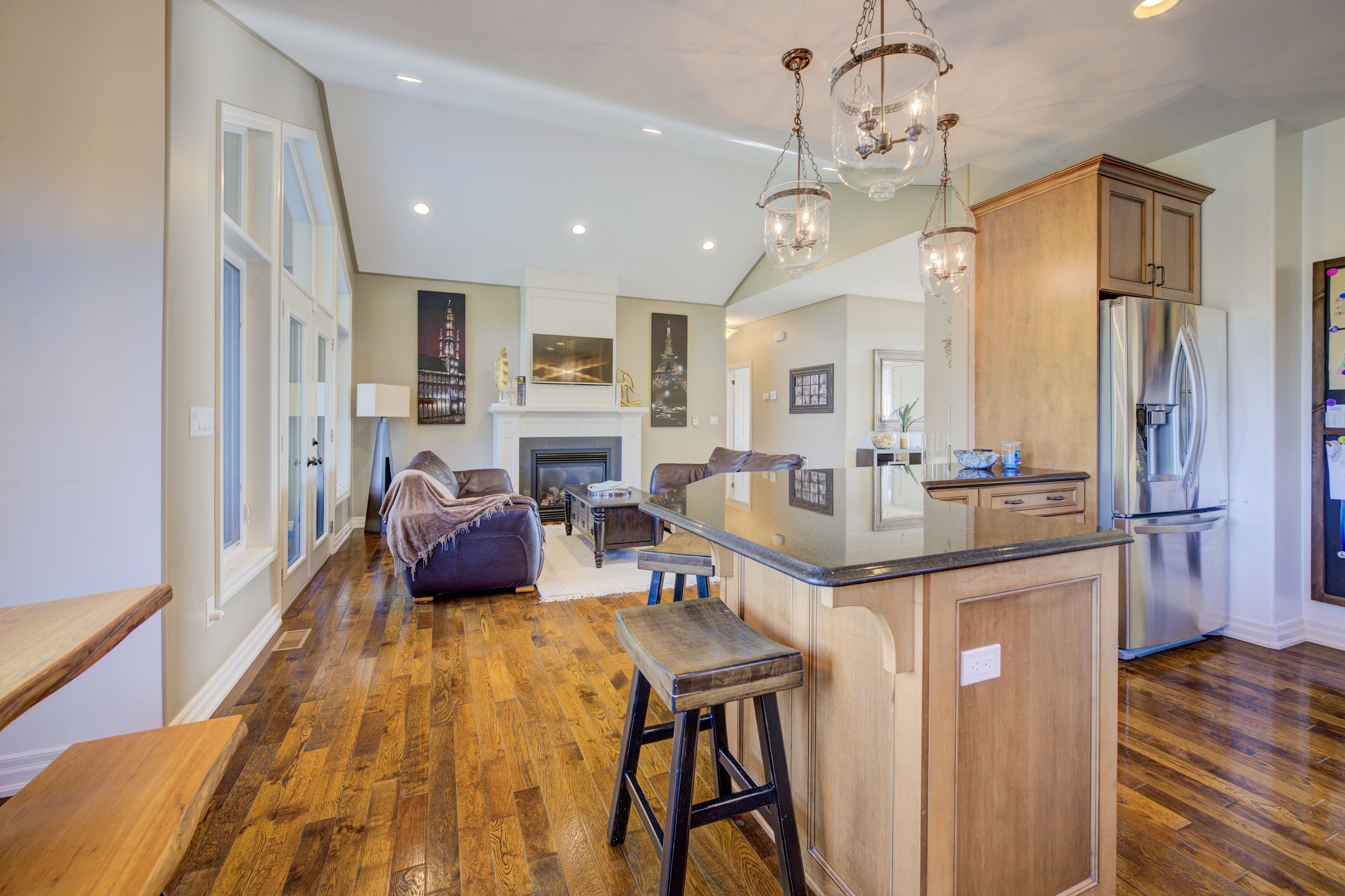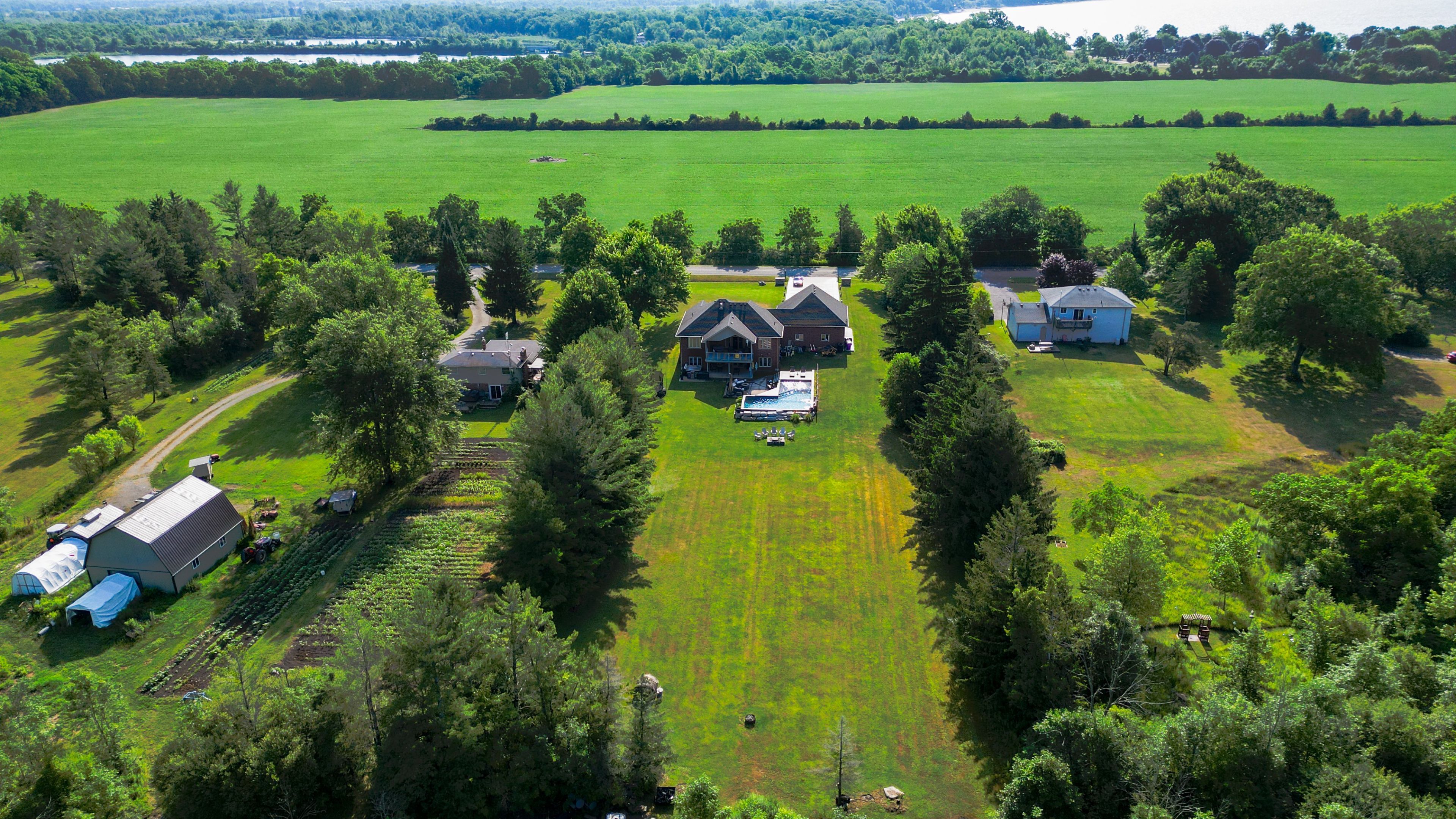 Stunning Country Bungalow on an amazing 1.44 acre lot, close to the lake. Walk in to the grand foyer and living room with cathedral ceilings, gas fireplace and french doors to a large covered deck overlooking the inground pool (7 yrs old) and the massive grounds. Main floor boasts the Primary bedroom with walk in closet and ensuite, 2 more great size bedrooms (one set up as an office with built in desk and shelving) and another full bathroom. This stunning kitchen has ample maple cupboards and Granite counter tops and a quant dining area. The lower level with French Doors walkout to the backyard is nothing but spectacular. Amazing rec room with gas fireplace and large bar, fantastic for entertaining. Additional bedroom and 1/2 bath as well as laundry room and plenty of storage finish off this ground level basement. Attached double car garage is 31 x 28ft and heated.