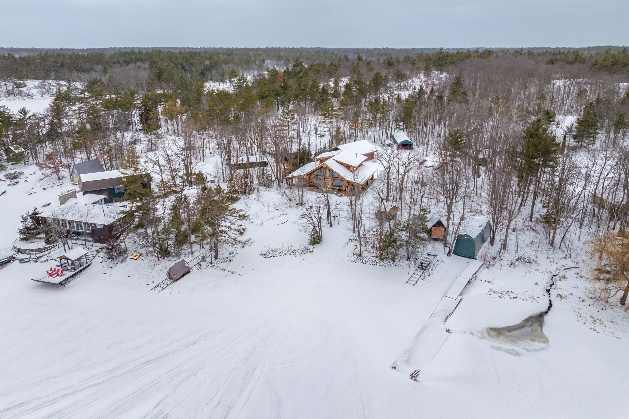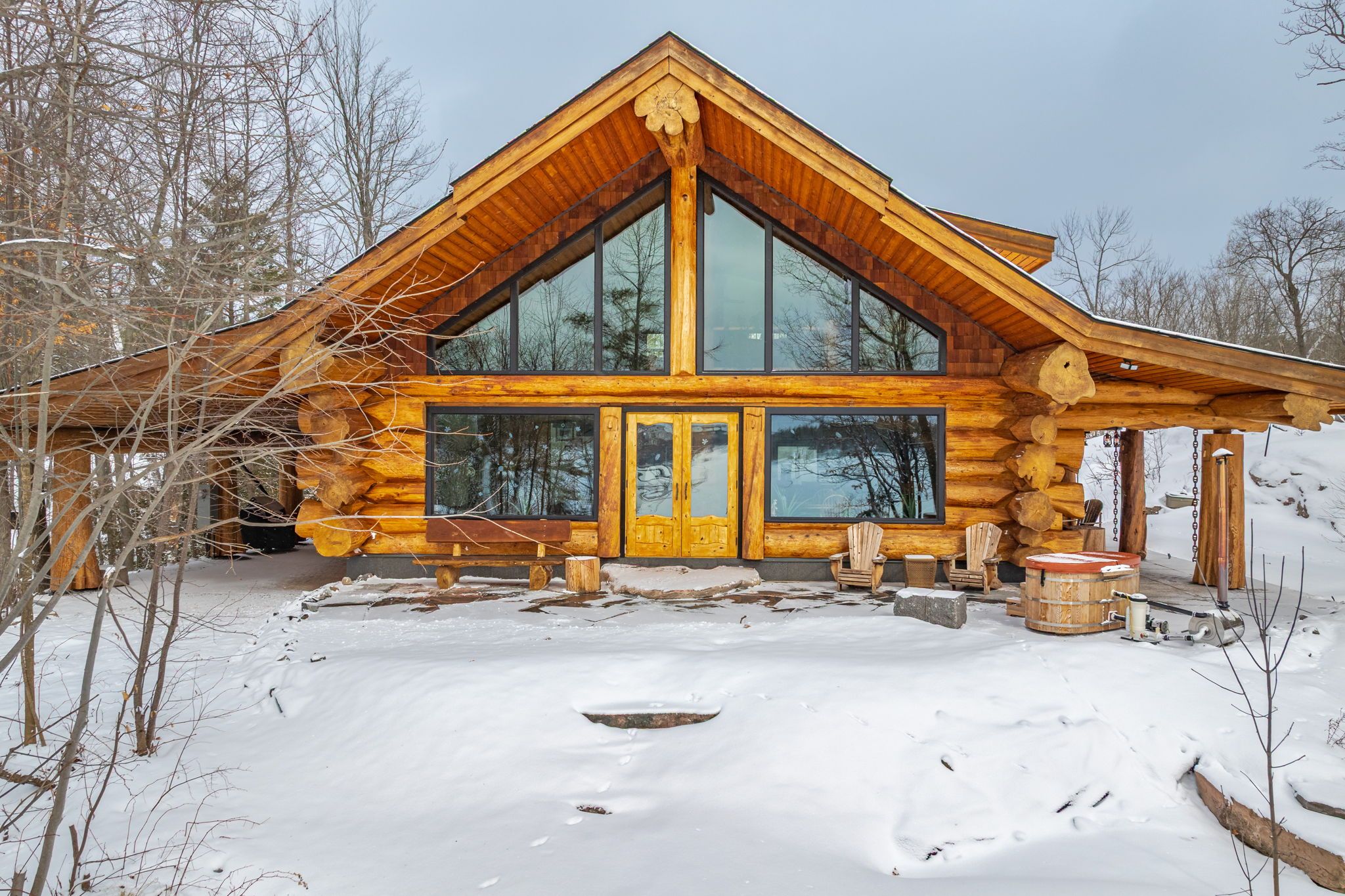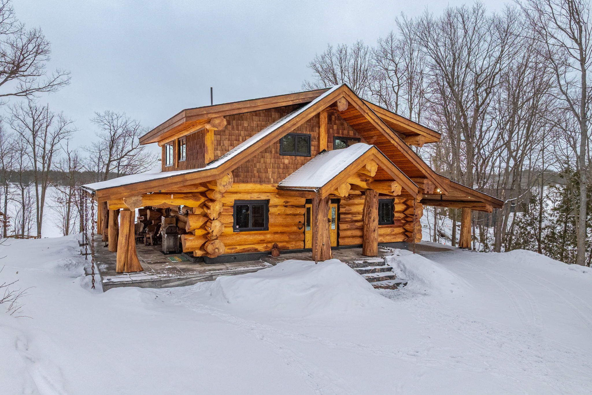 Welcome to this exceptional custom Pioneer Log Homes of BC residence, set on the iconic shores of Georgian Bay. Featured for their craftsmanship on the hit TV series Timber Kings, Pioneer log homes are renowned for their quality, design, and timeless appeal.This stunning waterfront property offers a gently sloping lot leading to a natural walk-in beach-perfect for all ages-along with desirable southern exposure and breathtaking sunset views.Inside, the home showcases a warm and inviting open-concept layout with soaring ceilings, handcrafted log construction, and expansive windows that frame the beauty of the bay. With 3 bedrooms and 3 bathrooms, the home is thoughtfully designed for both everyday living and entertaining.Outdoors, the property is equally impressive, featuring three marine railways, a dry boathouse, and a charming bunkie-ideal for guests or additional space.Adding to its appeal, the property offers excellent potential for future expansion, with the opportunity to create additional bedrooms above the garage or within the existing carport structure.Whether you're enjoying peaceful mornings by the water or unforgettable sunsets over Georgian Bay, this is a rare opportunity to own a legacy waterfront property.