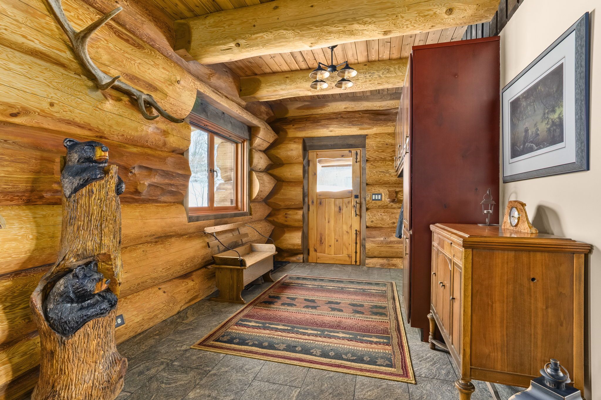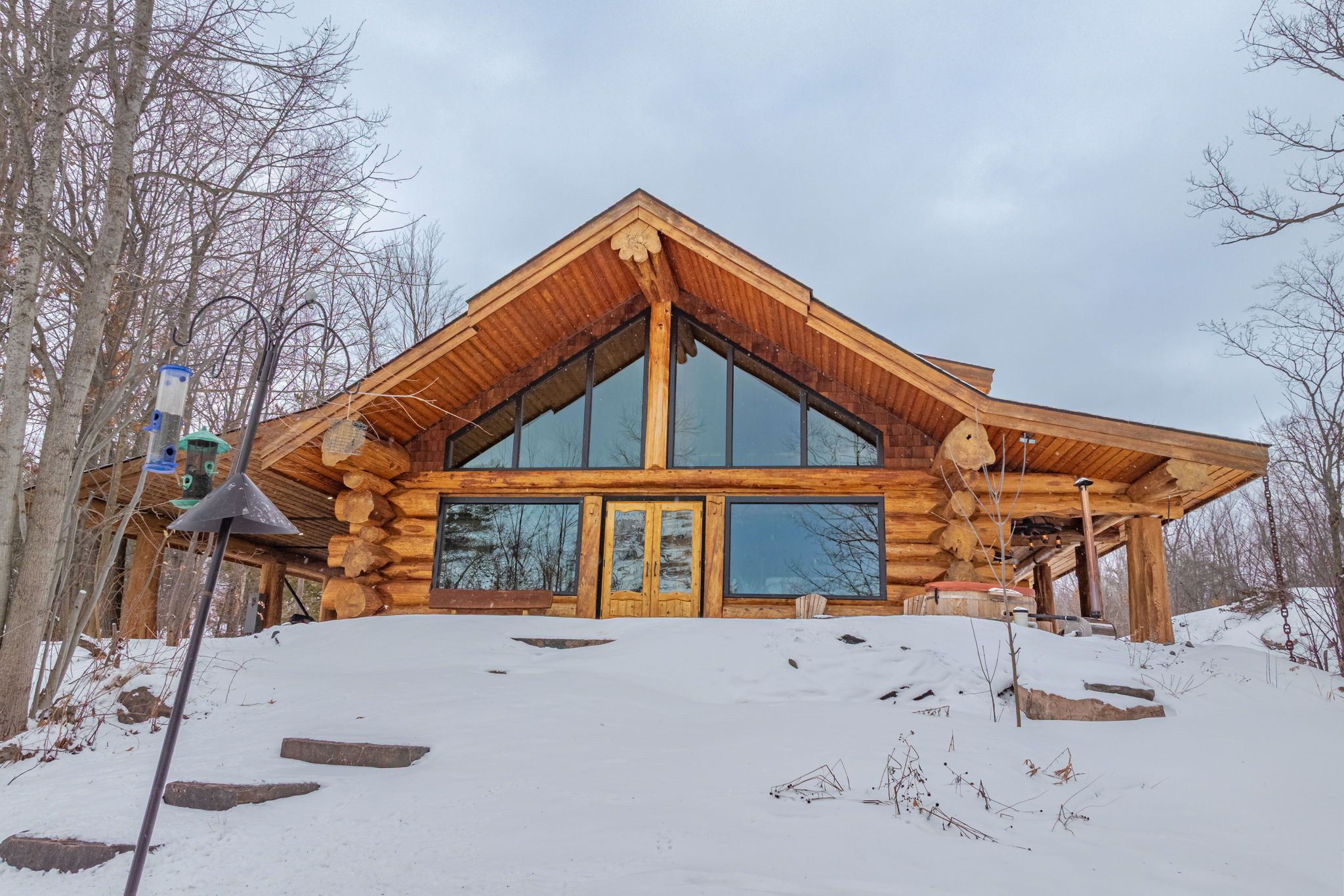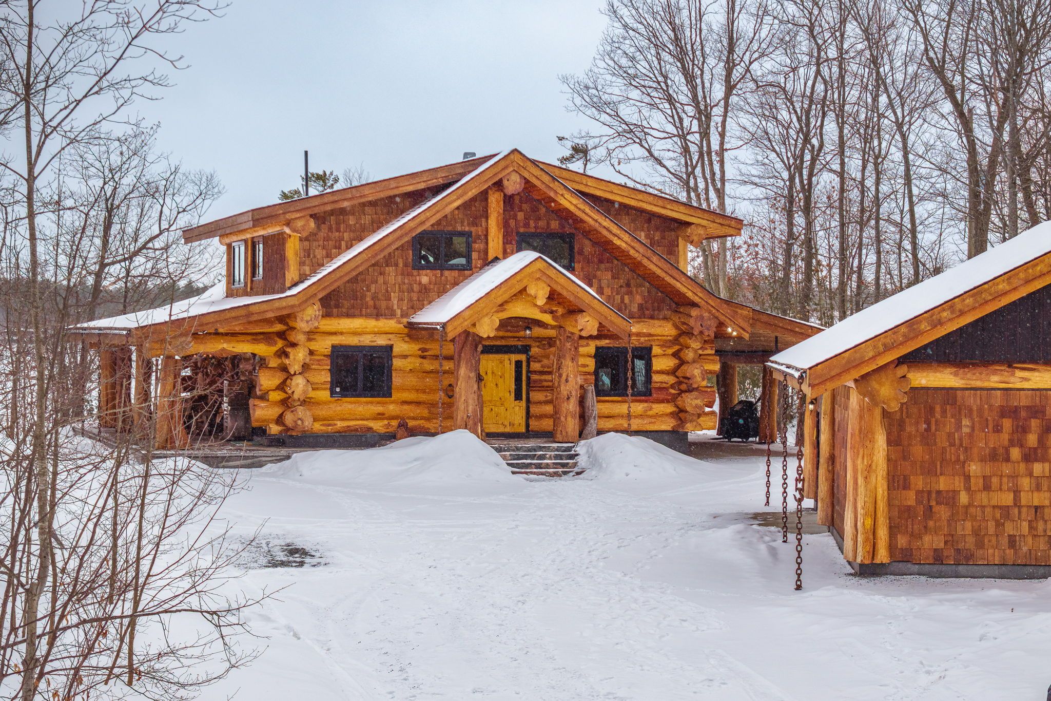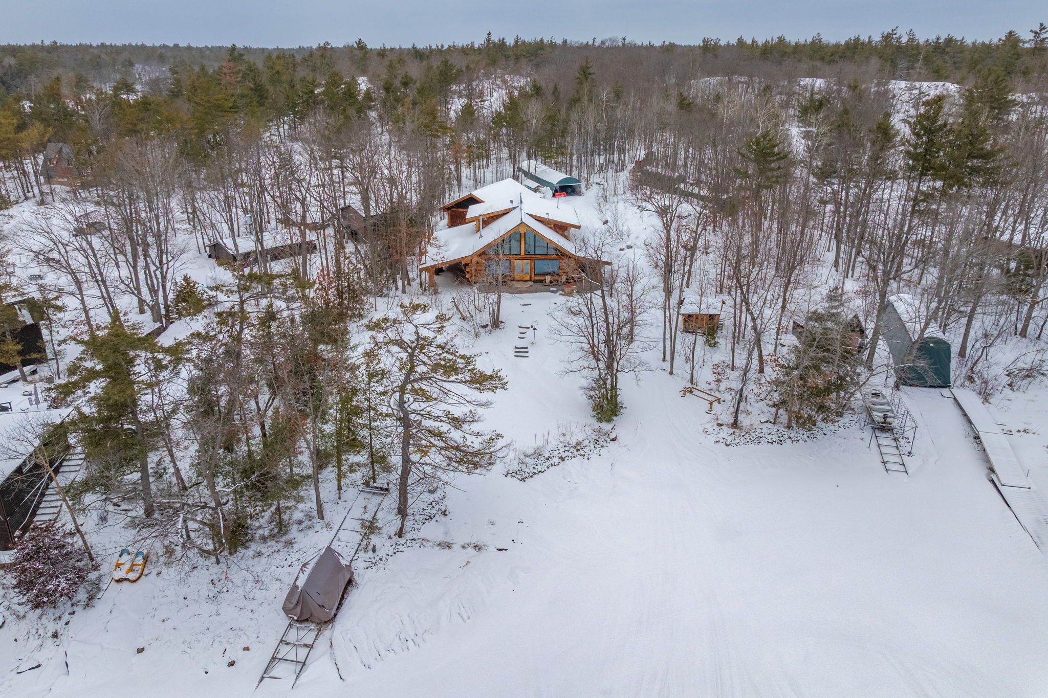 Welcome to this exceptional custom Pioneer Log Homes of BC residence, set on the iconic shores of Georgian Bay. Featured for their craftsmanship on the hit TV series Timber Kings, Pioneer log homes are renowned for their quality, design, and timeless appeal.This stunning waterfront property offers a gently sloping lot leading to a natural walk-in beach-perfect for all ages-along with desirable southern exposure and breathtaking sunset views.Inside, the home showcases a warm and inviting open-concept layout with soaring ceilings, handcrafted log construction, and expansive windows that frame the beauty of the bay. With 3 bedrooms and 3 bathrooms, the home is thoughtfully designed for both everyday living and entertaining.Outdoors, the property is equally impressive, featuring three marine railways, a dry boathouse, and a charming bunkie-ideal for guests or additional space.Adding to its appeal, the property offers excellent potential for future expansion, with the opportunity to create additional bedrooms above the garage or within the existing carport structure.Whether you're enjoying peaceful mornings by the water or unforgettable sunsets over Georgian Bay, this is a rare opportunity to own a legacy waterfront property.